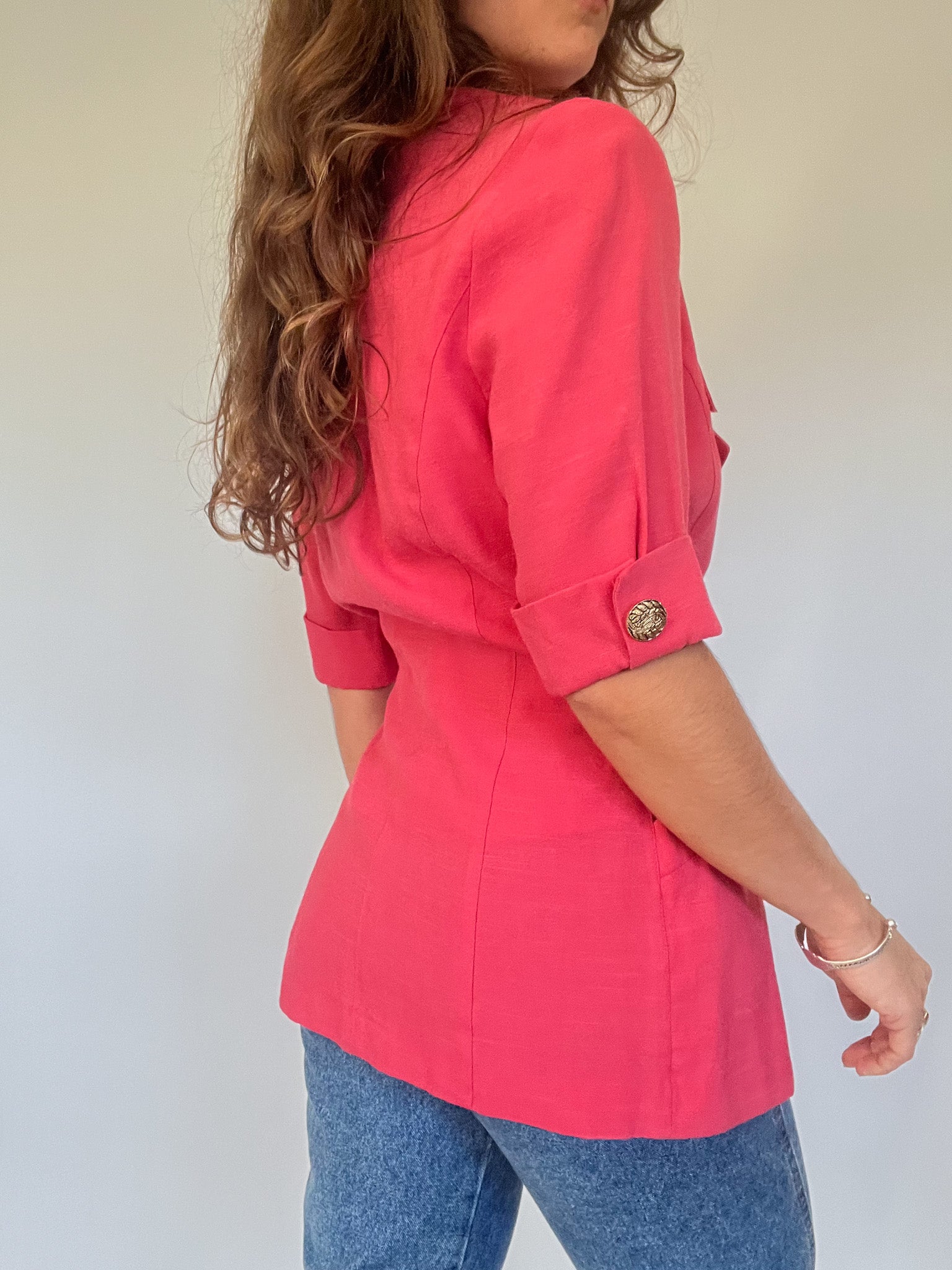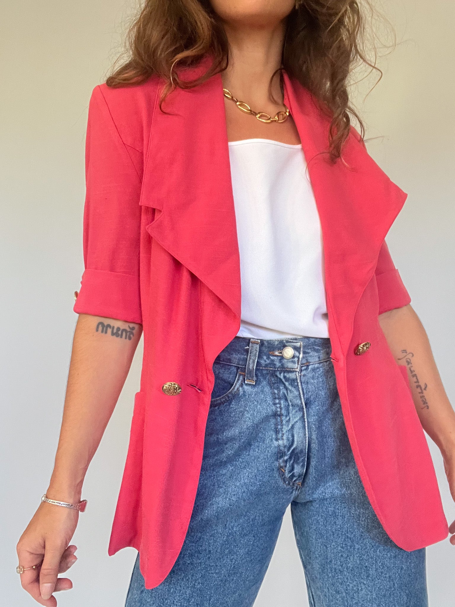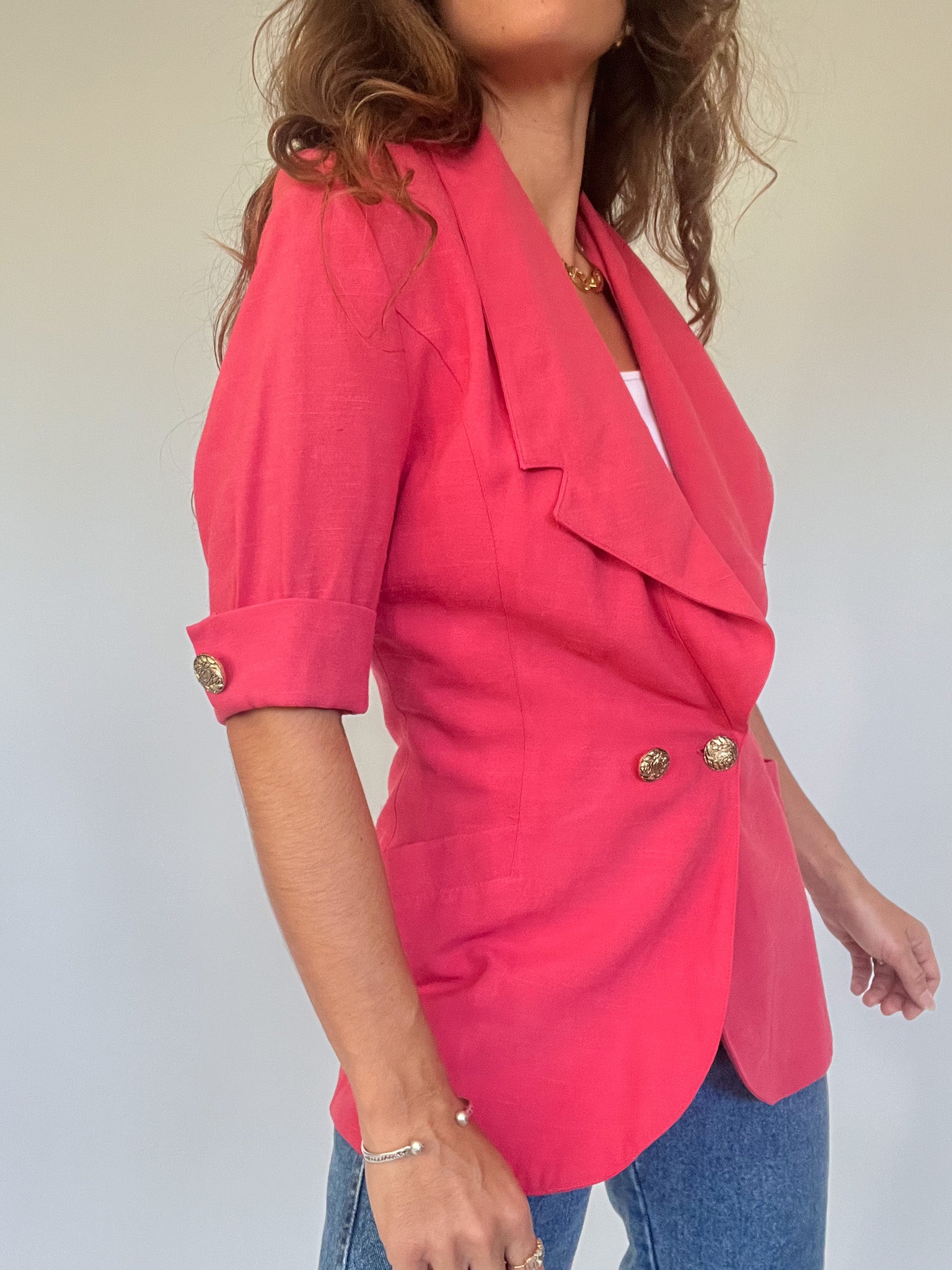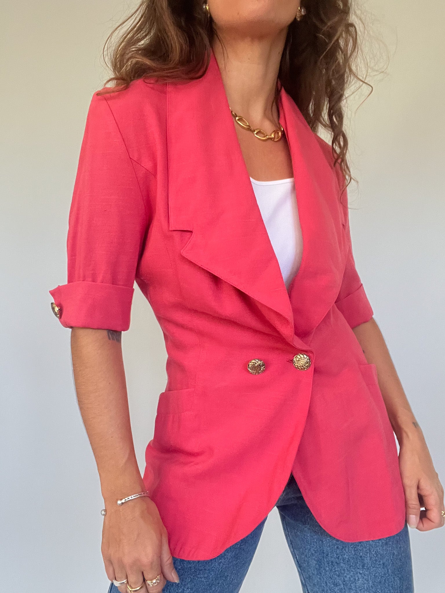 Vintage 90’s Coral Pink Linen-Blend Blazer with Gold Buttons