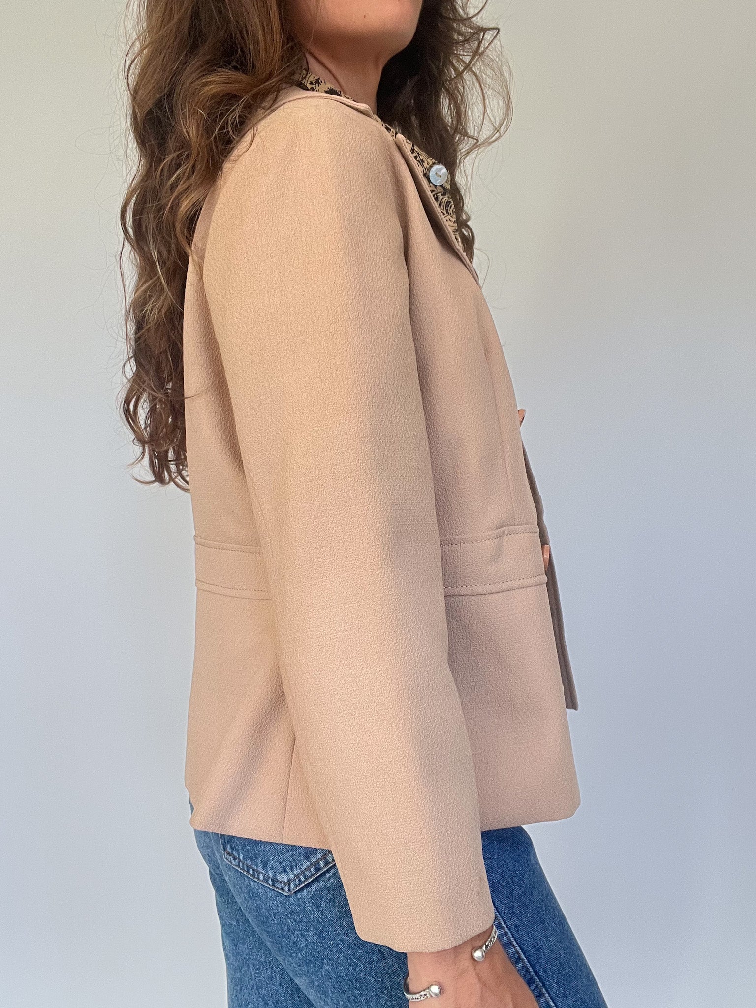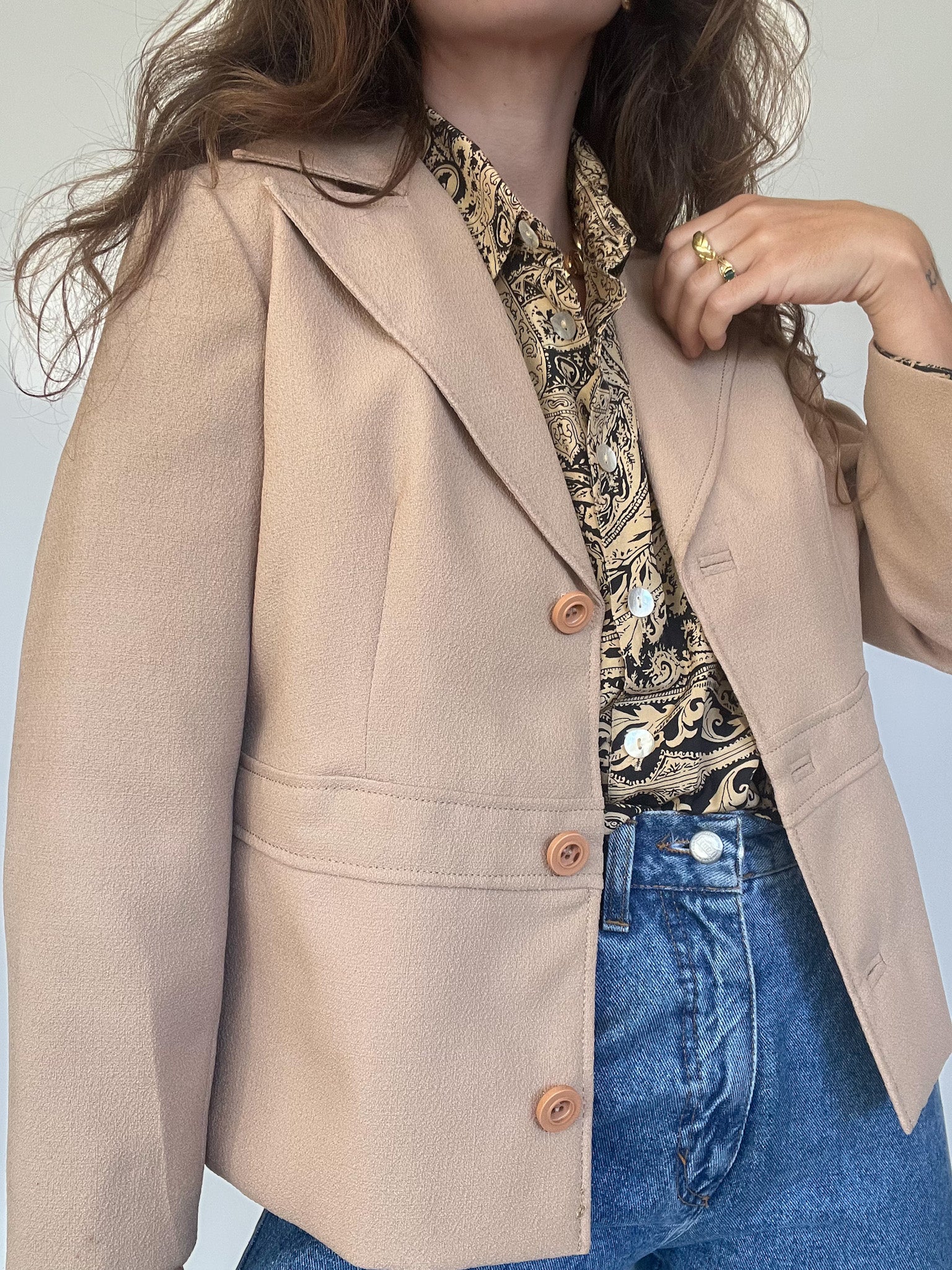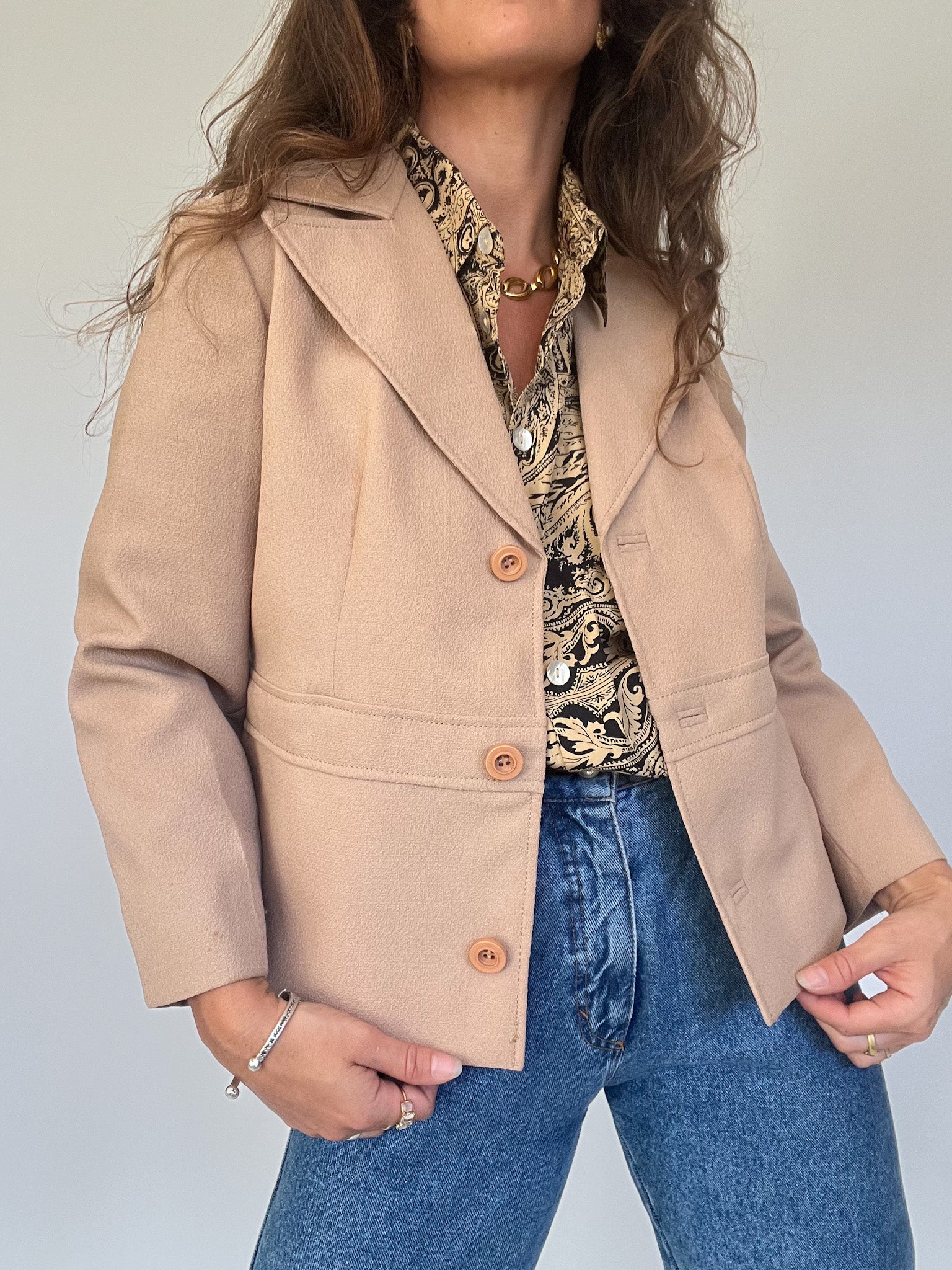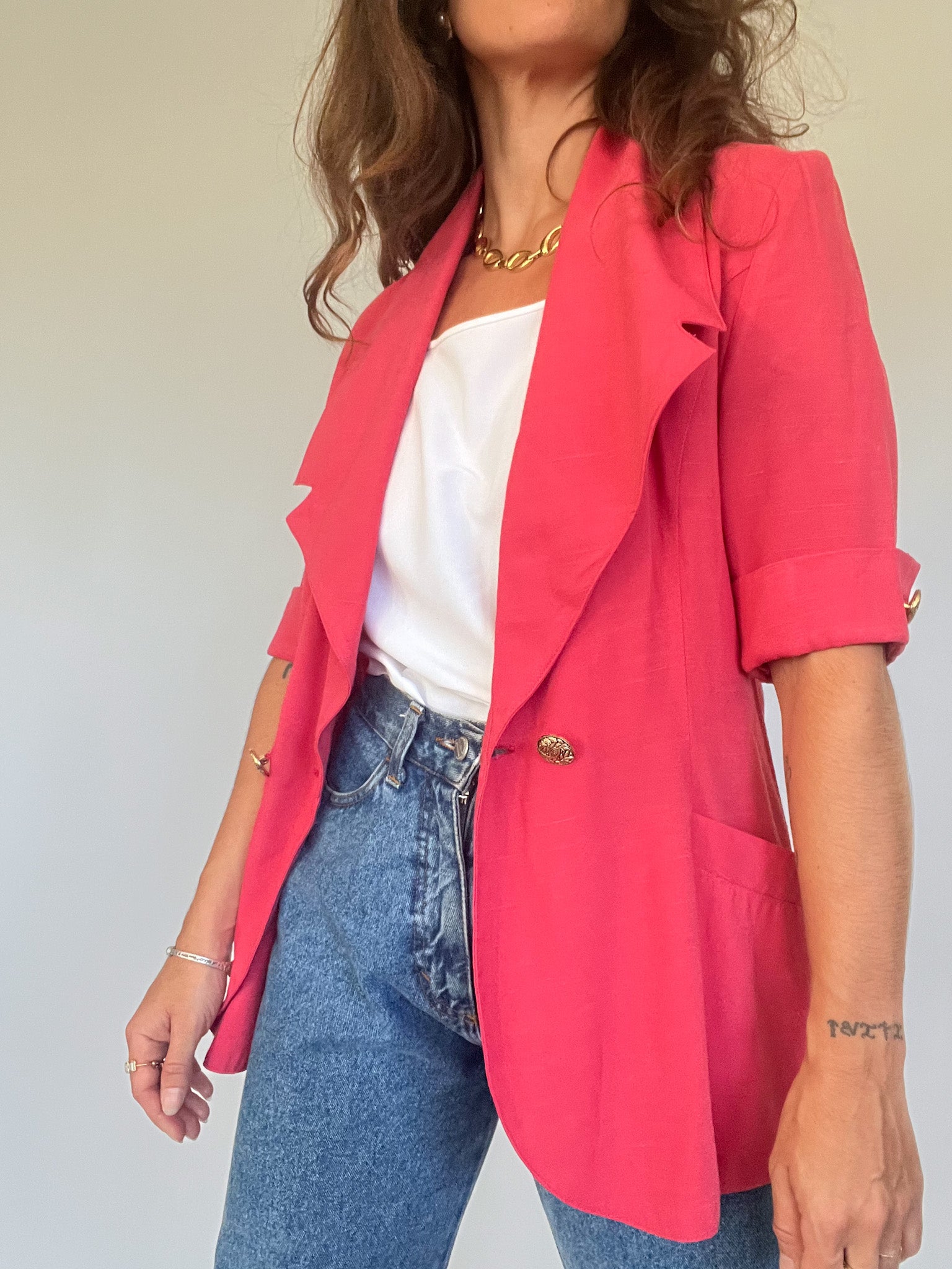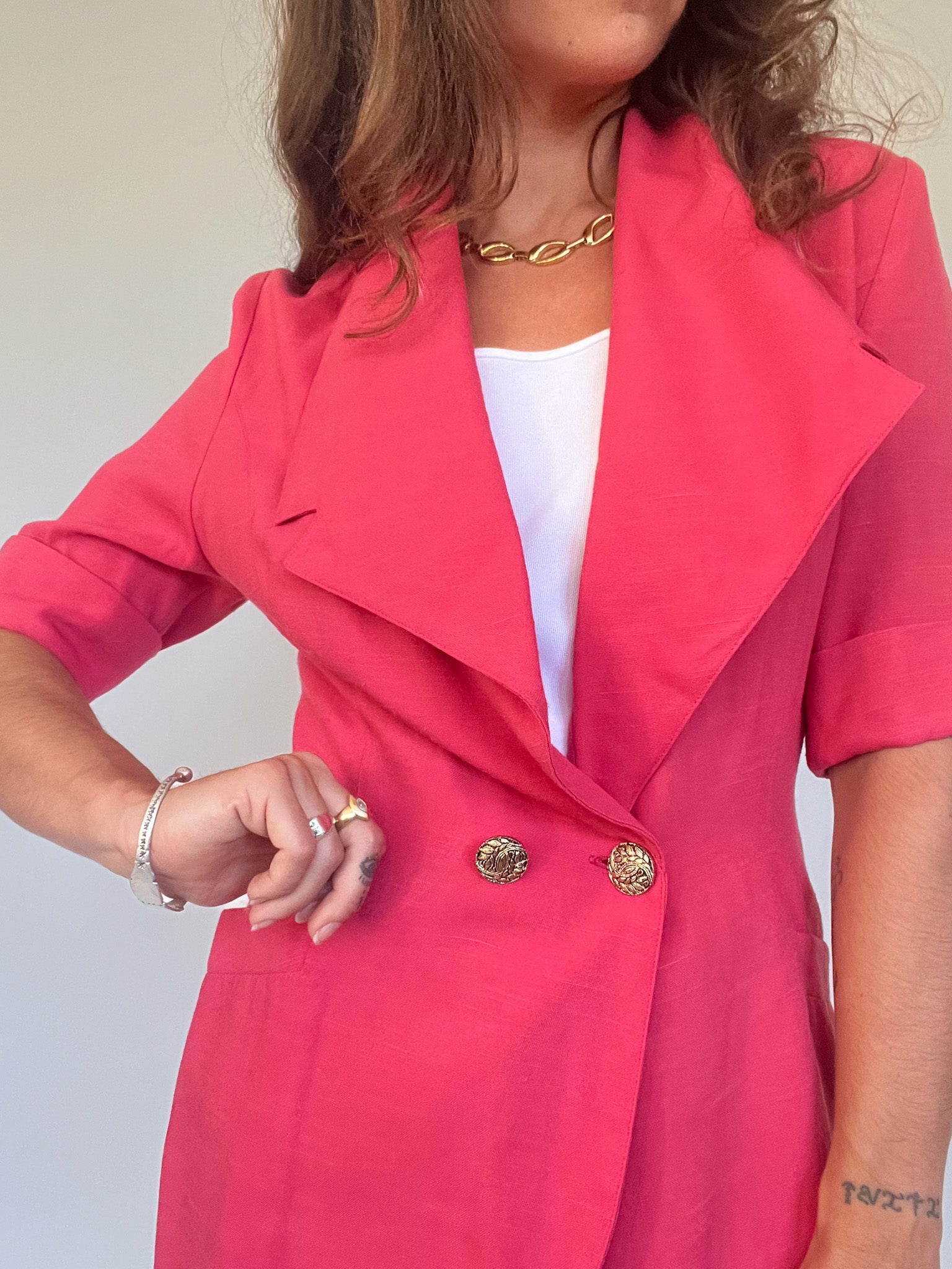 Vintage 90’s Coral Pink Linen-Blend Blazer with Gold Buttons