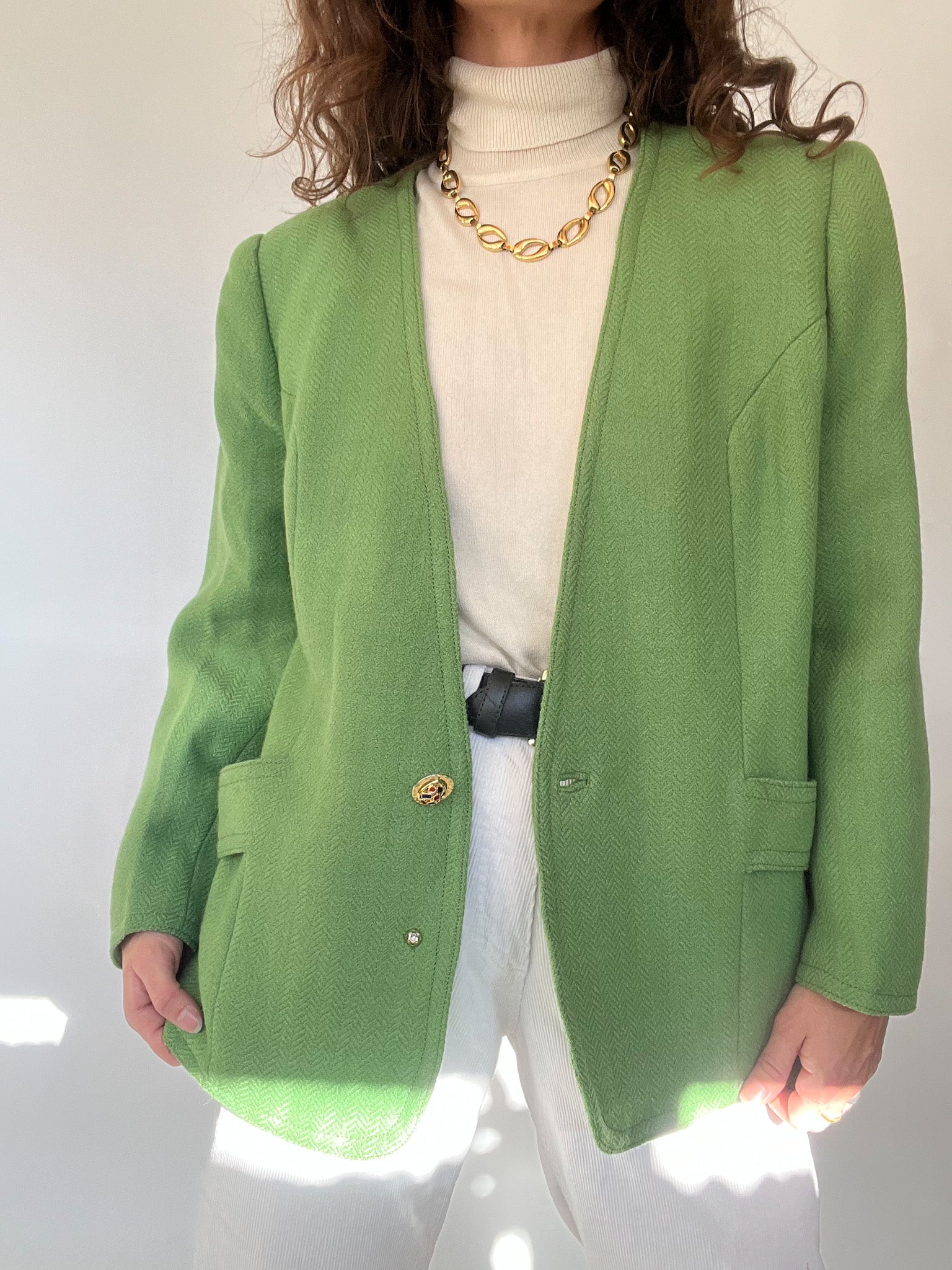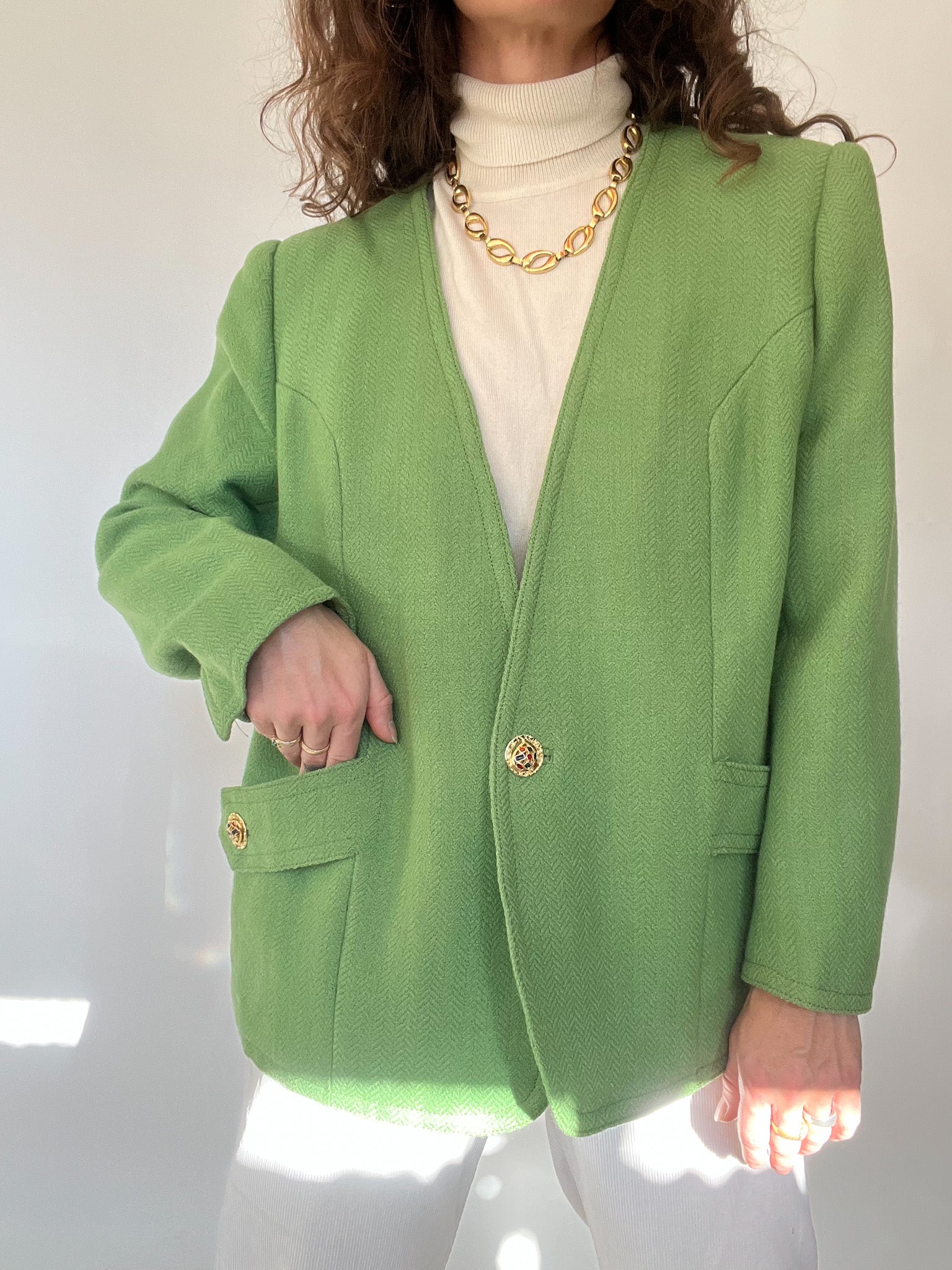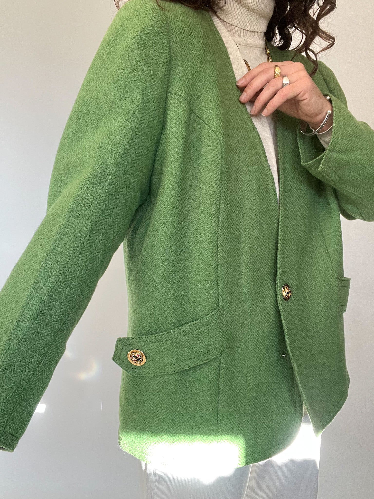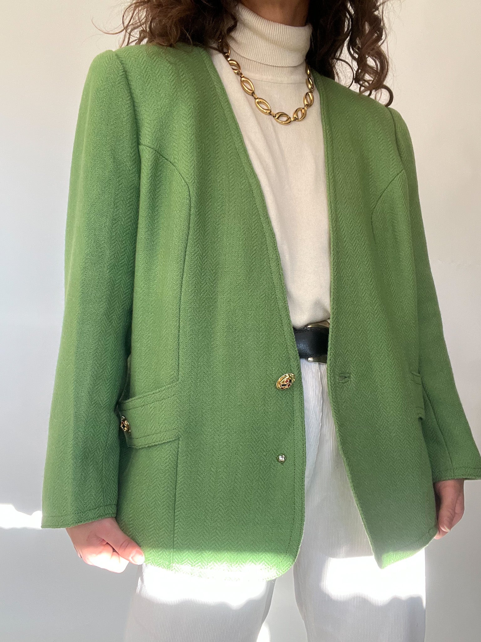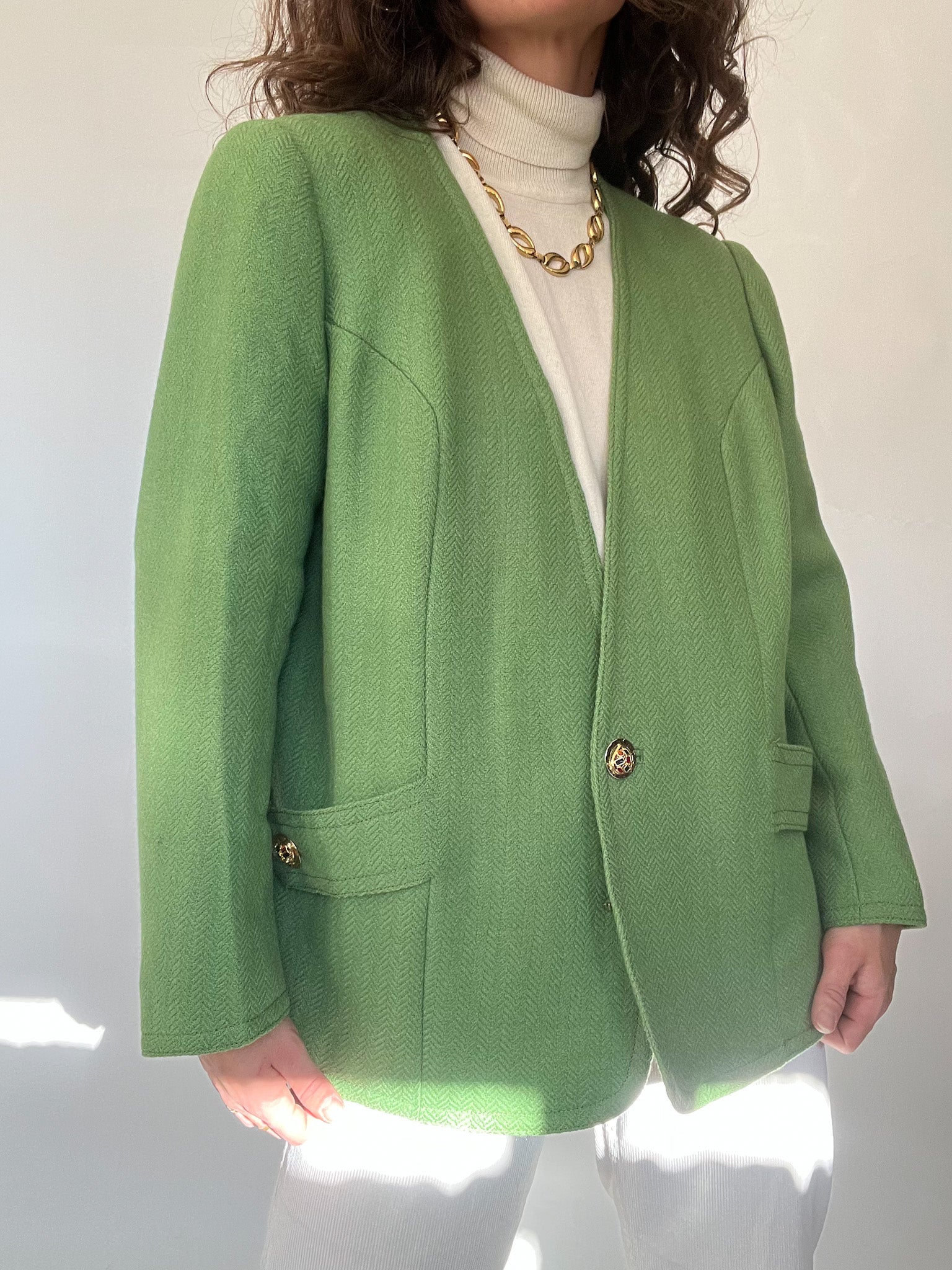 Vintage 90’s Khaki Herringbone Wool Blend Blazer