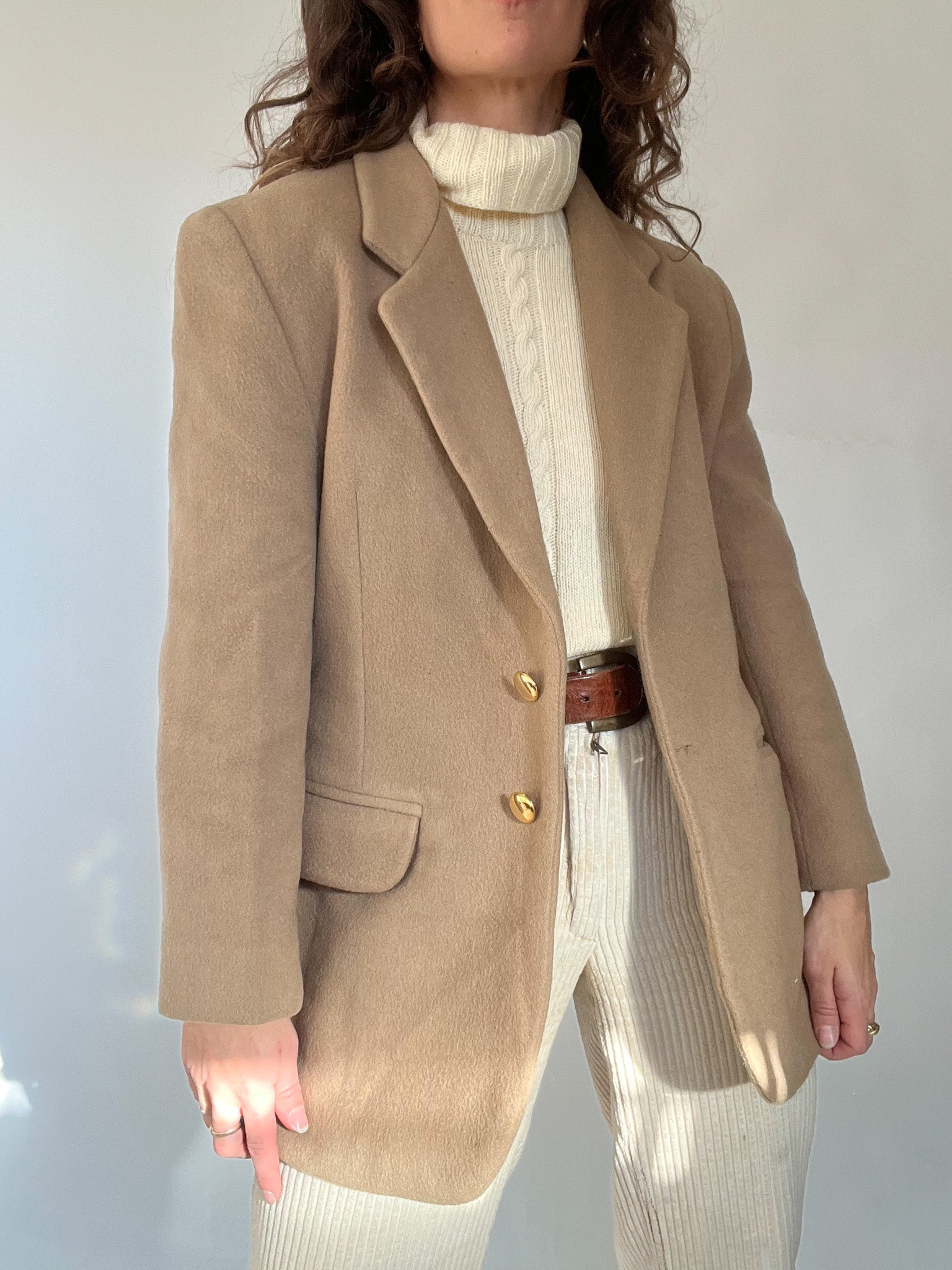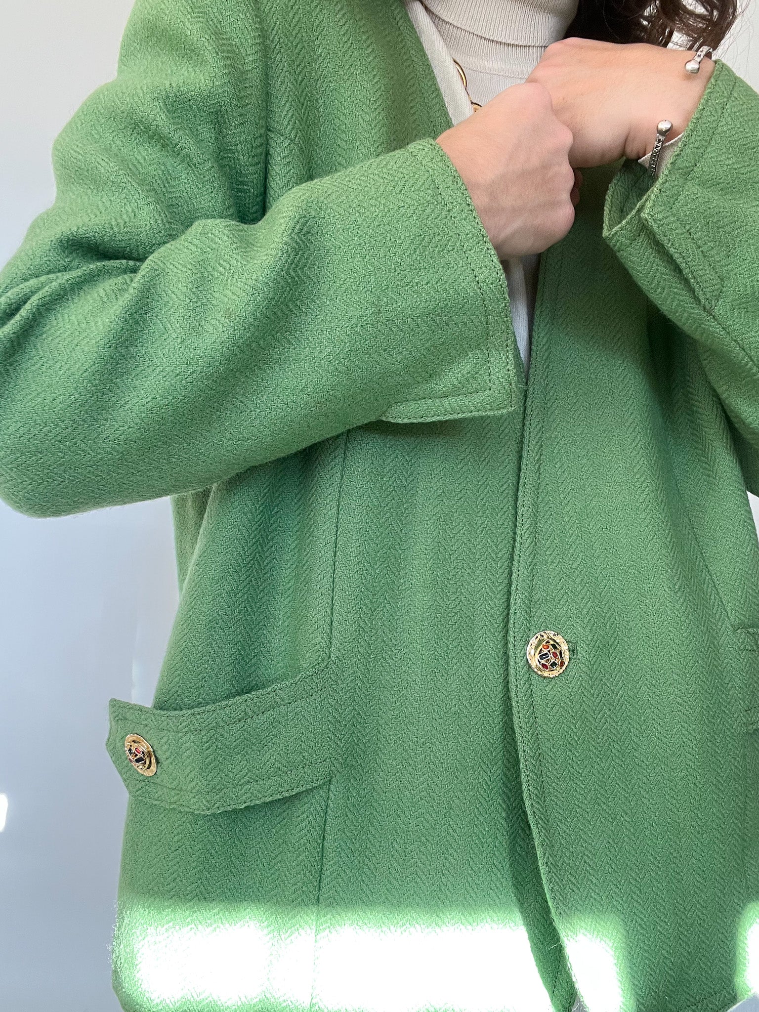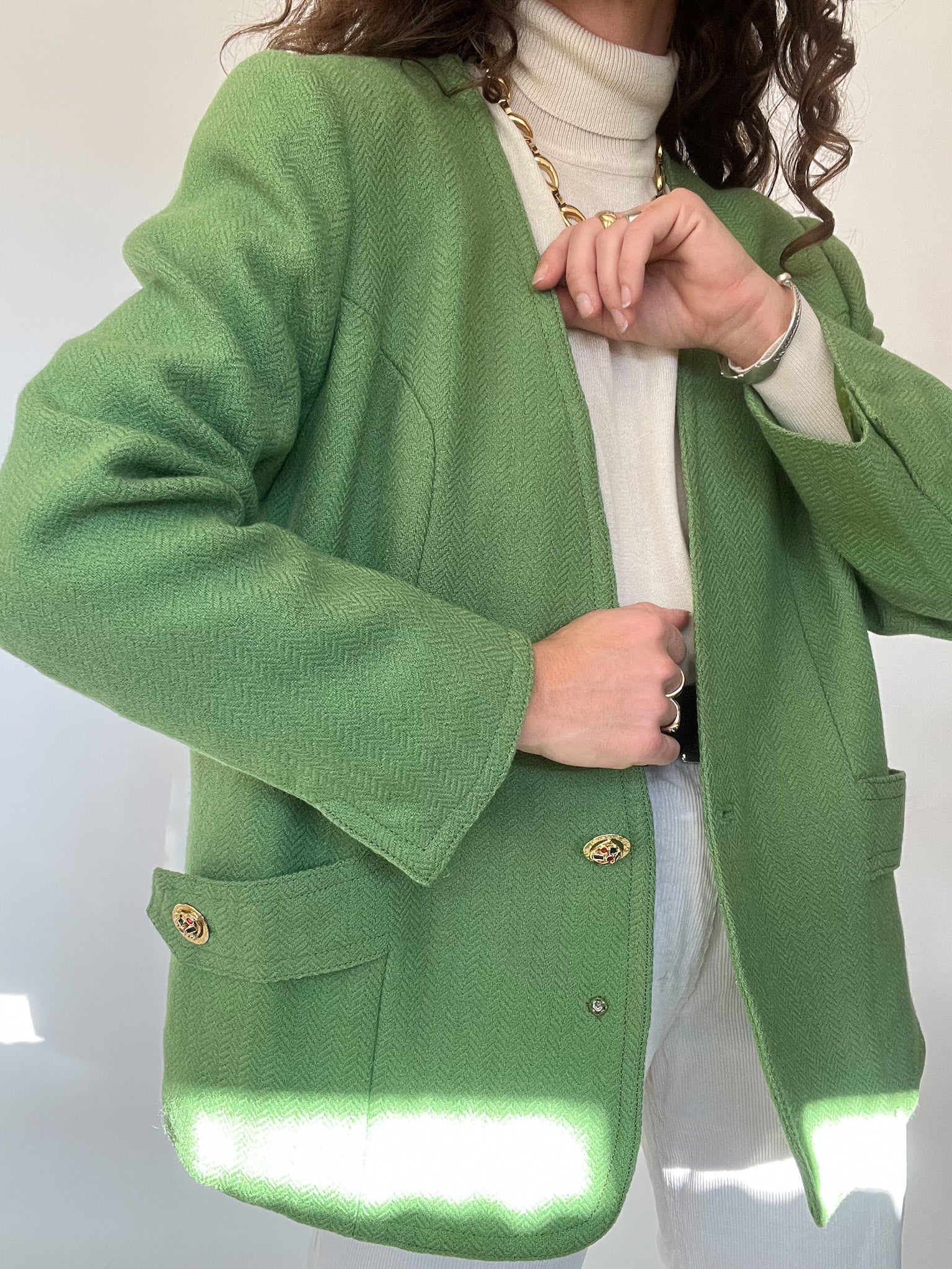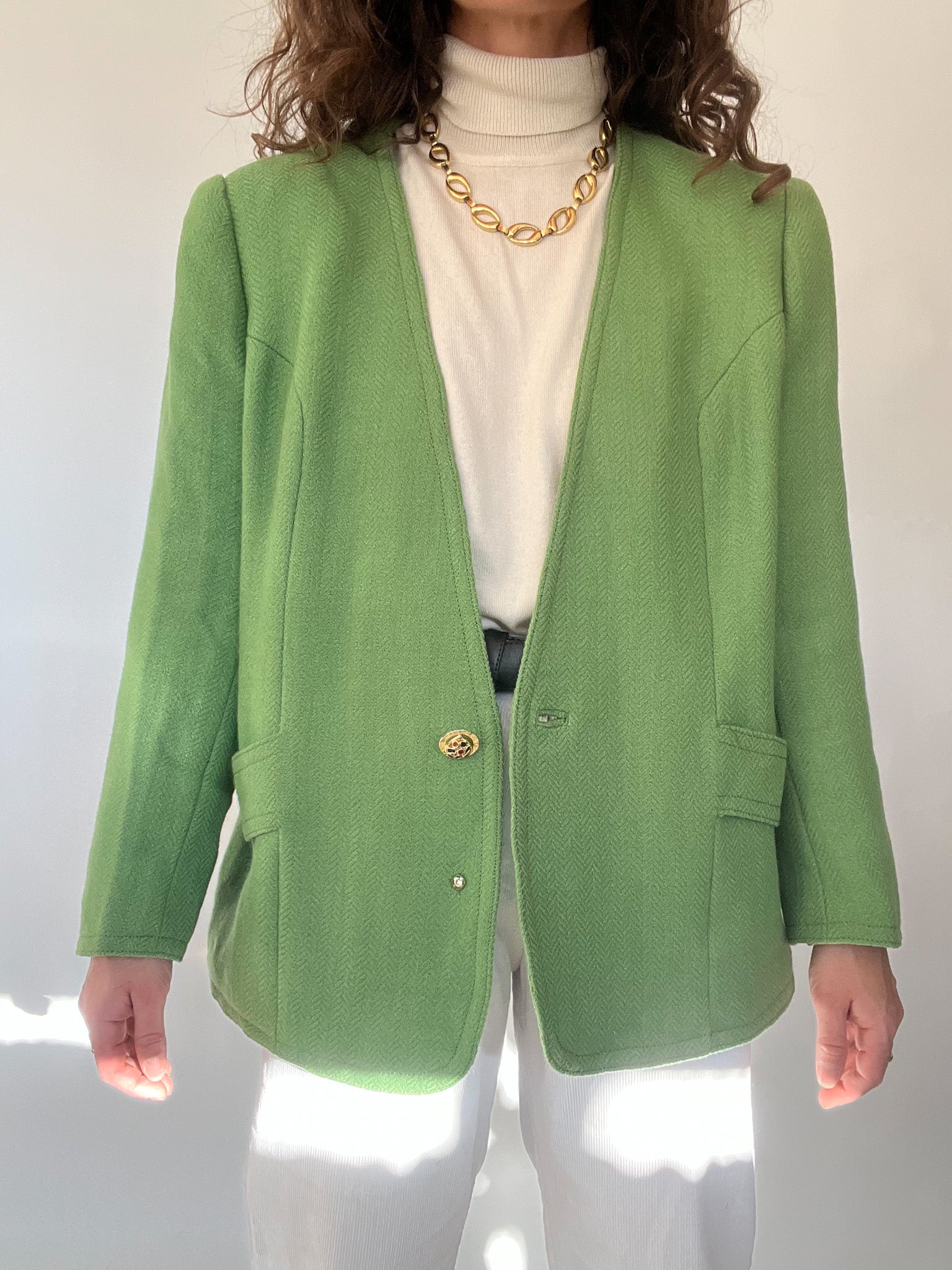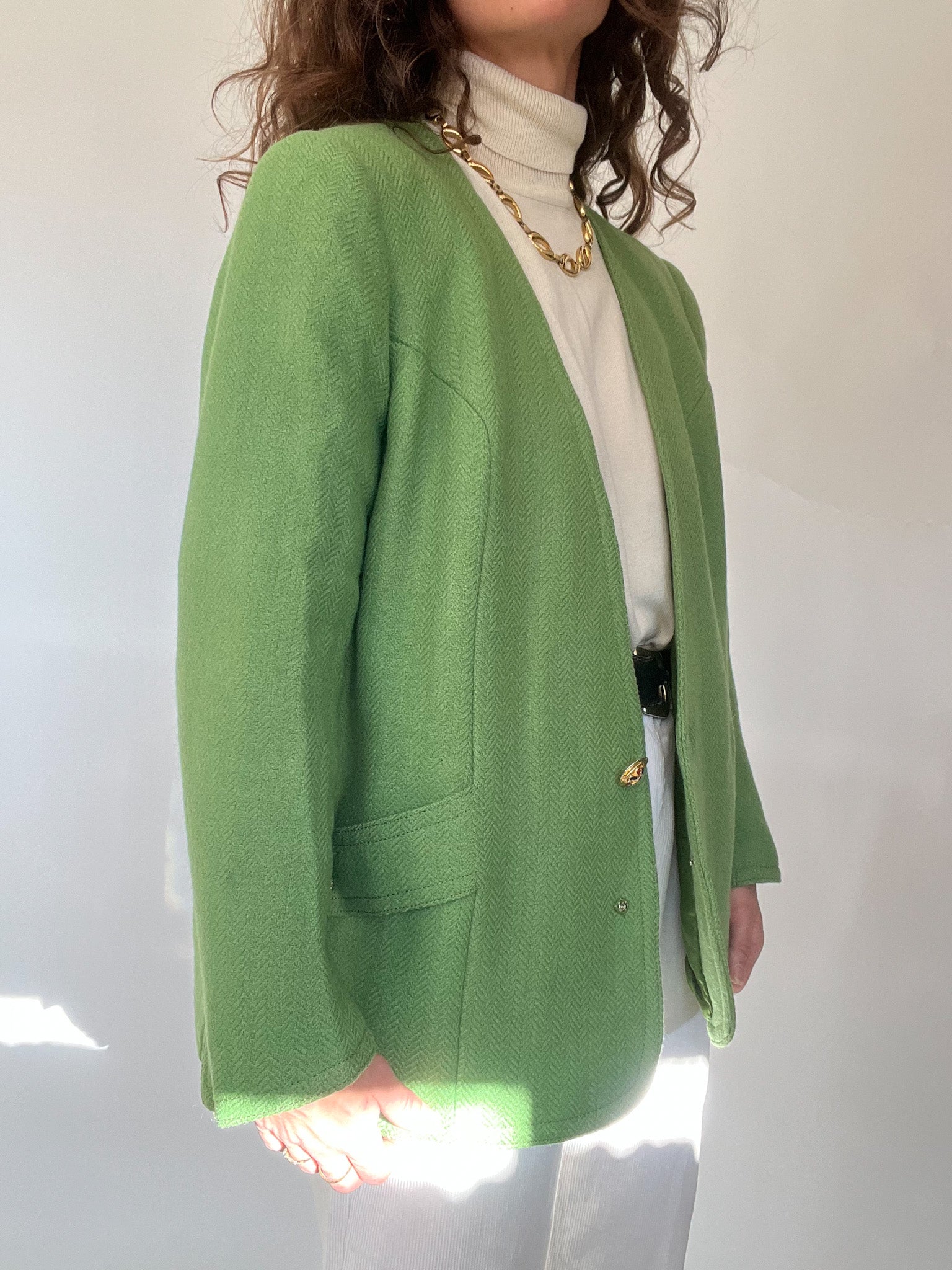Vintage 90’s Khaki Herringbone Wool Blend Blazer