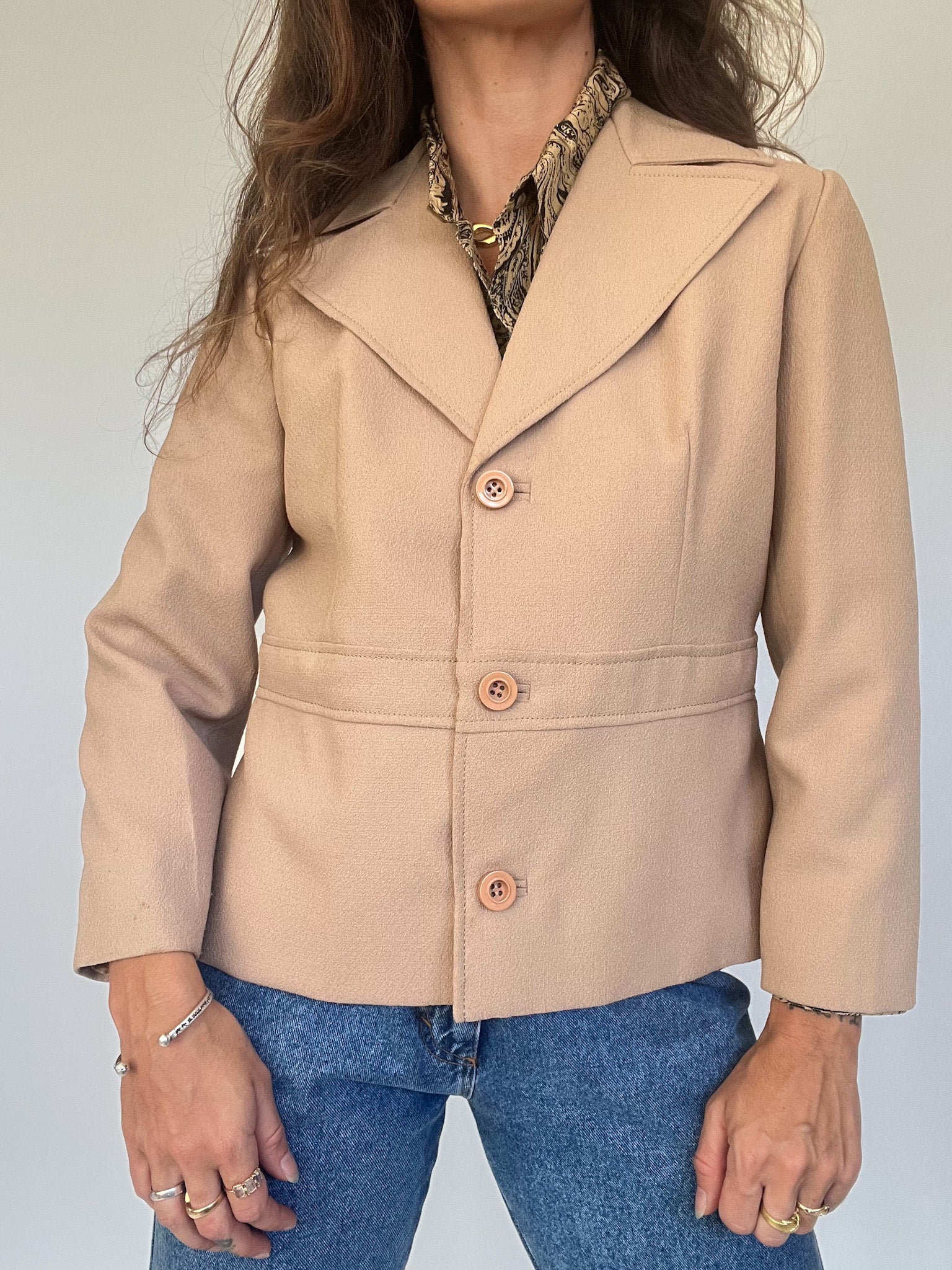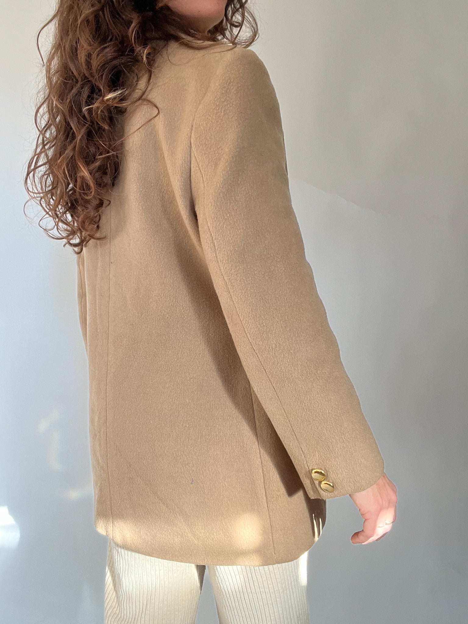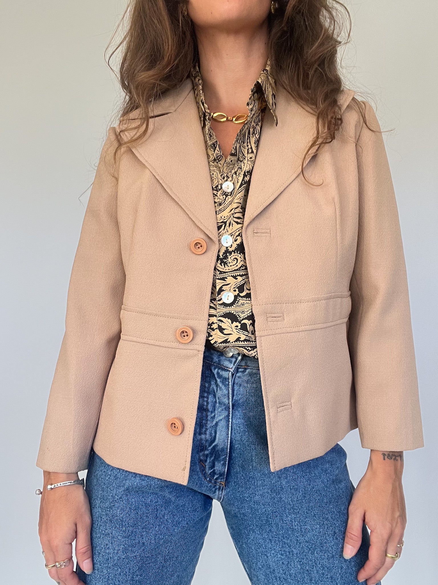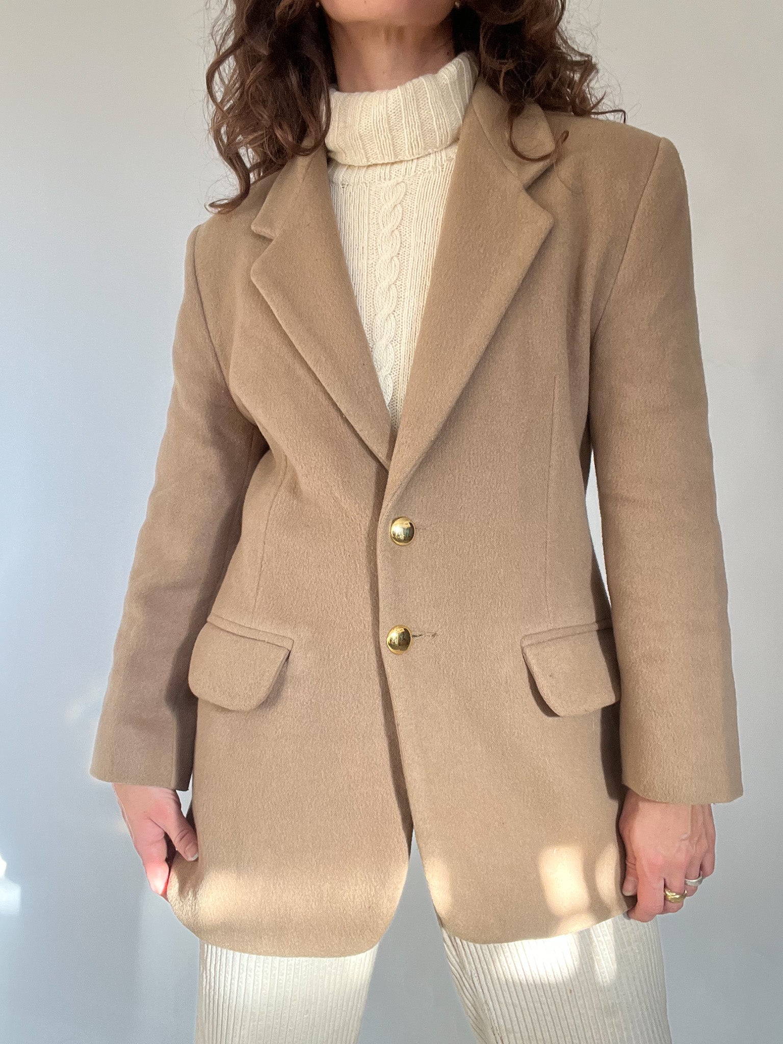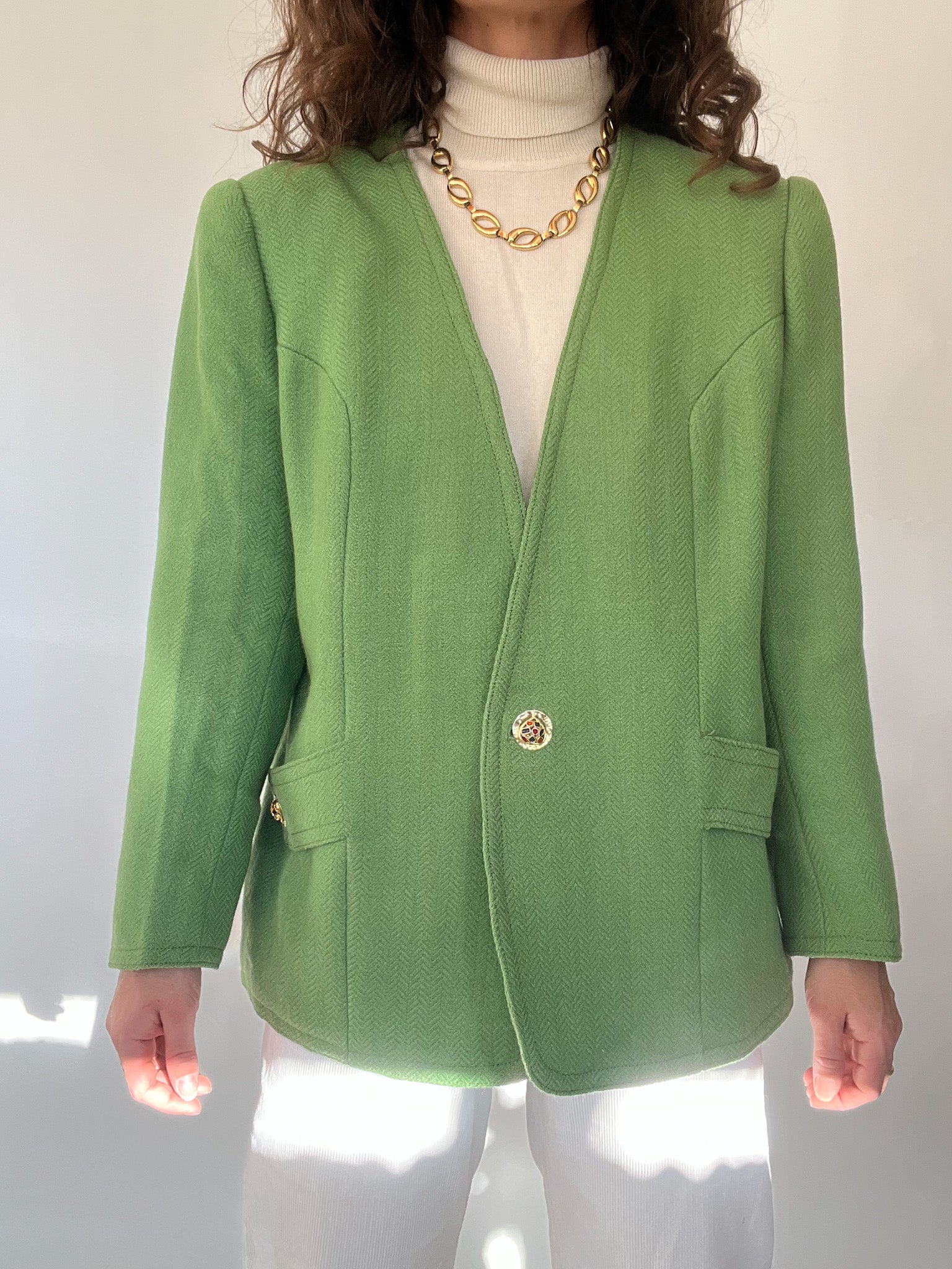 Vintage 90’s Khaki Herringbone Wool Blend Blazer
