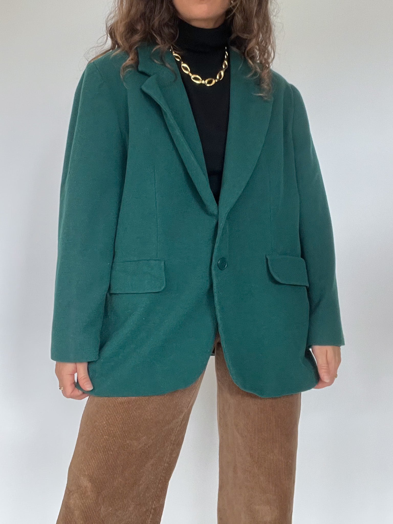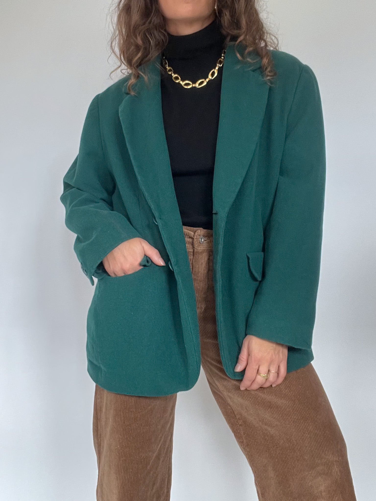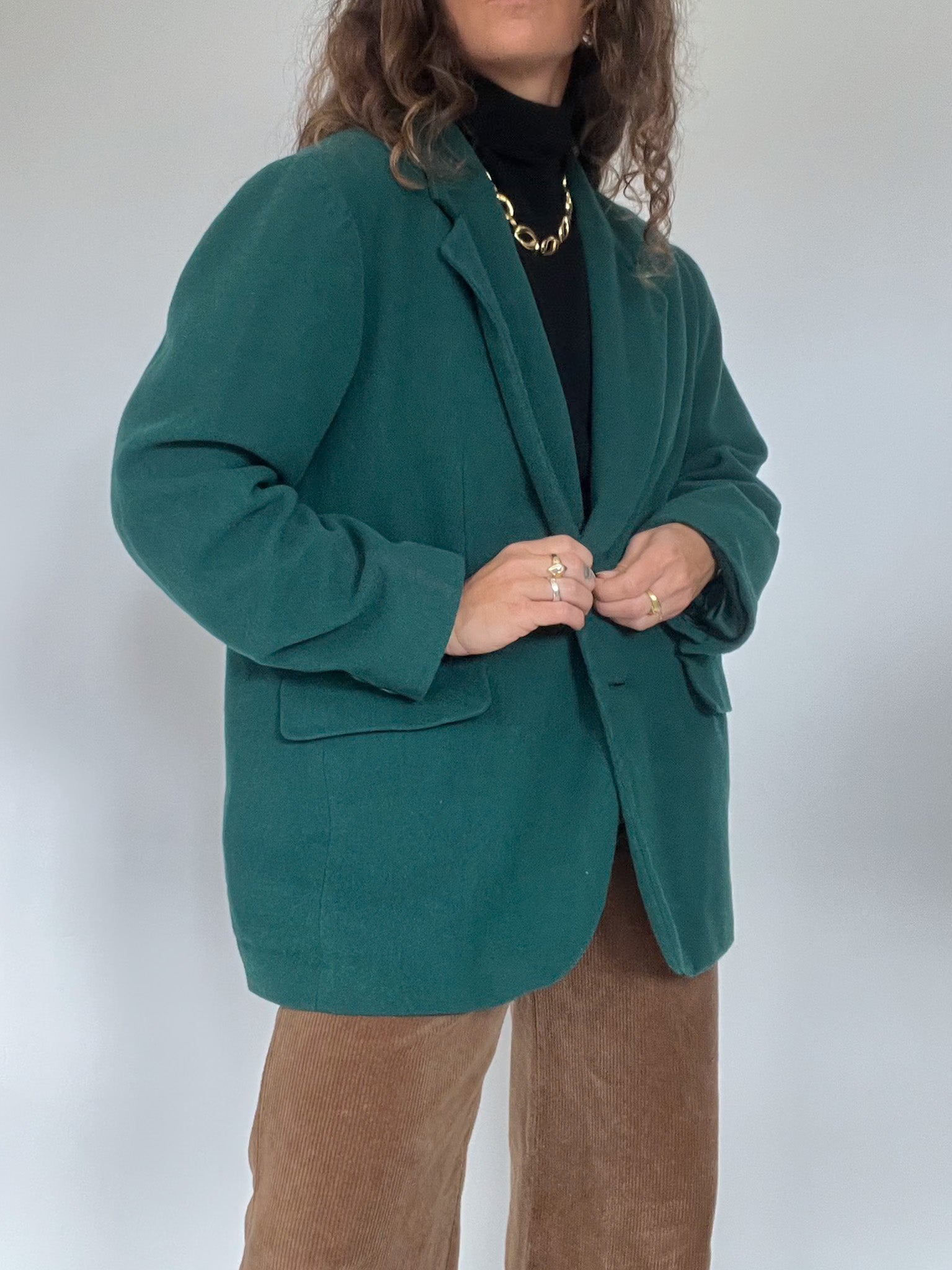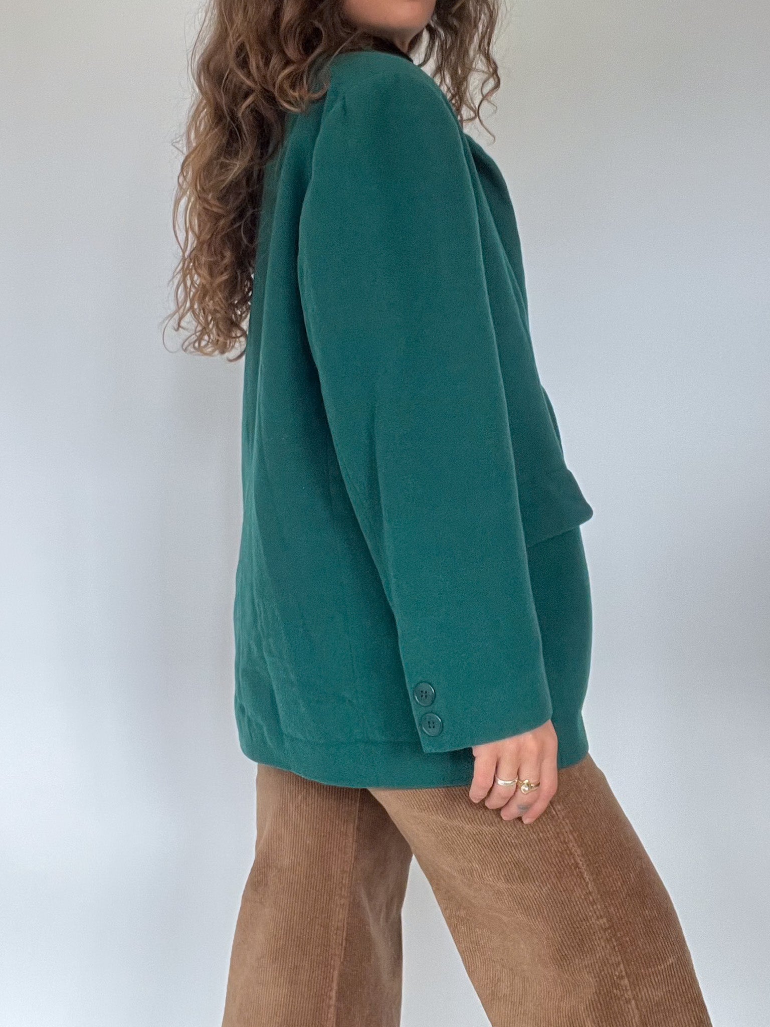 Vintage 80’s Deep Teal Wool Blend Oversized Blazer