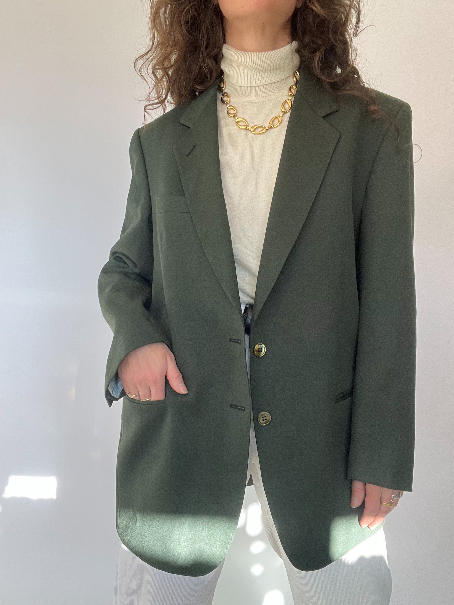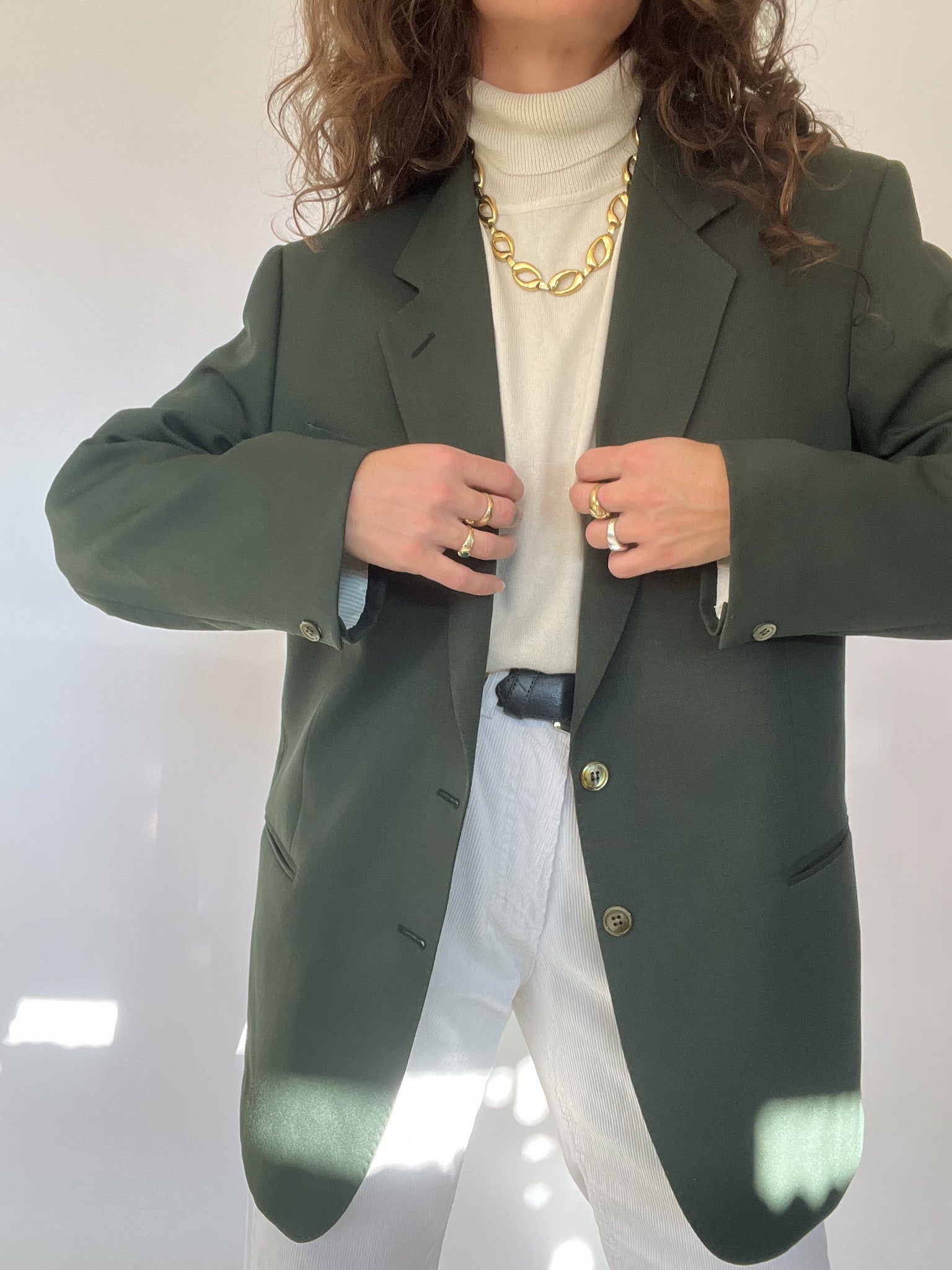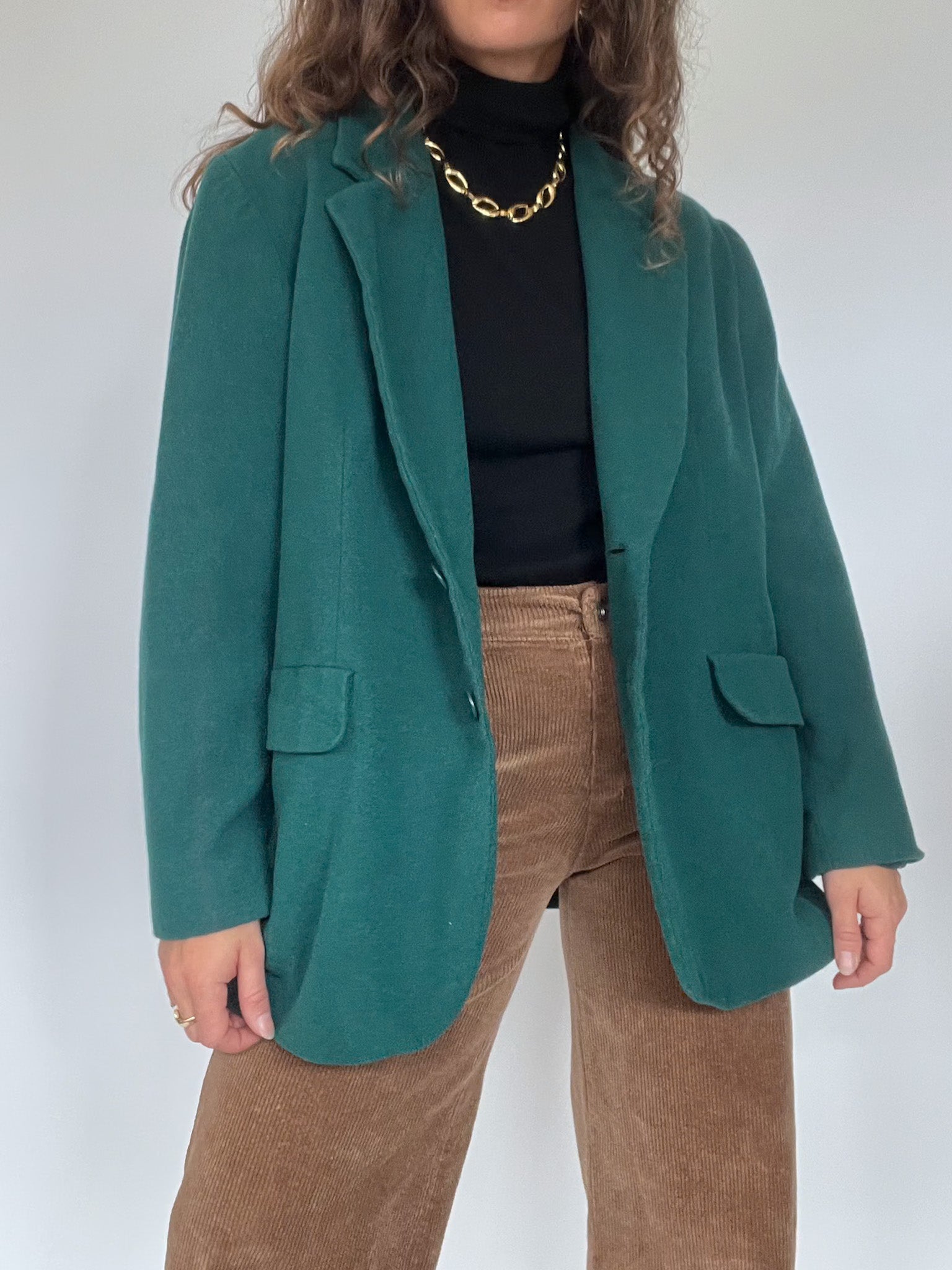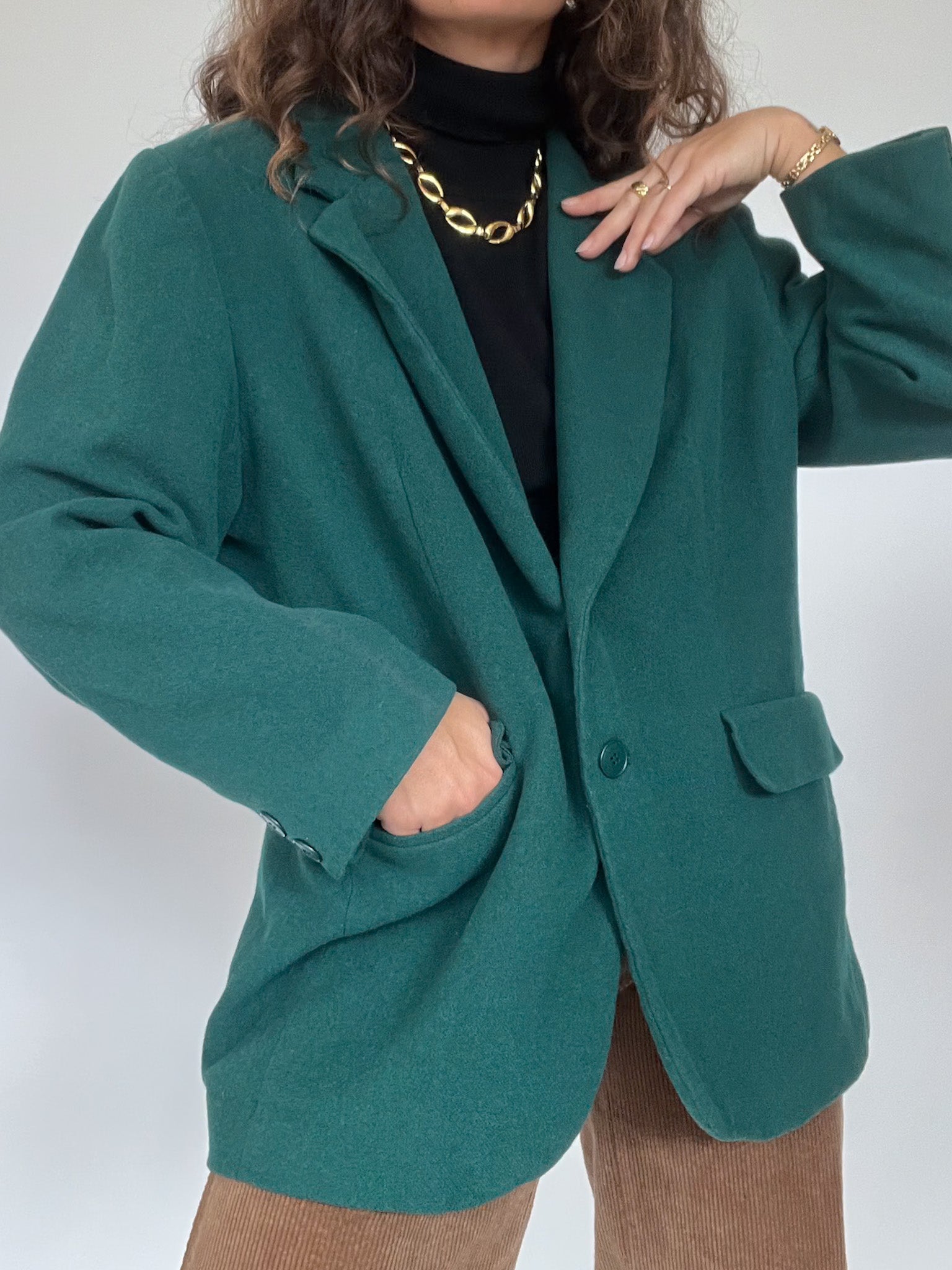 Vintage 80’s Deep Teal Wool Blend Oversized Blazer
