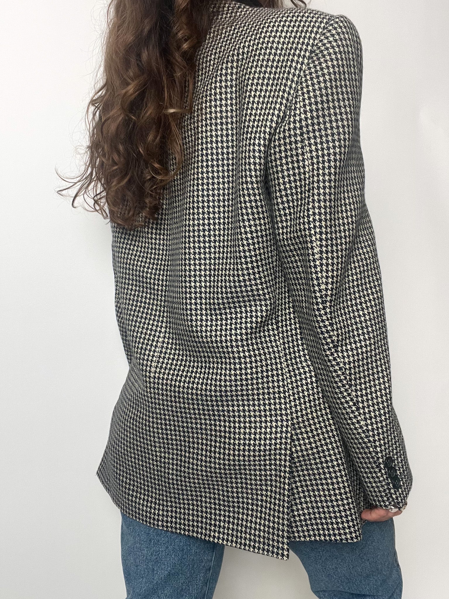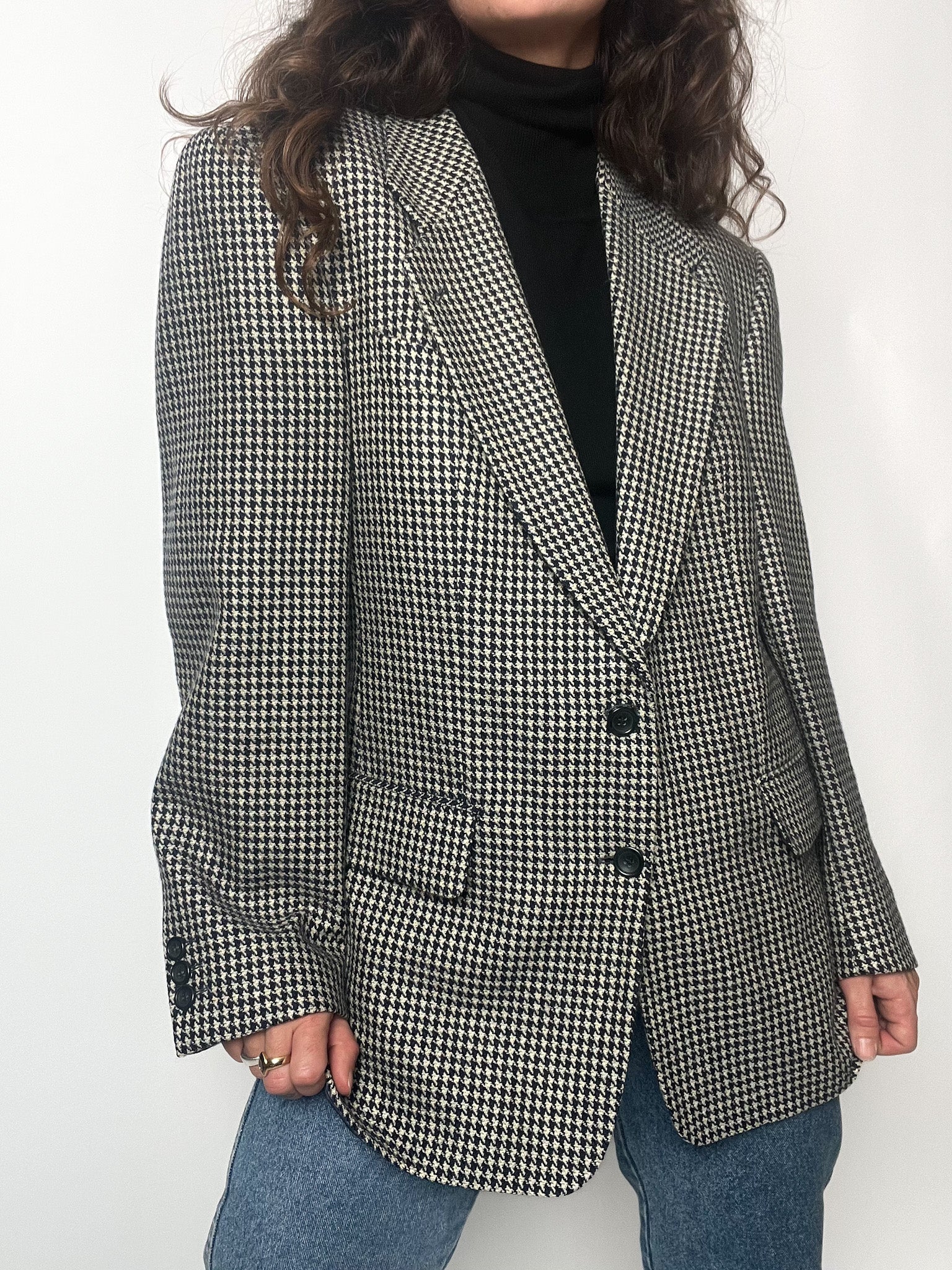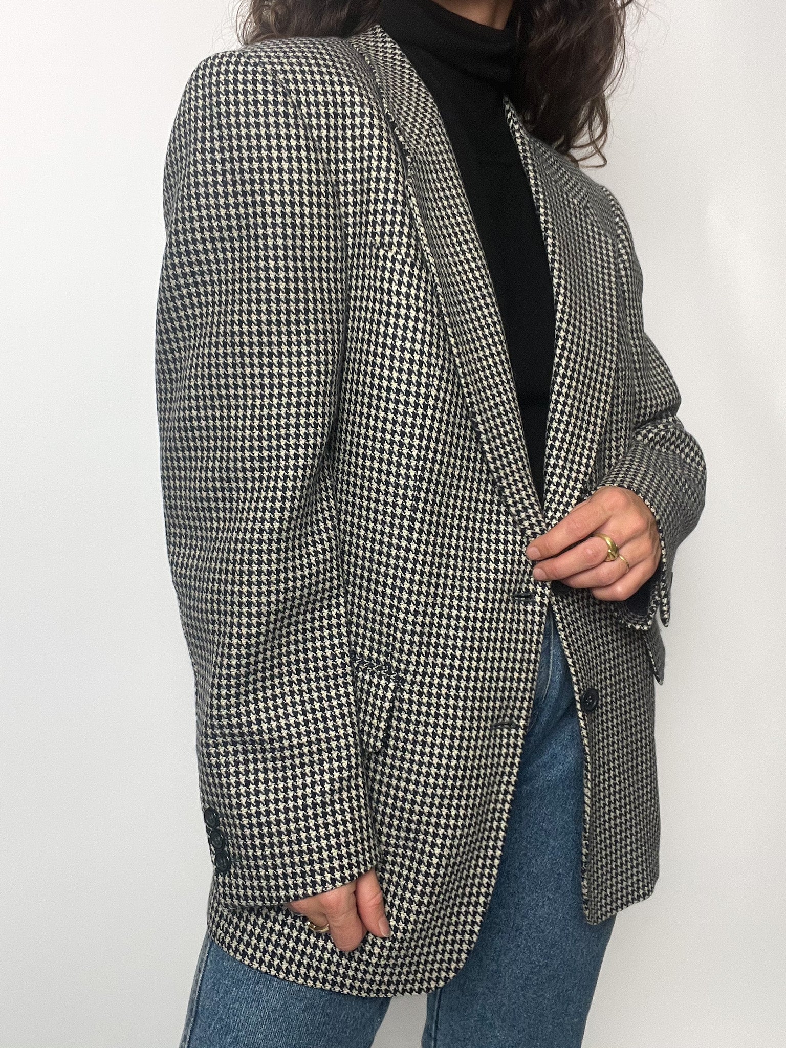 Vintage 80’s Black & Cream Houndstooth Wool Blazer