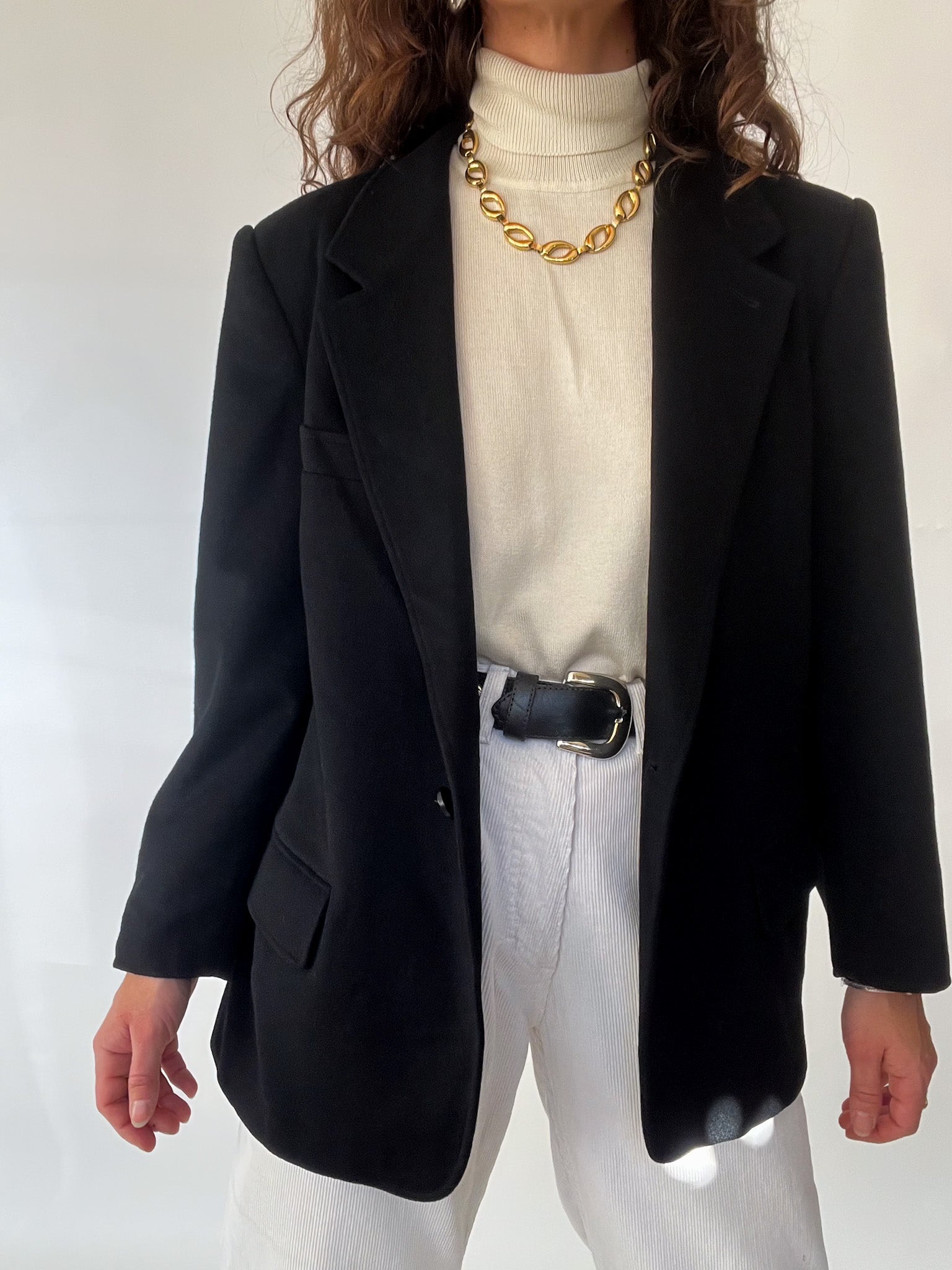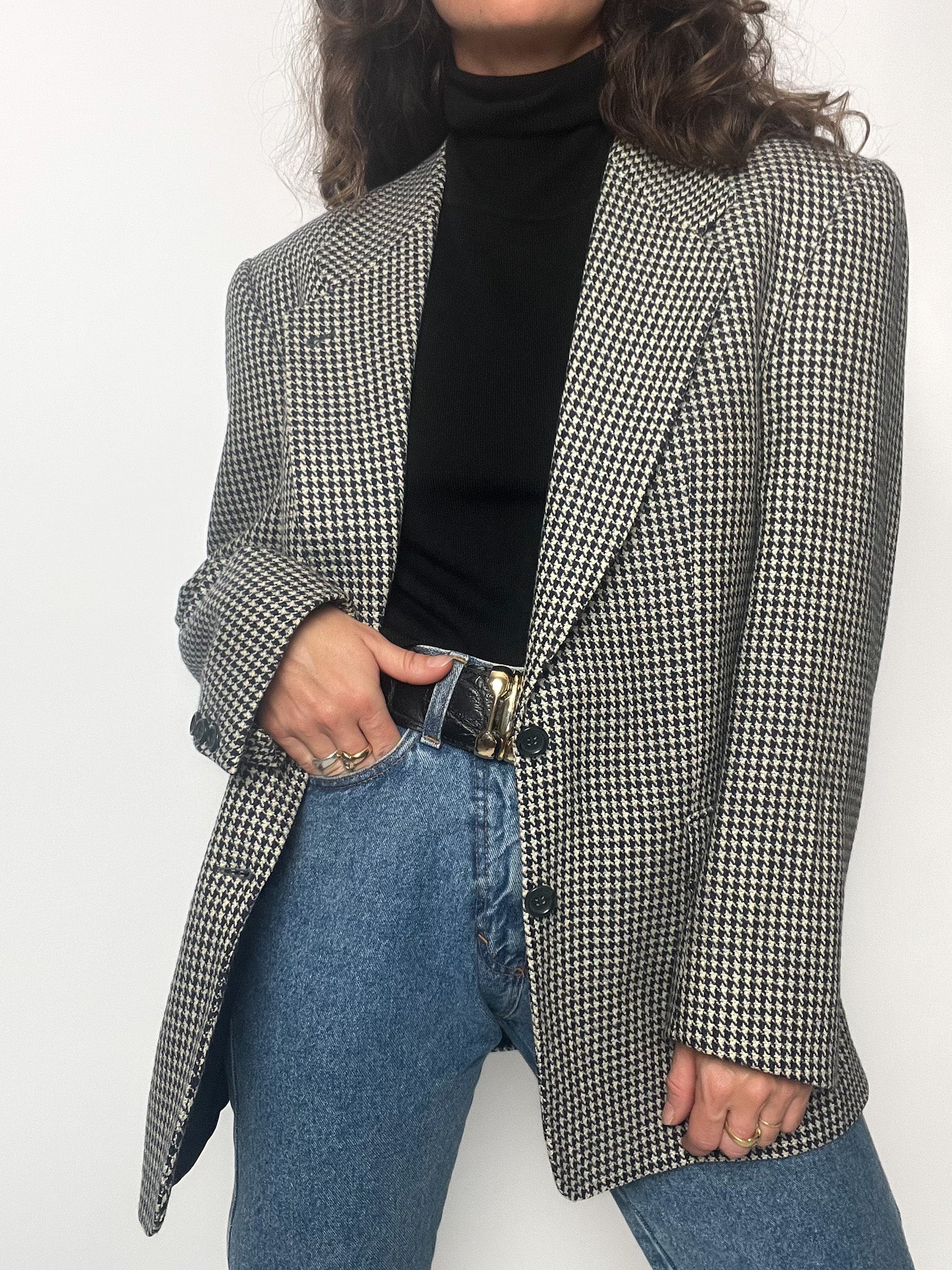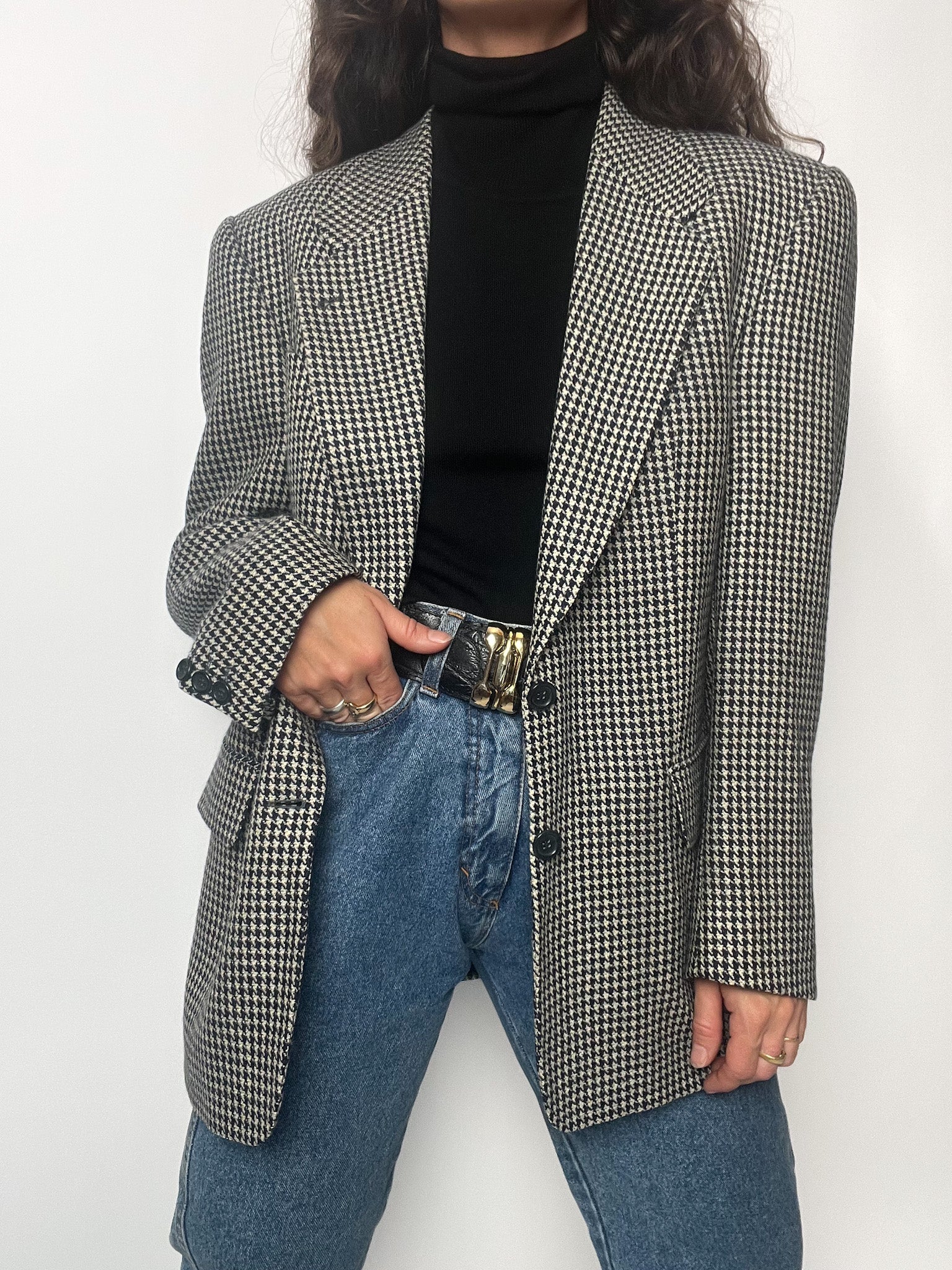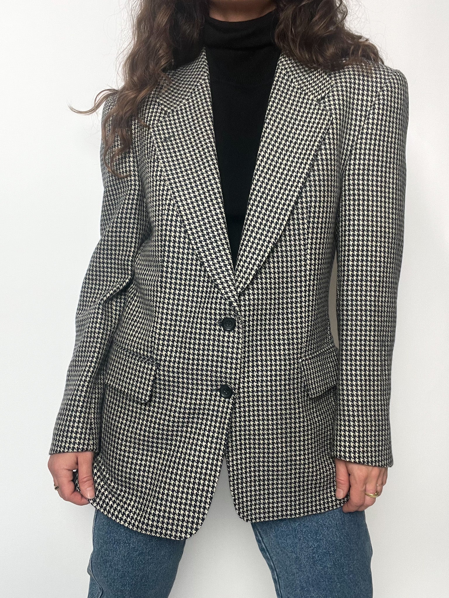 Vintage 80’s Black & Cream Houndstooth Wool Blazer