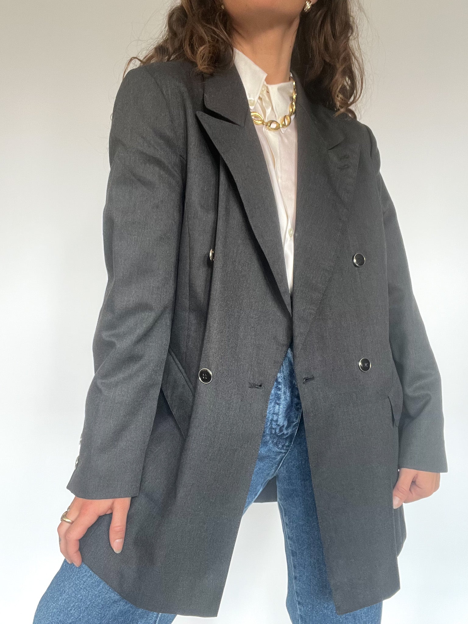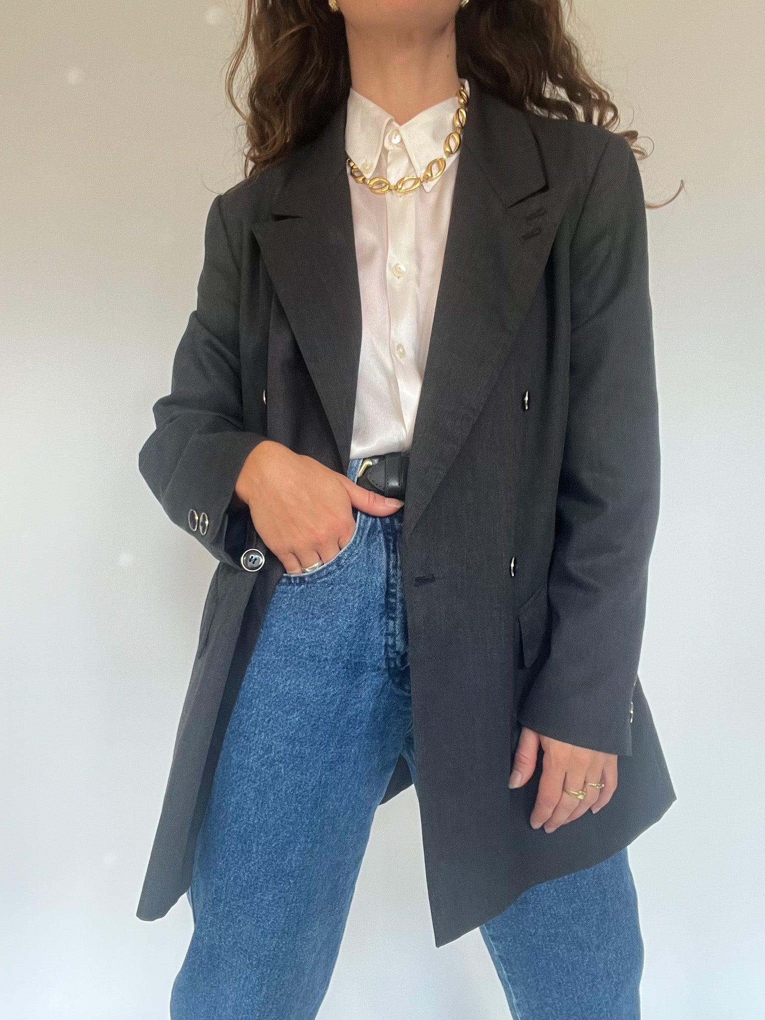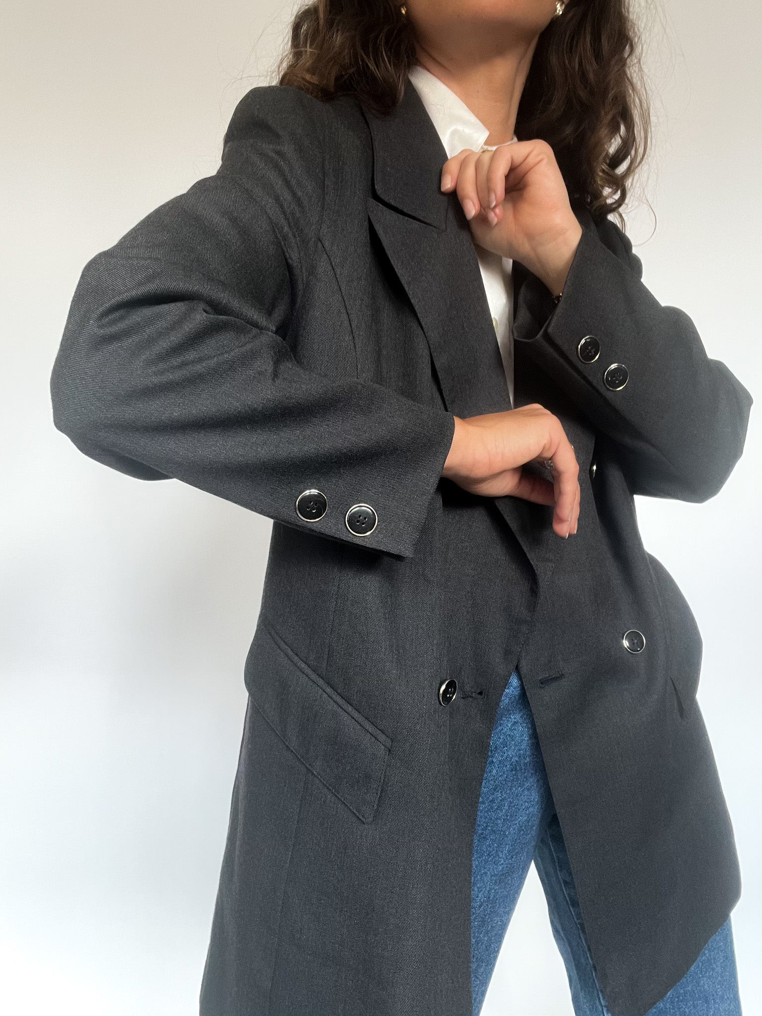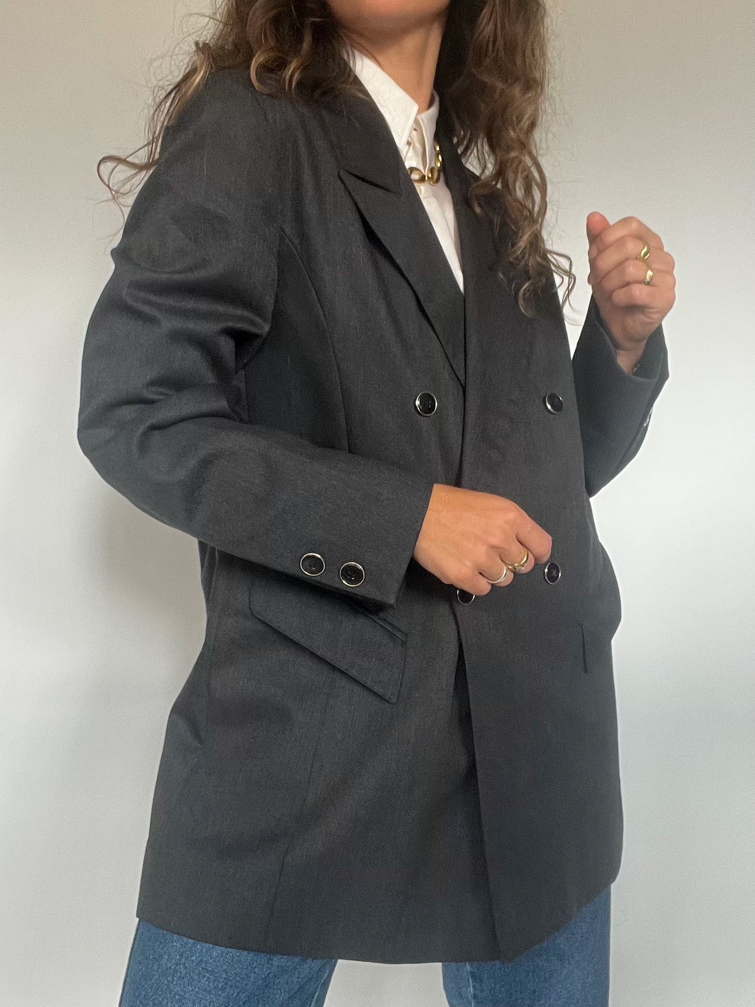 Vintage 80’s Charcoal Grey Blazer with black buttons