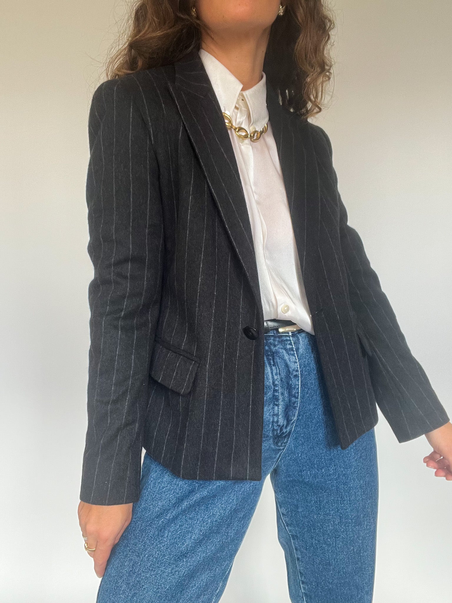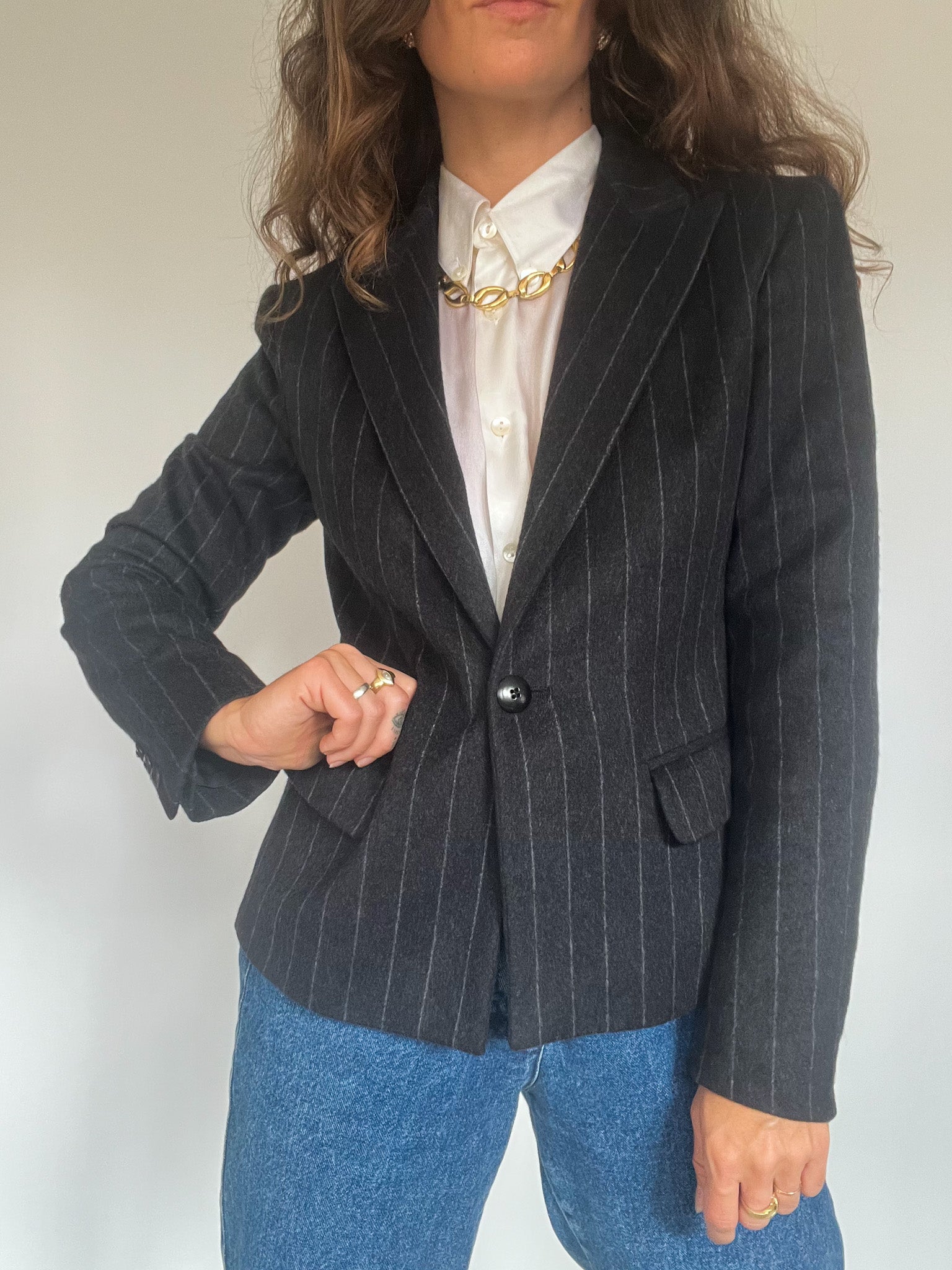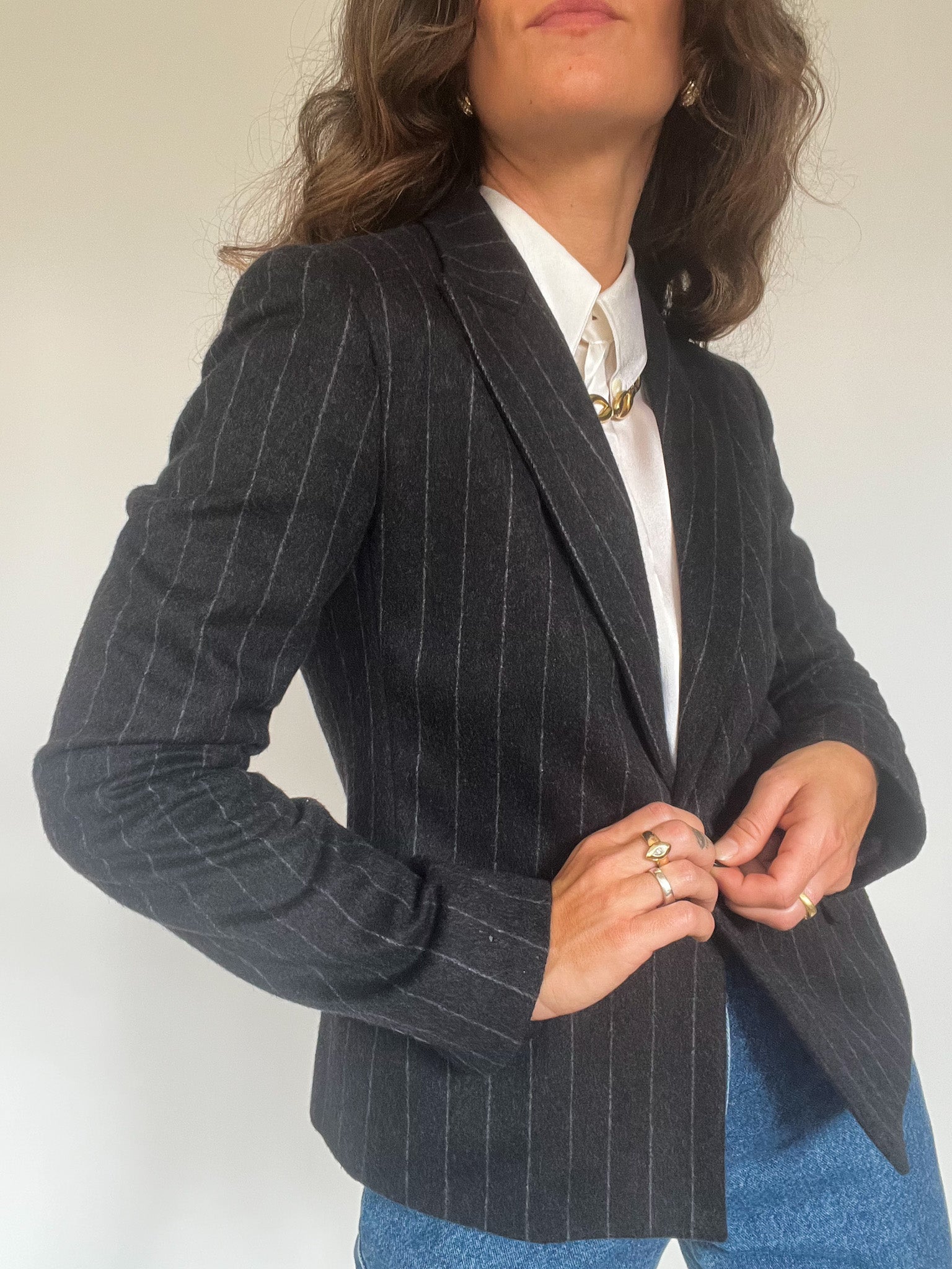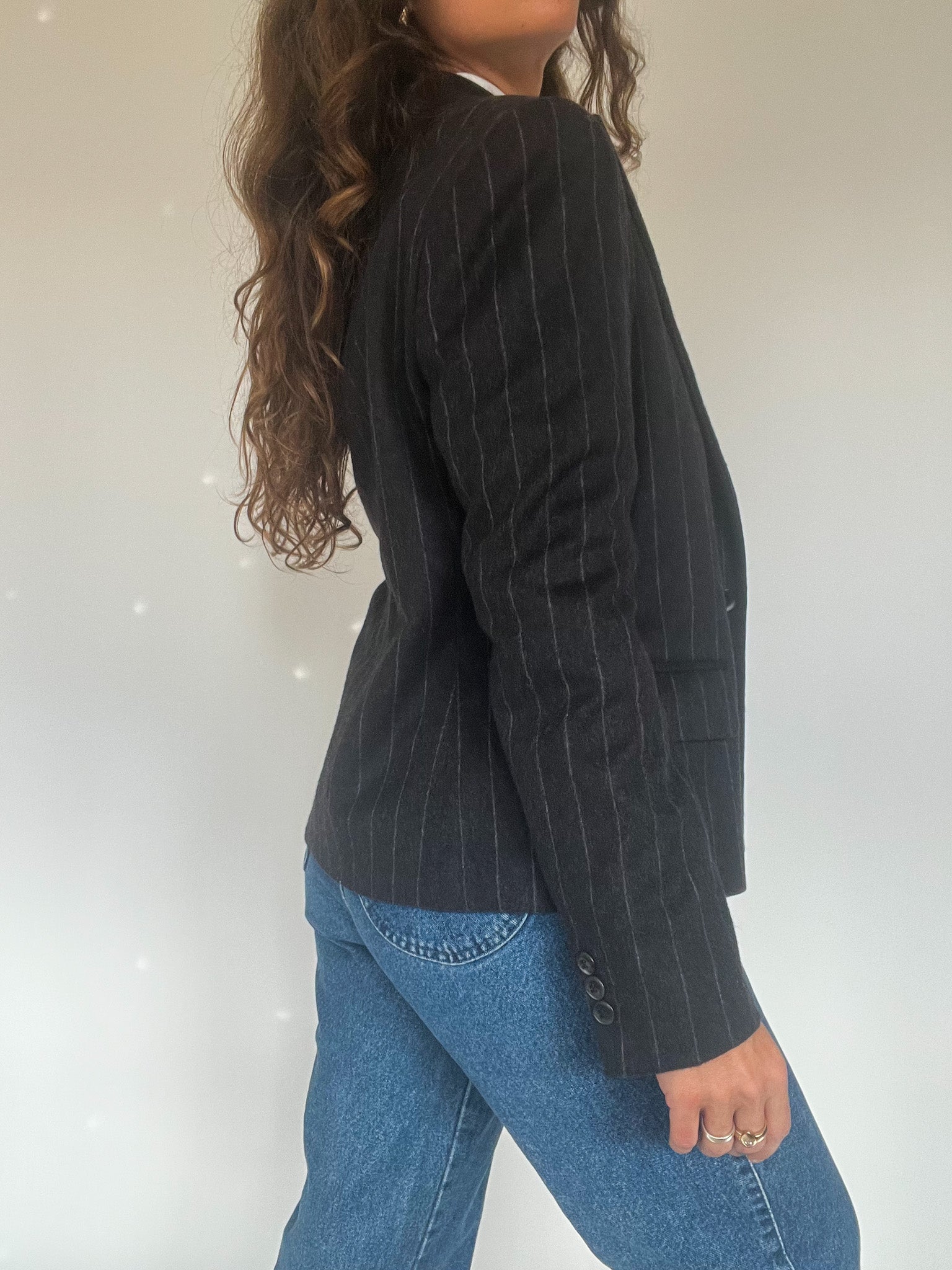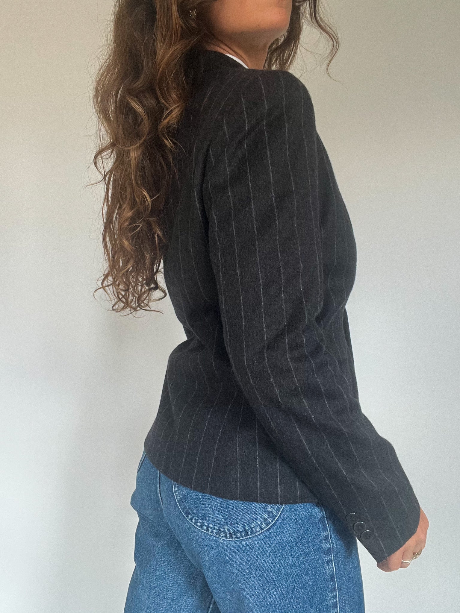 Vintage 90’s MaxMara Charcoal Pinstripe Wool & Cashmere Blazer