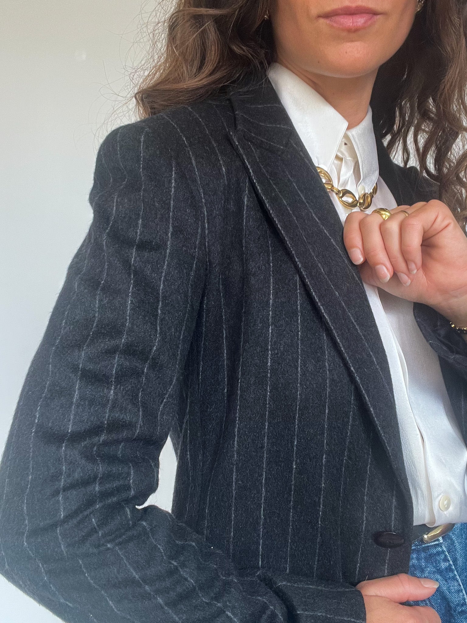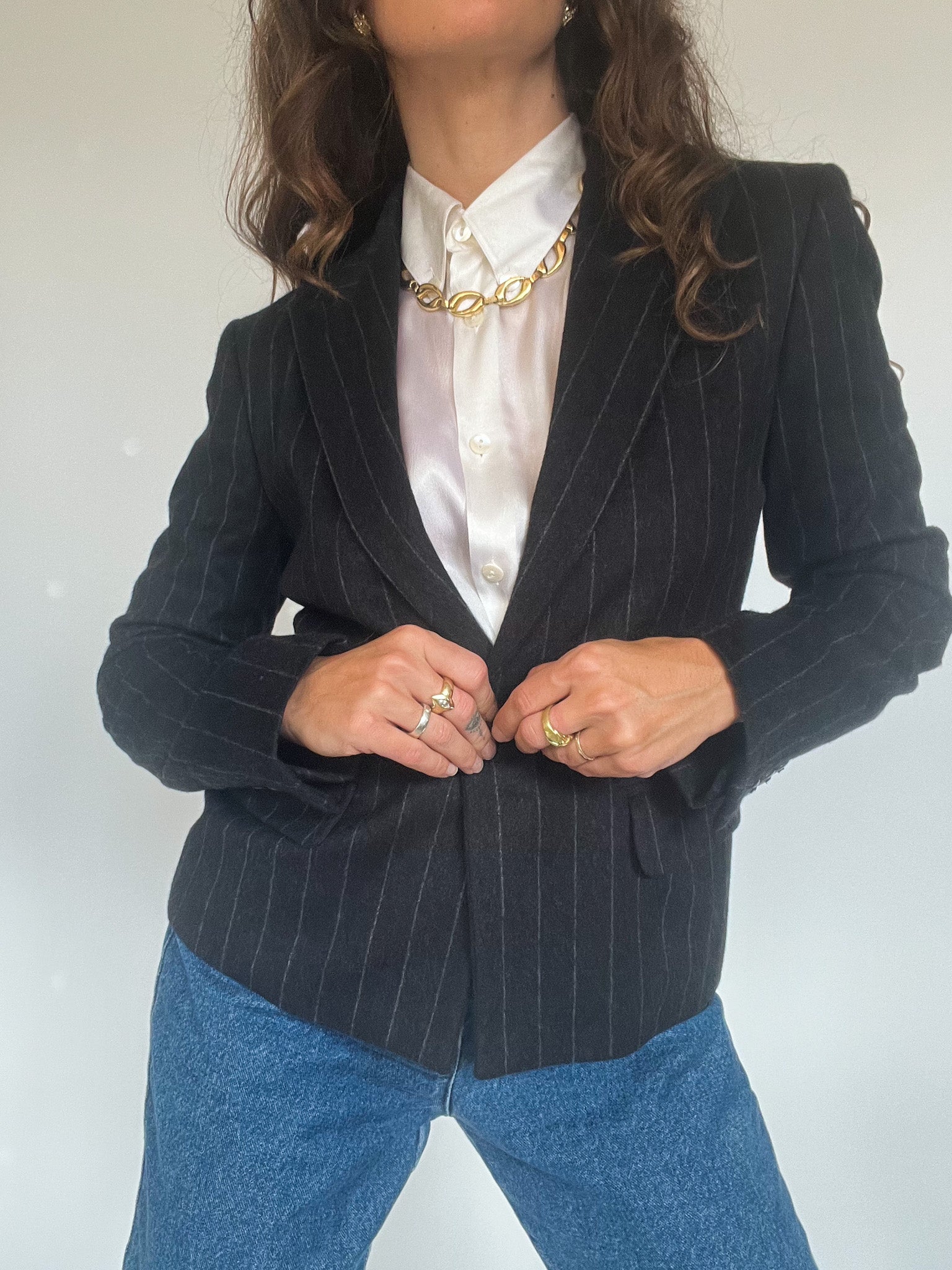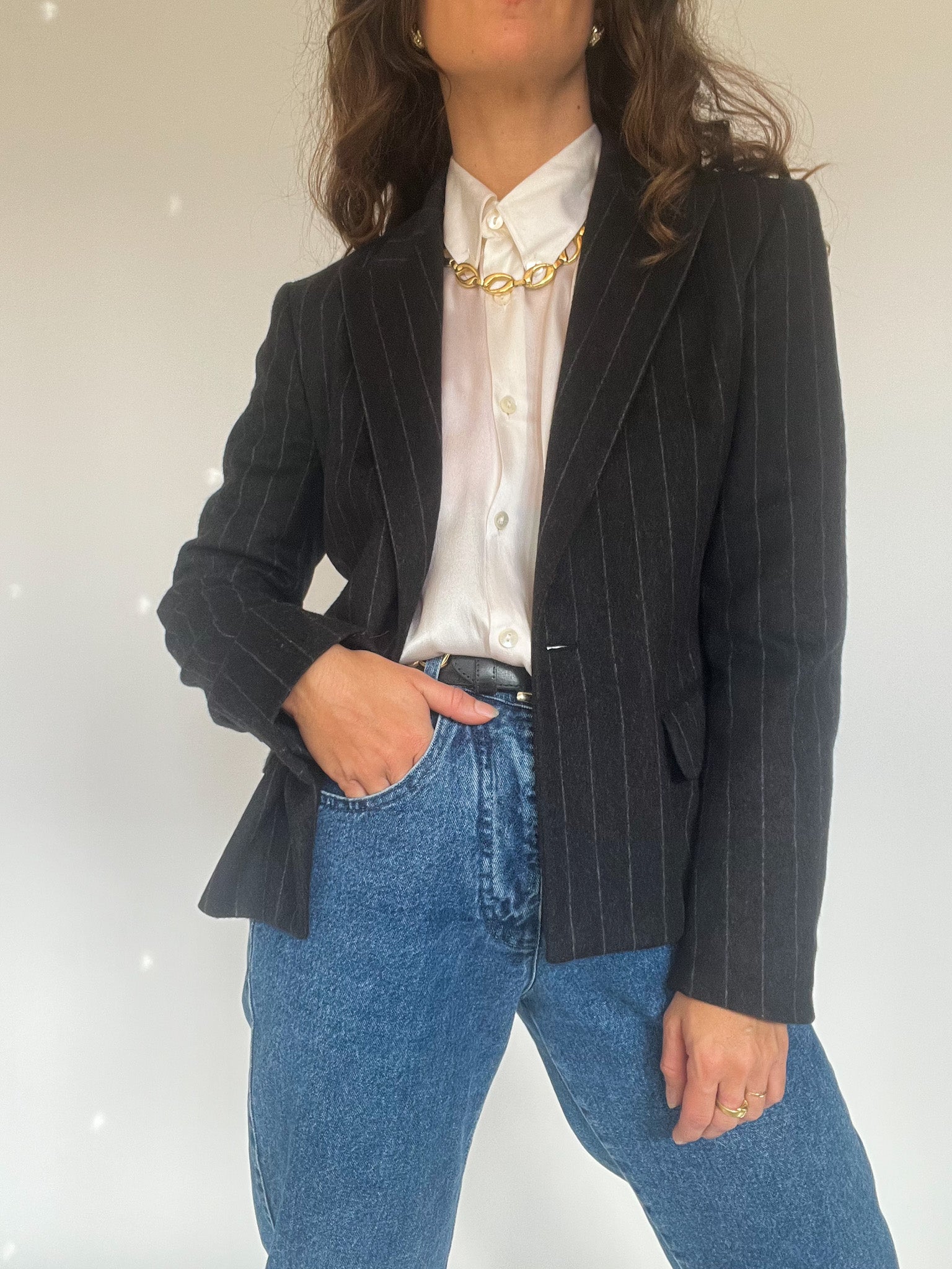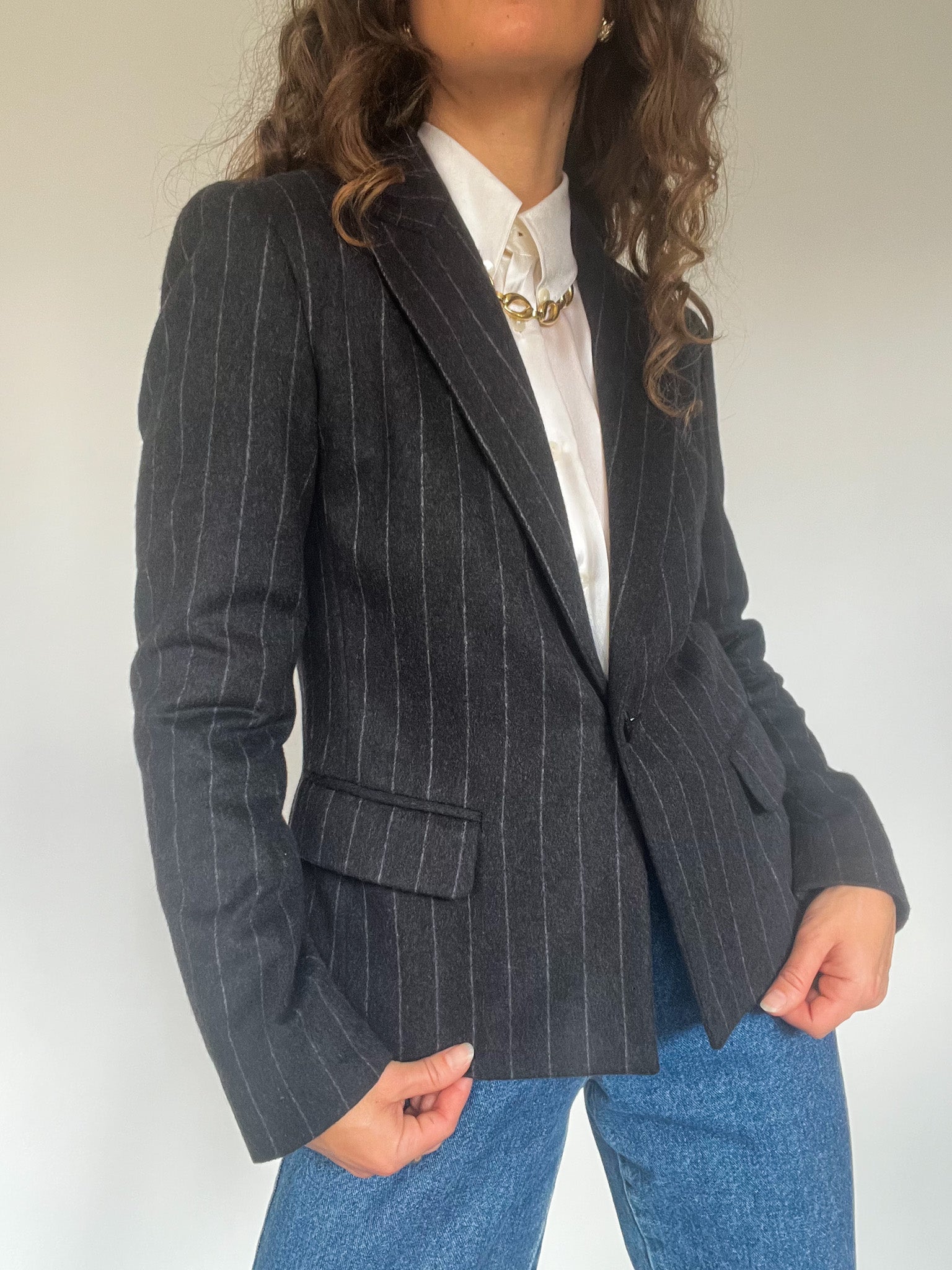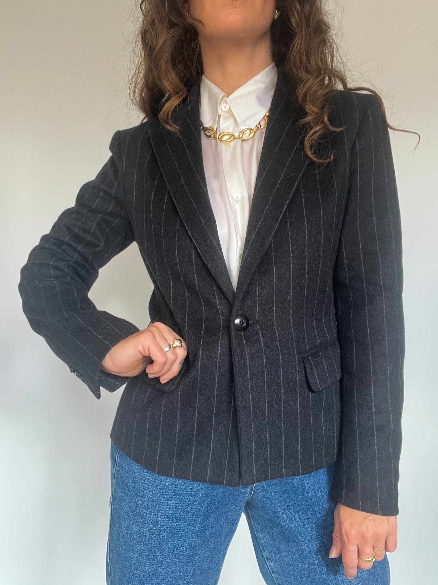 Vintage 90’s MaxMara Charcoal Pinstripe Wool & Cashmere Blazer