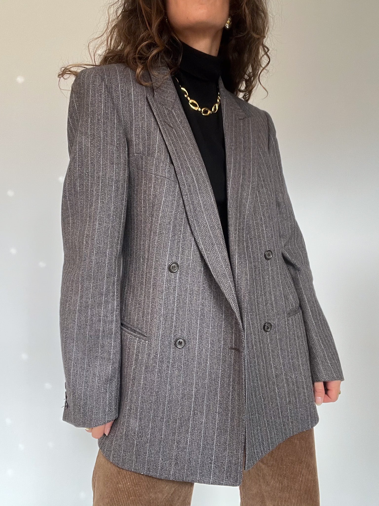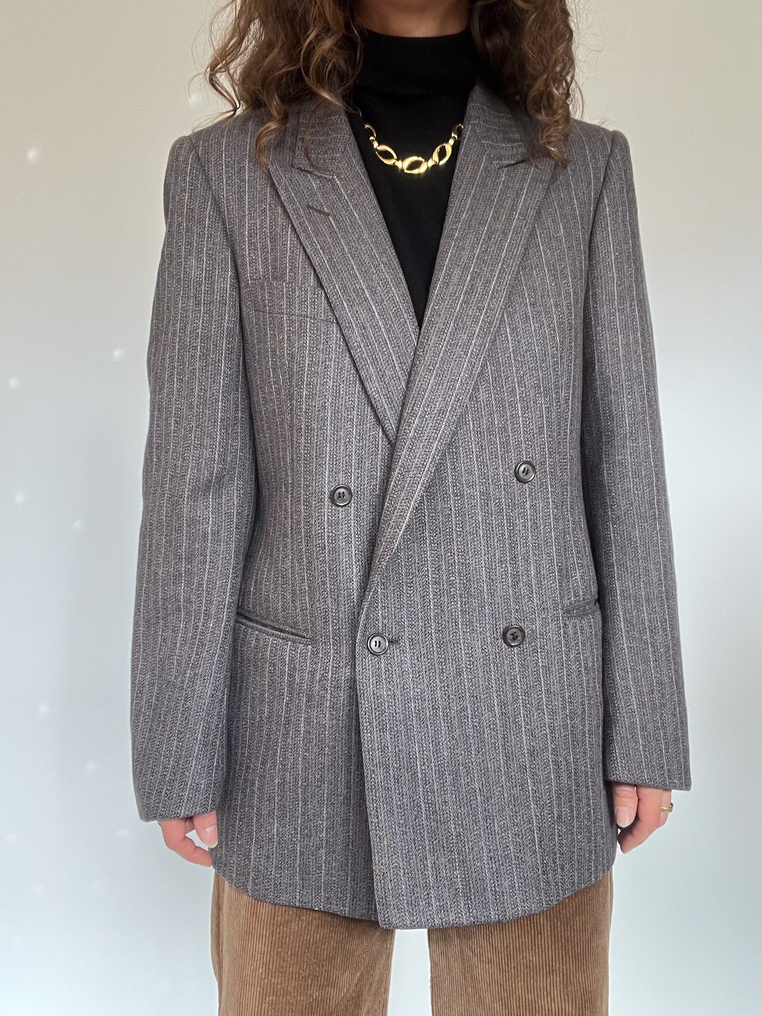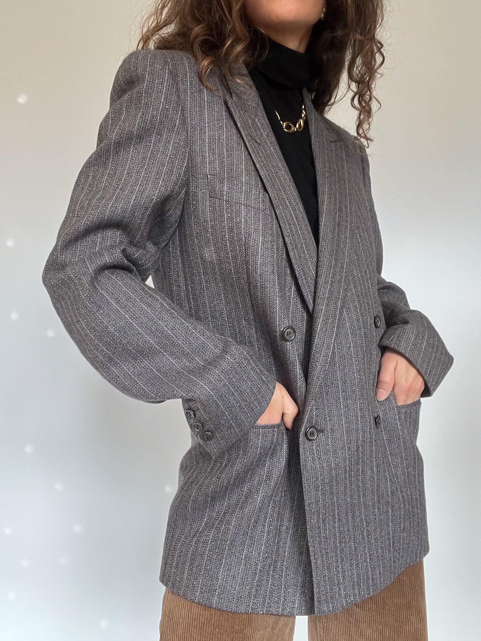 Vintage 80’s Grey Pinstripe Wool Blazer