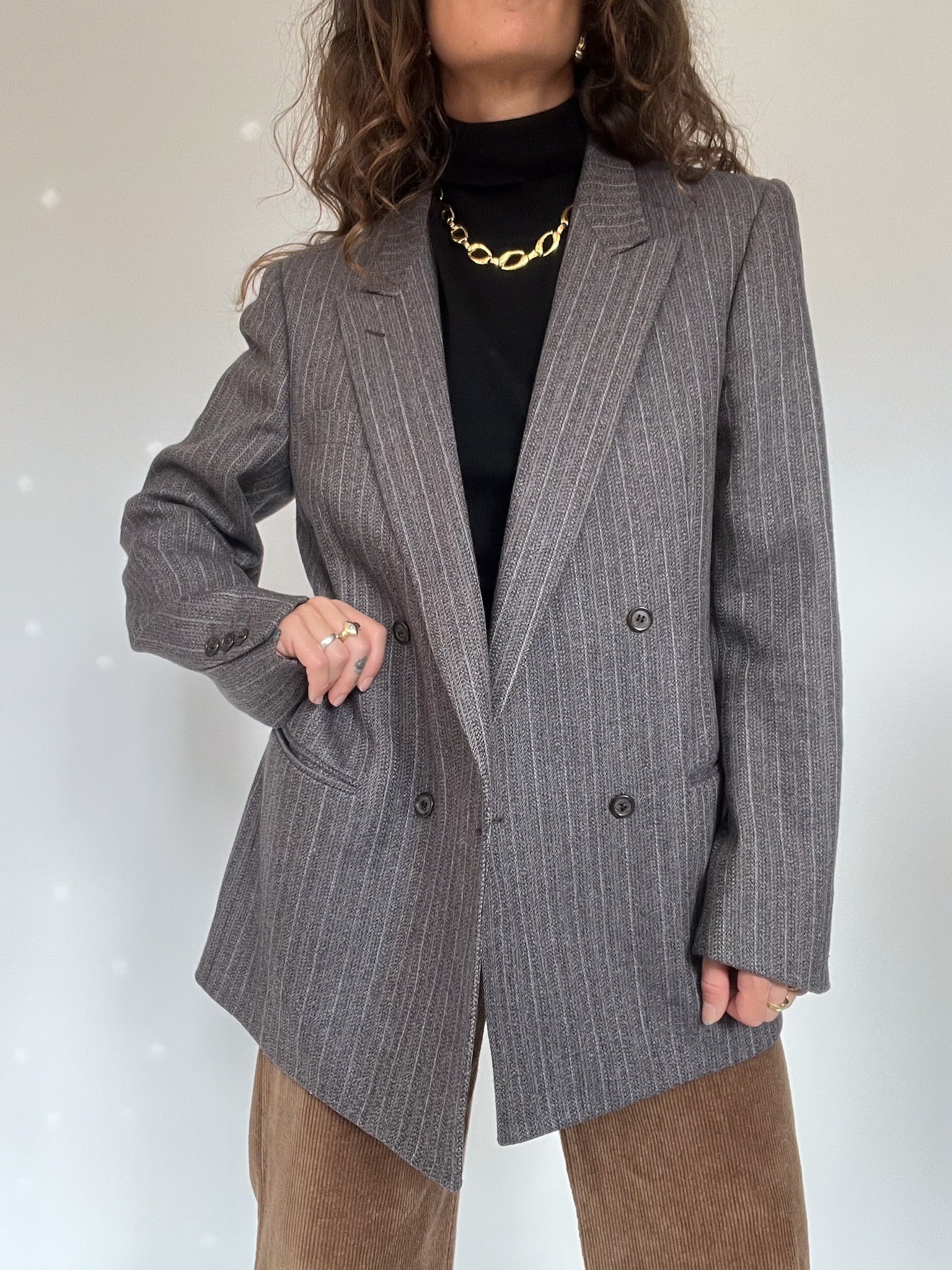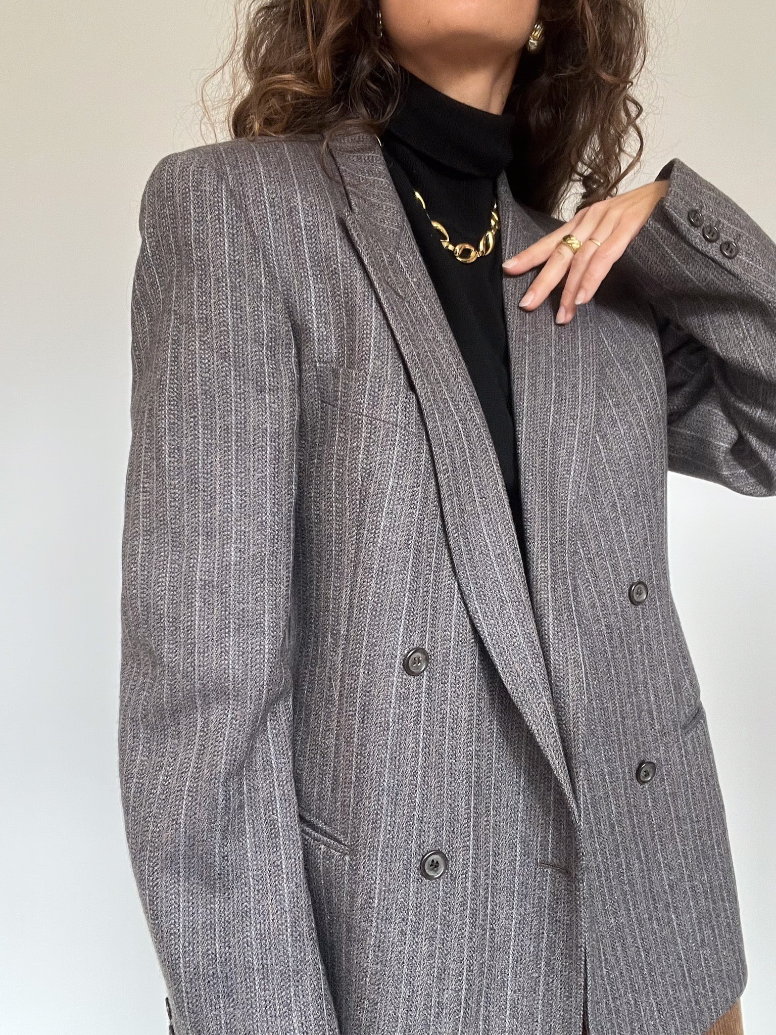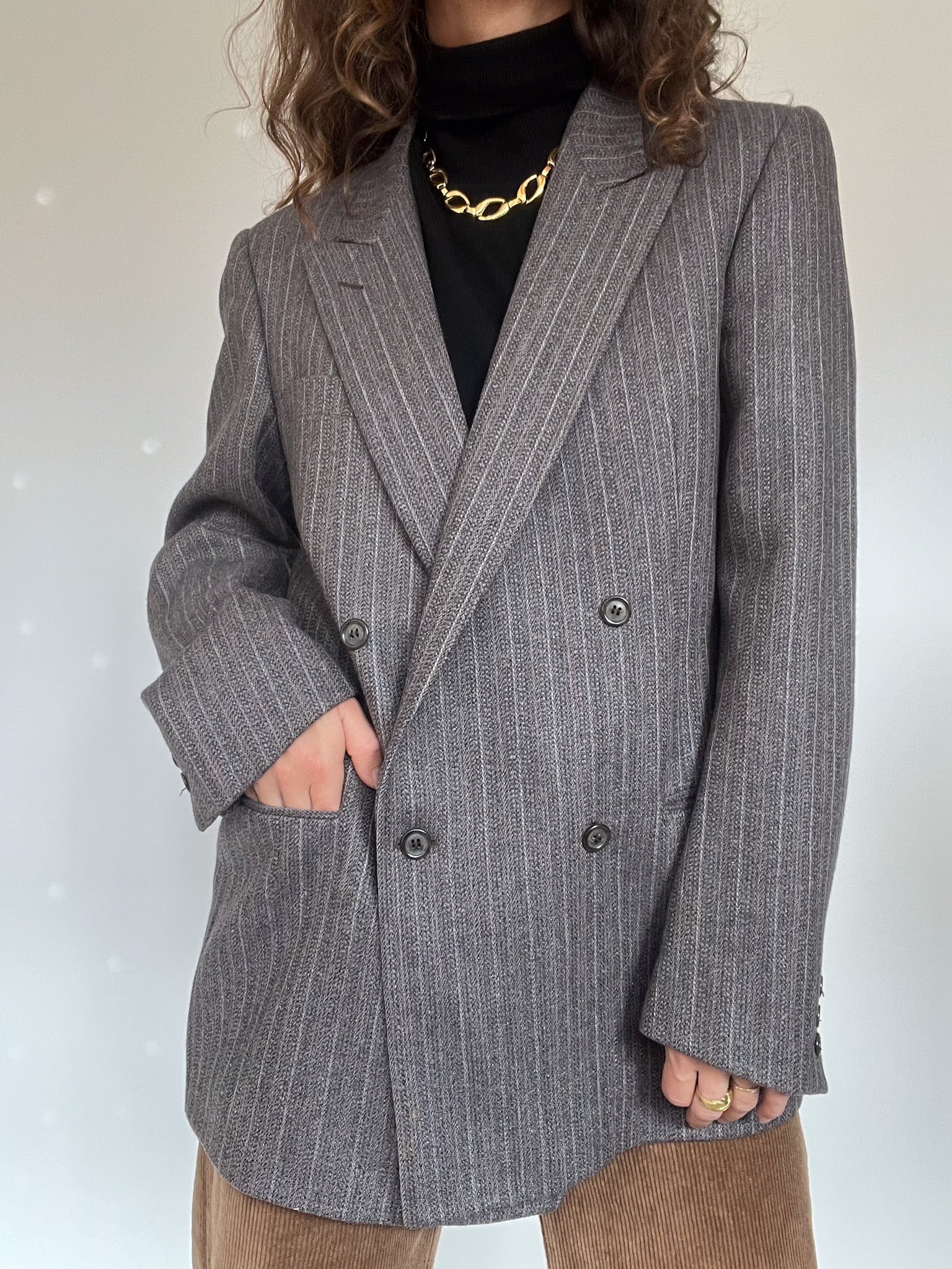 Vintage 80’s Grey Pinstripe Wool Blazer