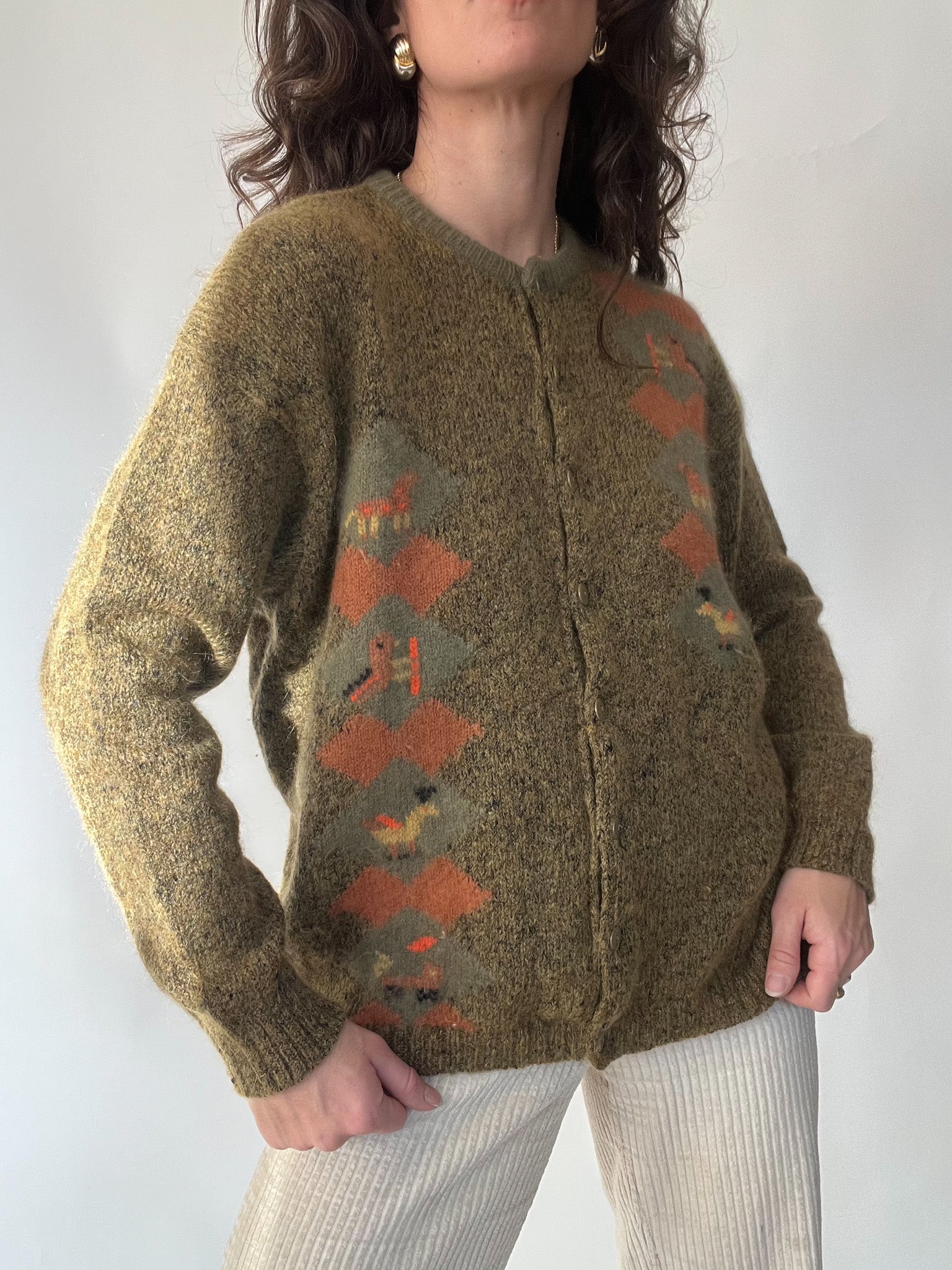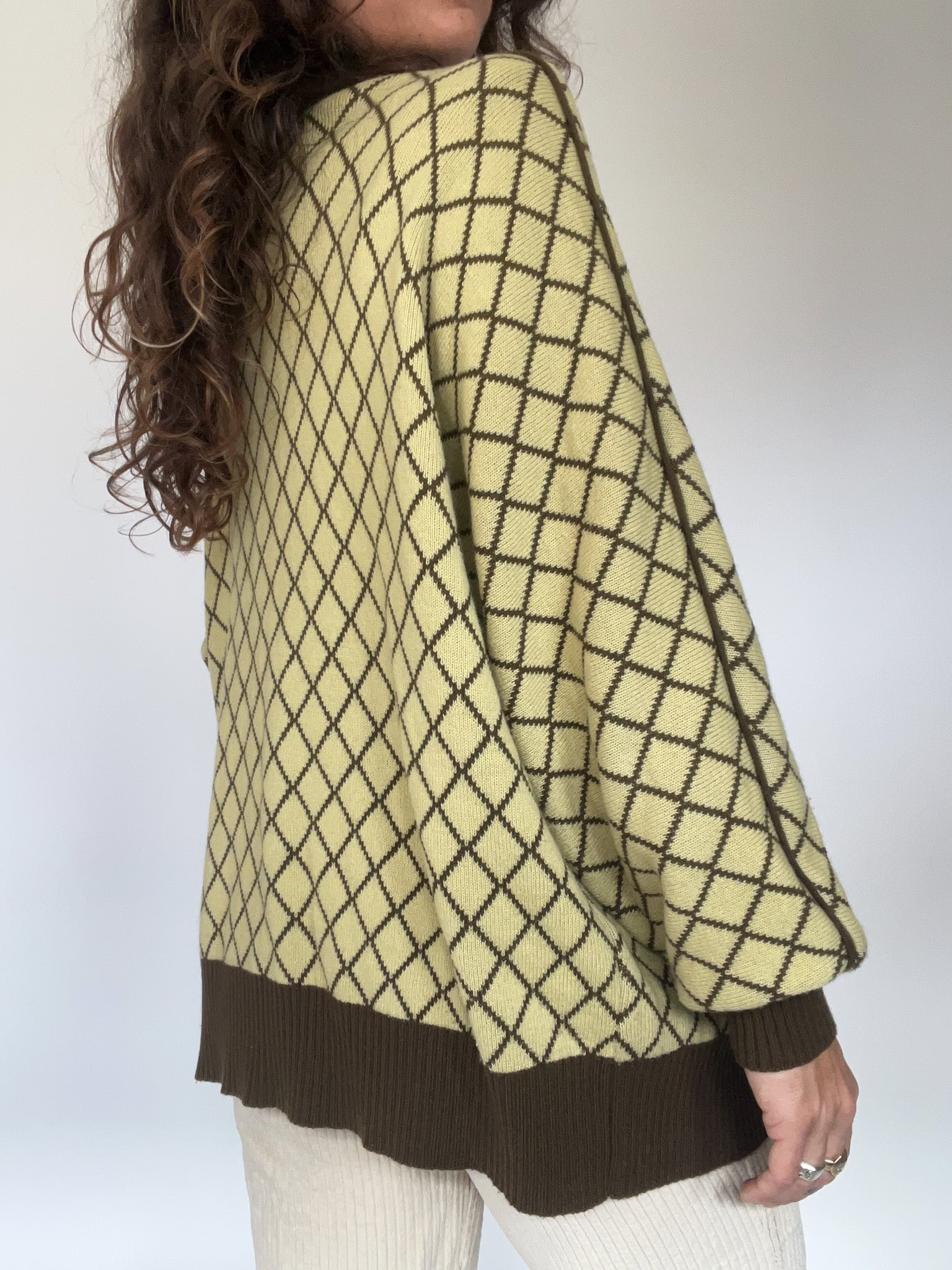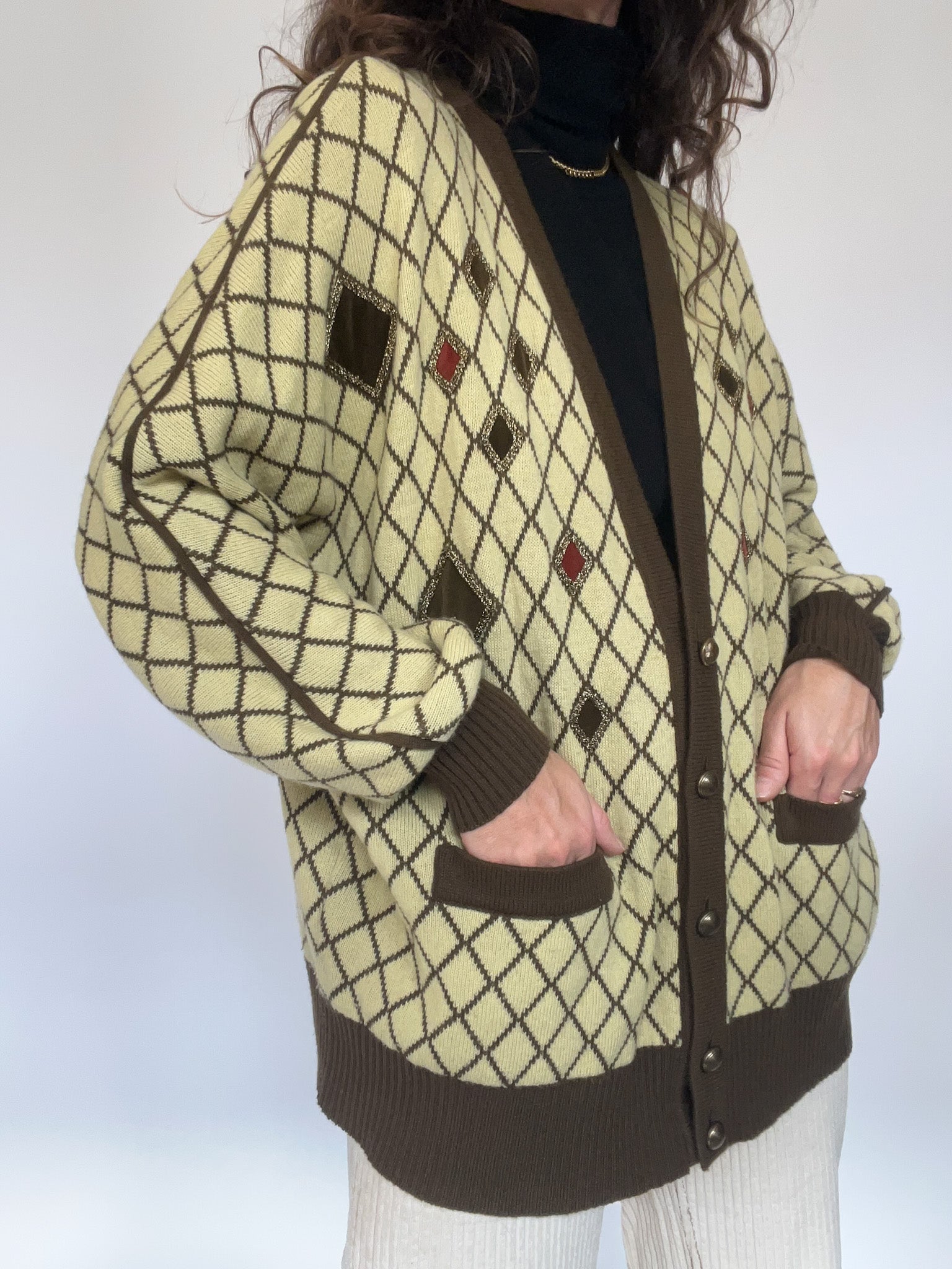 Vintage 80’s Brown & Cream Argyle Wool Blend Cardigan