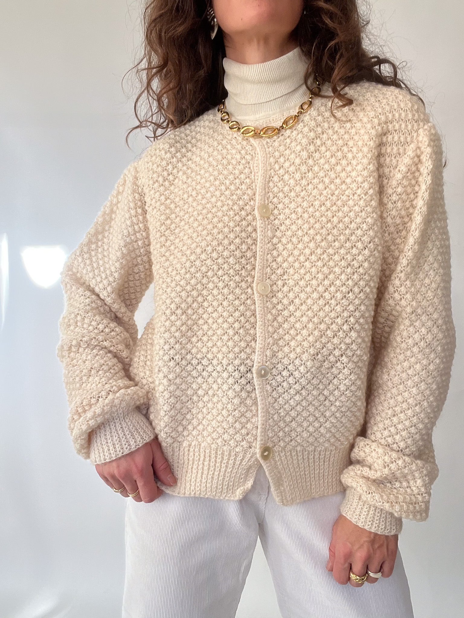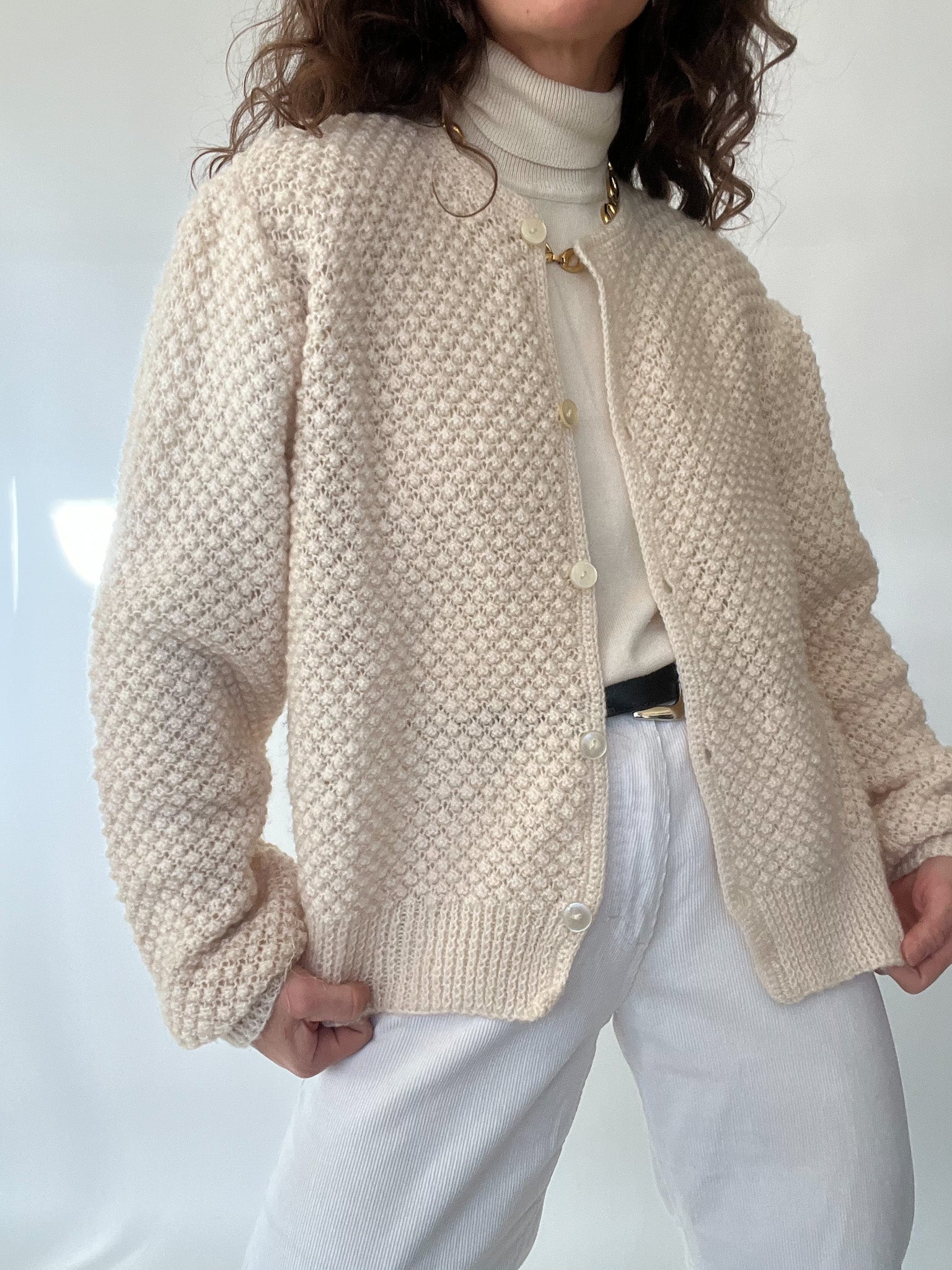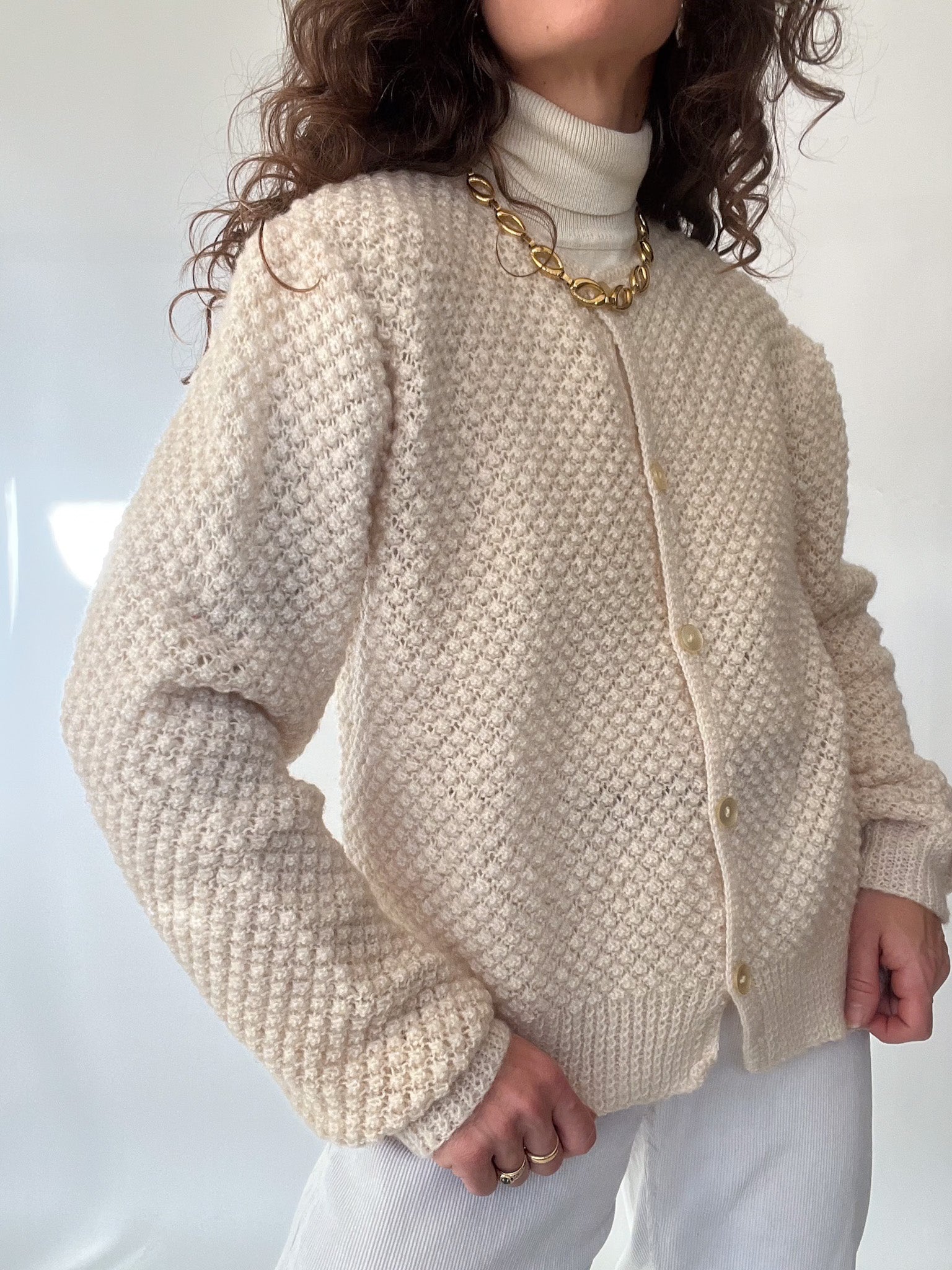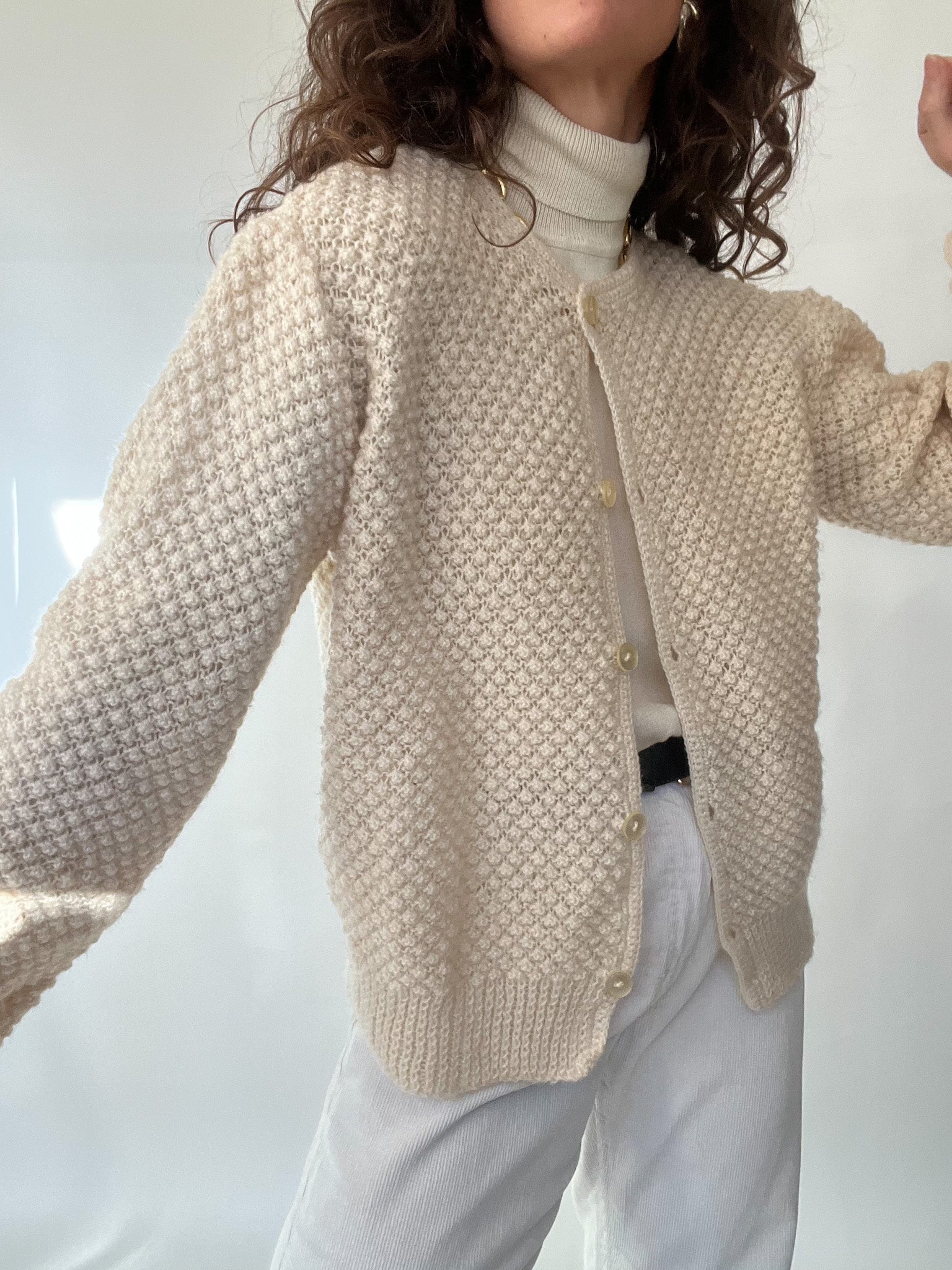Vintage 80’s Cream Hand-Knitted Wool Cardigan