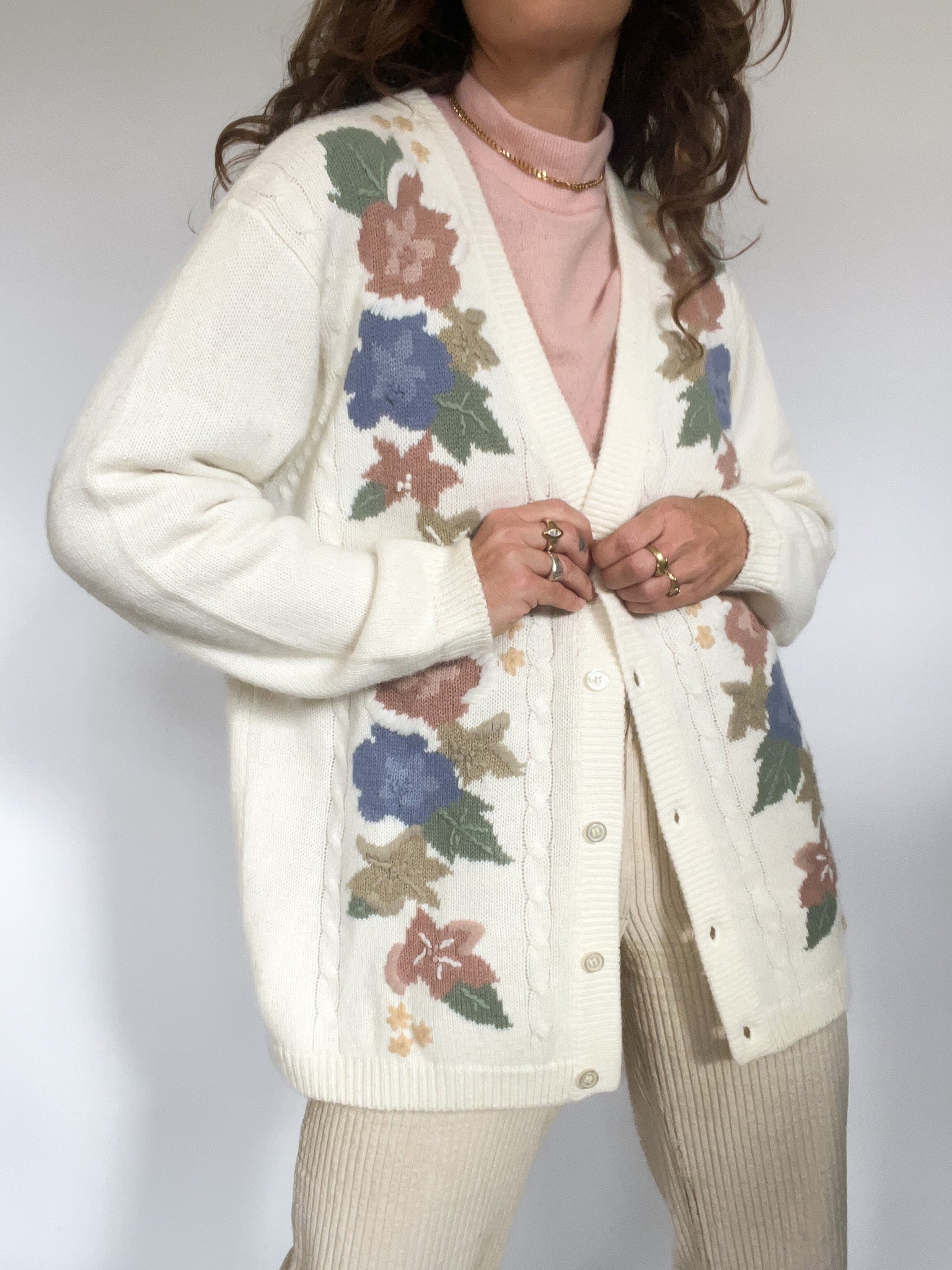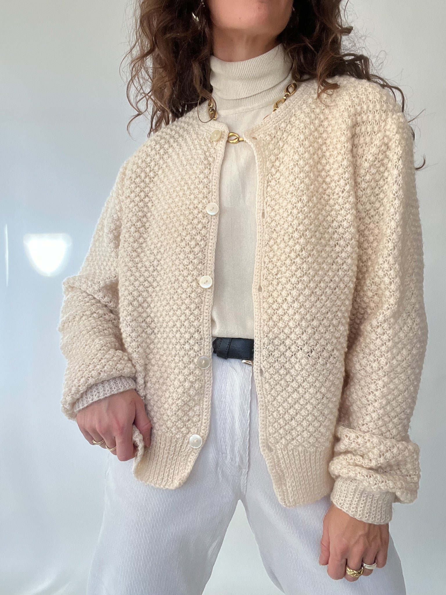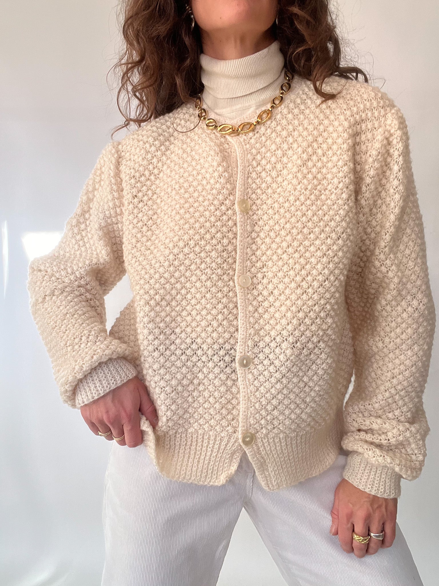 Vintage 80’s Cream Hand-Knitted Wool Cardigan