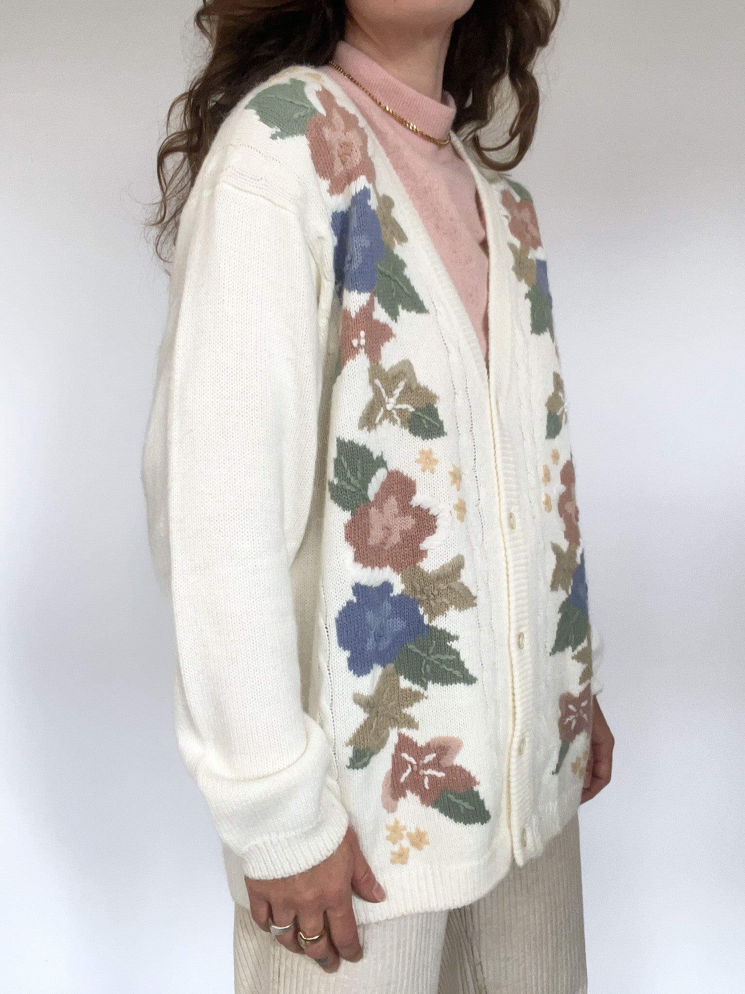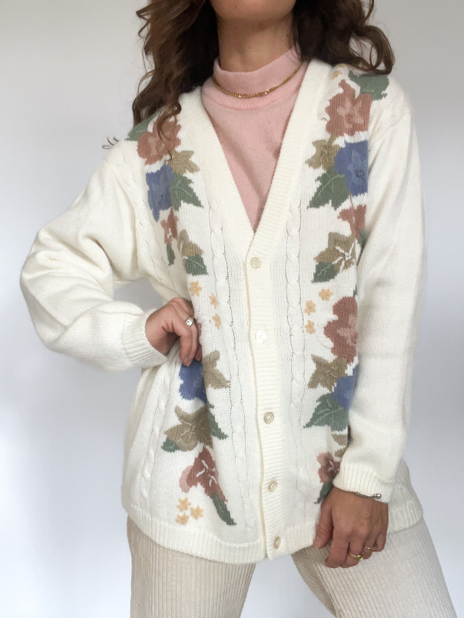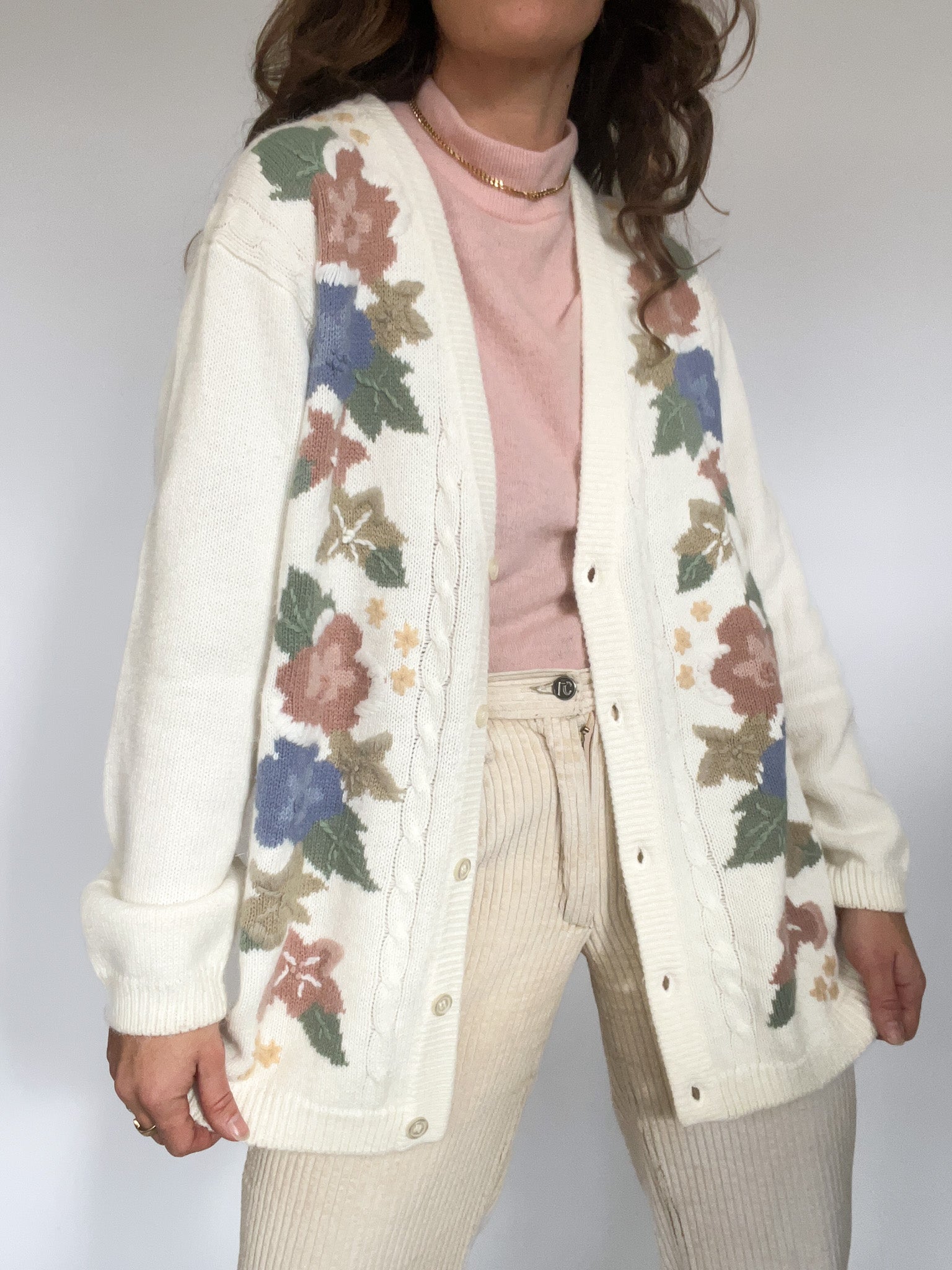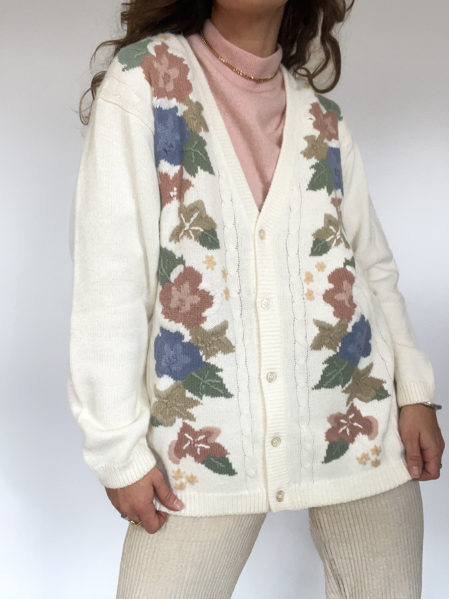 Vintage 80’s Cream Hand-Knitted Wool Cardigan