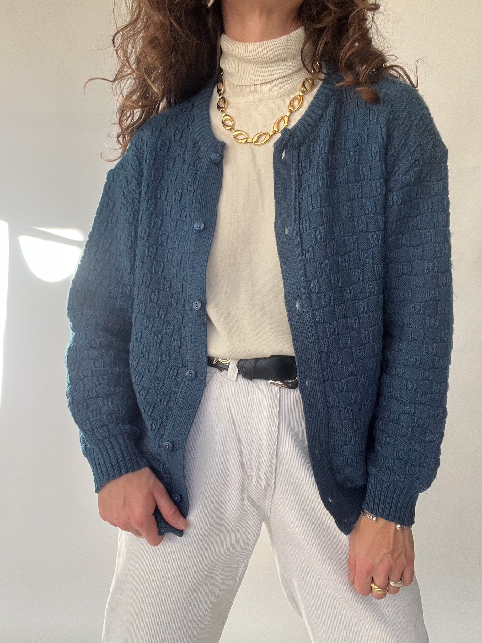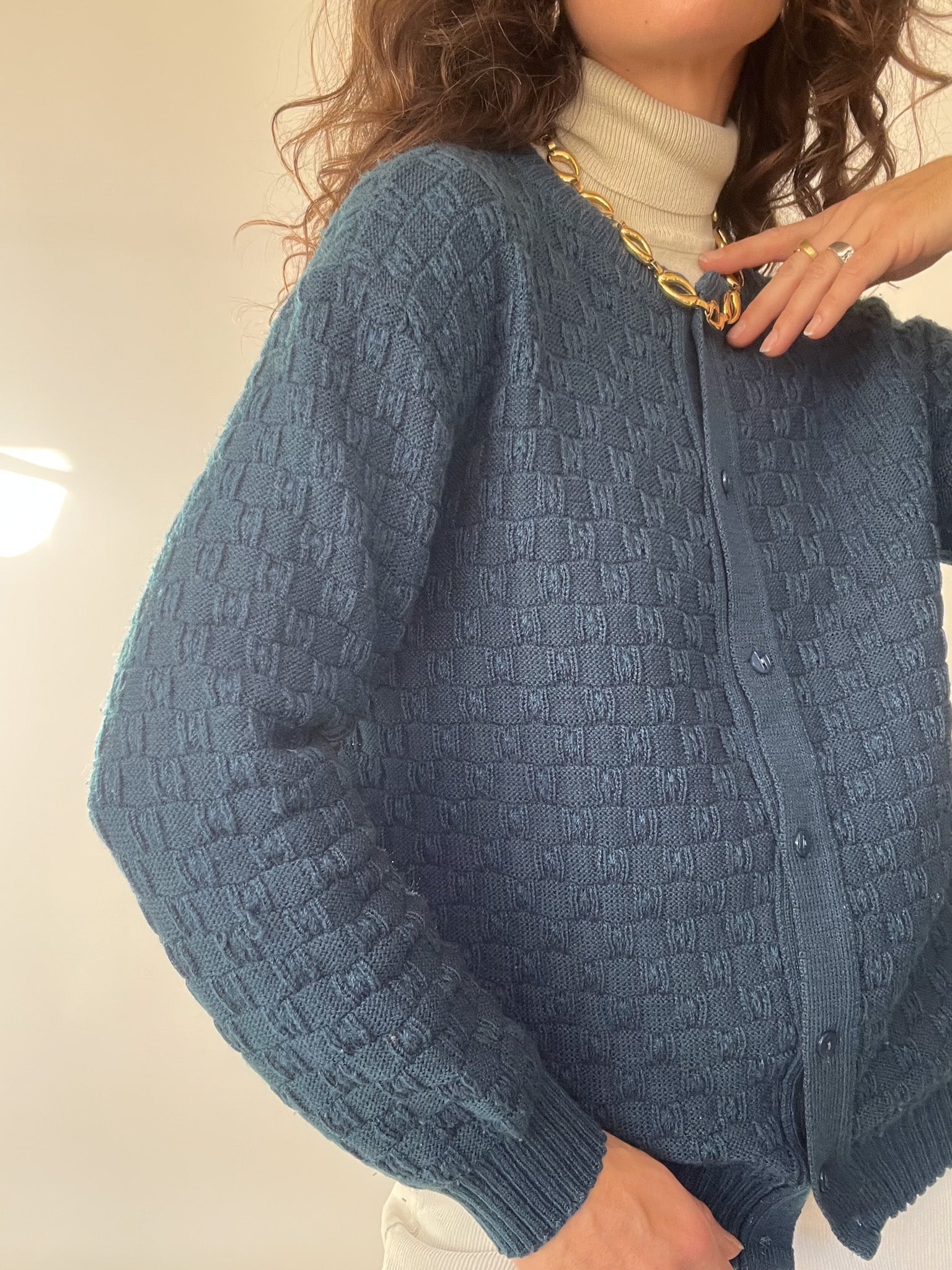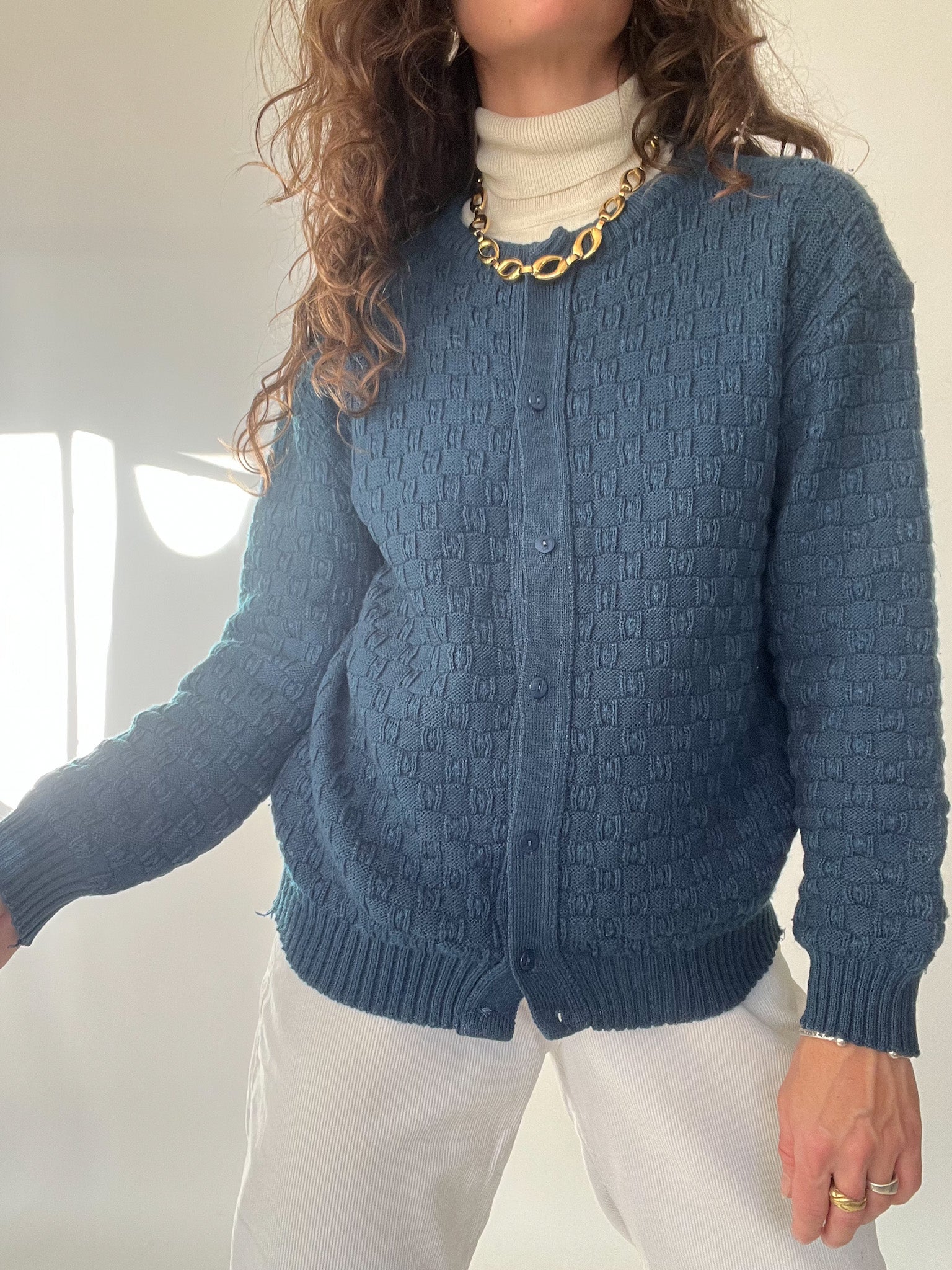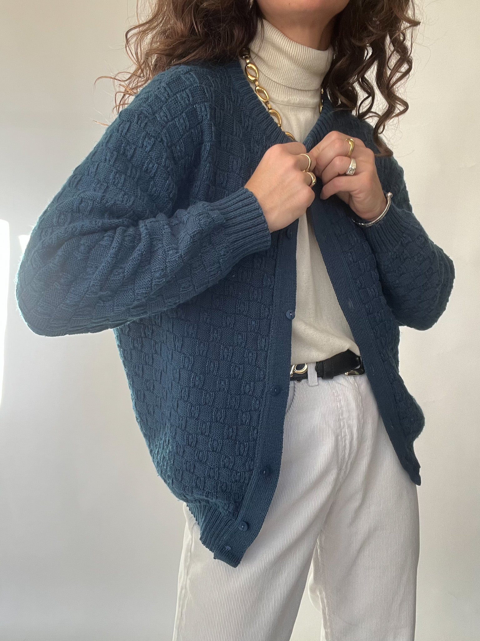 Vintage 80’s Deep Teal Textured Knit Cardigan