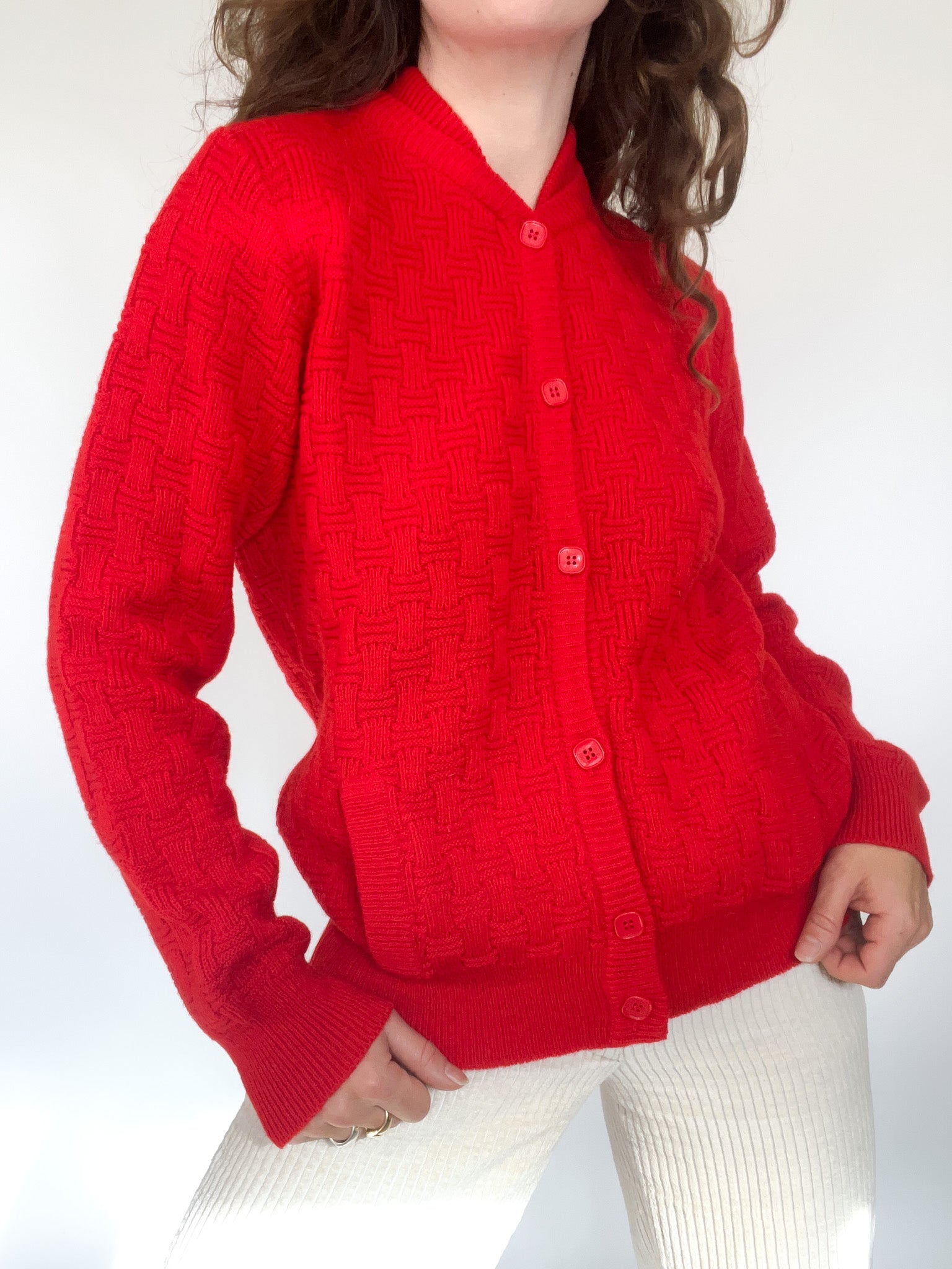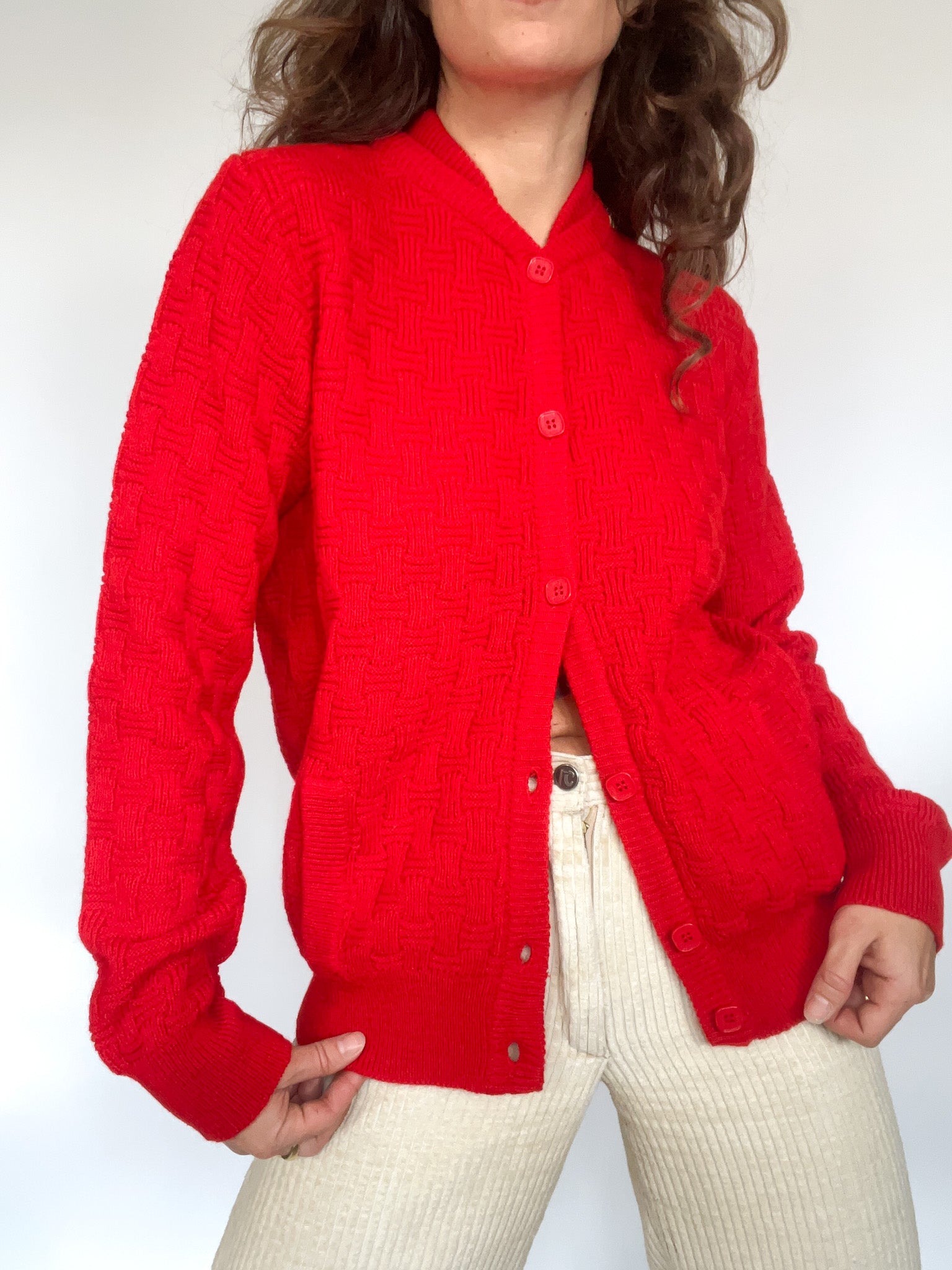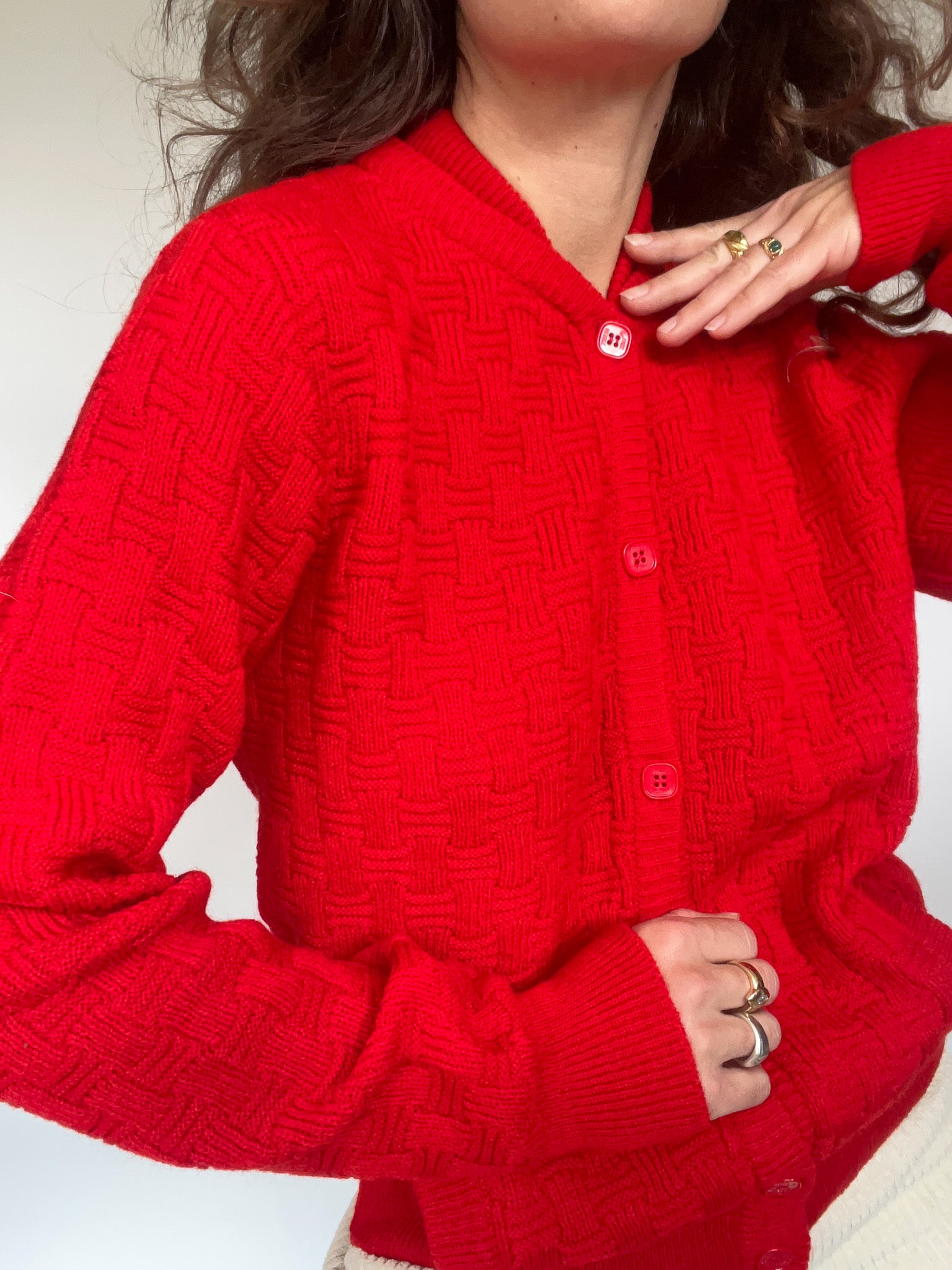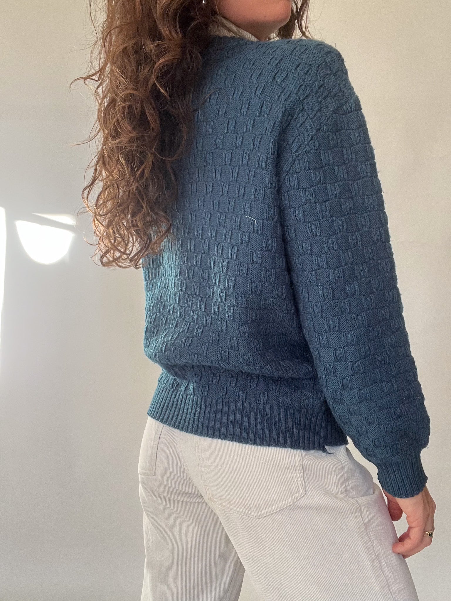 Vintage 80’s Deep Teal Textured Knit Cardigan