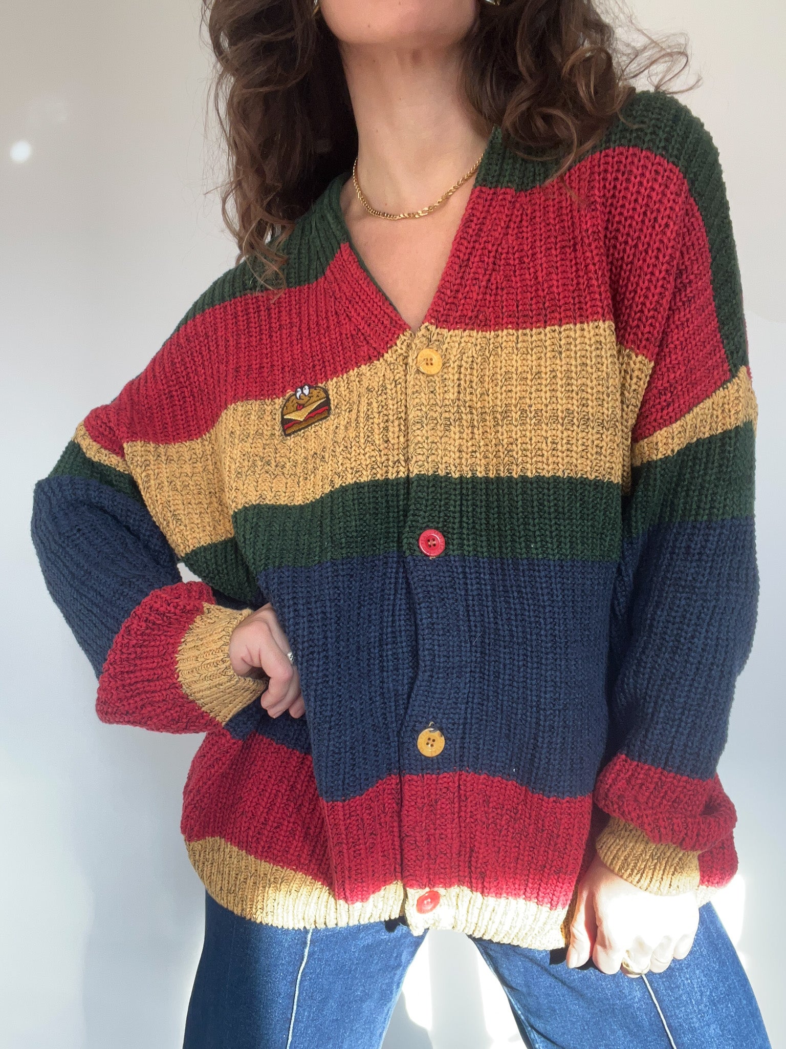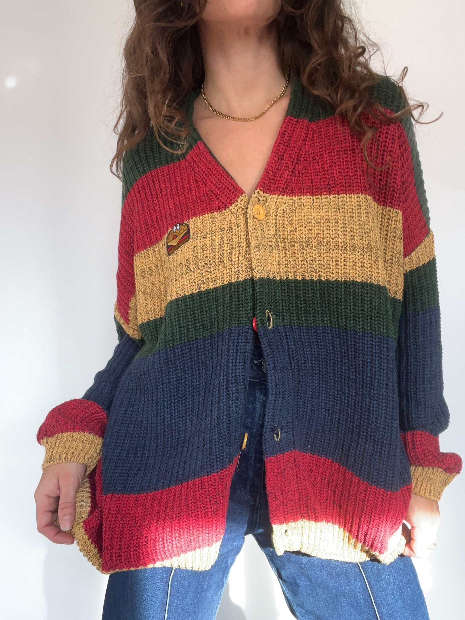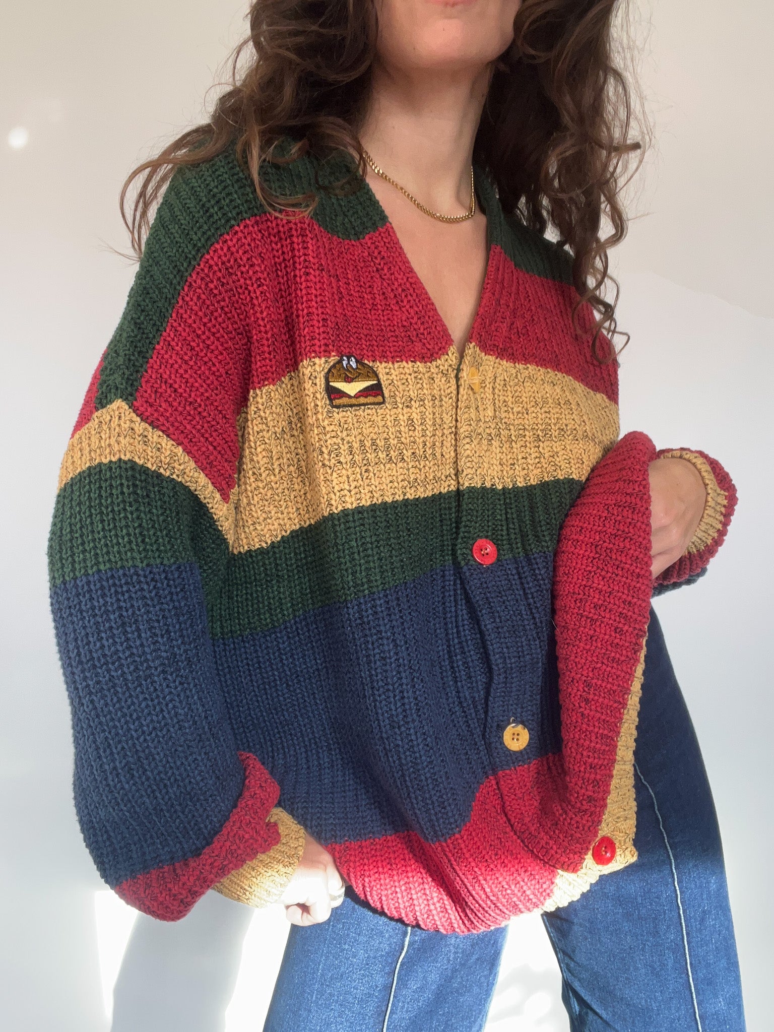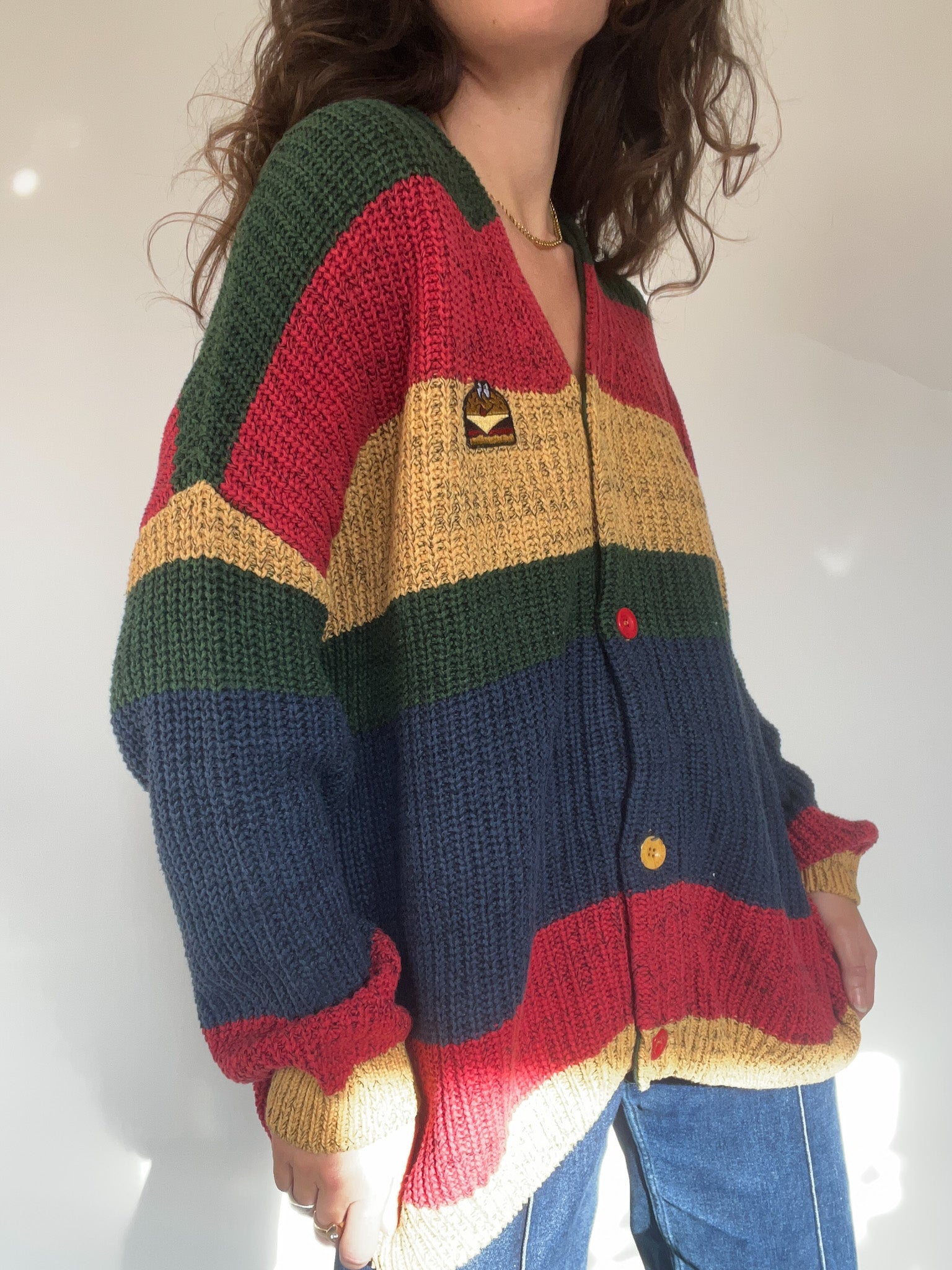 Vintage 80’s Oversized Multicolor Striped Cardigan