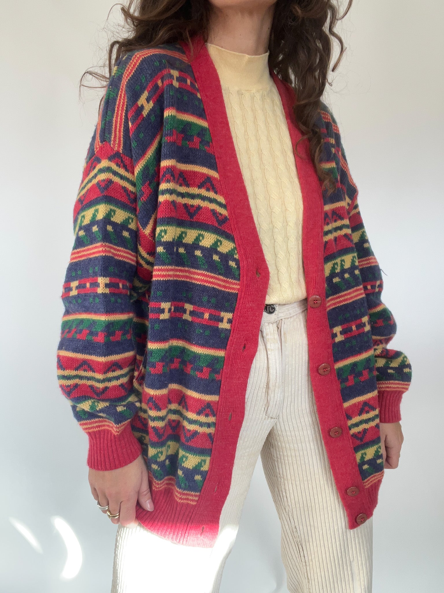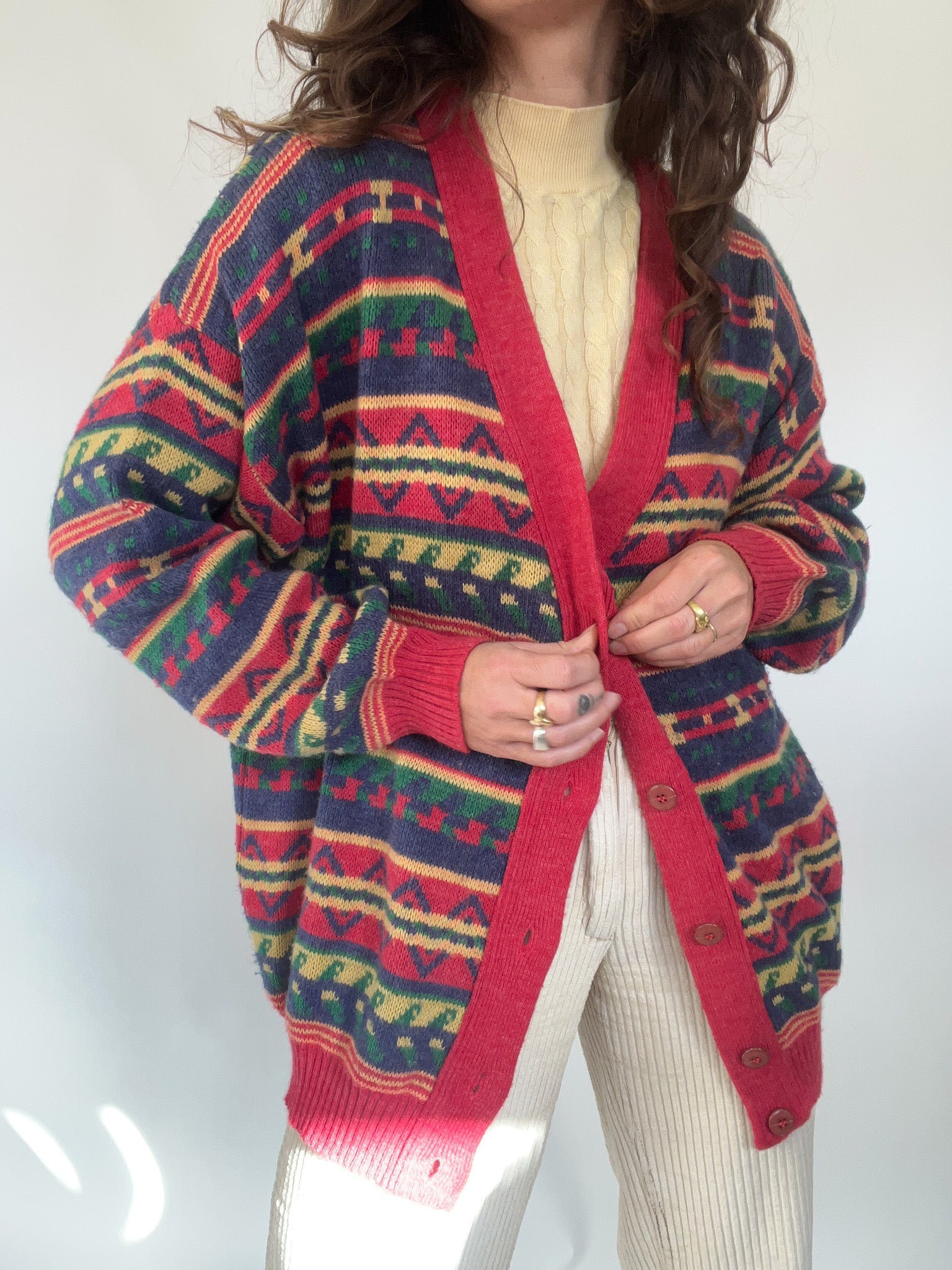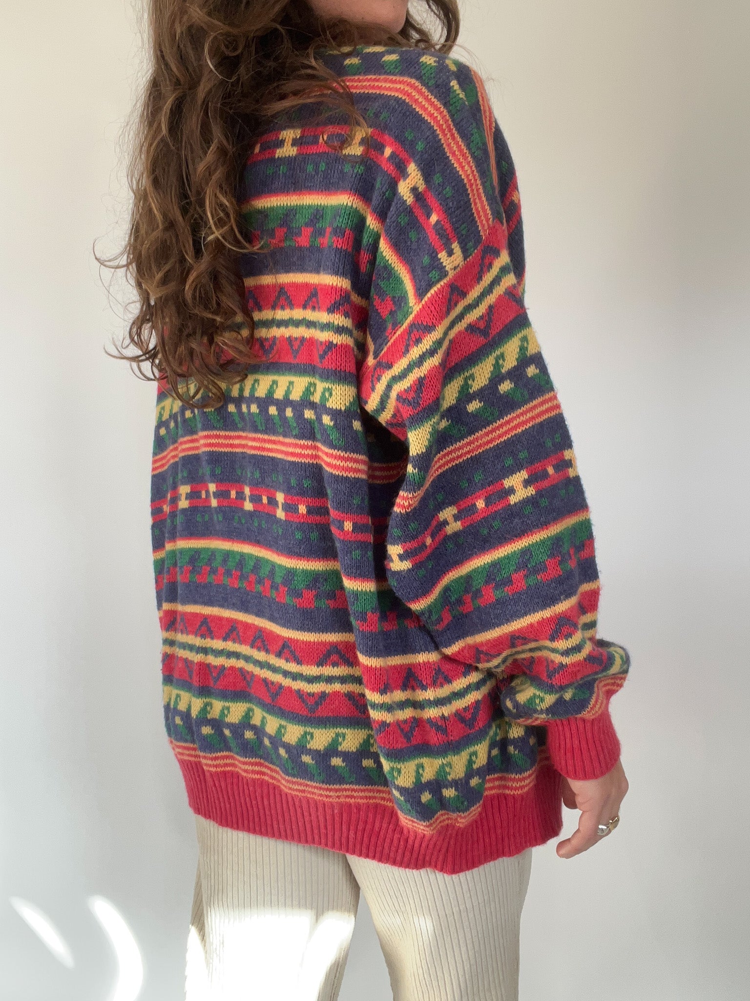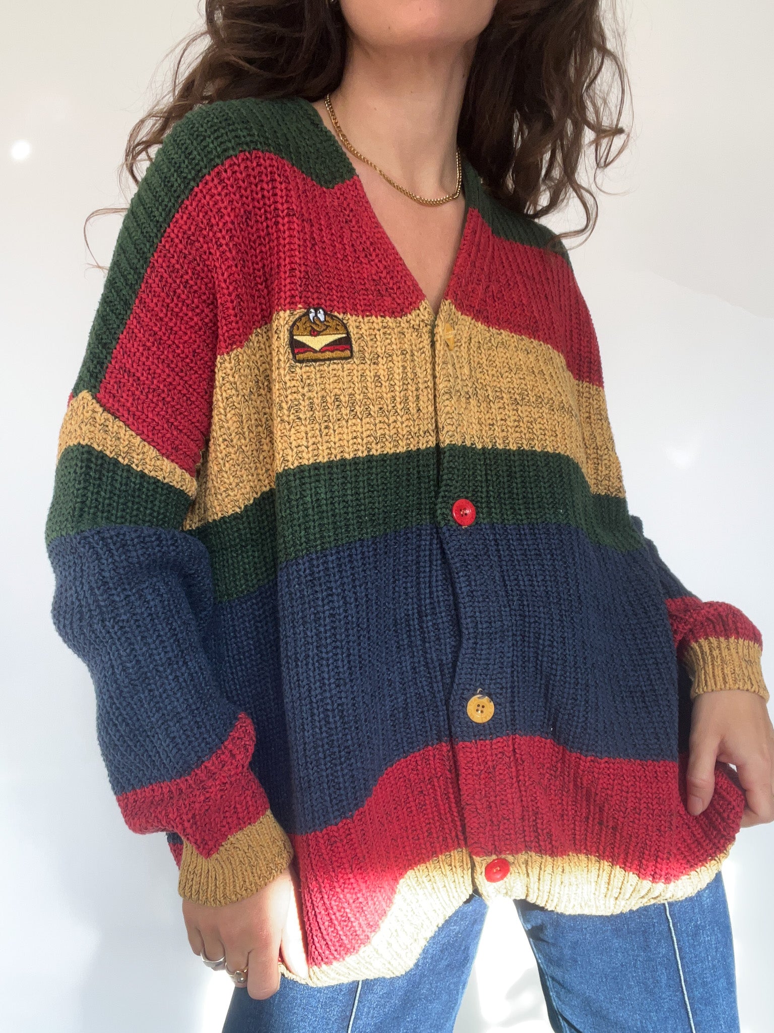 Vintage 80’s Oversized Multicolor Striped Cardigan
