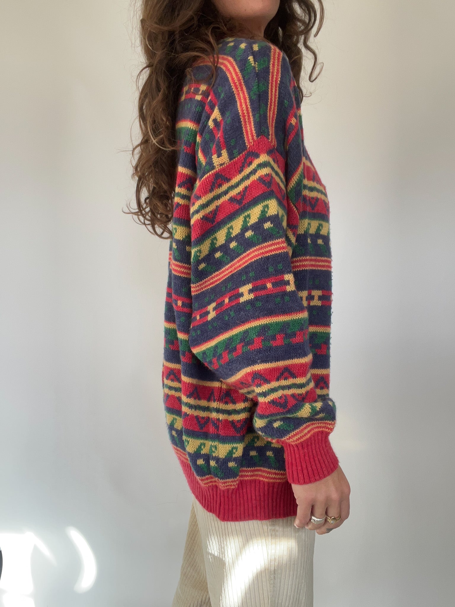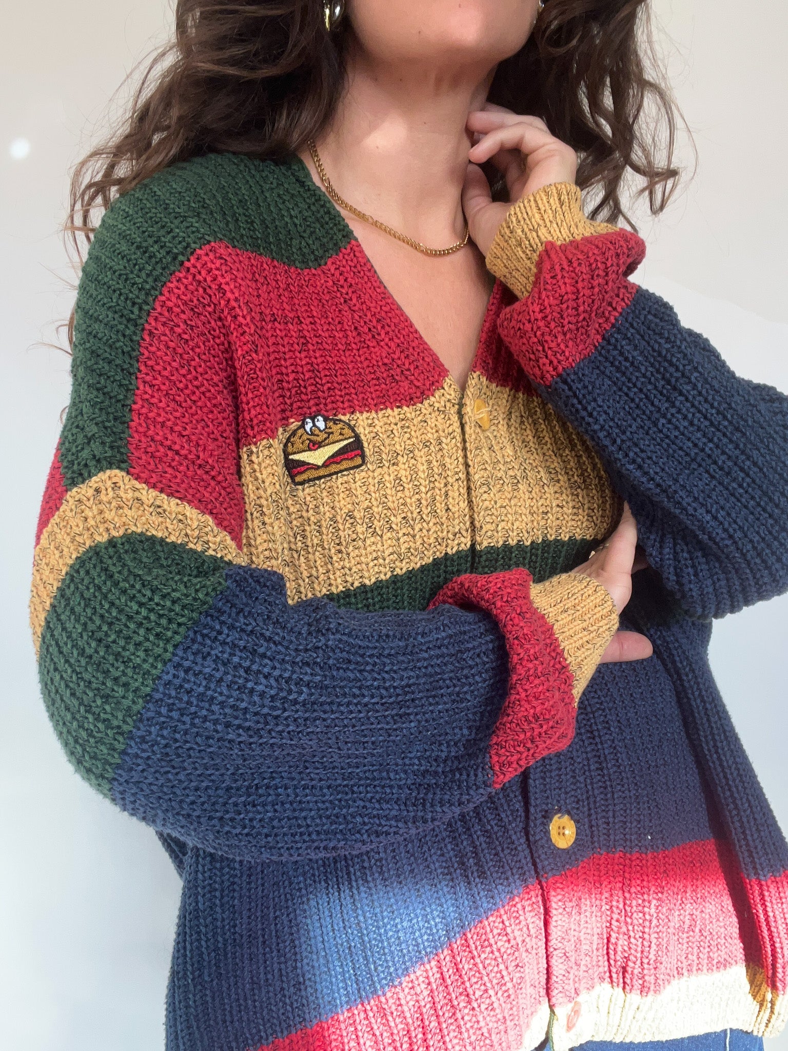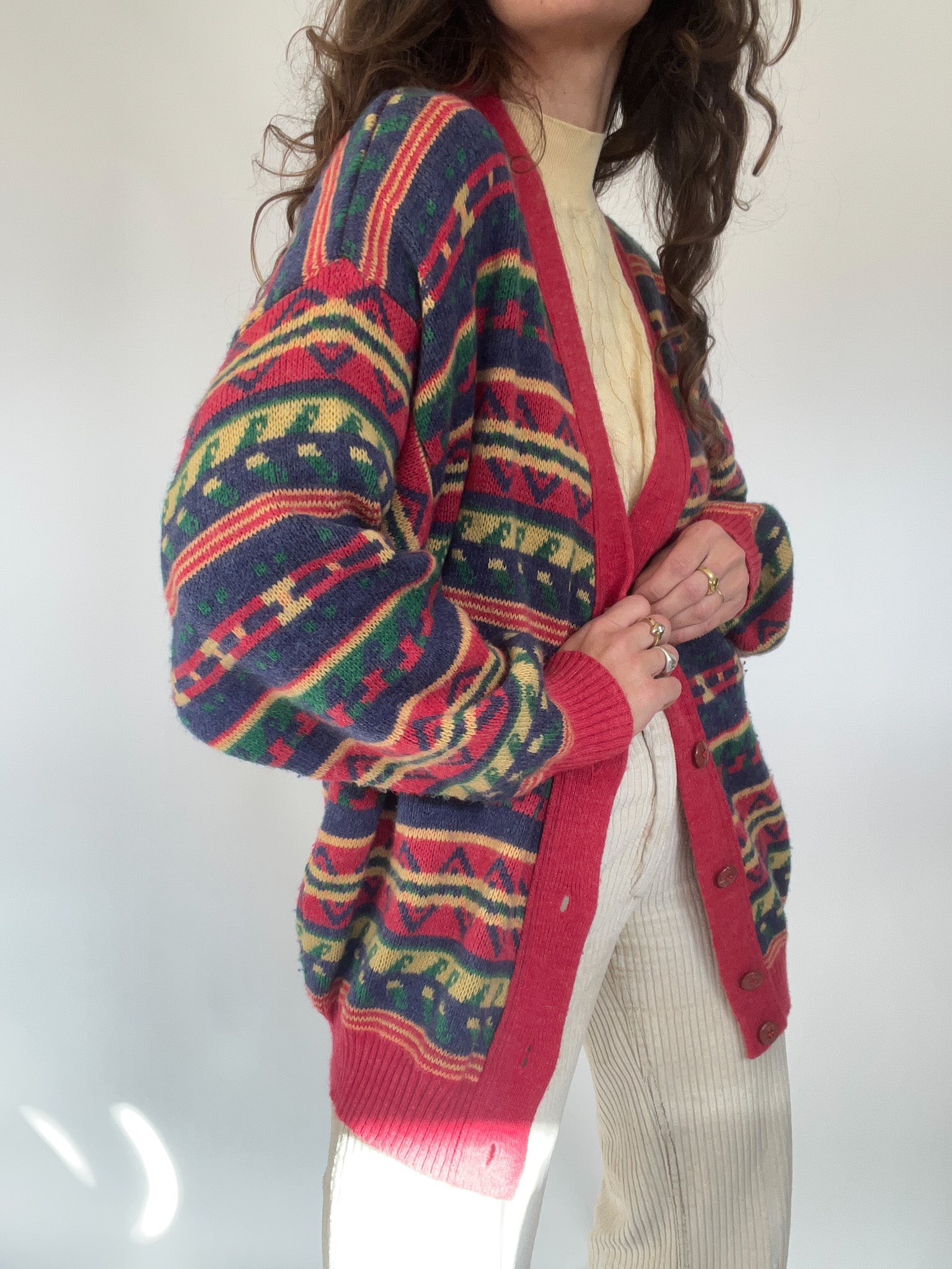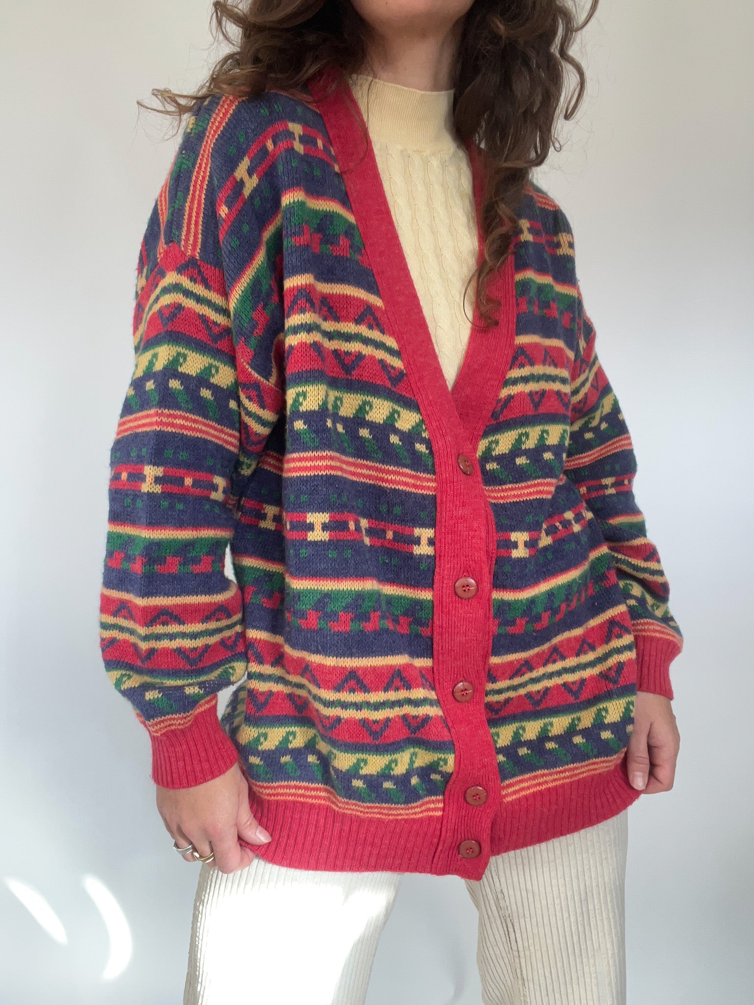 Vintage 80’s Oversized Multicolor Striped Cardigan