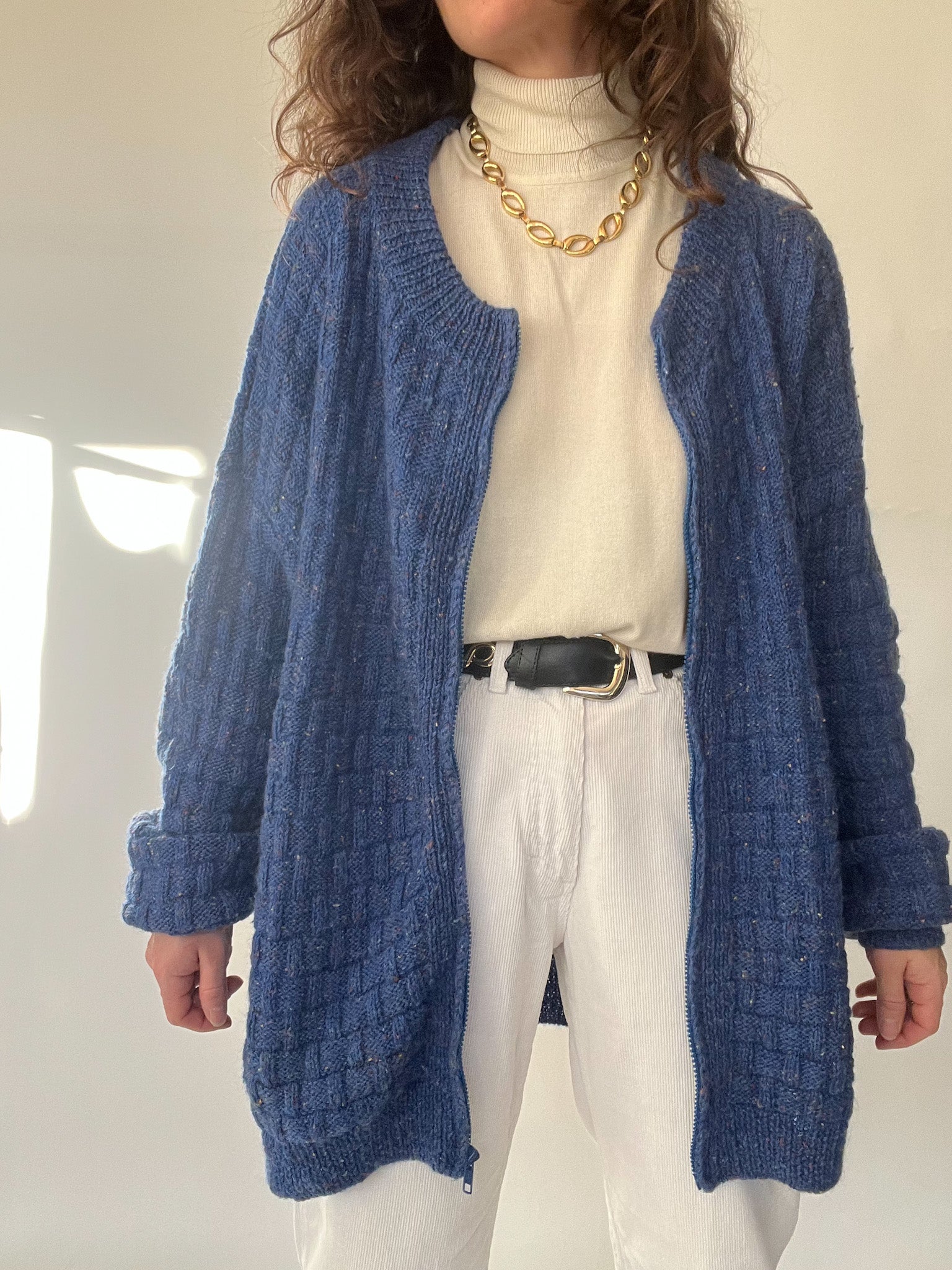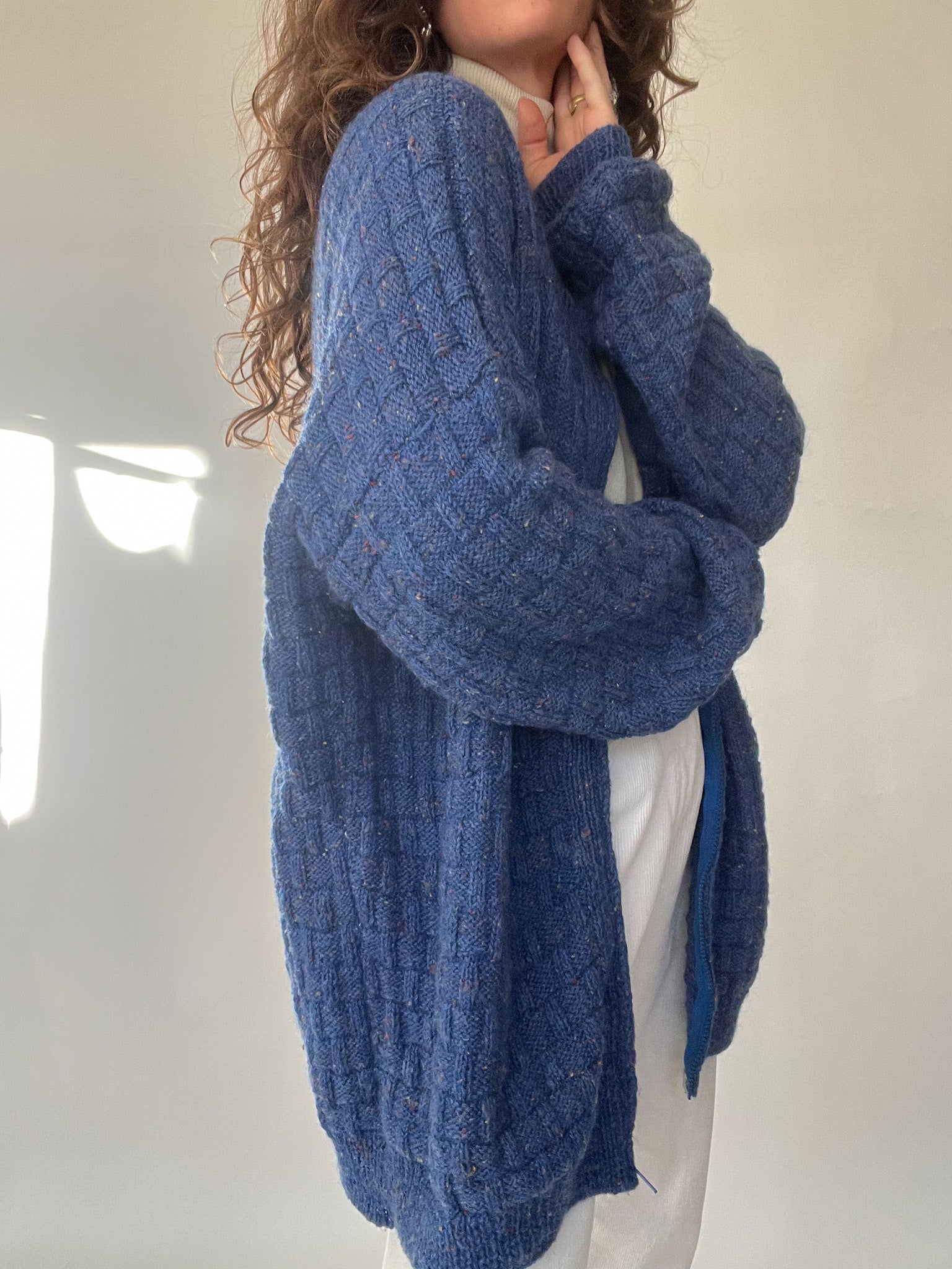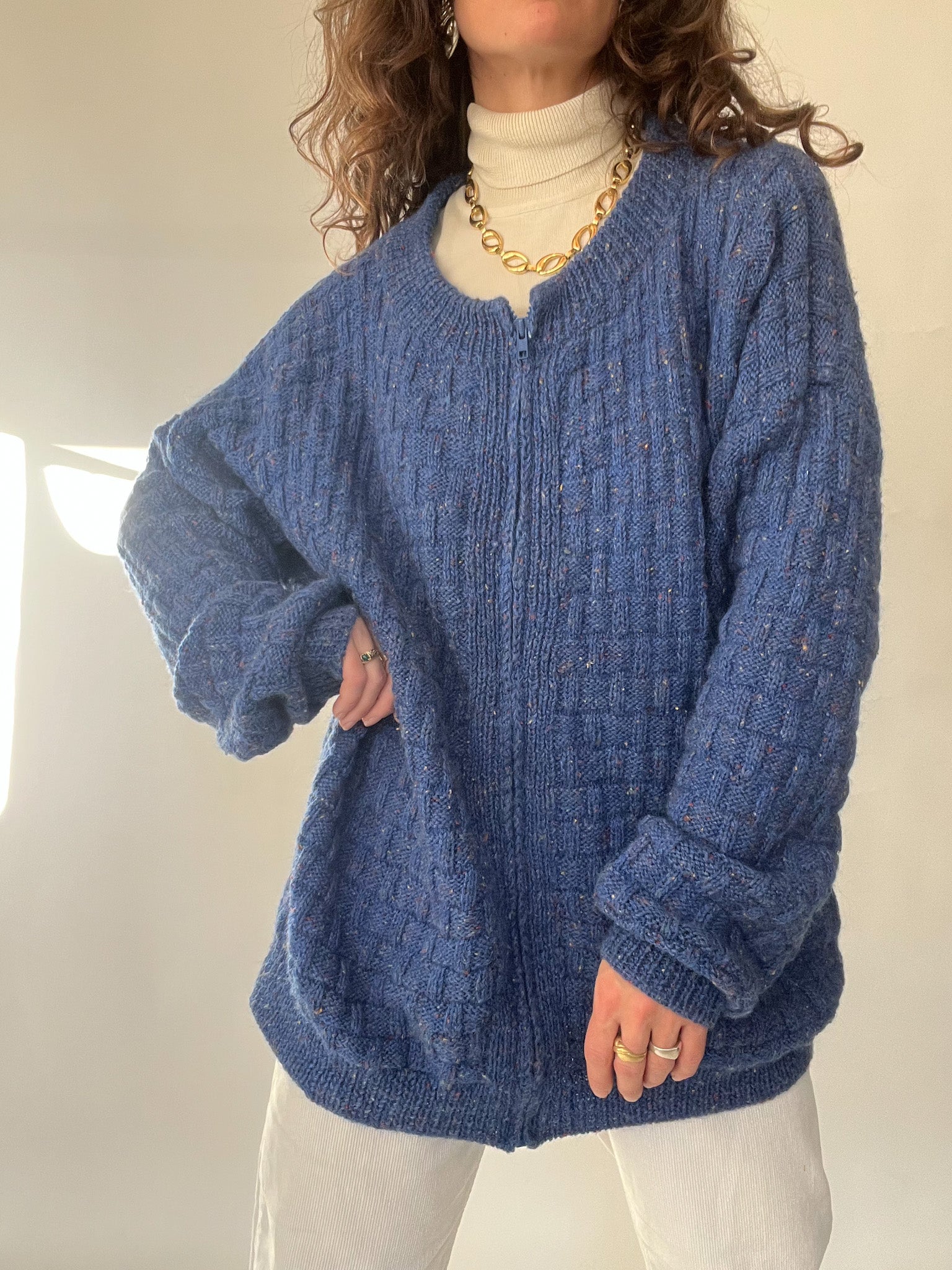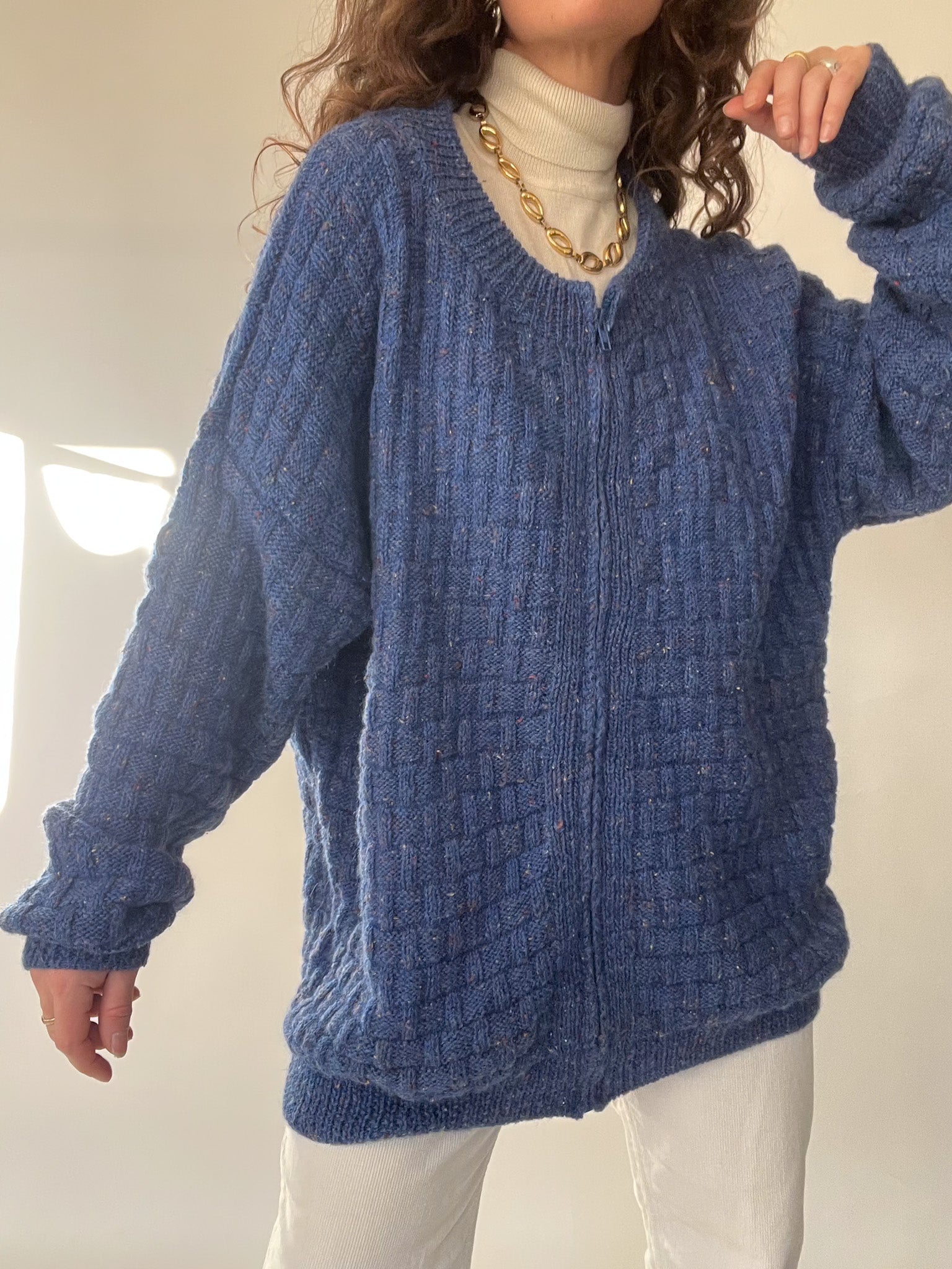 Vintage 80’s Oversized Blue Textured Knit Zip Cardigan
