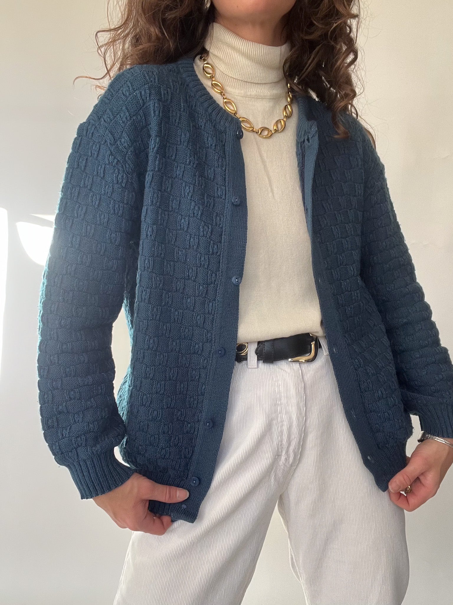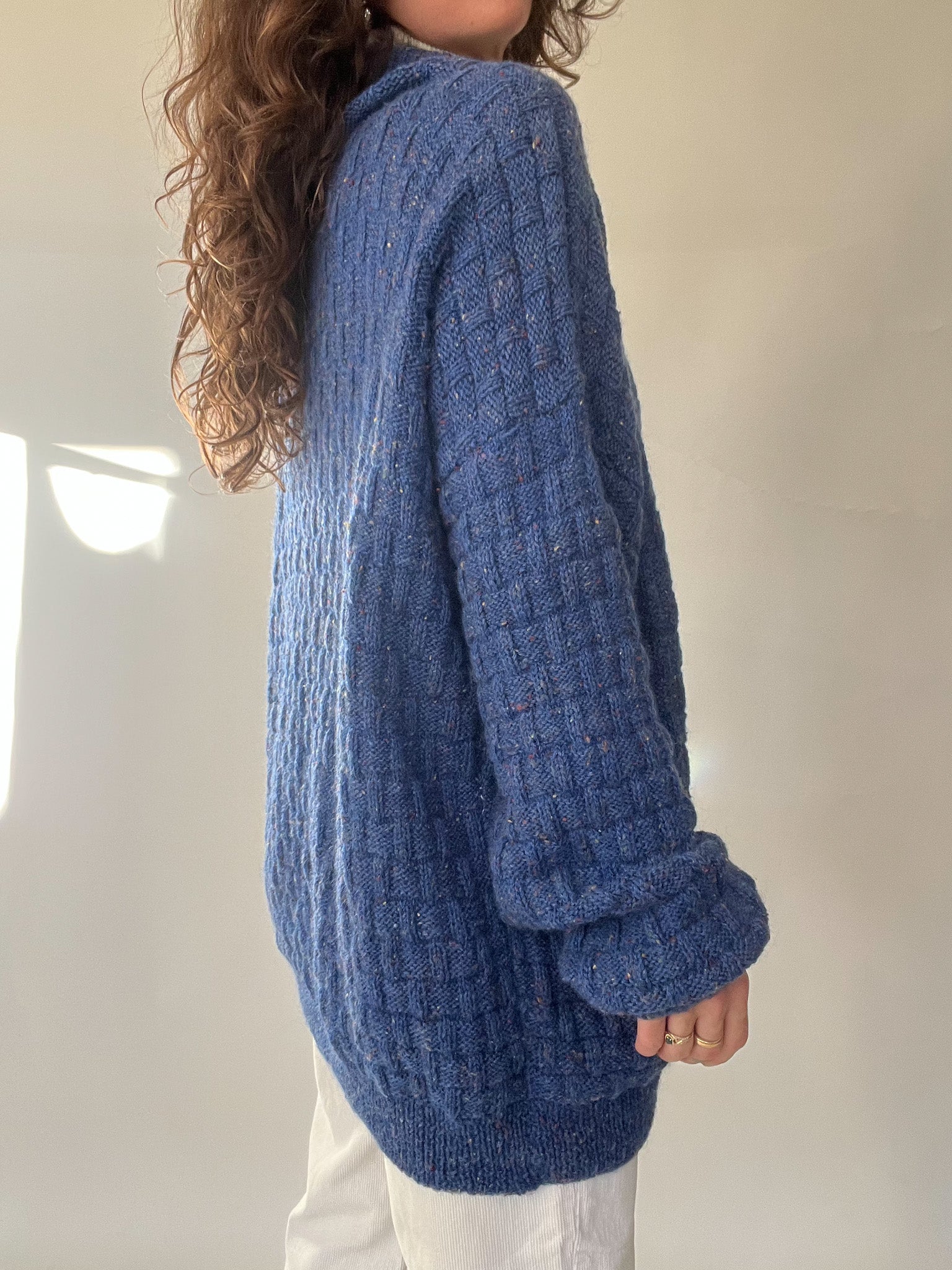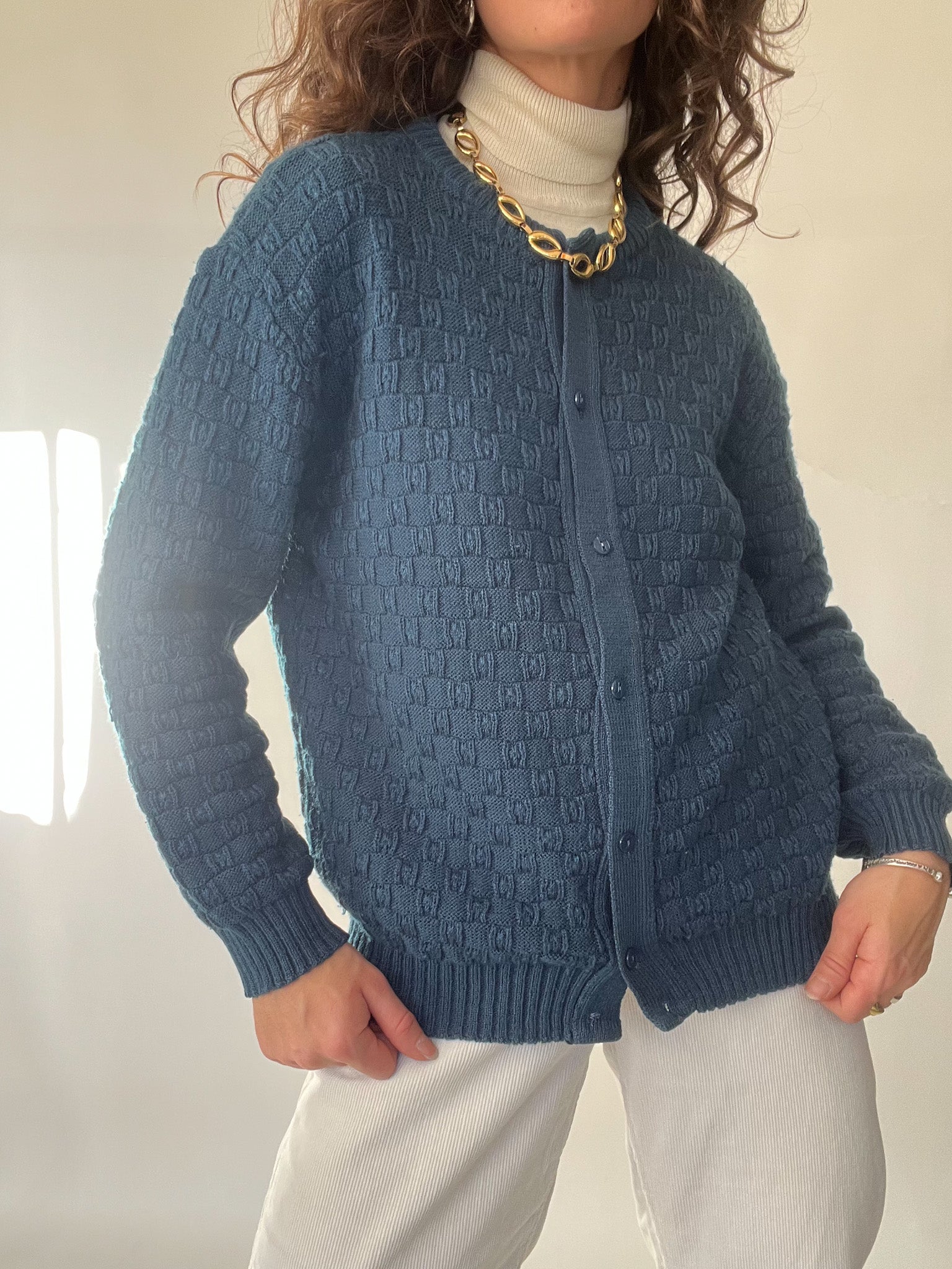 Vintage 80’s Oversized Blue Textured Knit Zip Cardigan