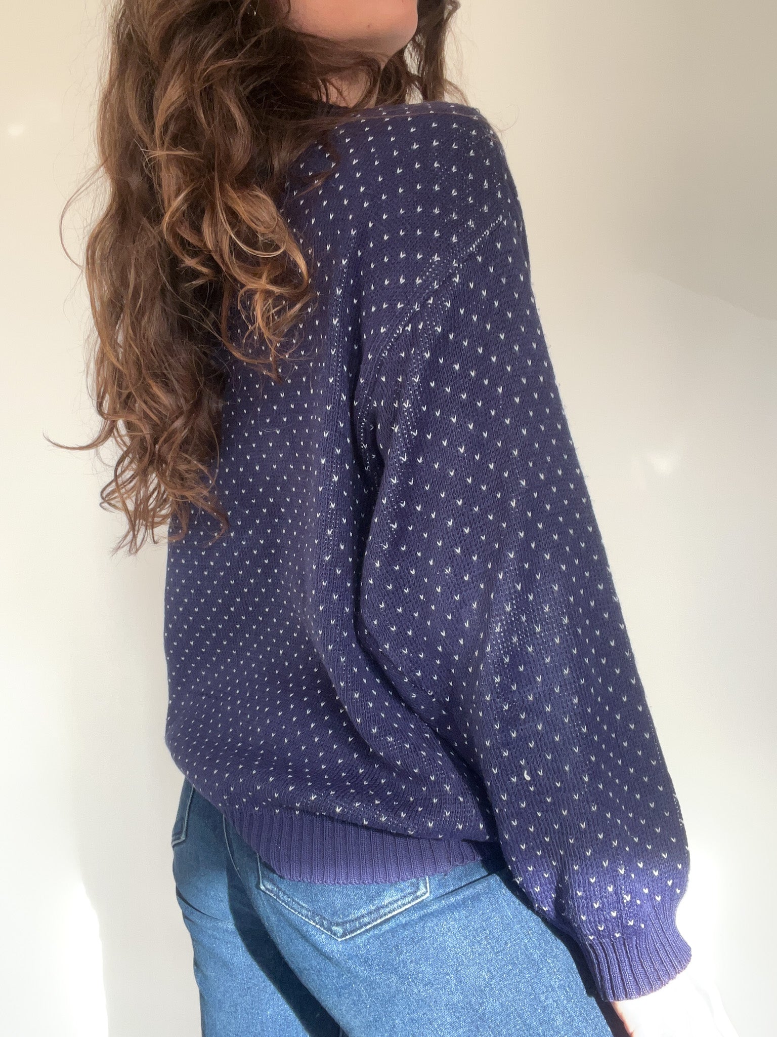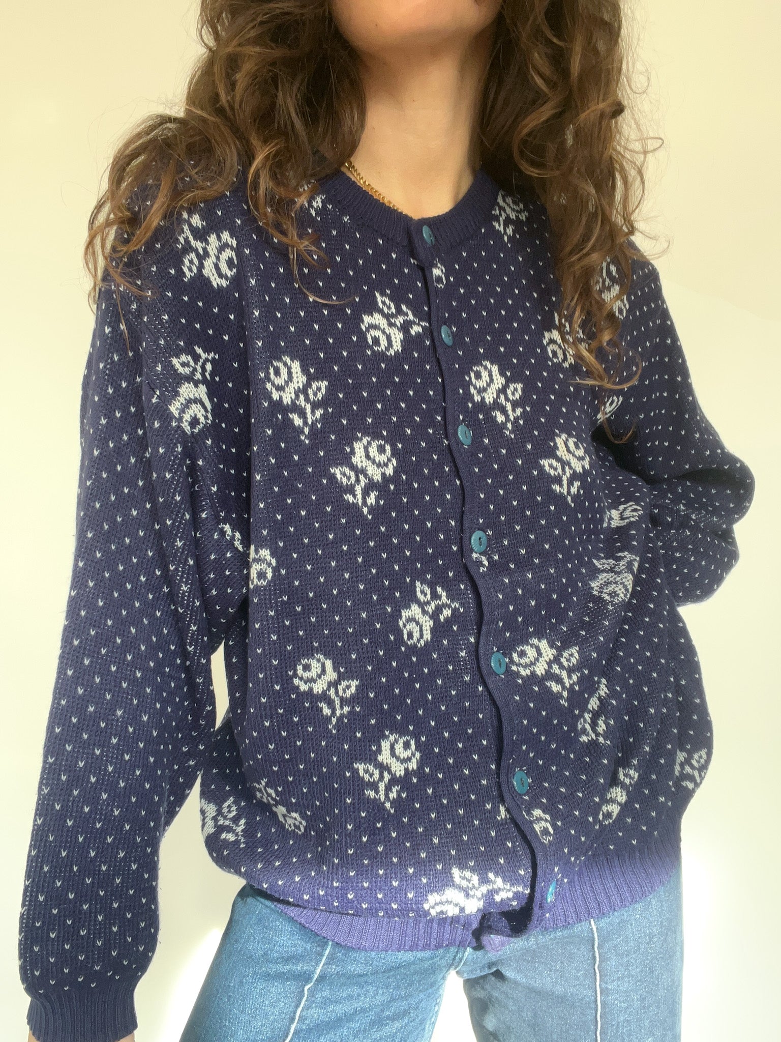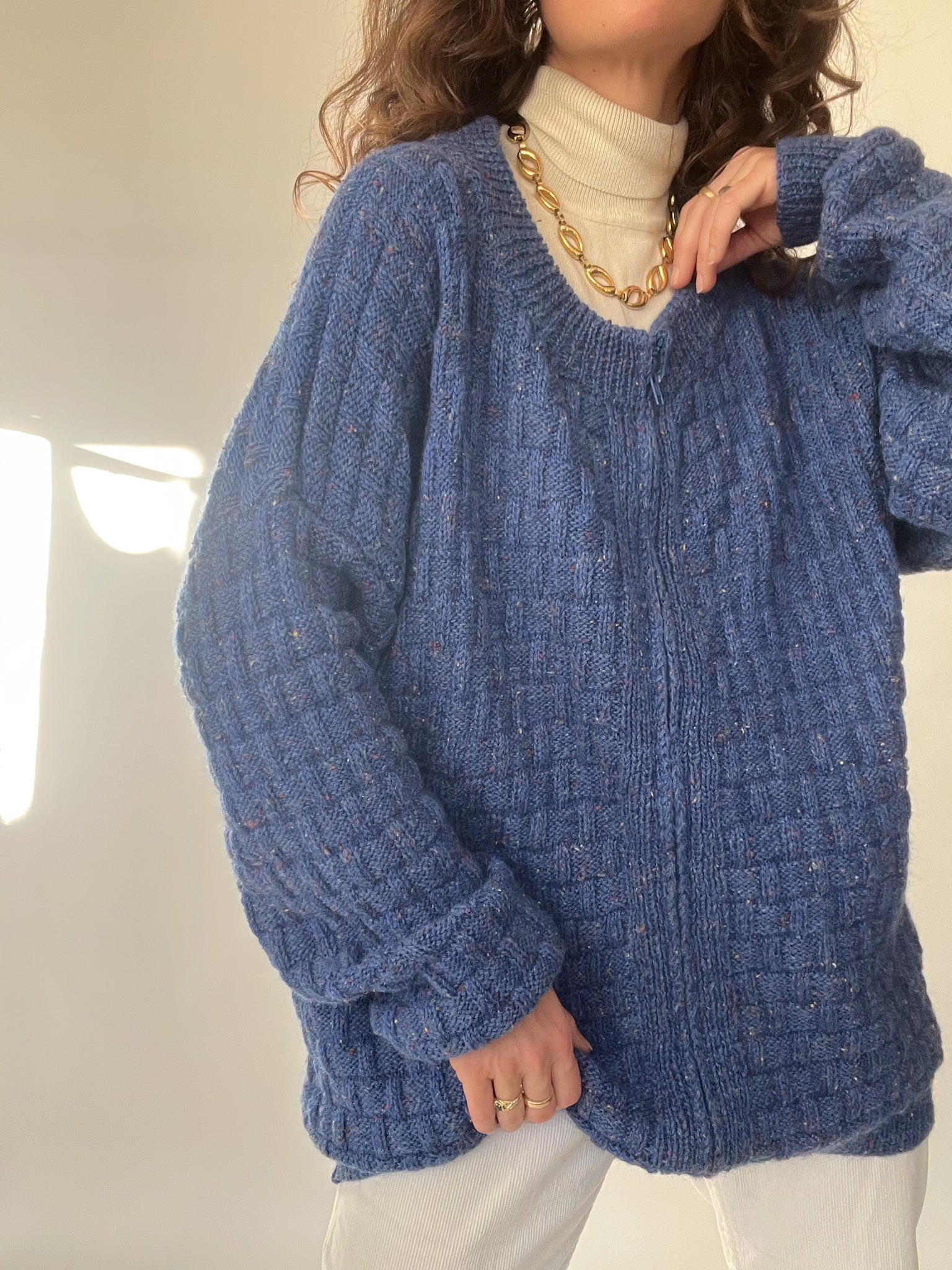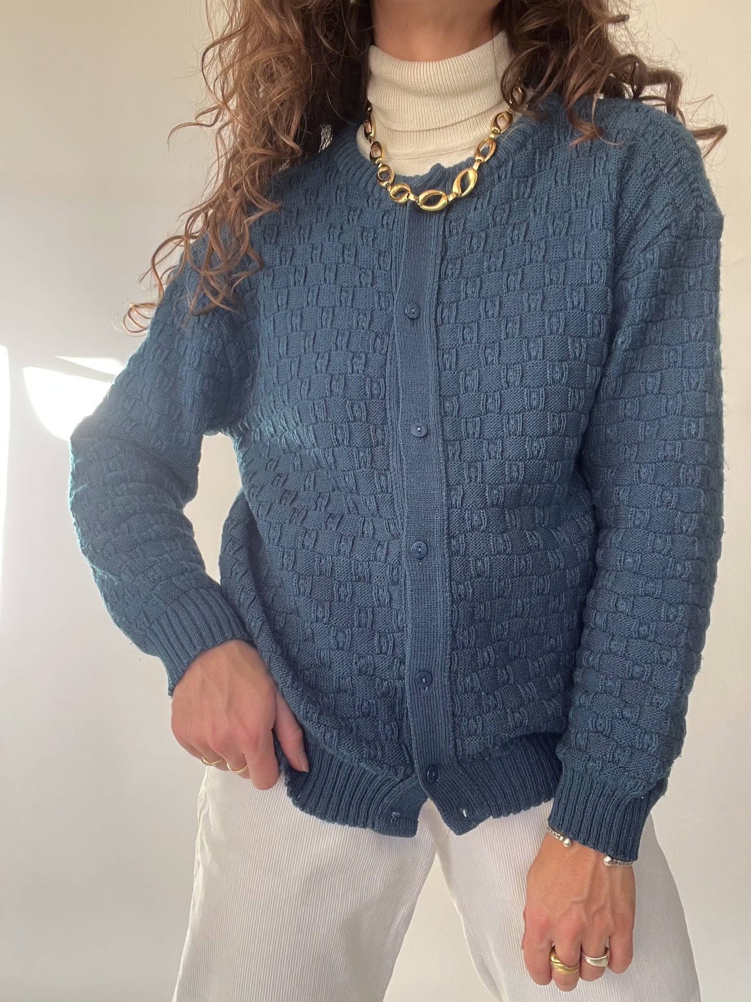 Vintage 80’s Oversized Blue Textured Knit Zip Cardigan