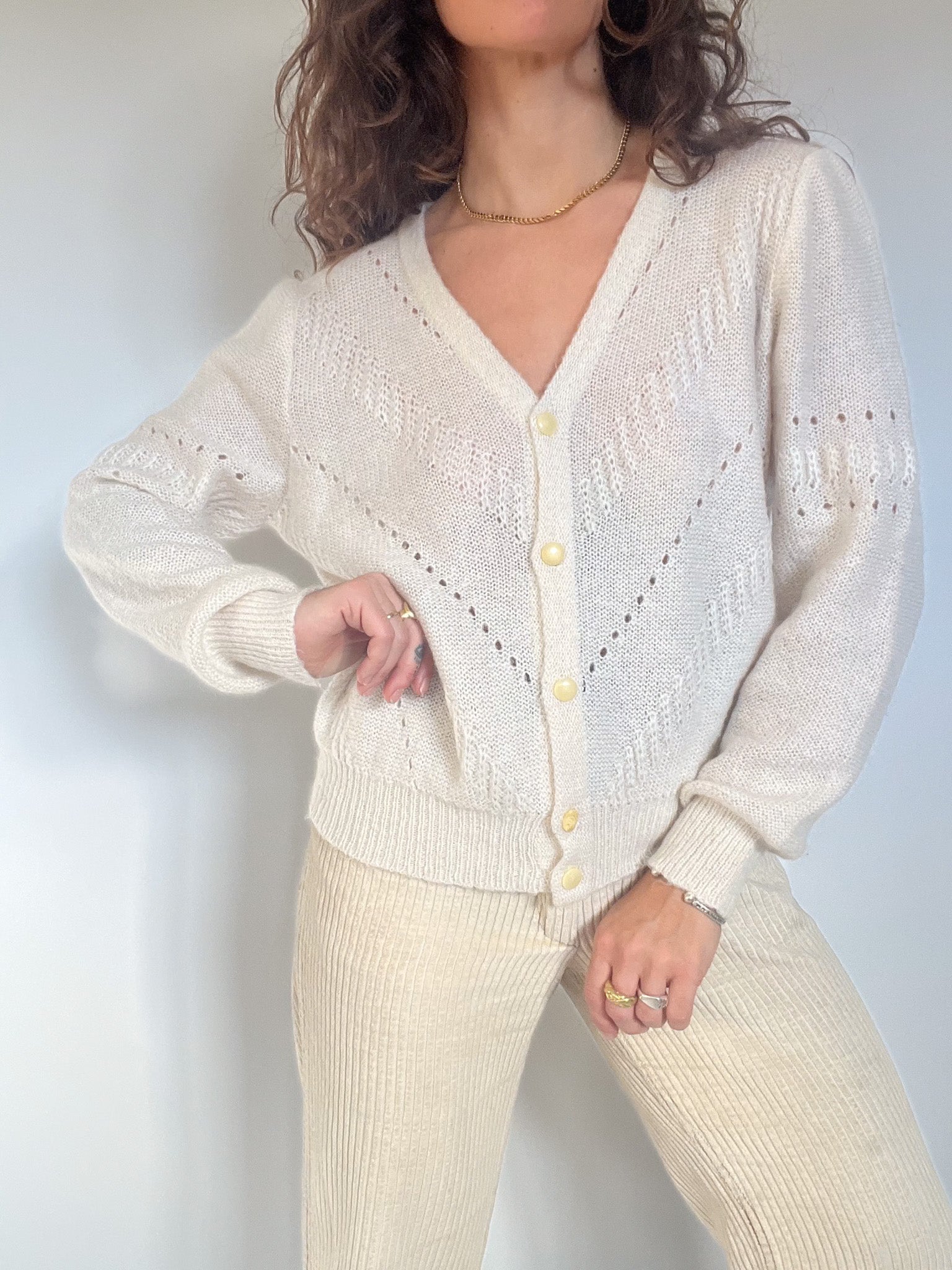 Vintage 90’s Cream Openwork Buttoned Cardigan