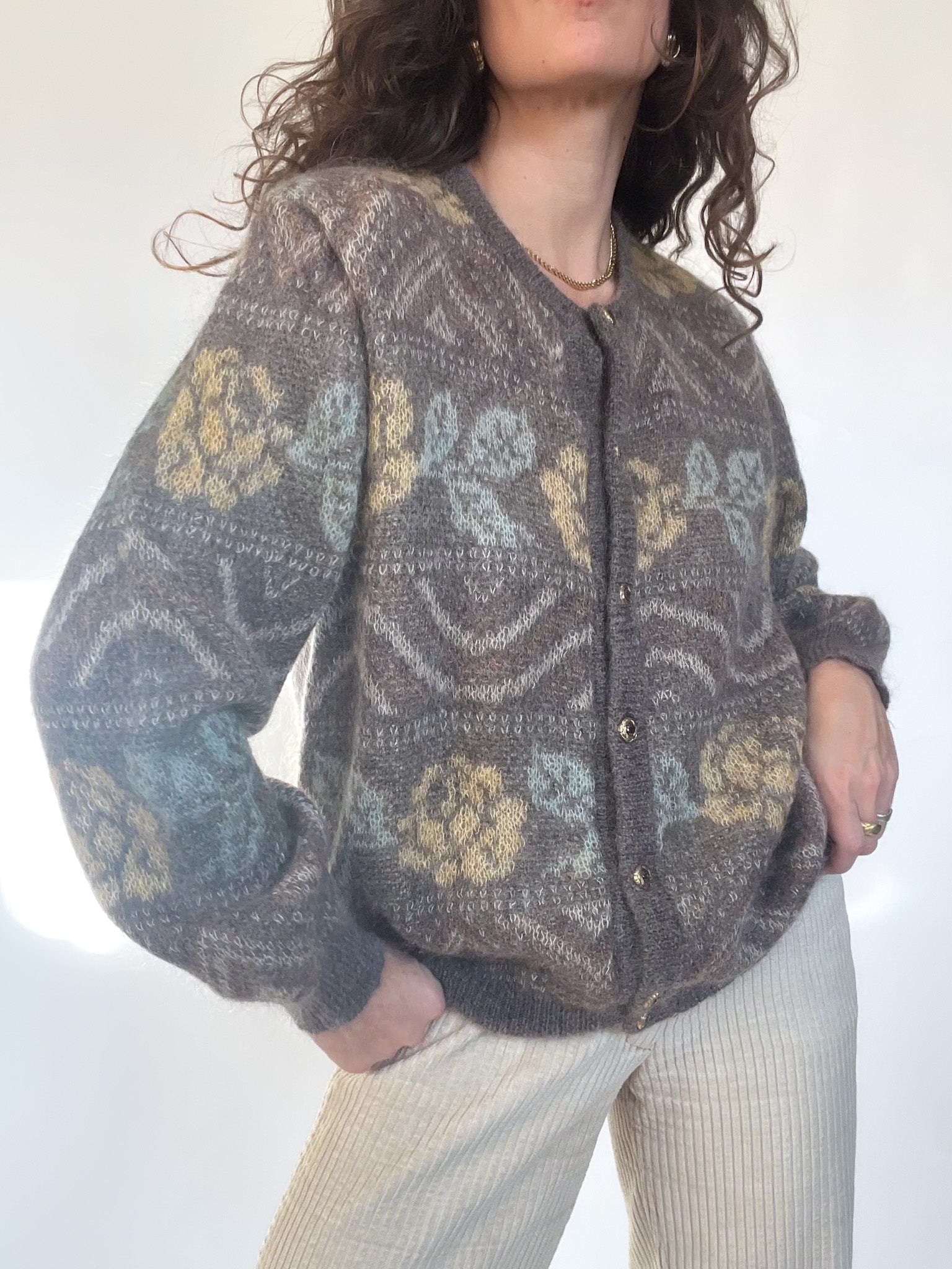Vintage 90’s Italian Kid Mohair Floral Cardigan