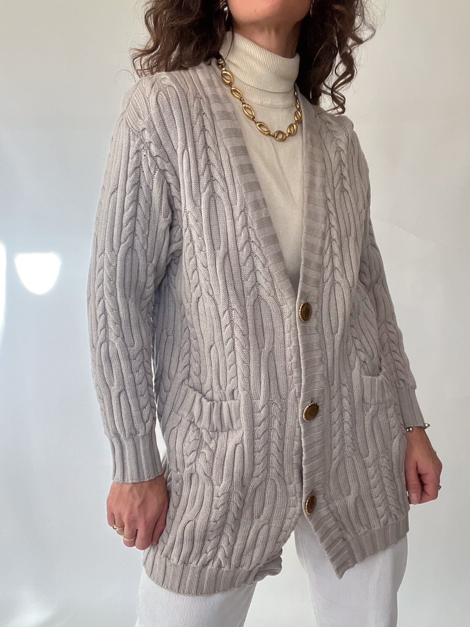 Vintage 80’s Soft Grey Cable Knit Cardigan