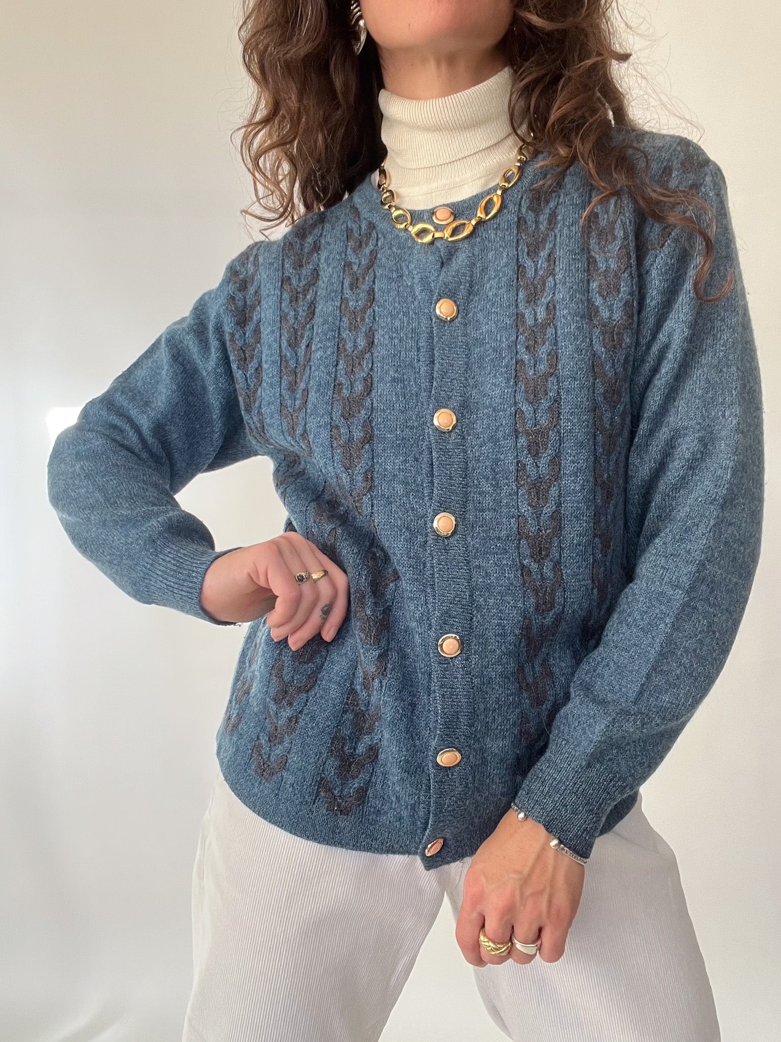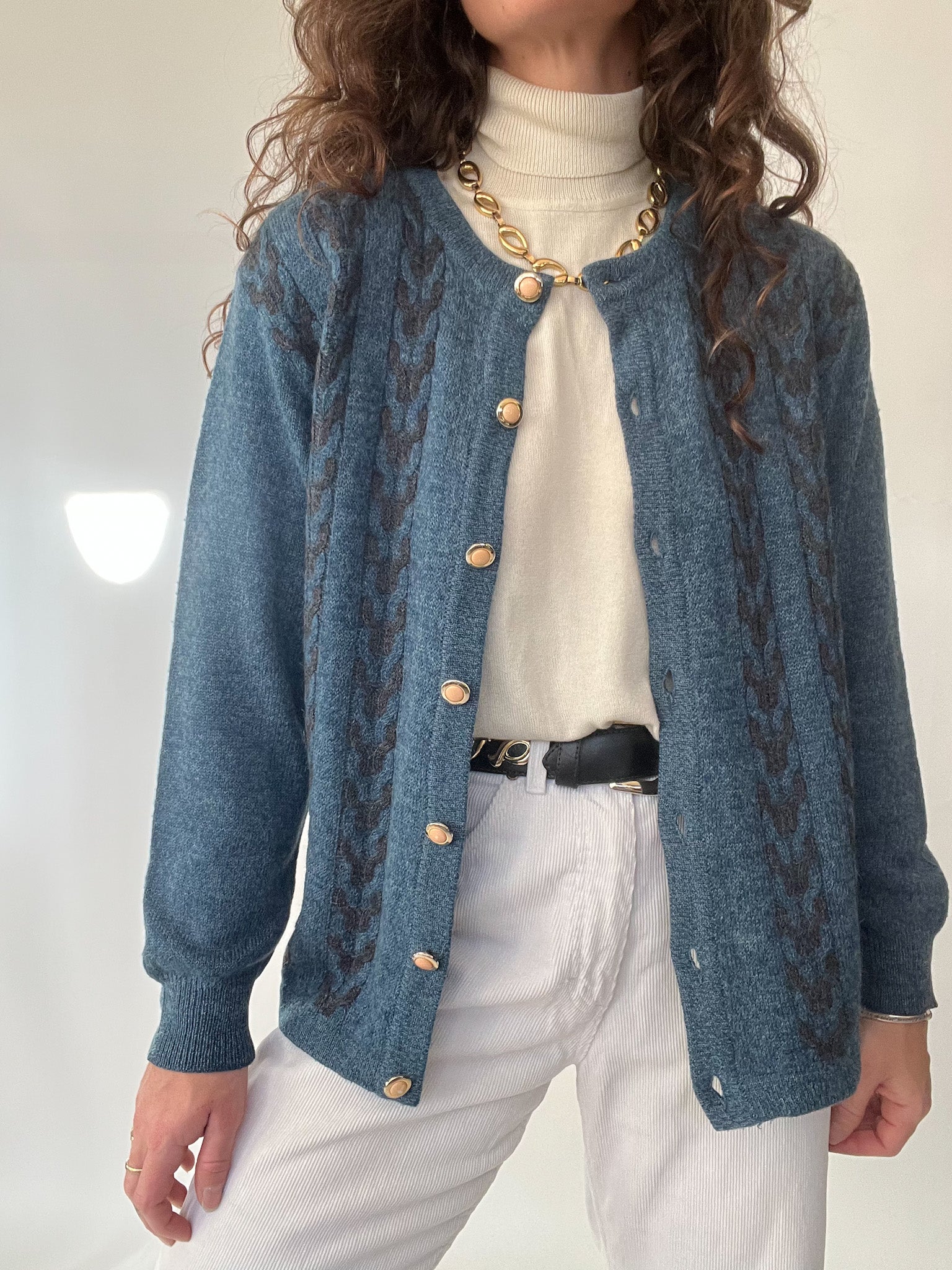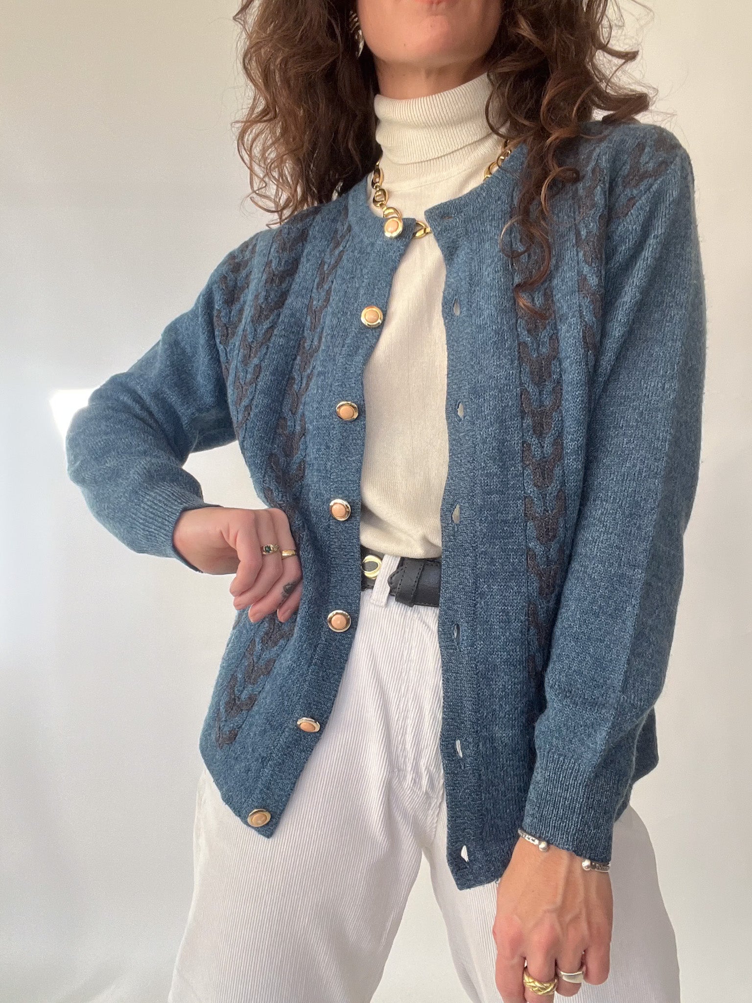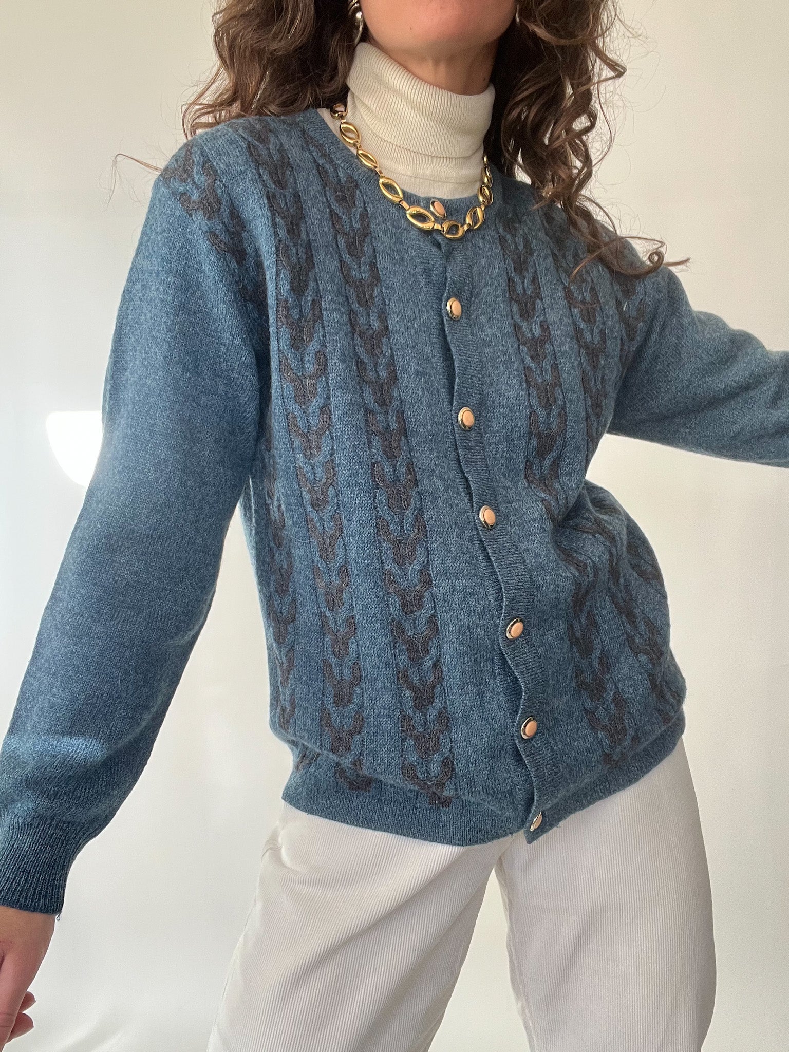 Vintage 90’s Blue Alpaca&Wool Blend Cardigan