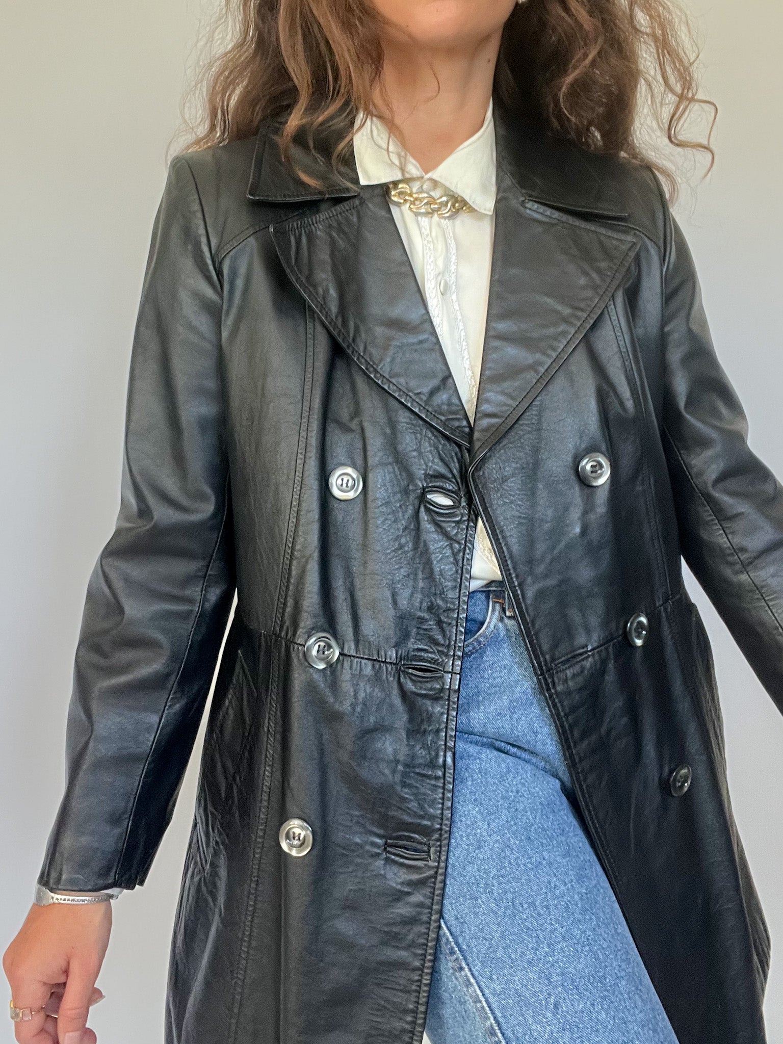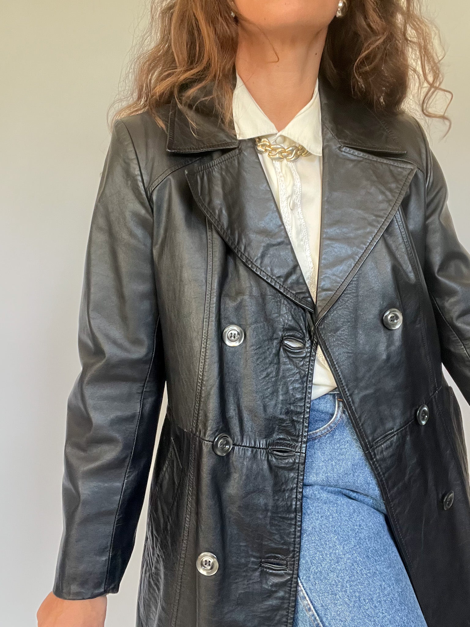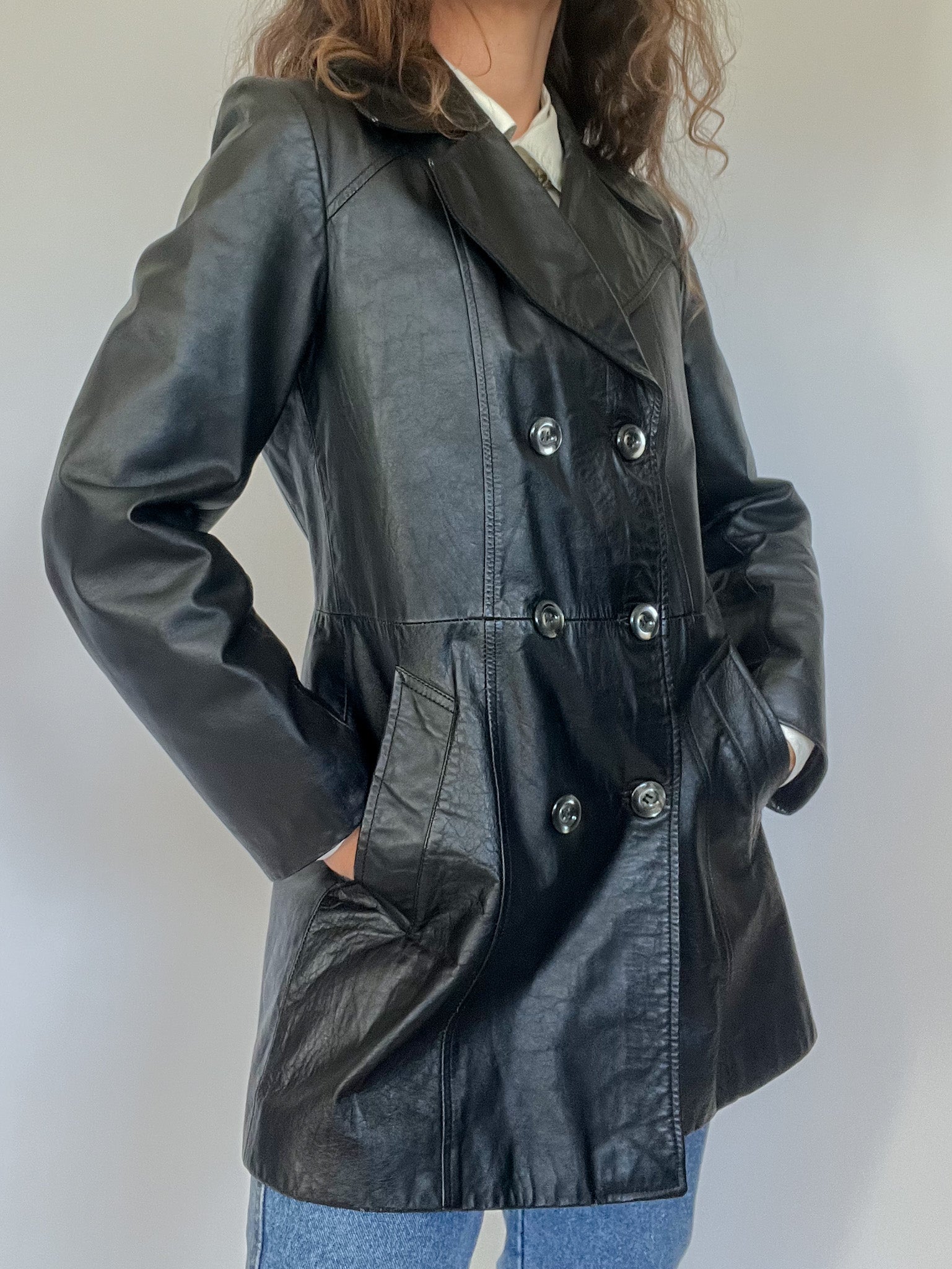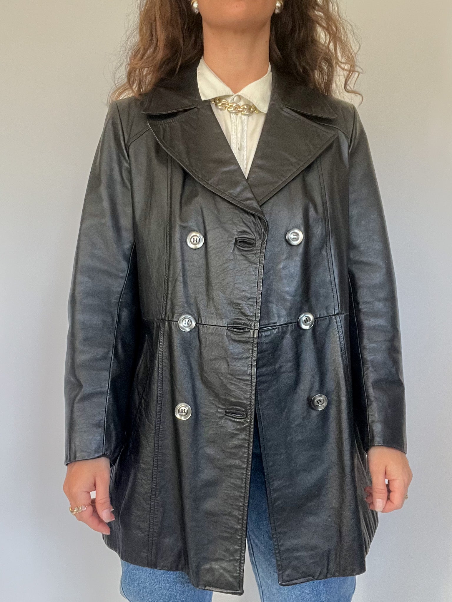Vintage 80’s Italian Black Double-Breasted Leather Coat