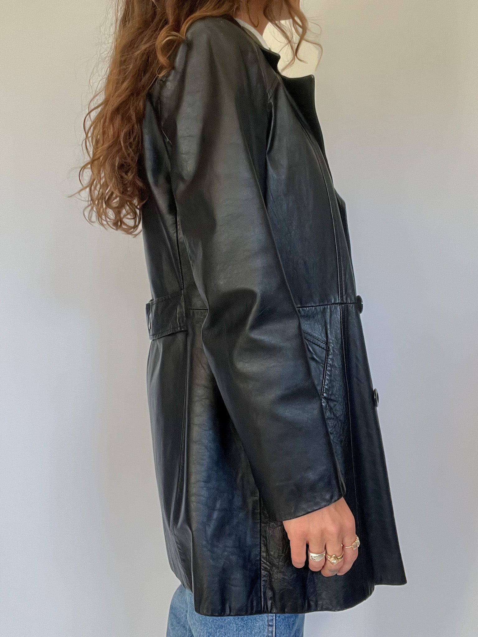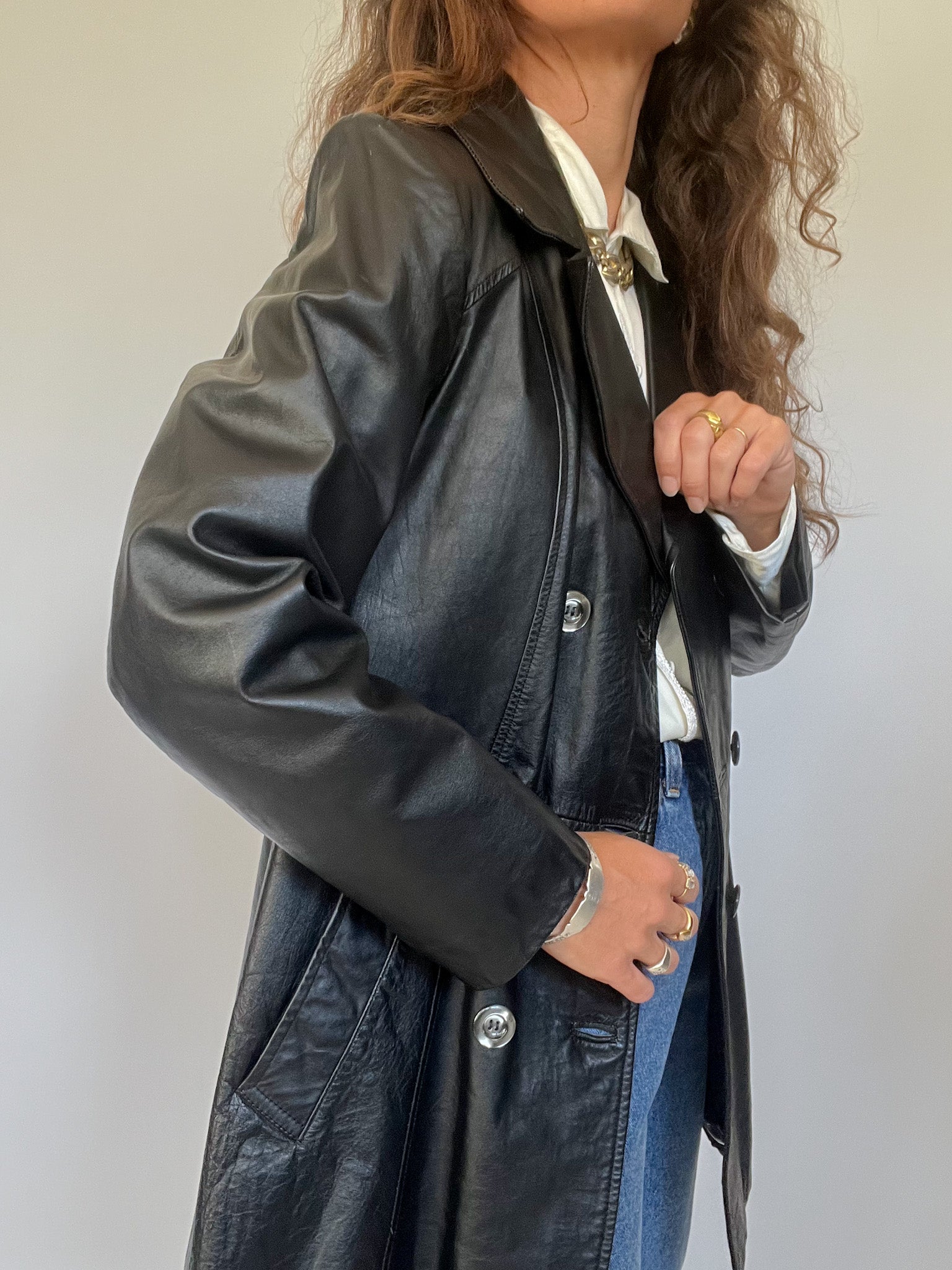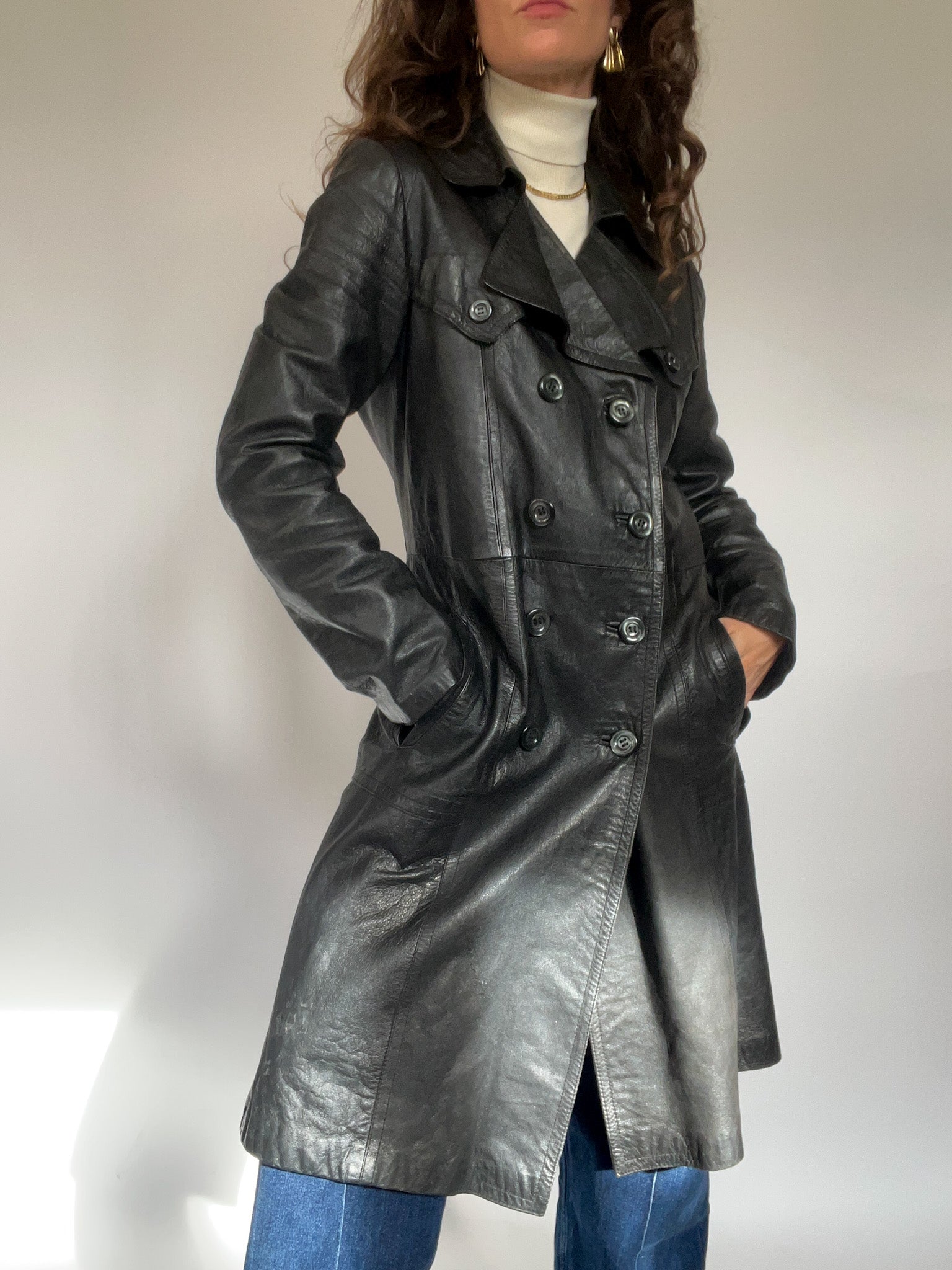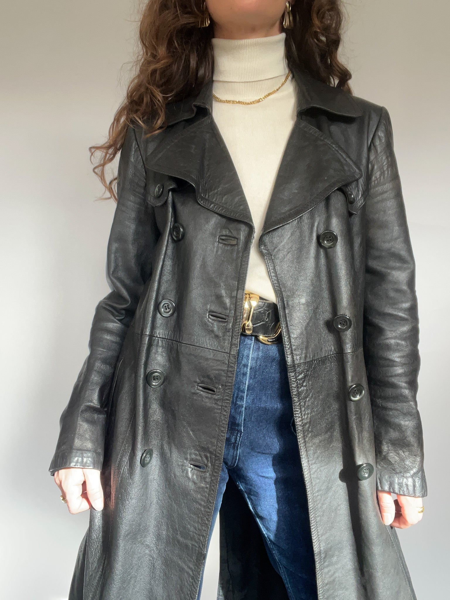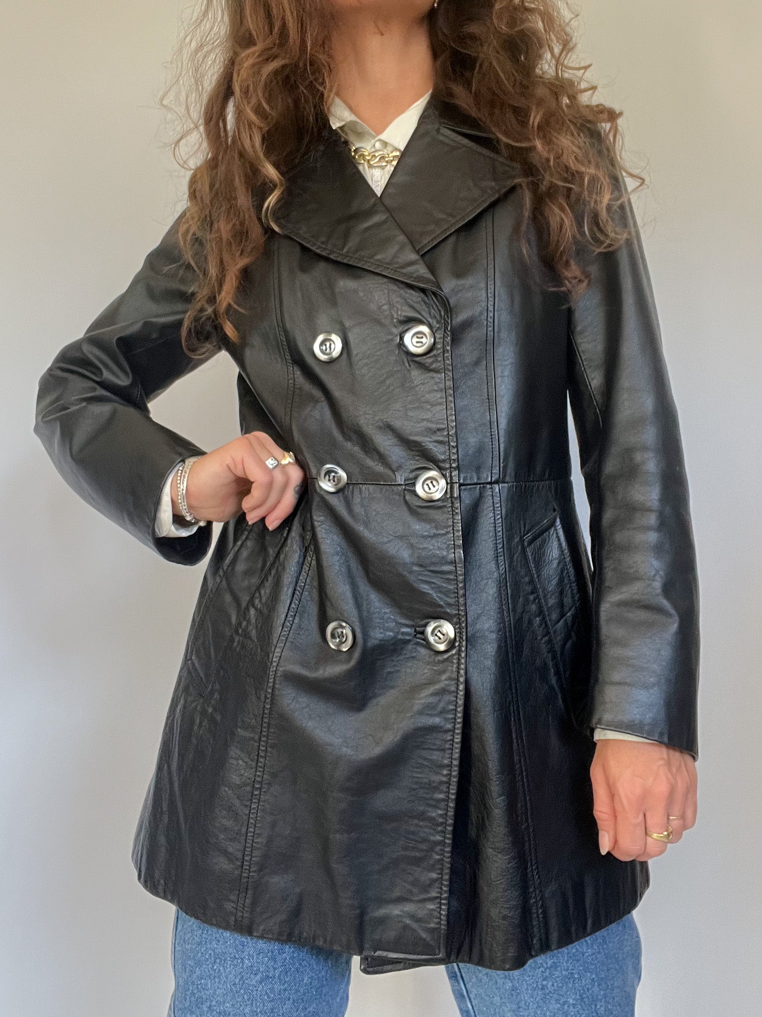 Vintage 80’s Italian Black Double-Breasted Leather Coat