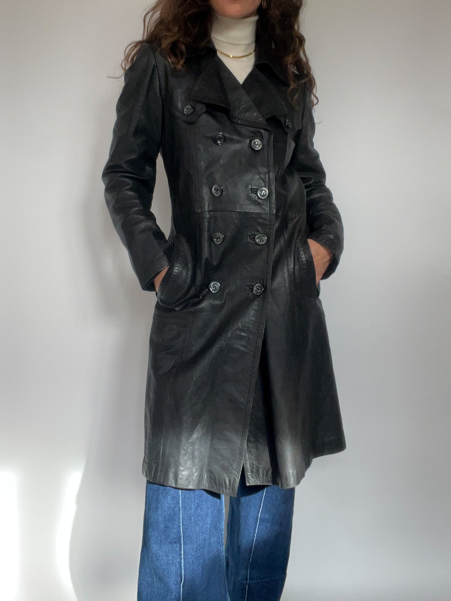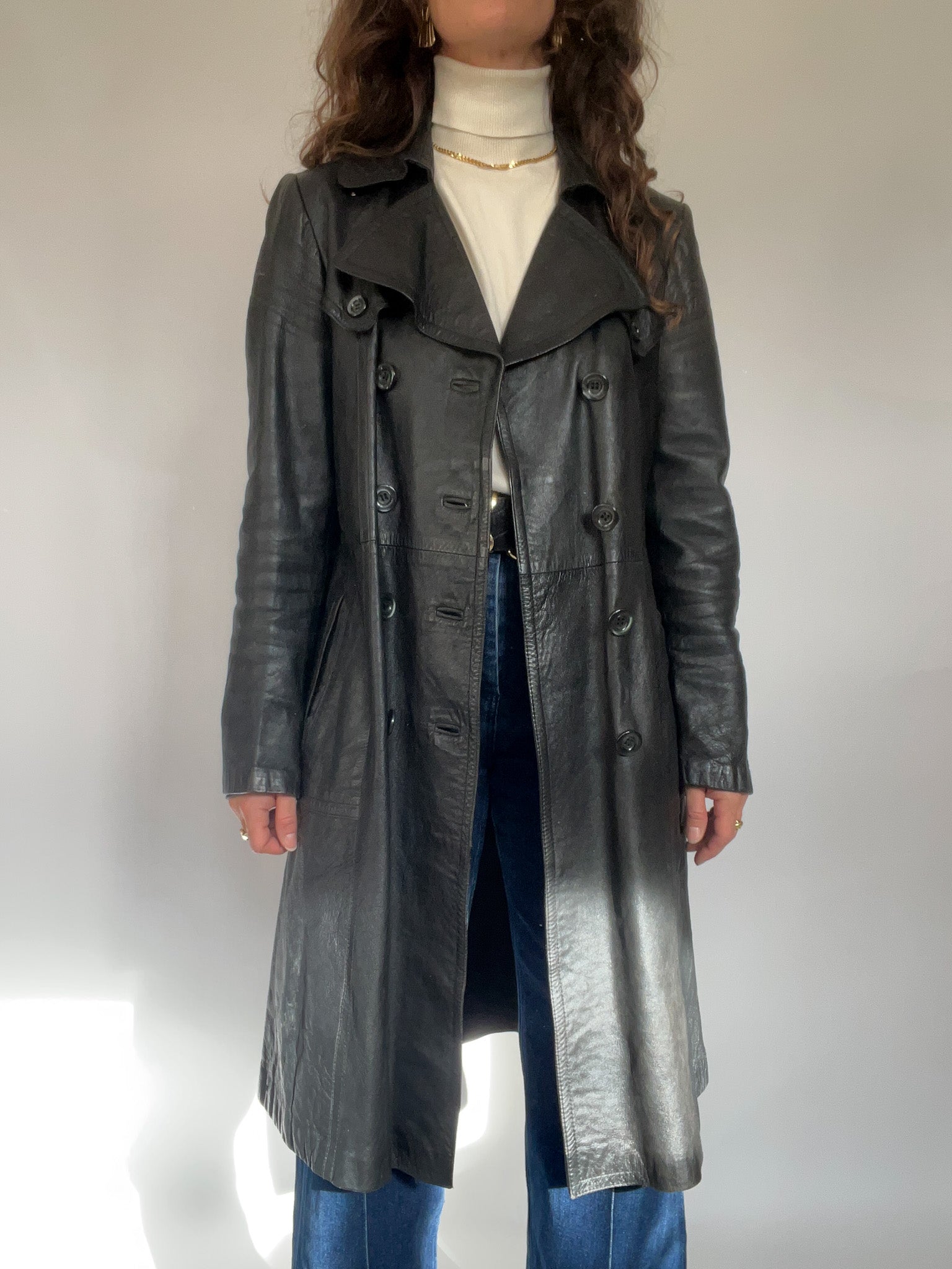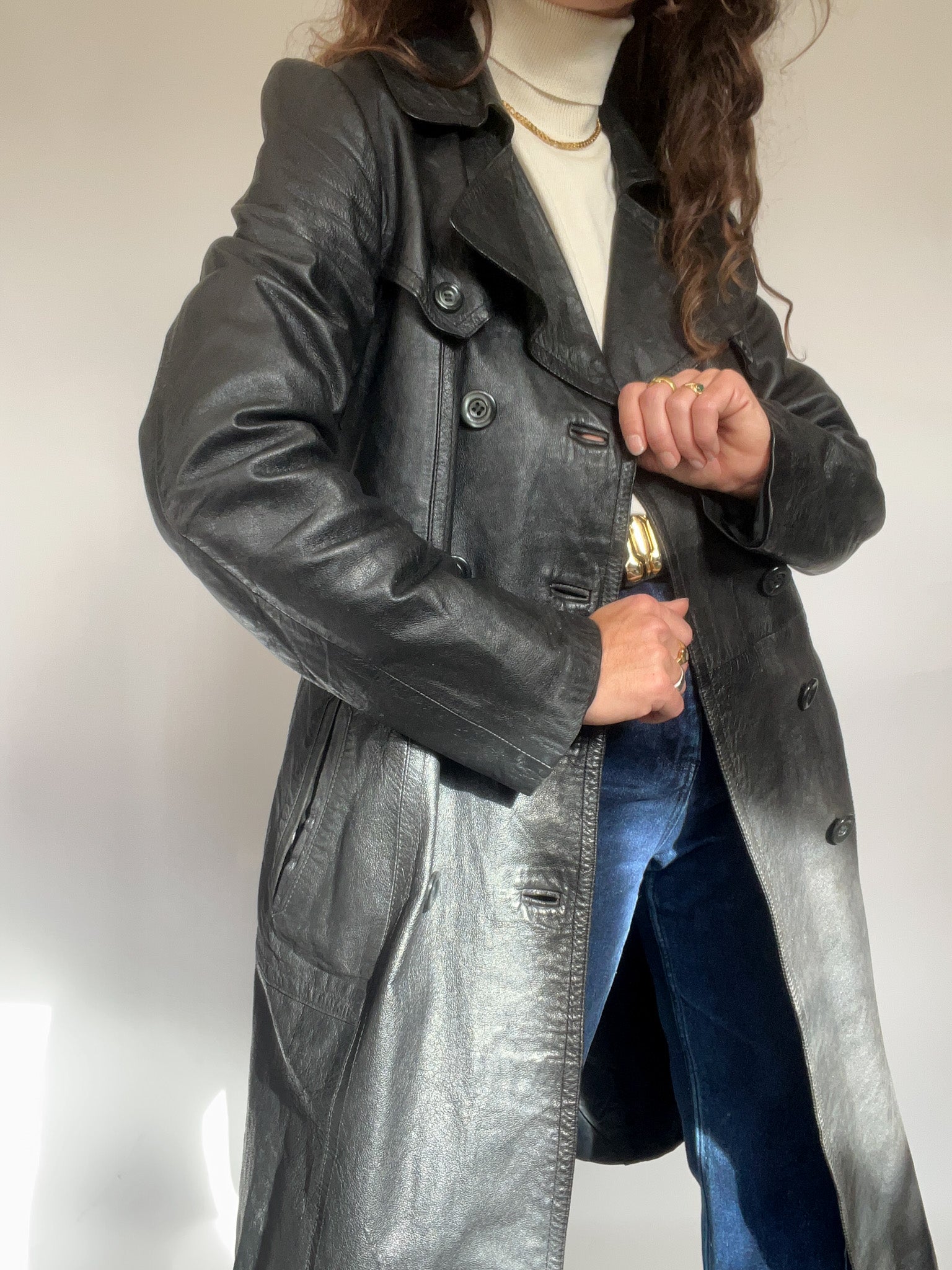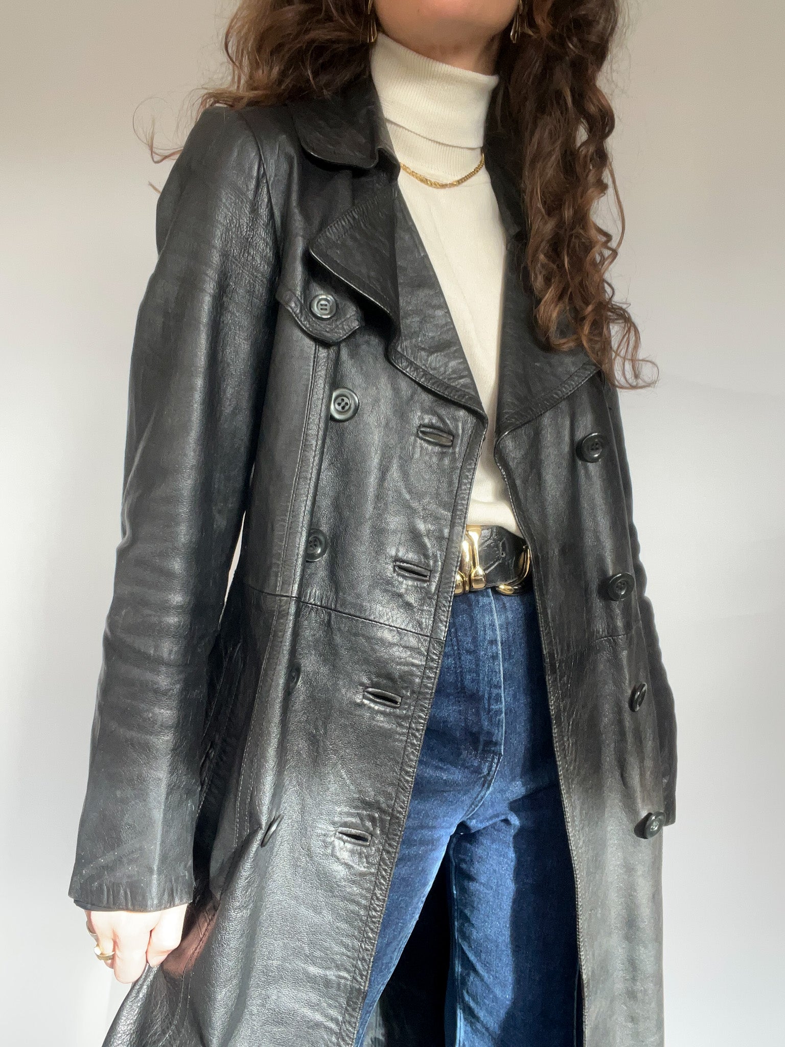 Vintage 80’s Italian Black Double-Breasted Leather Coat