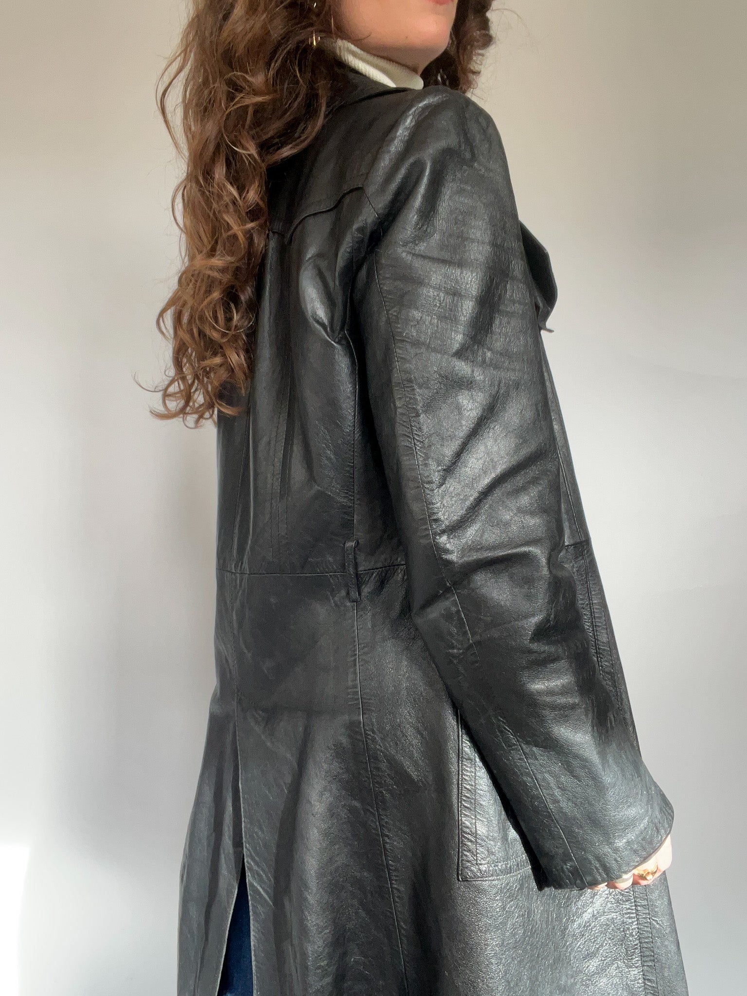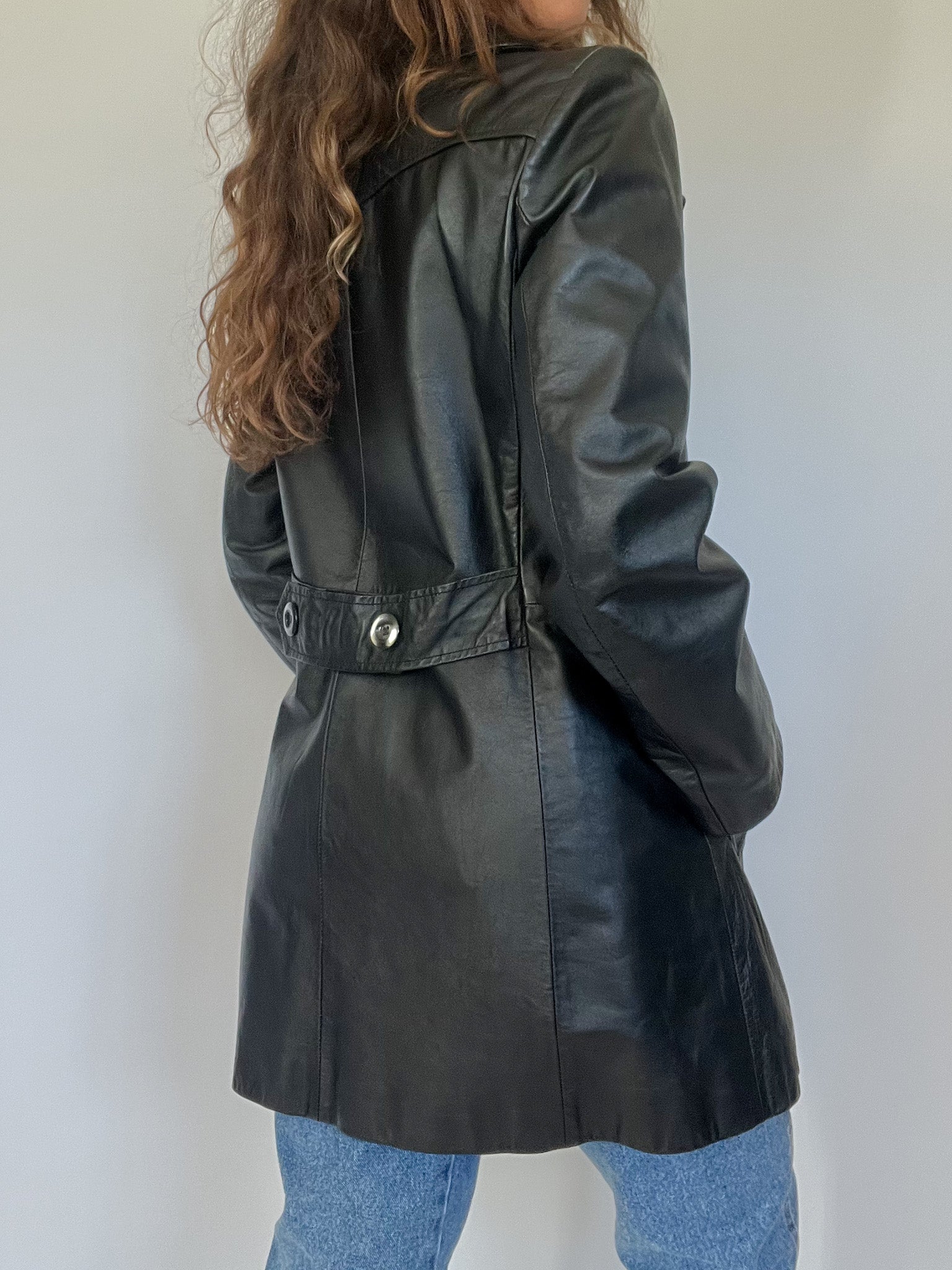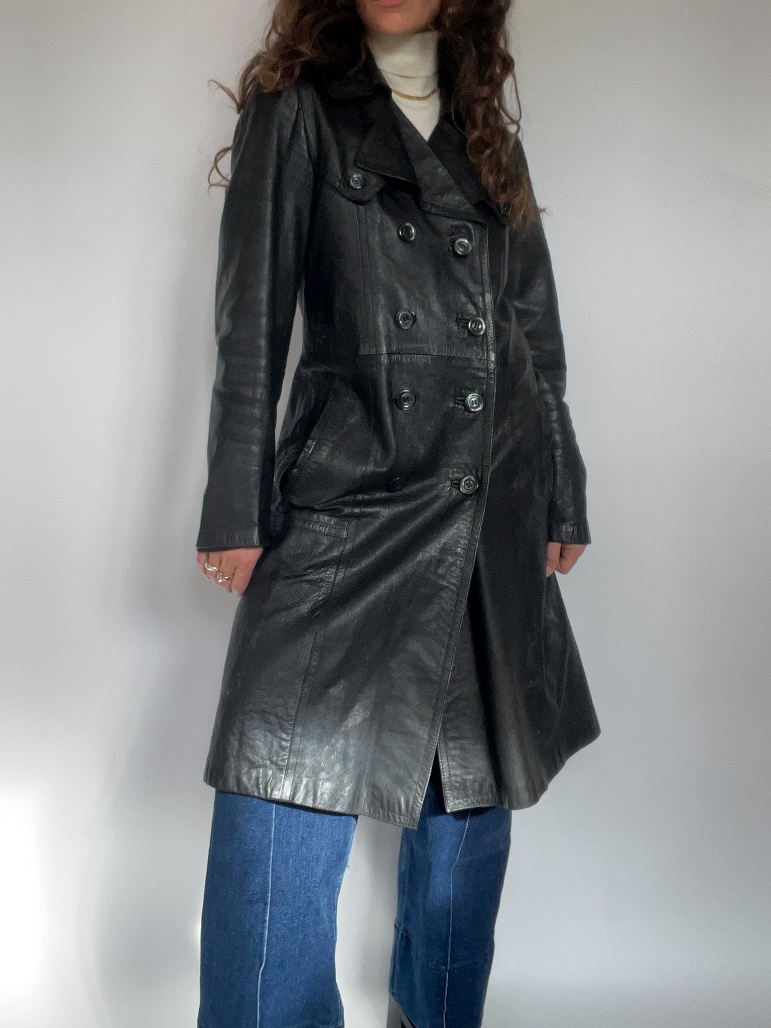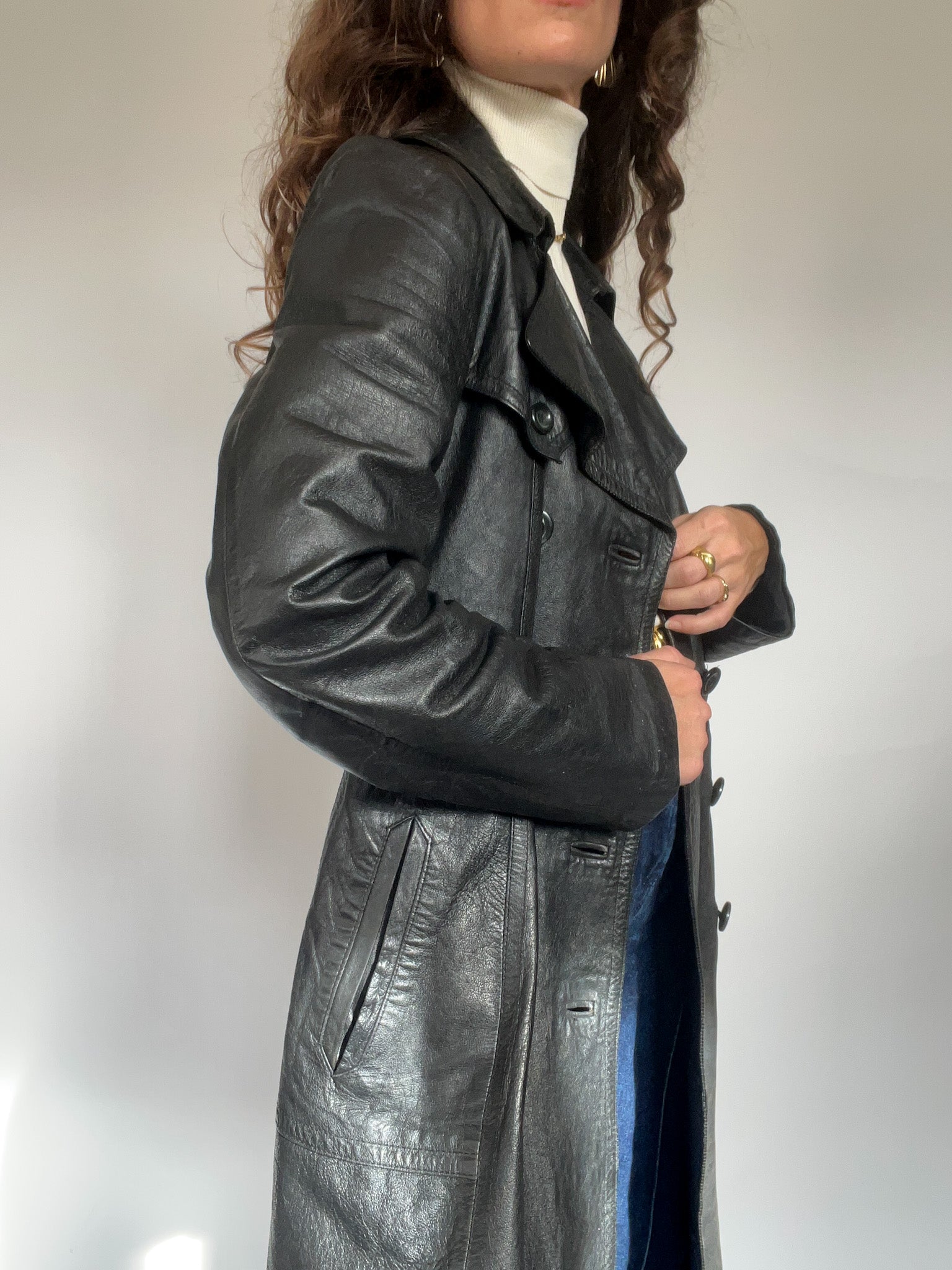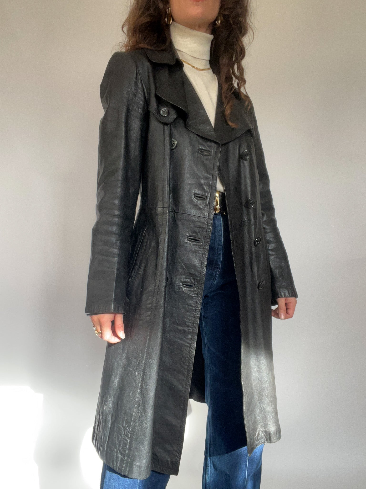 Vintage 80’s Italian Black Double-Breasted Leather Coat