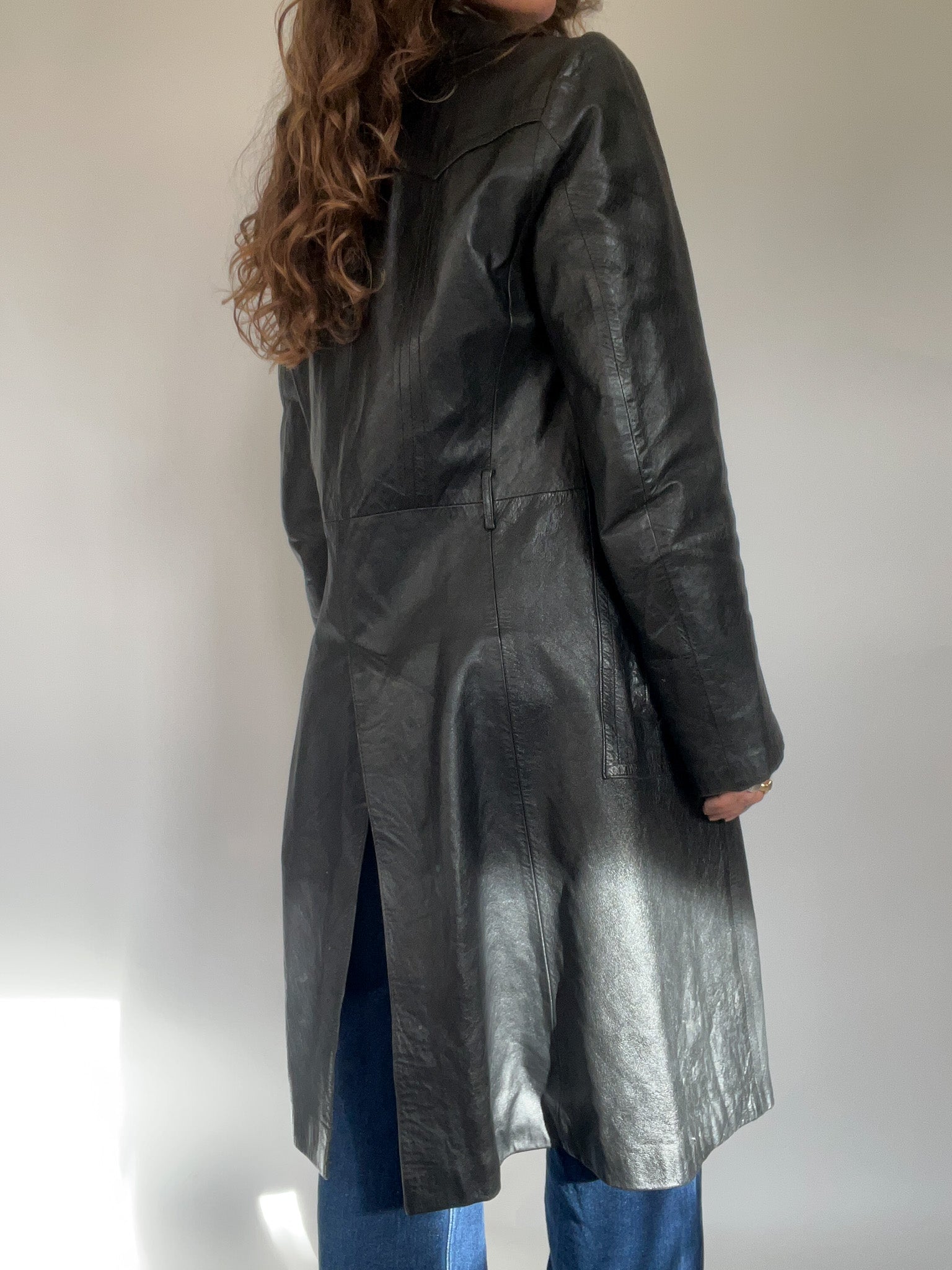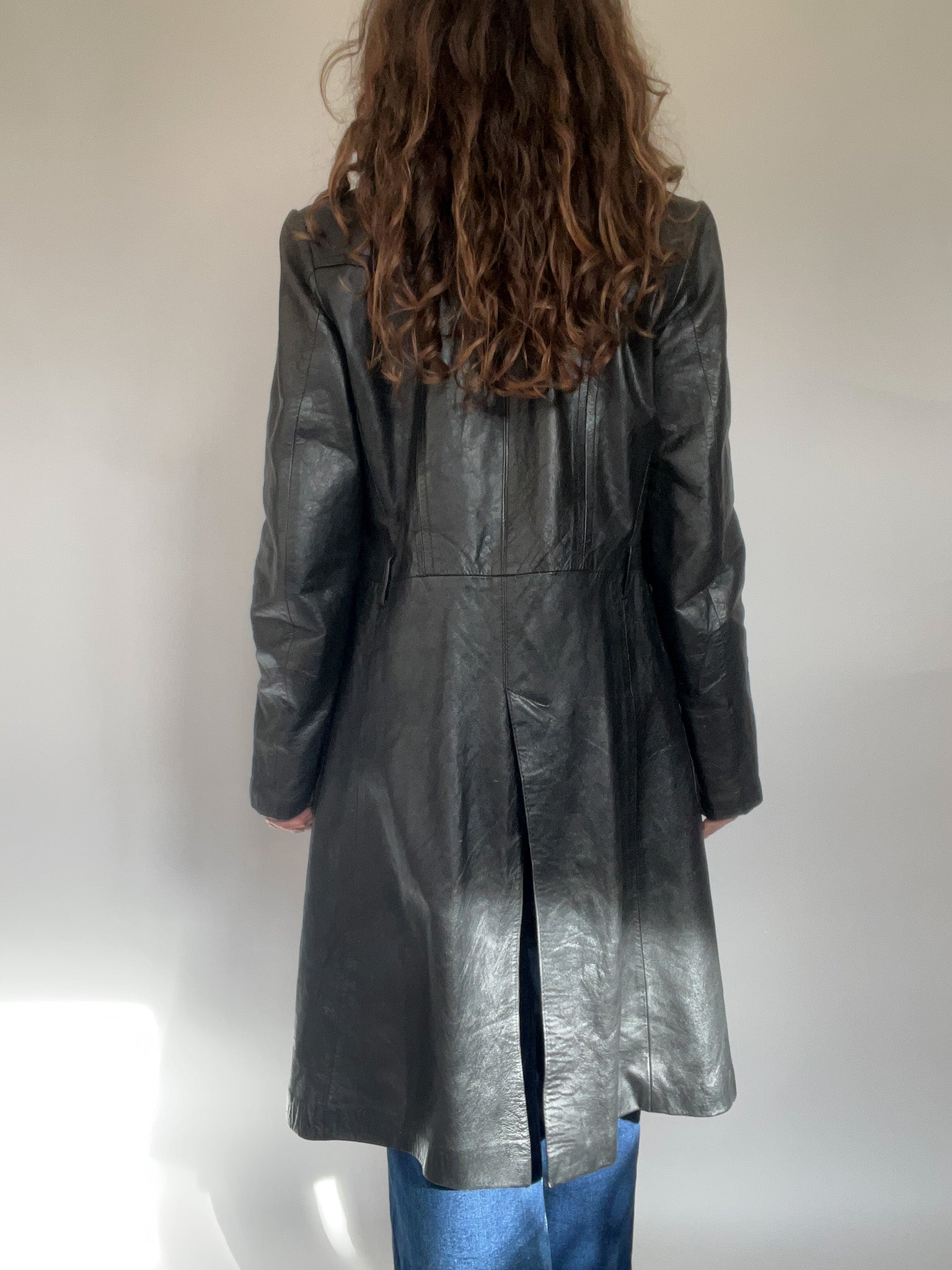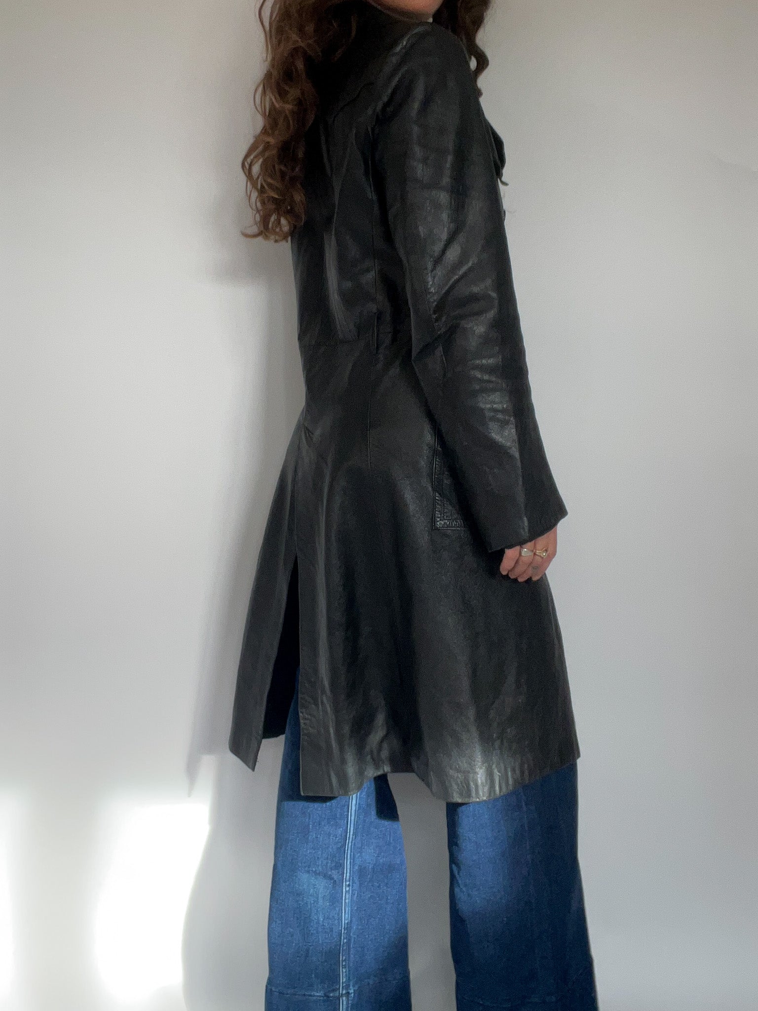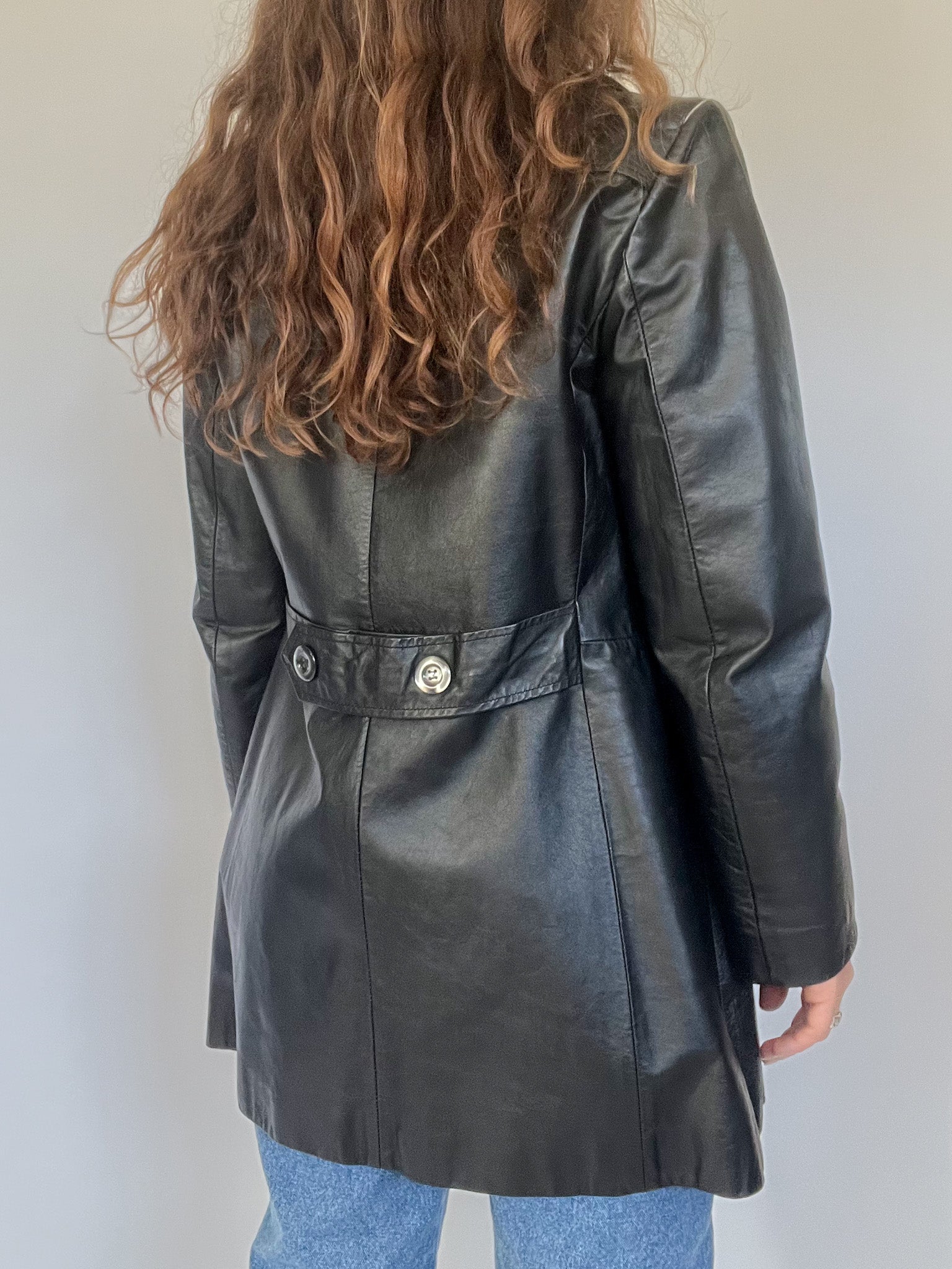 Vintage 80’s Italian Black Double-Breasted Leather Coat