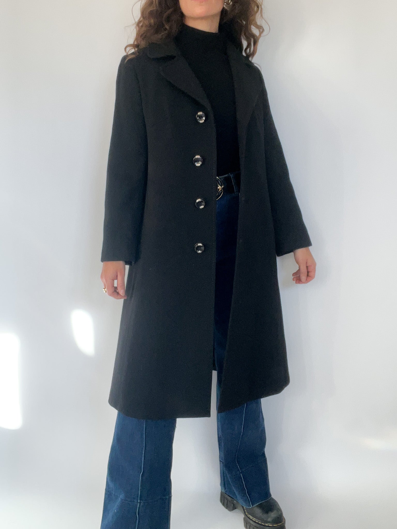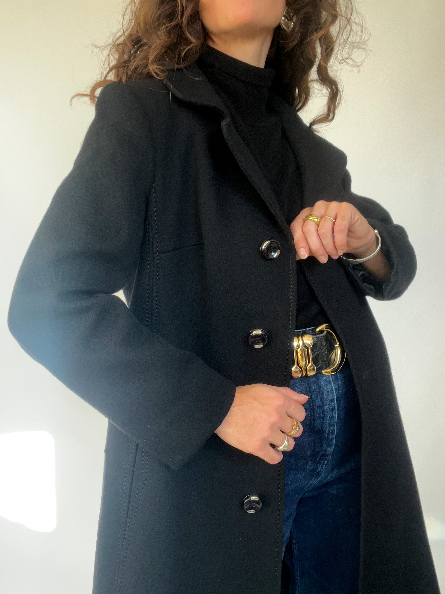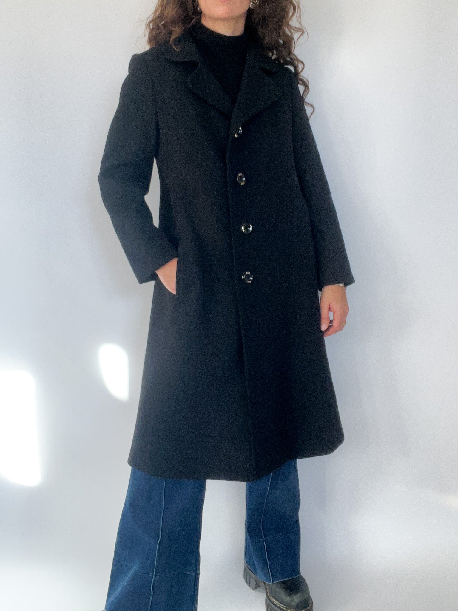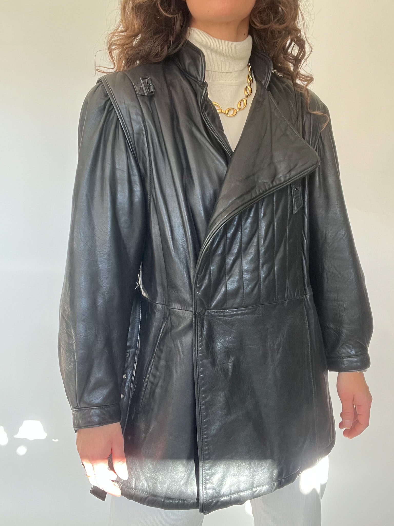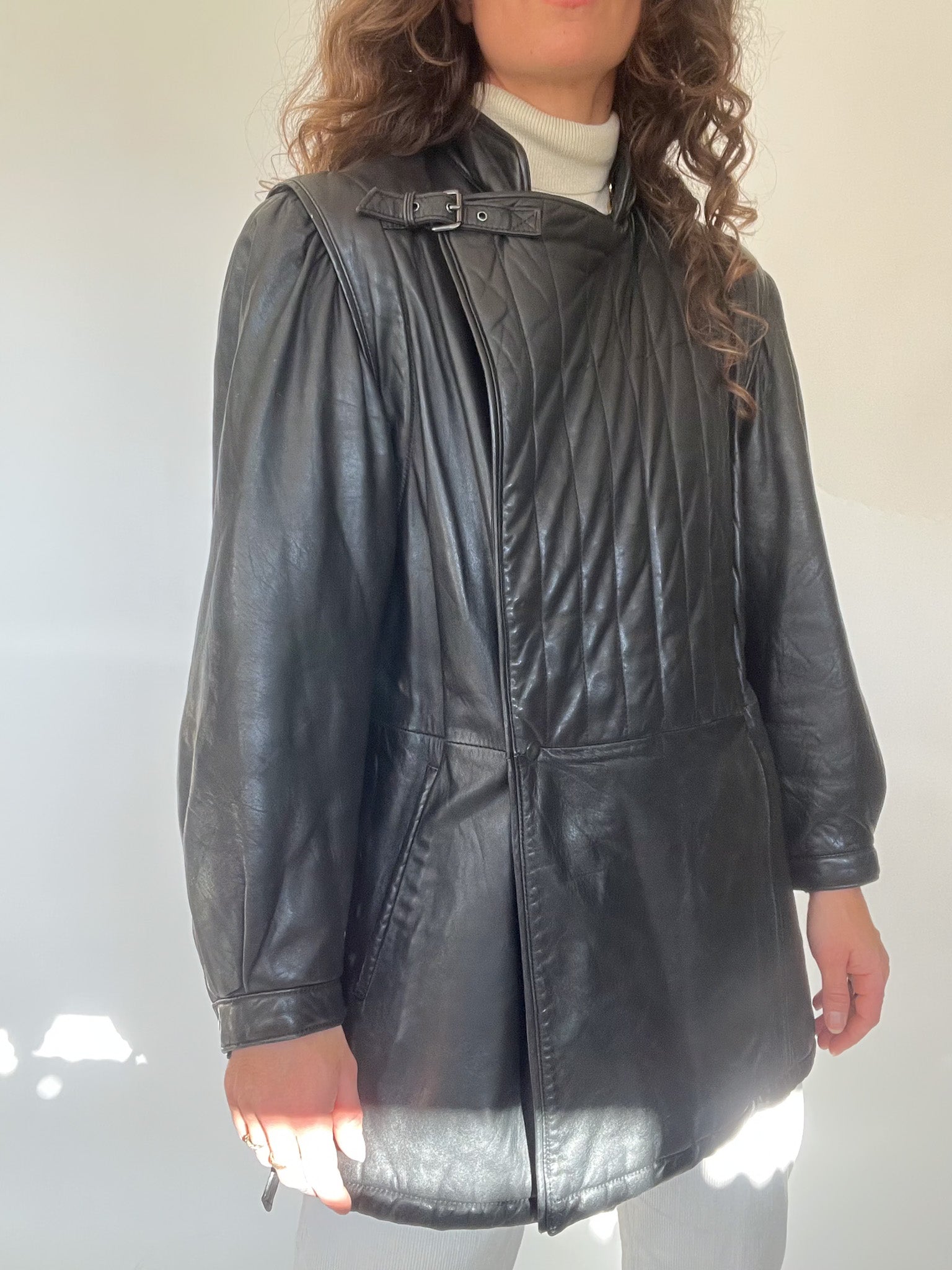 Vintage 80’s Italian Black Double-Breasted Leather Coat