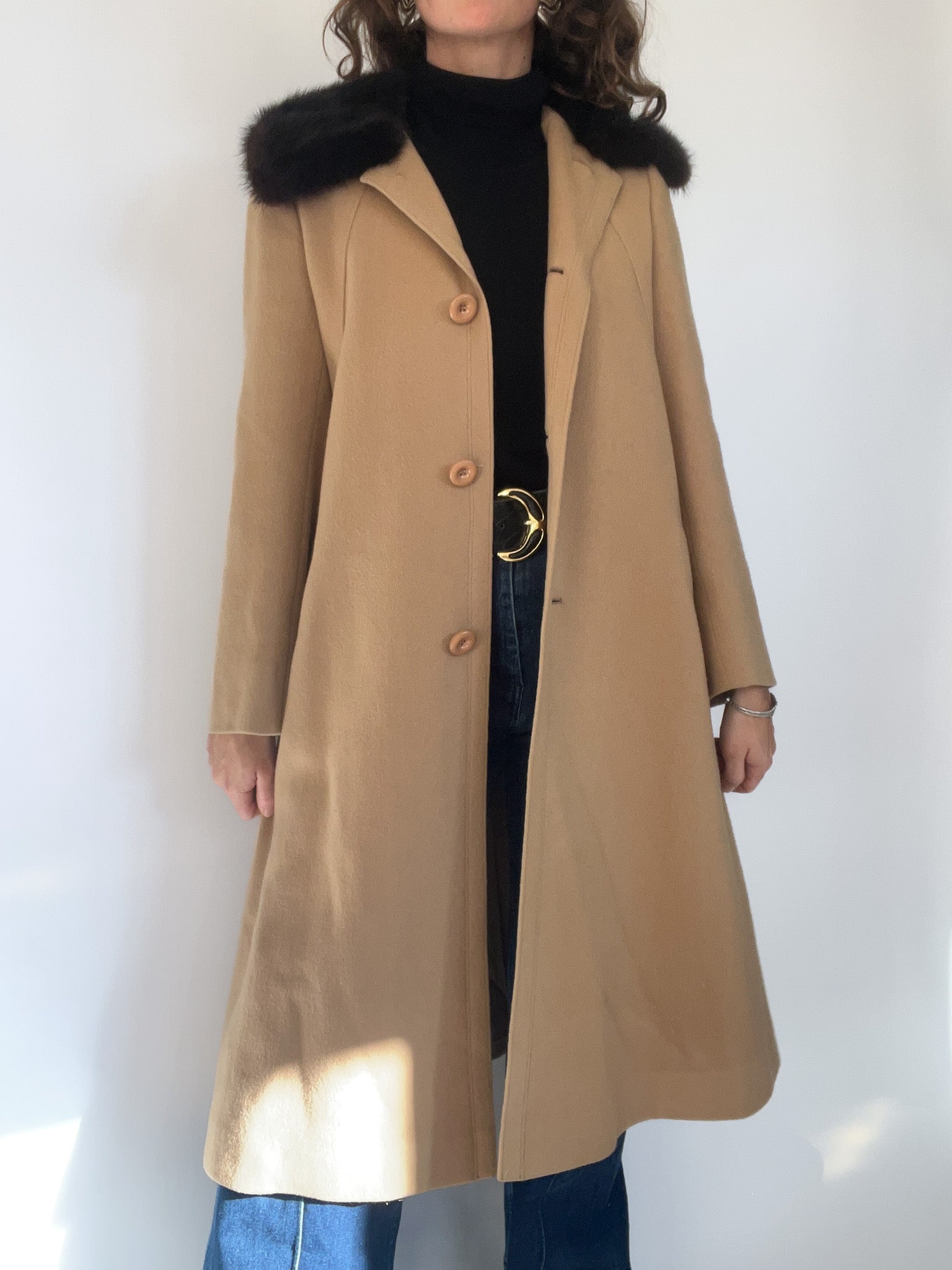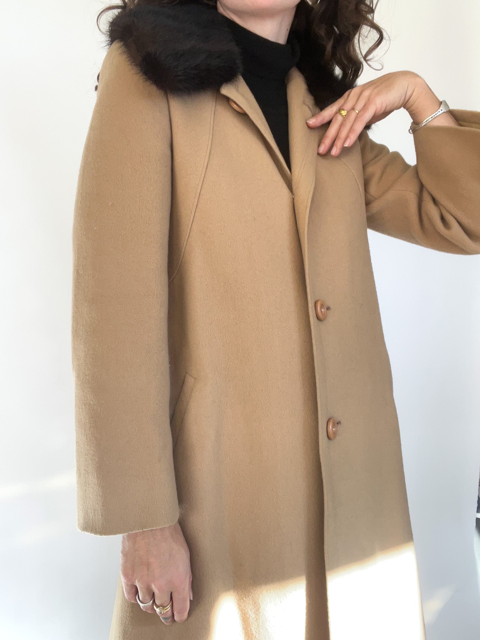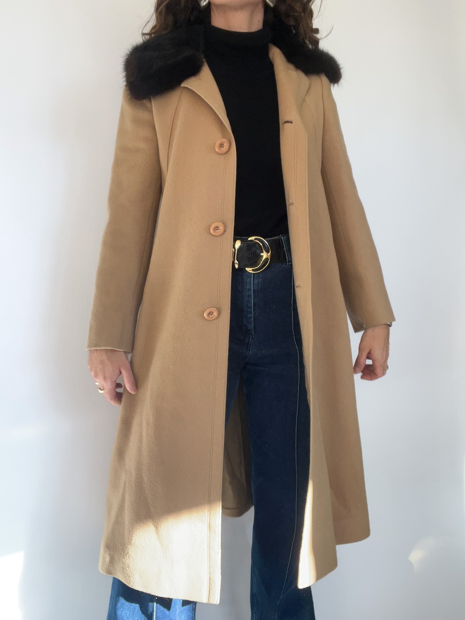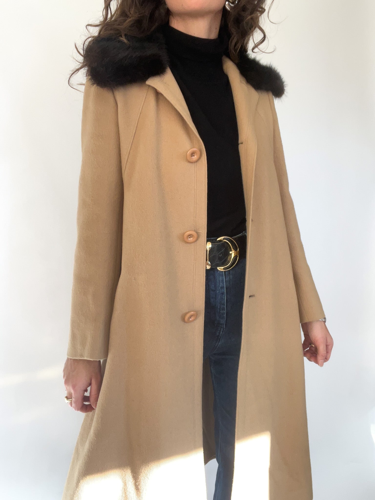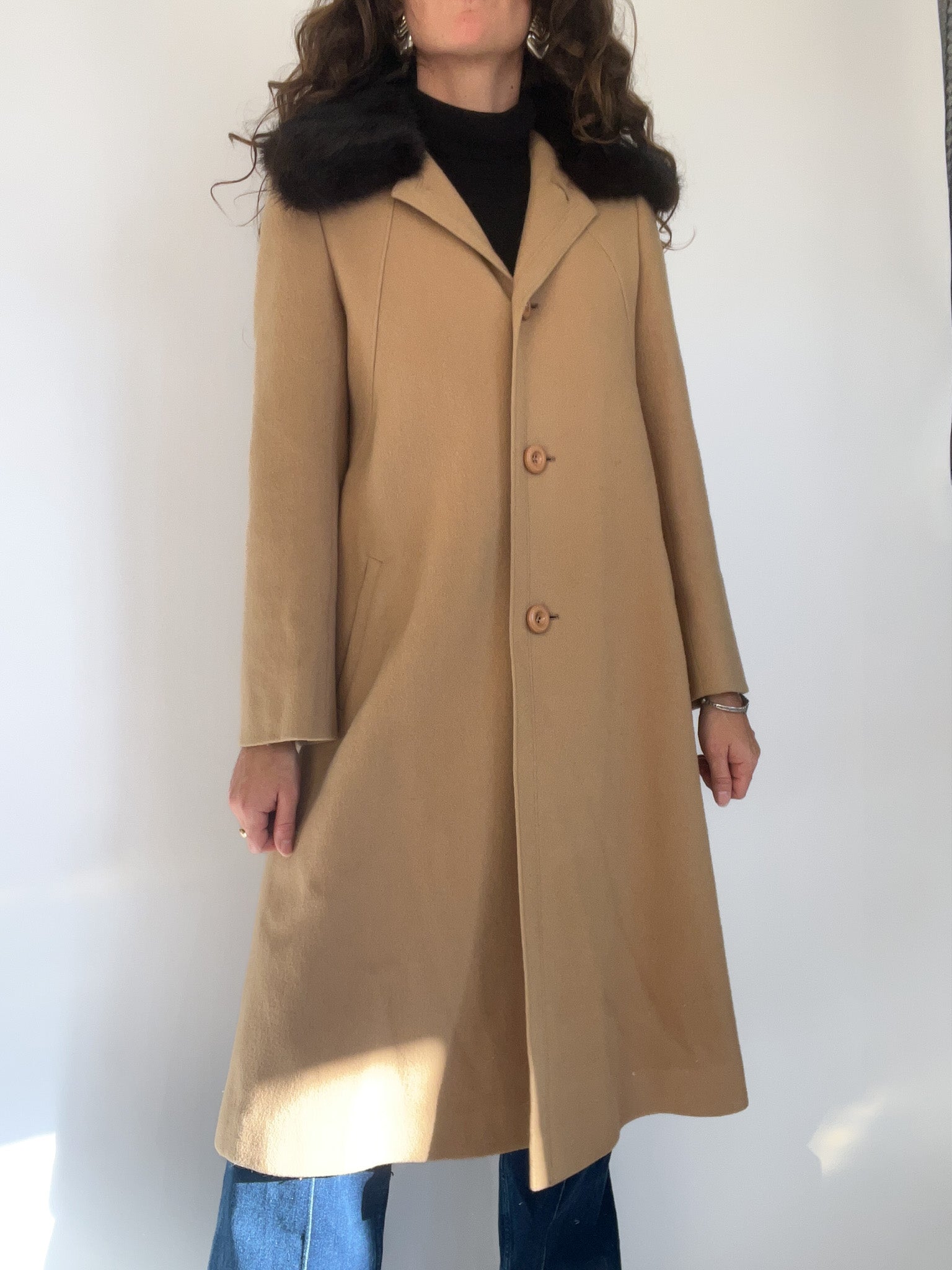 Vintage 70’s Camel Wool Coat with Detachable Faux Fur Collar