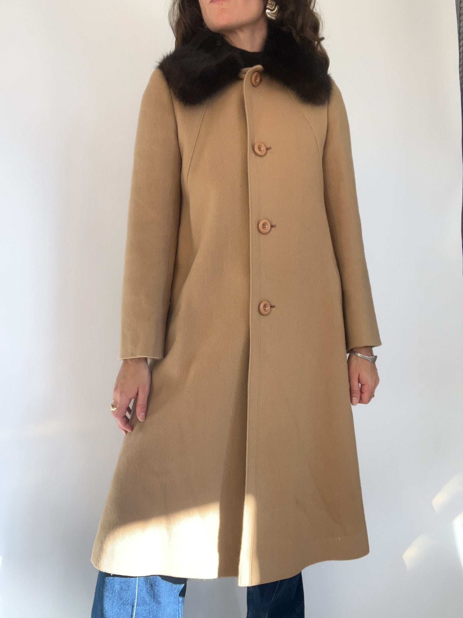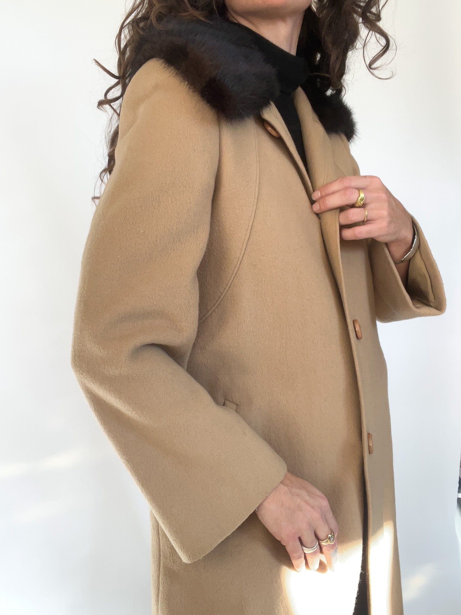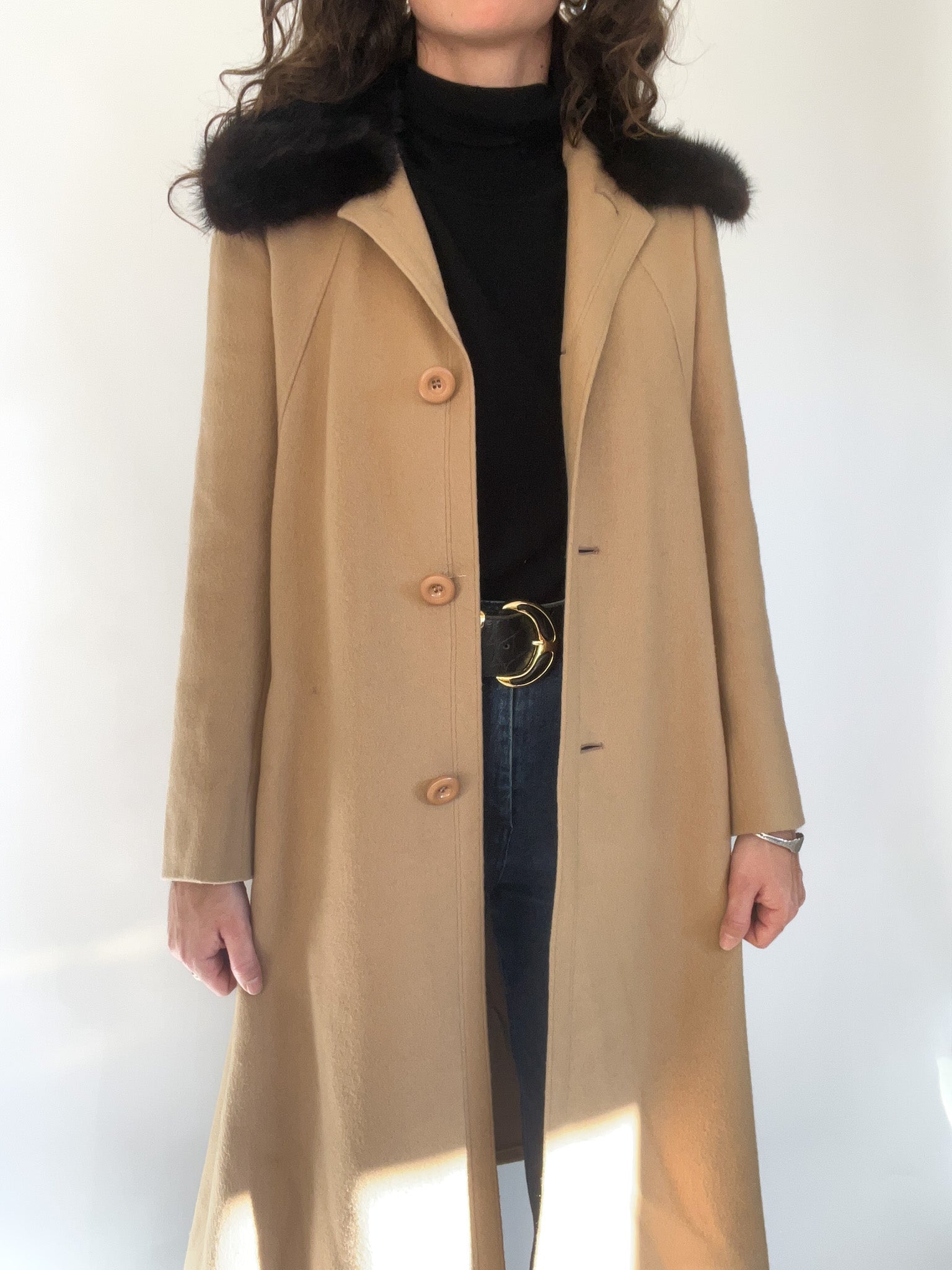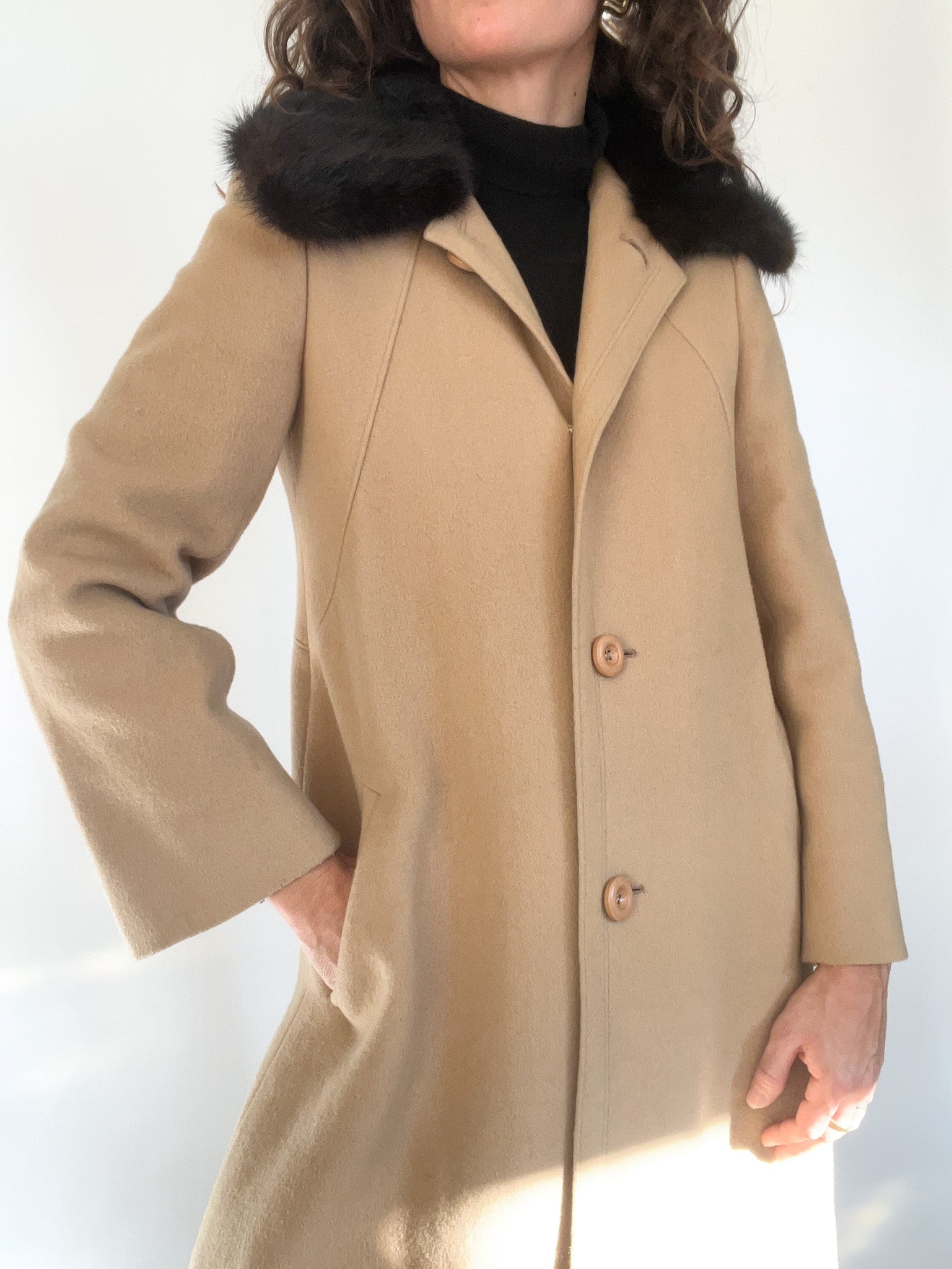 Vintage 70’s Camel Wool Coat with Detachable Faux Fur Collar
