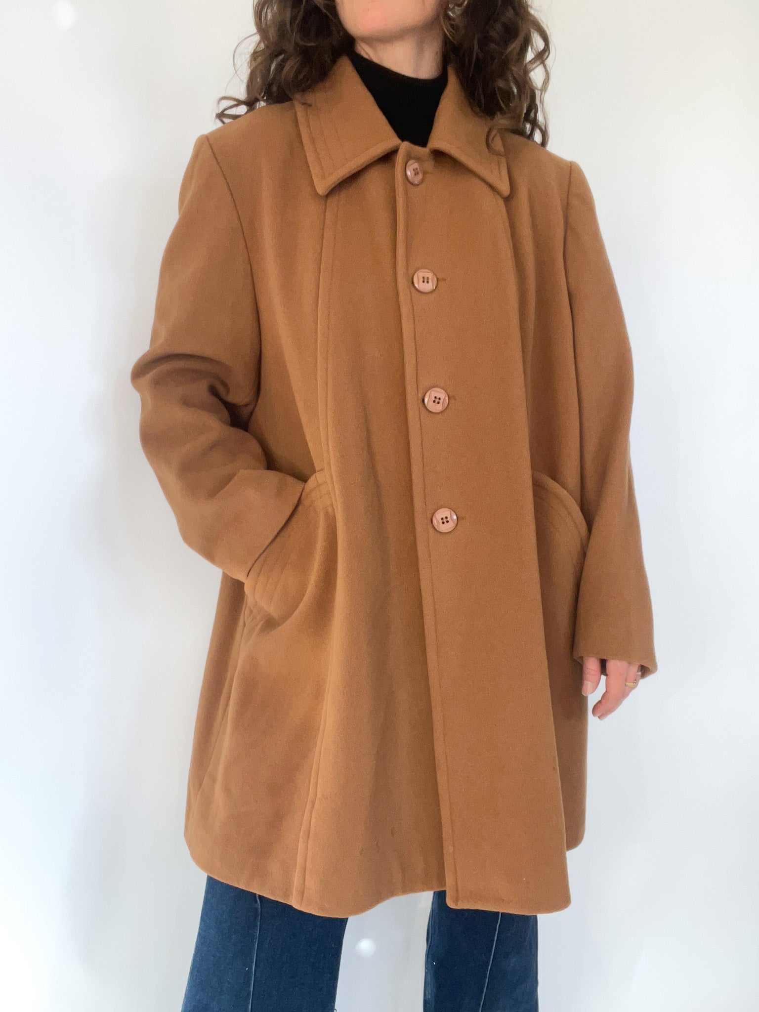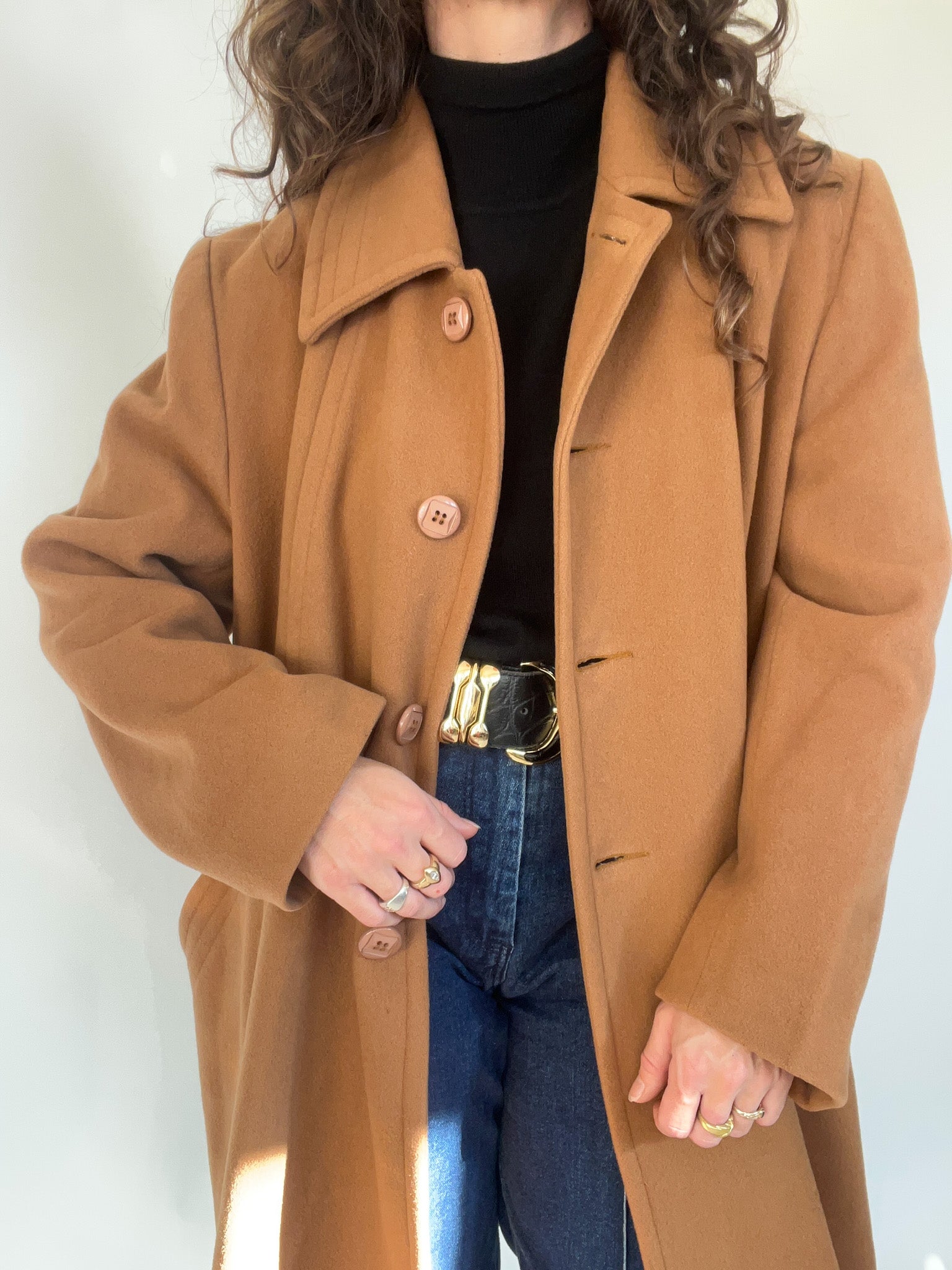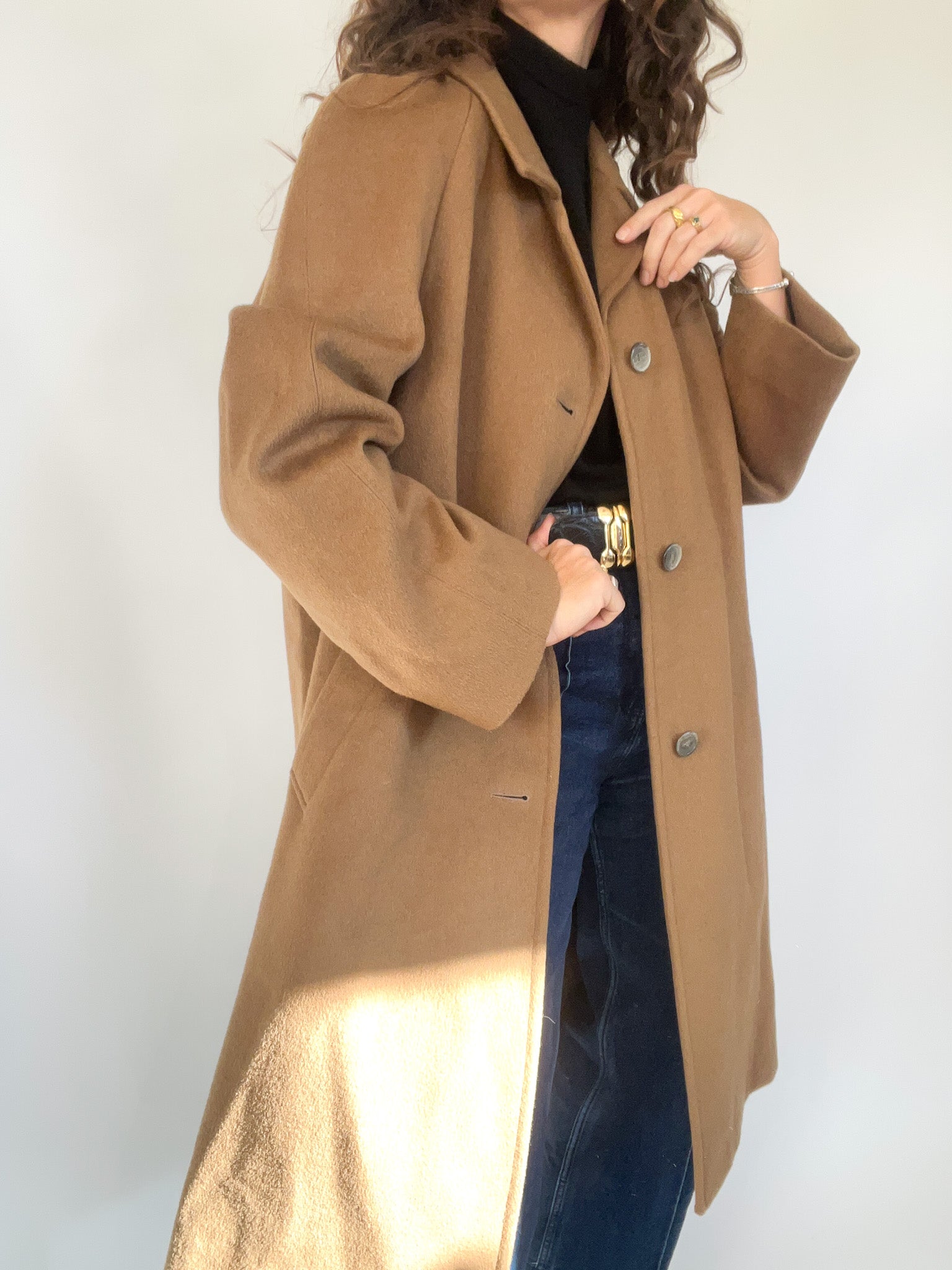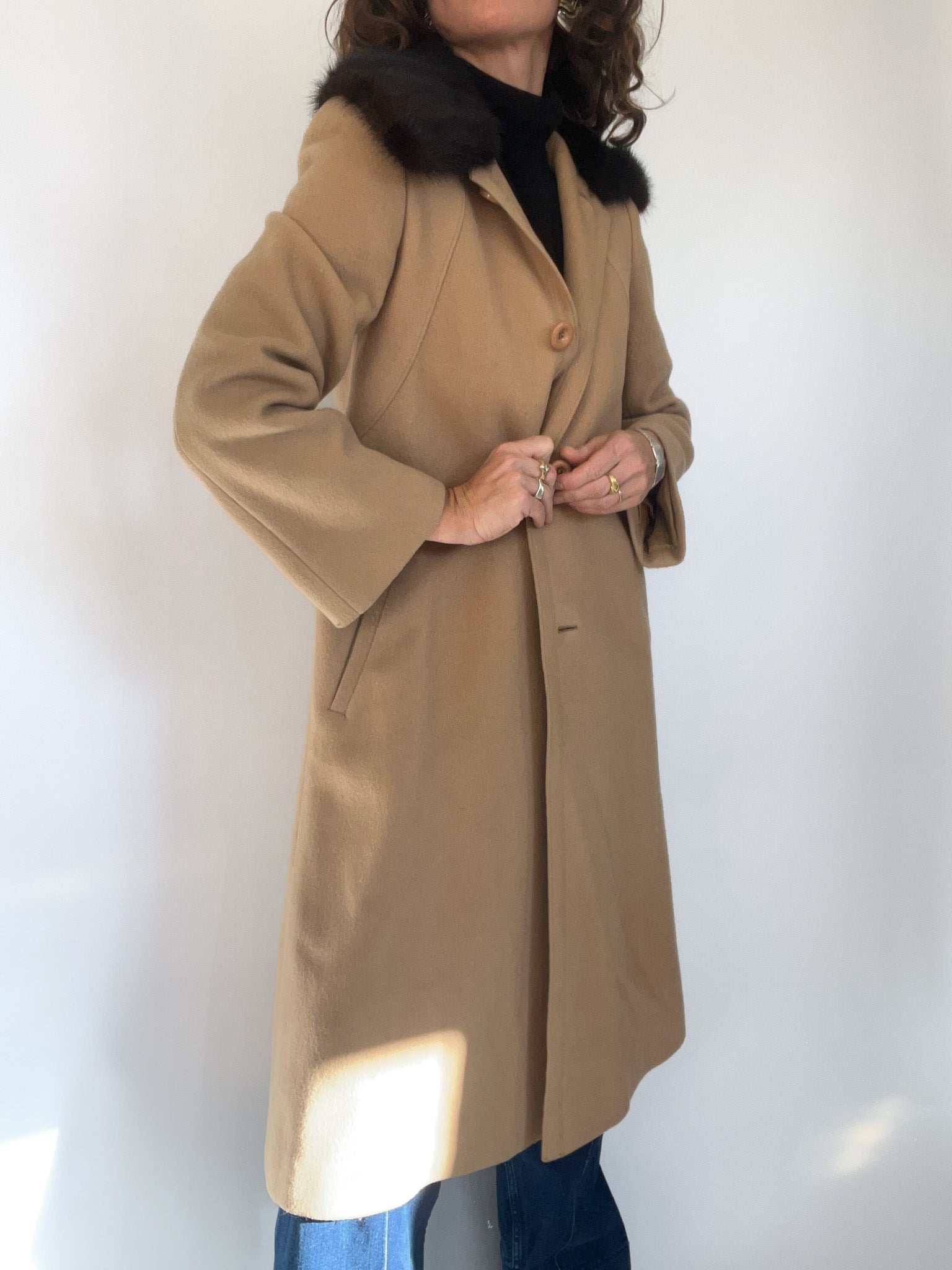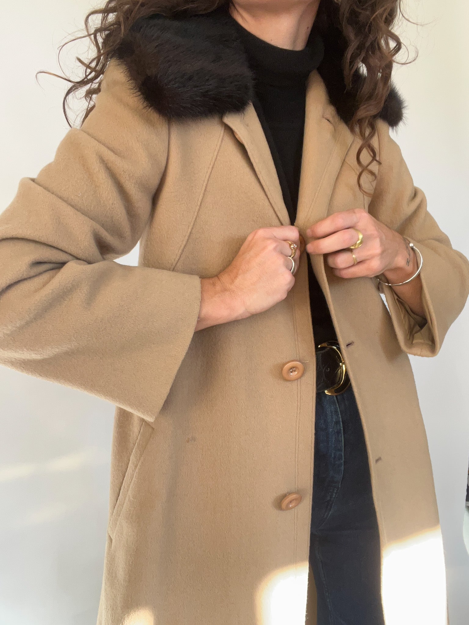 Vintage 70’s Camel Wool Coat with Detachable Faux Fur Collar