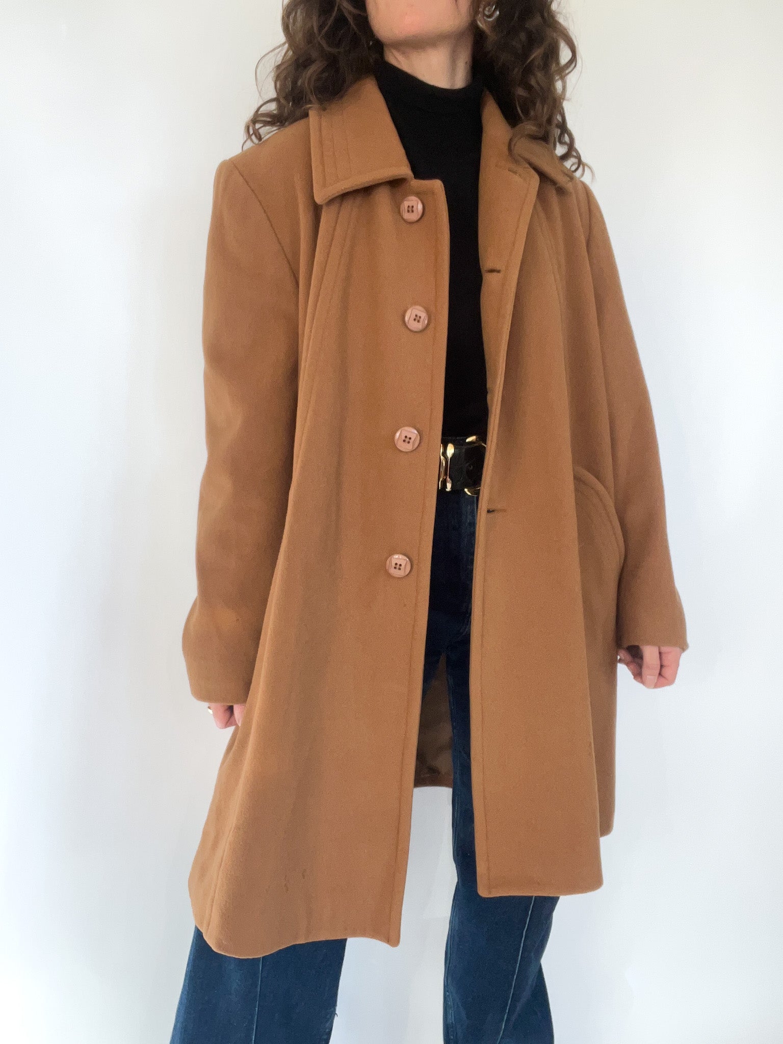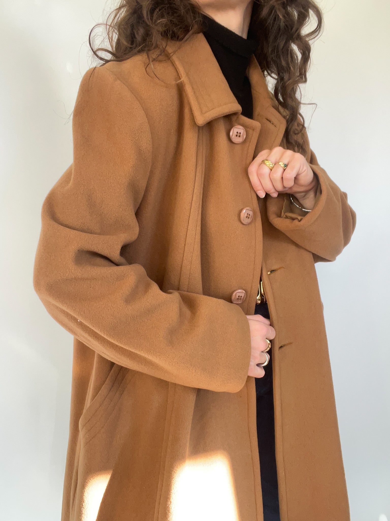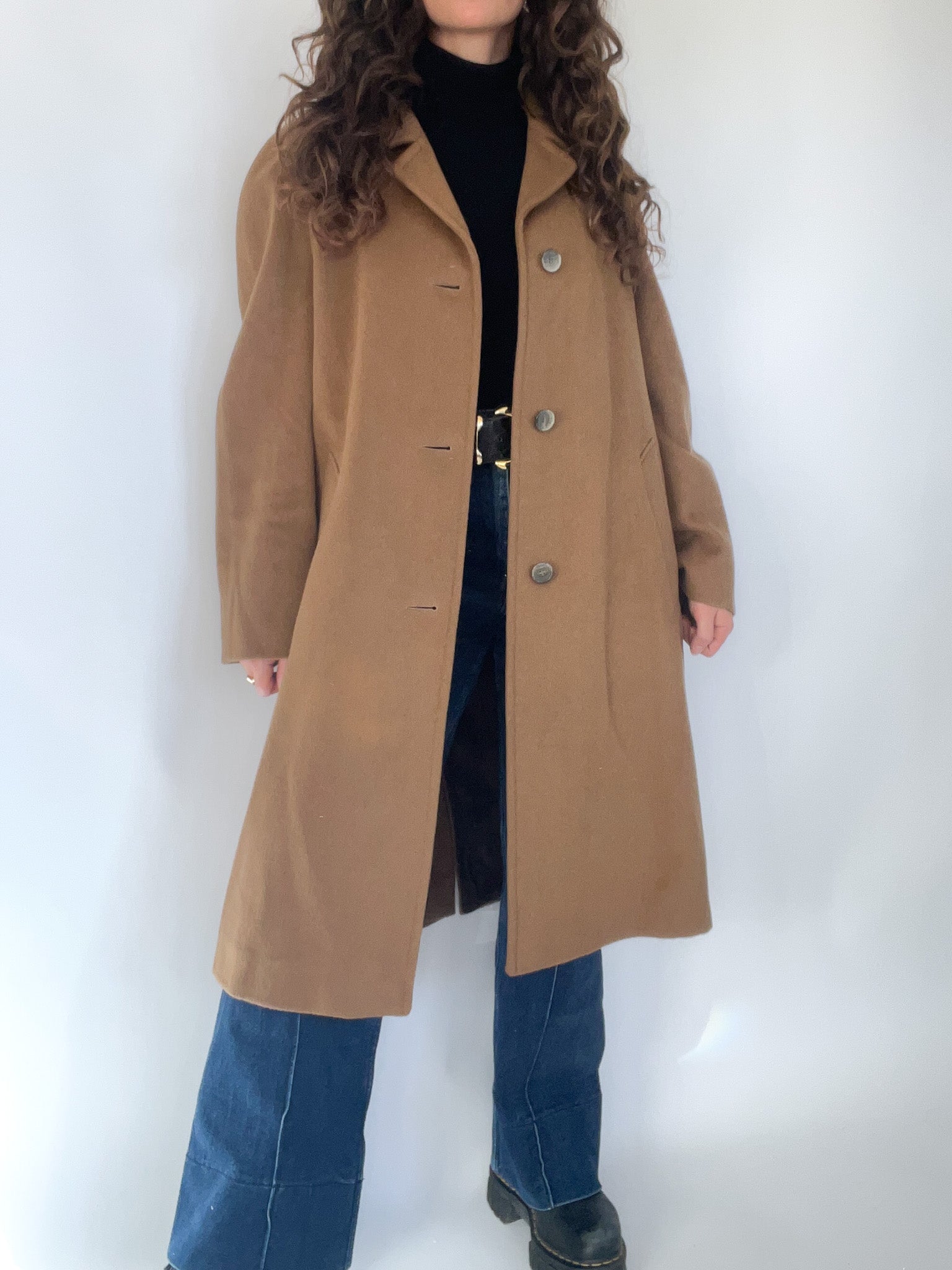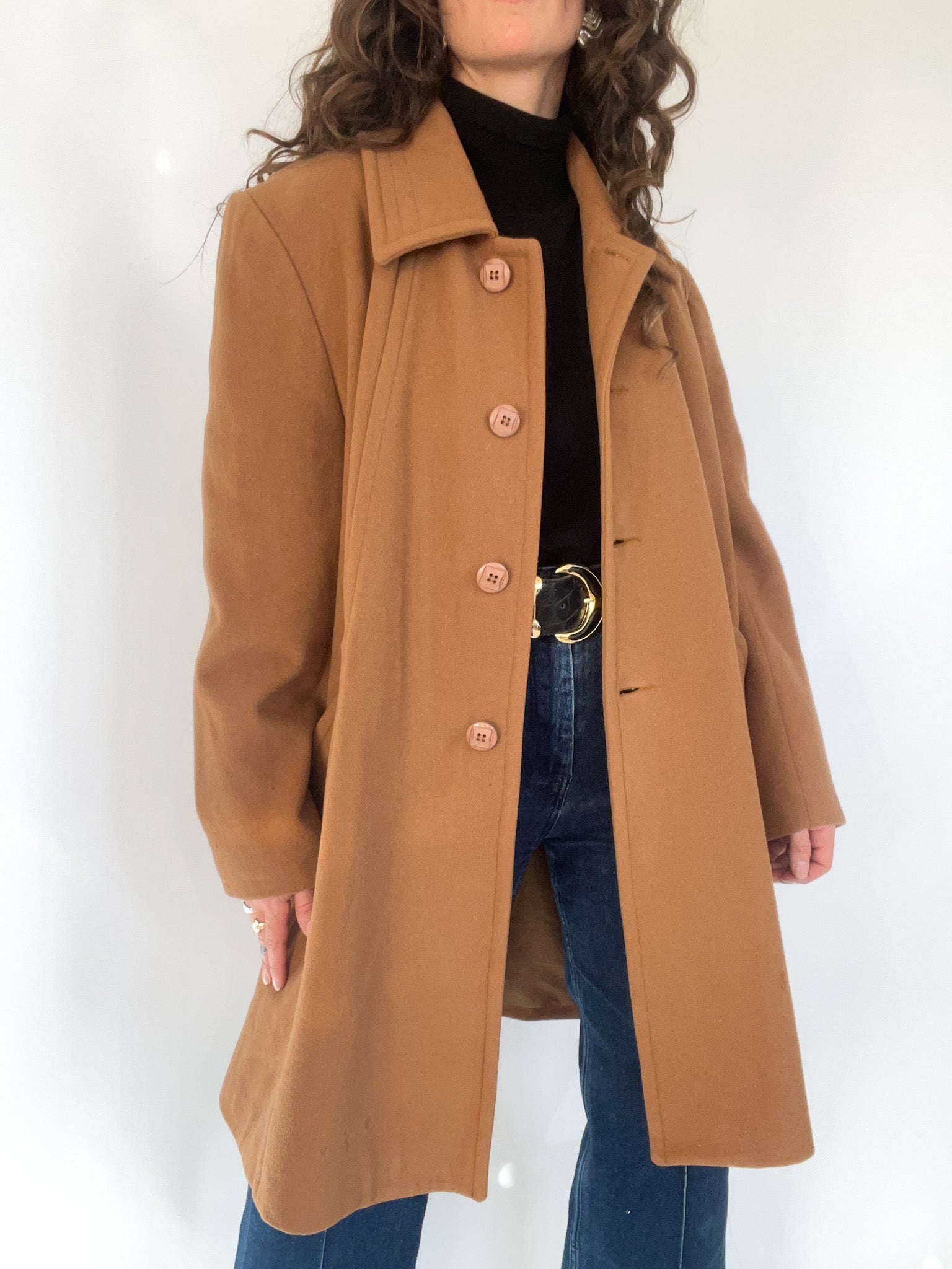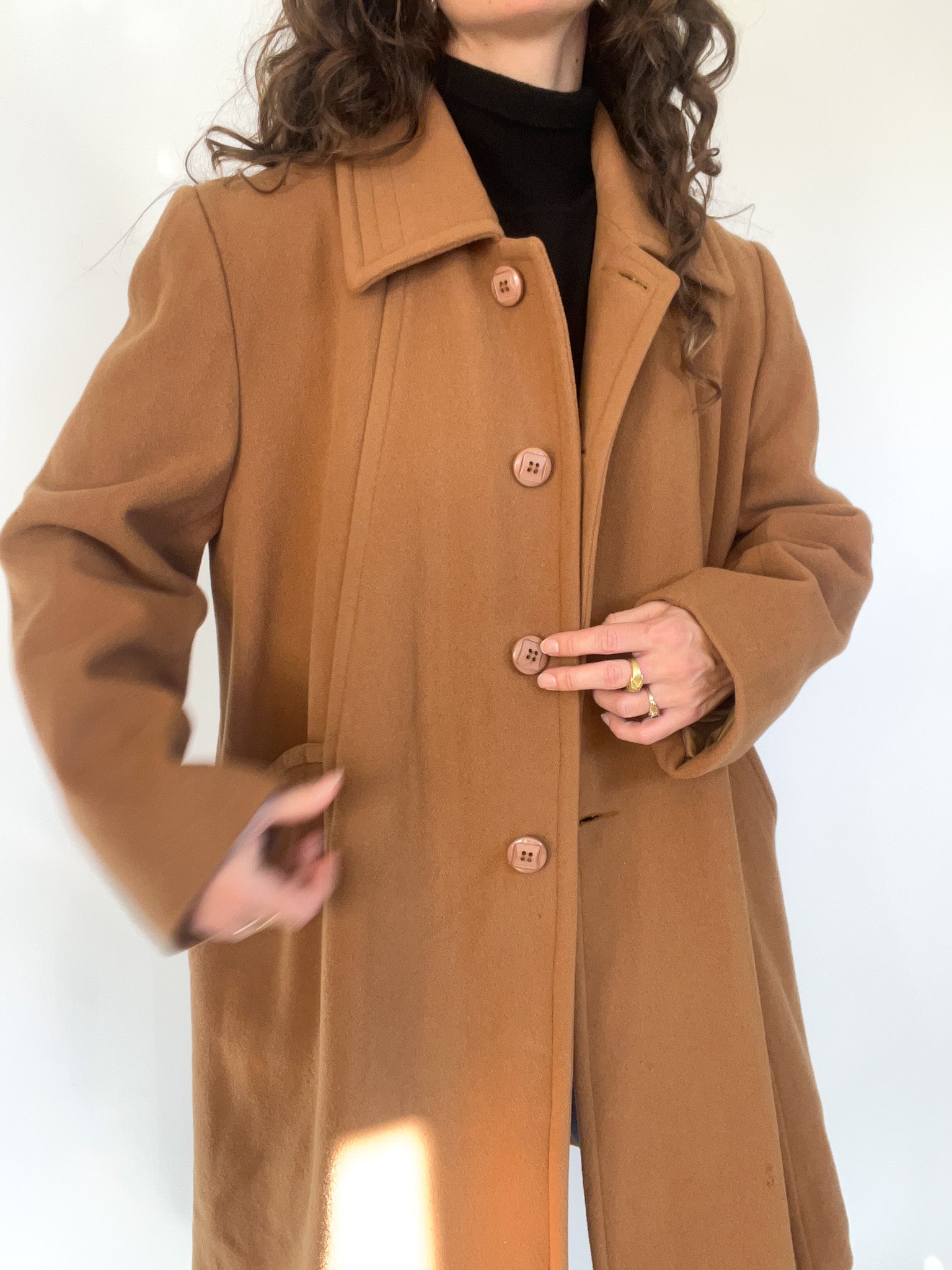 Vintage 70’s Camel Wool Coat with Detachable Faux Fur Collar