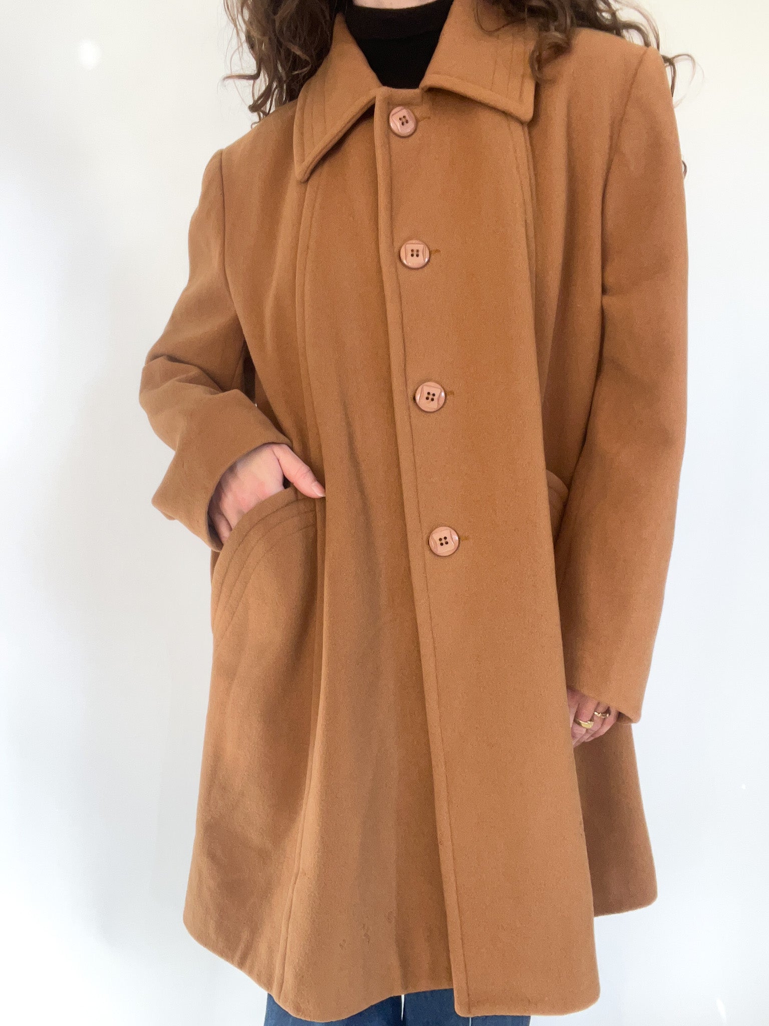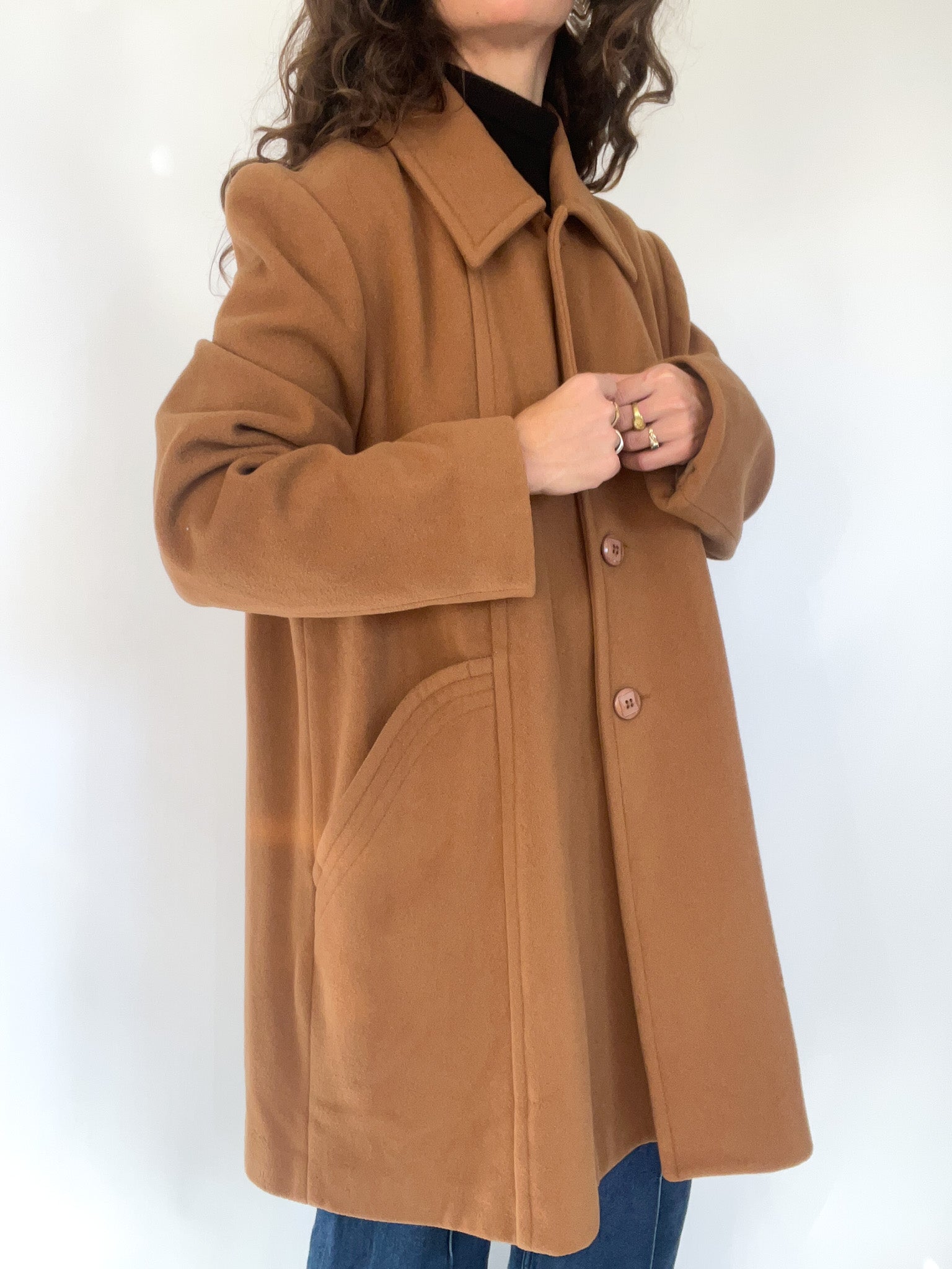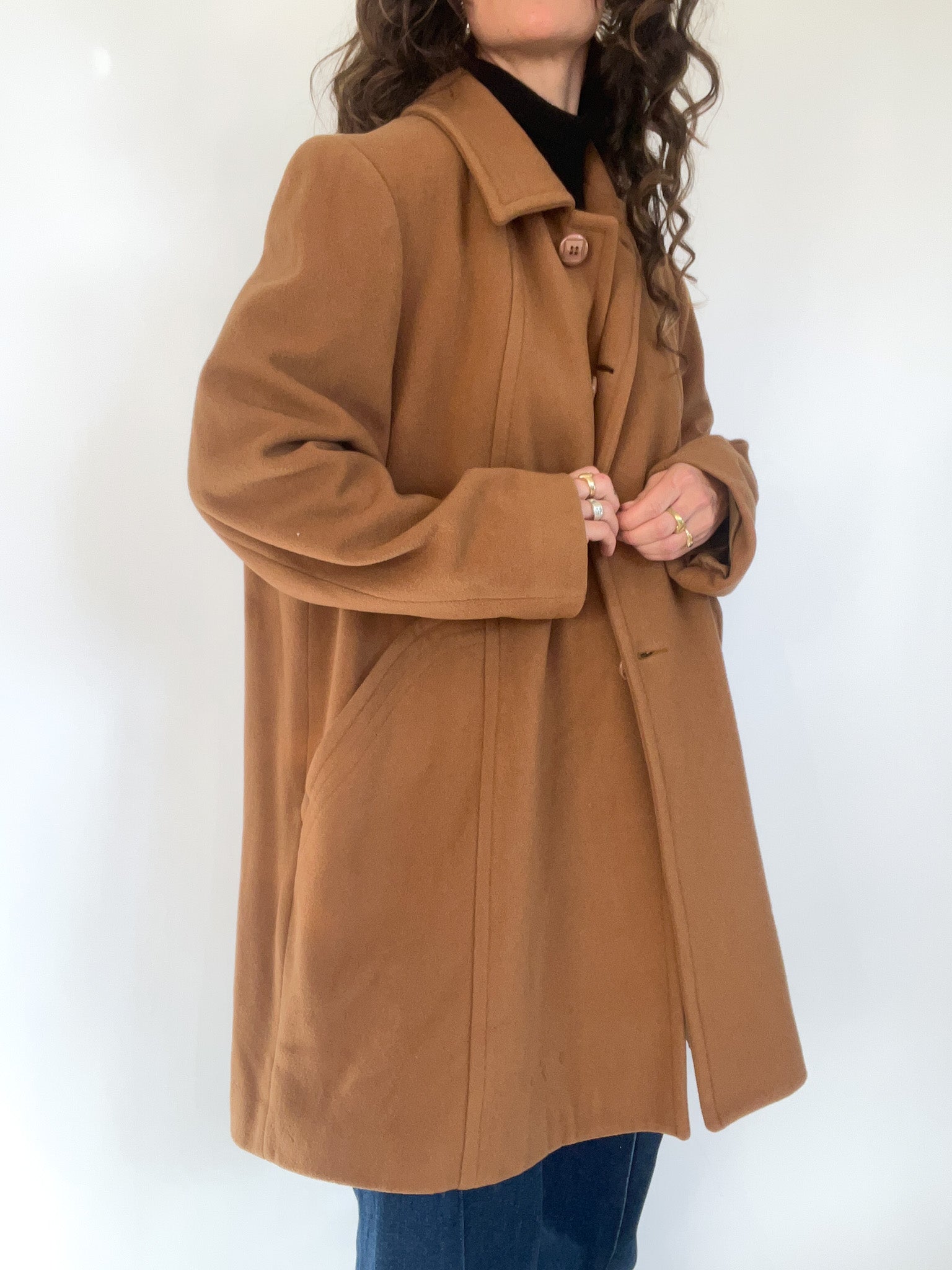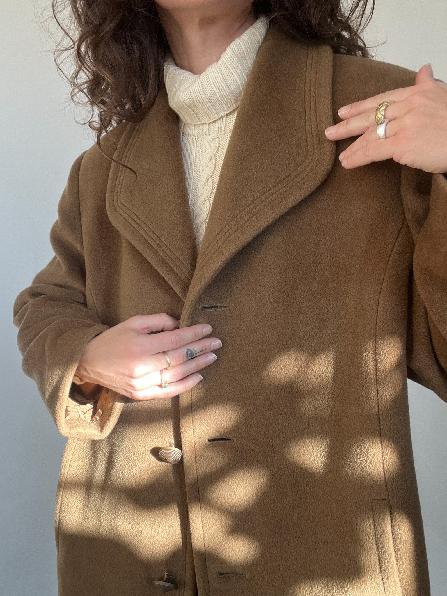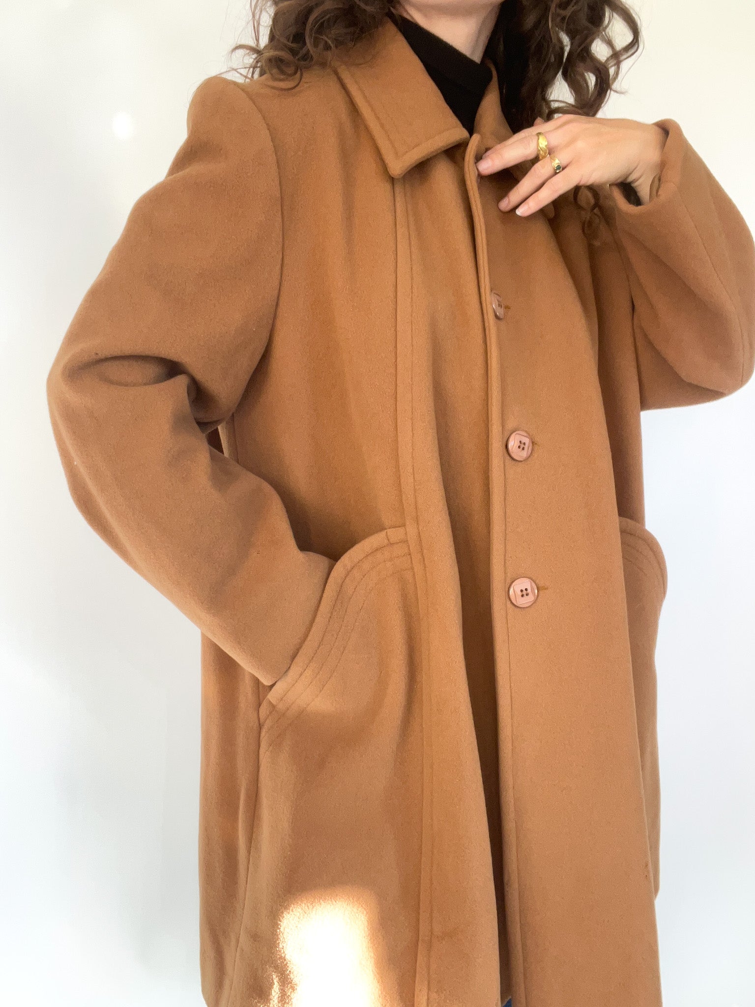 Vintage 70’s Camel Wool Coat with Detachable Faux Fur Collar
