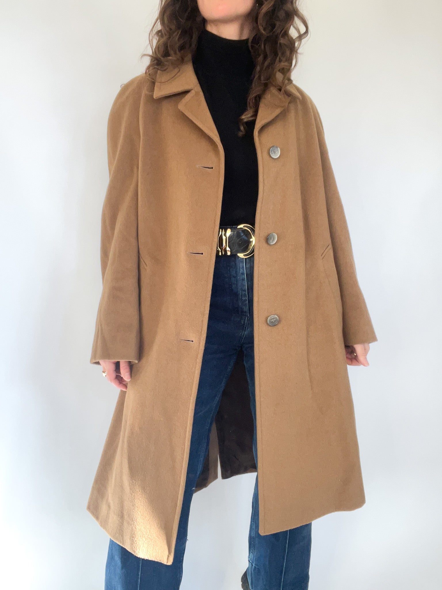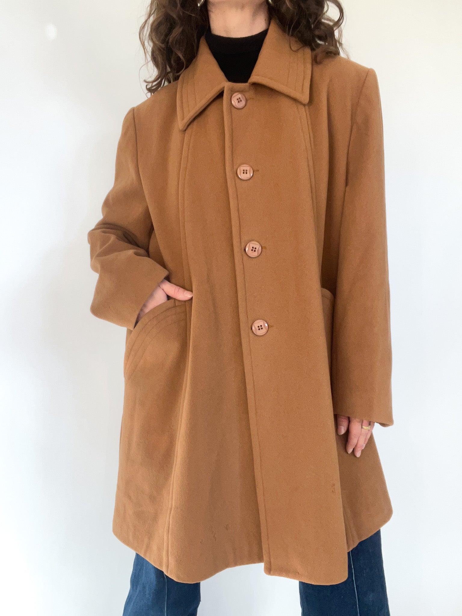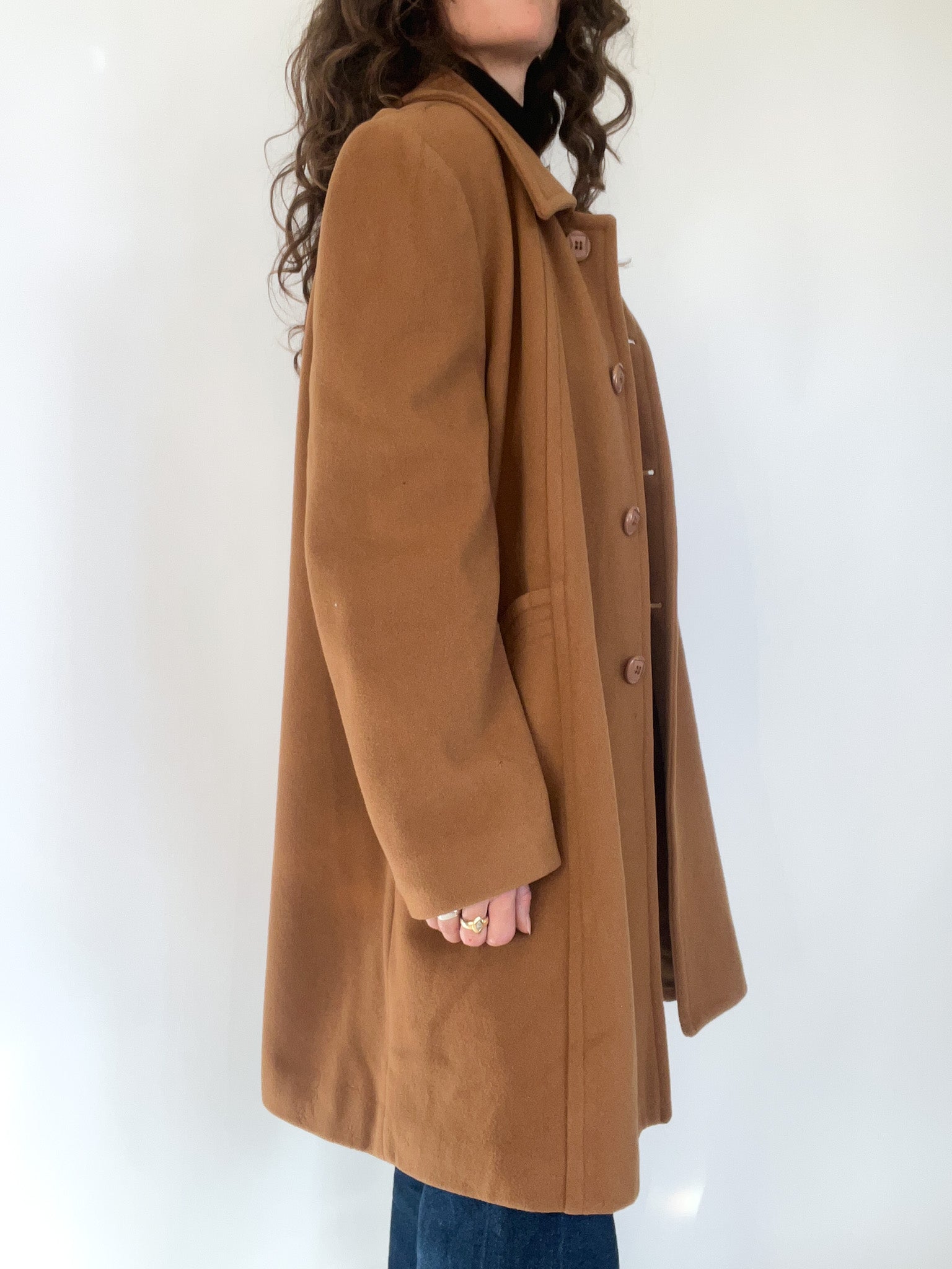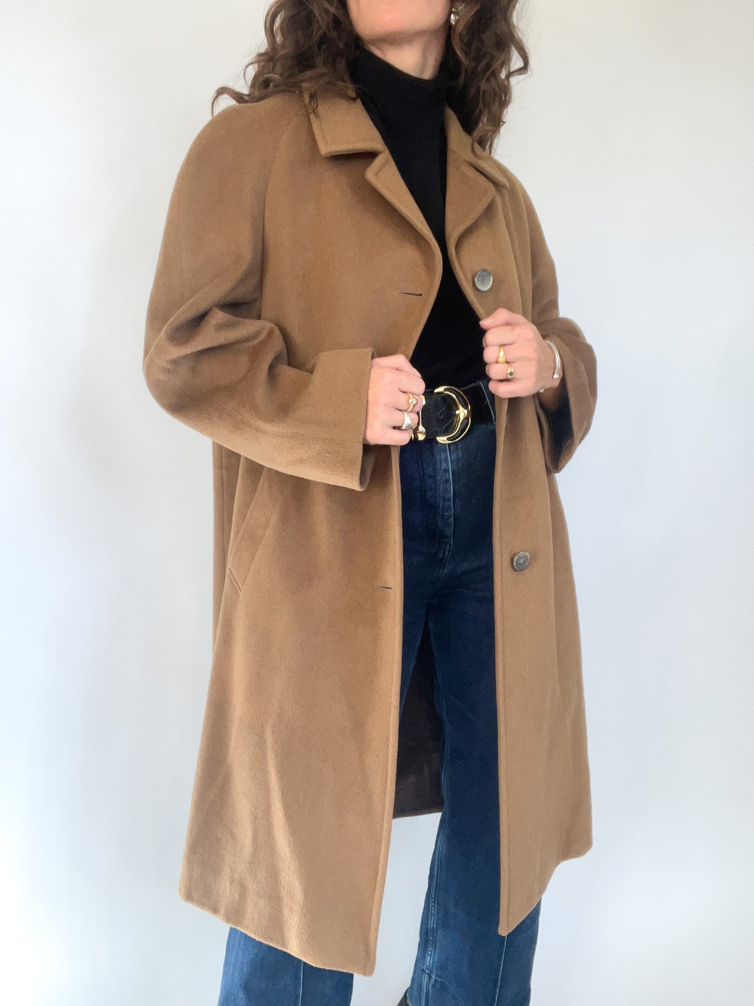 Vintage 70’s Camel Wool Coat with Detachable Faux Fur Collar