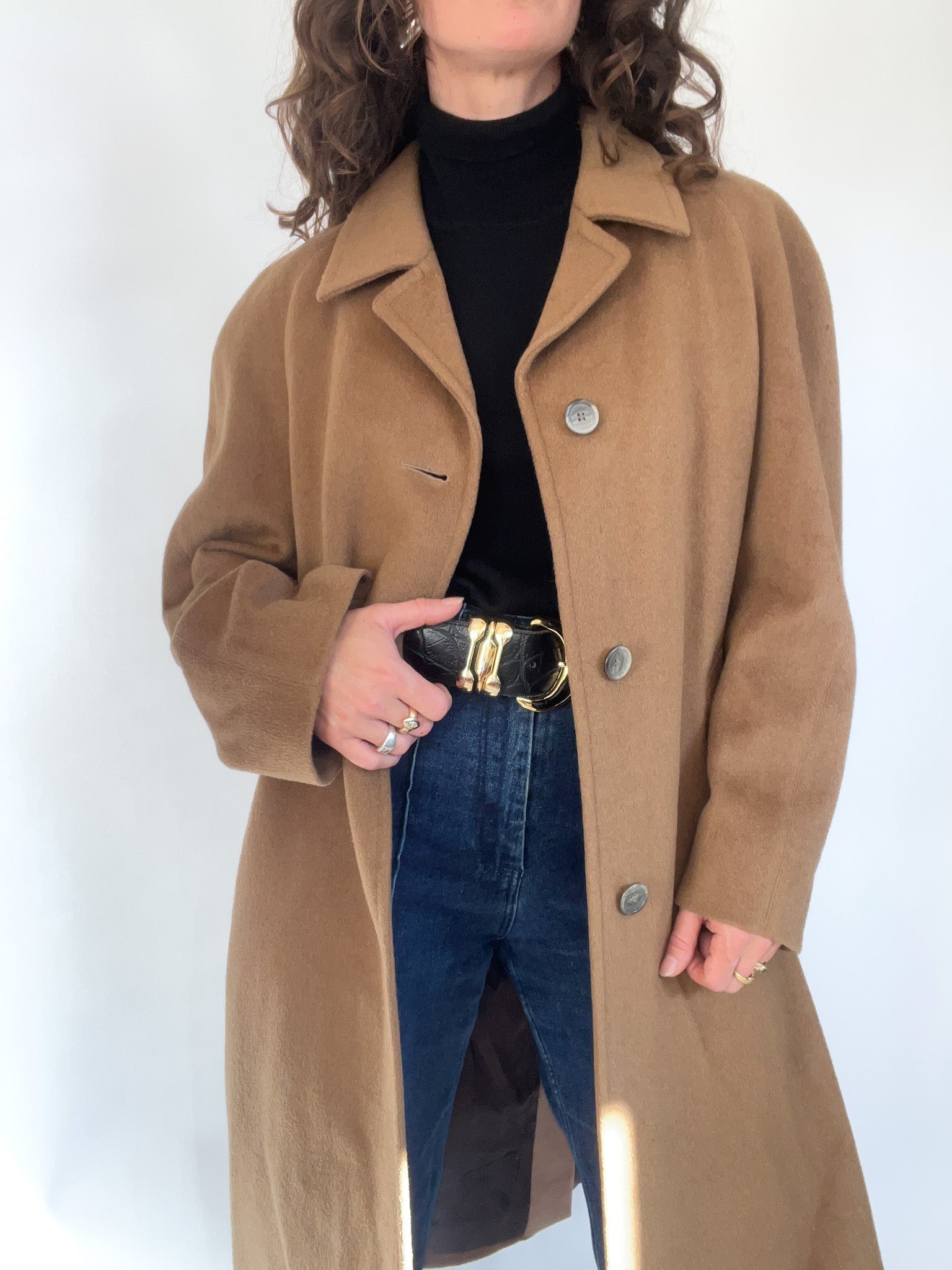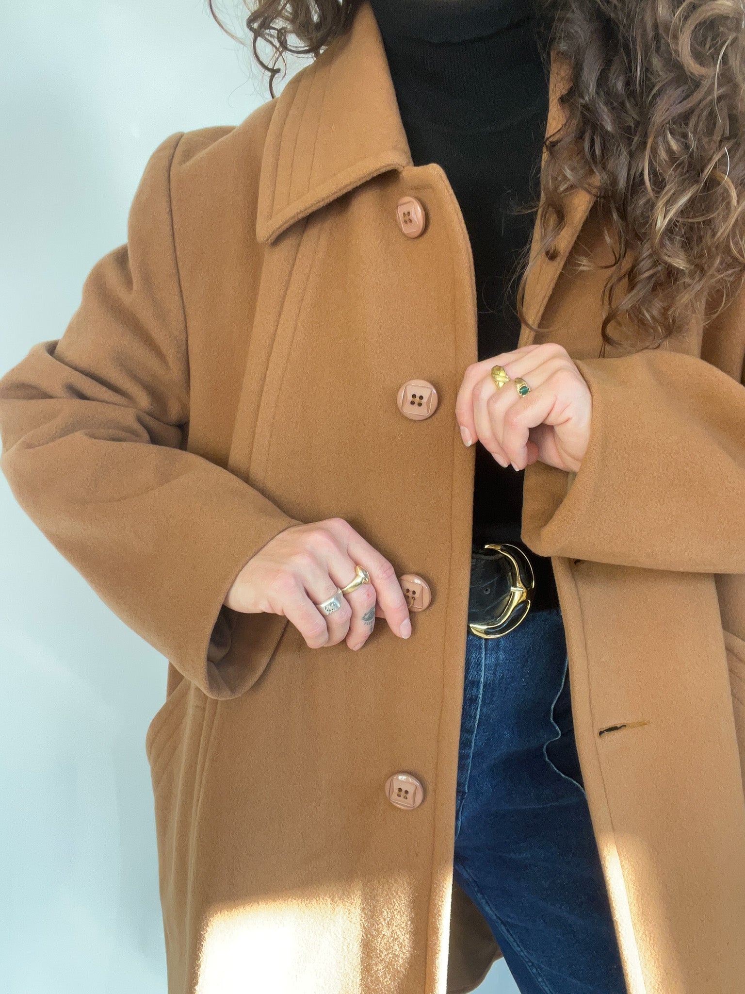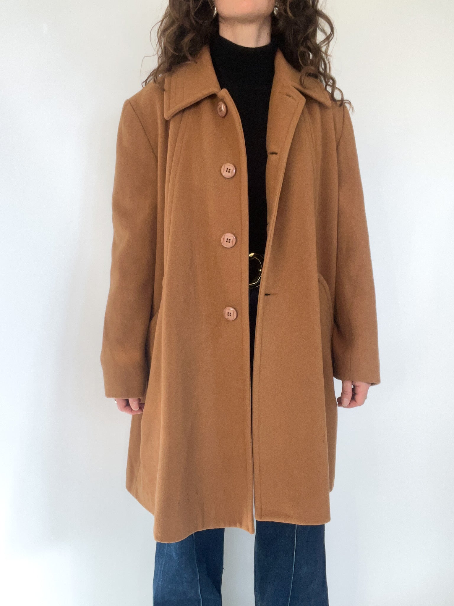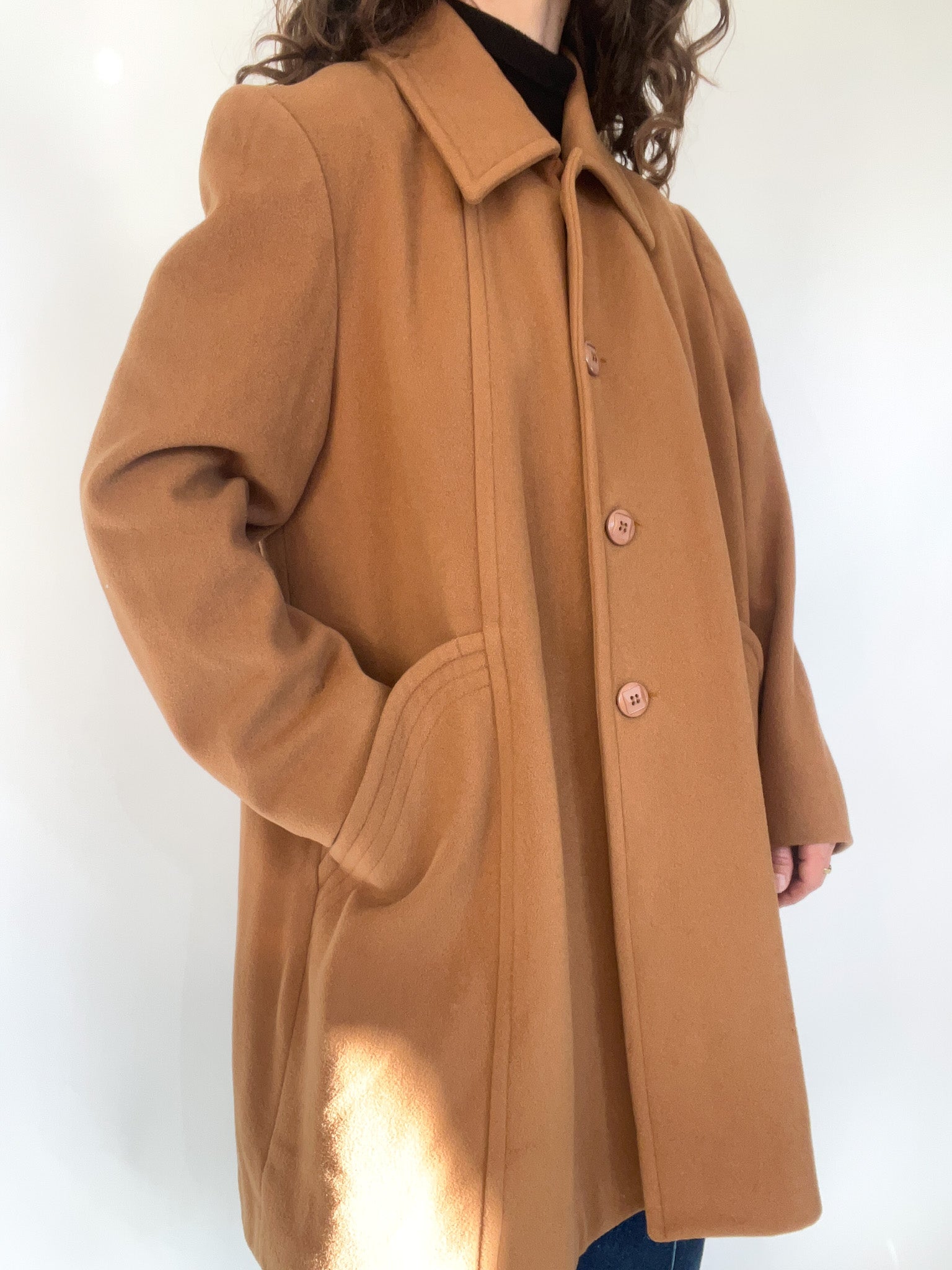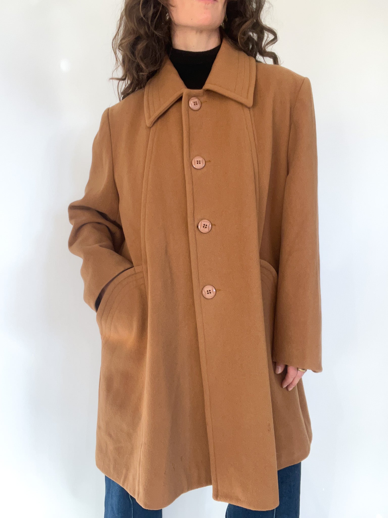Vintage 70’s Camel Wool Coat with Detachable Faux Fur Collar