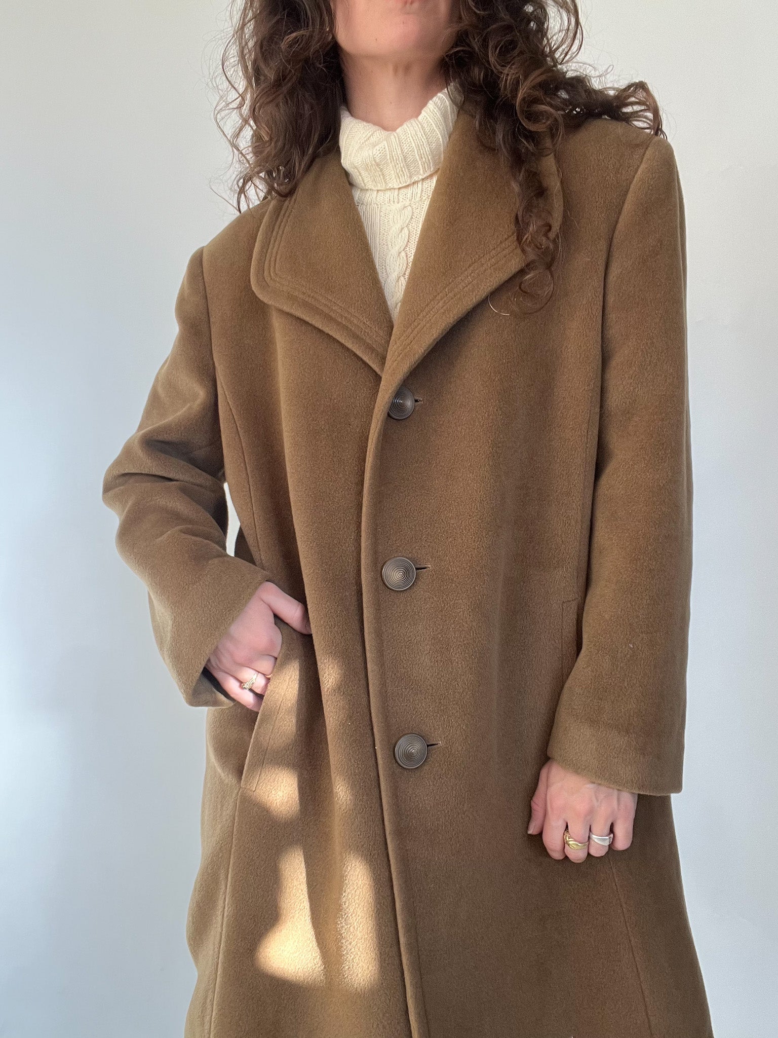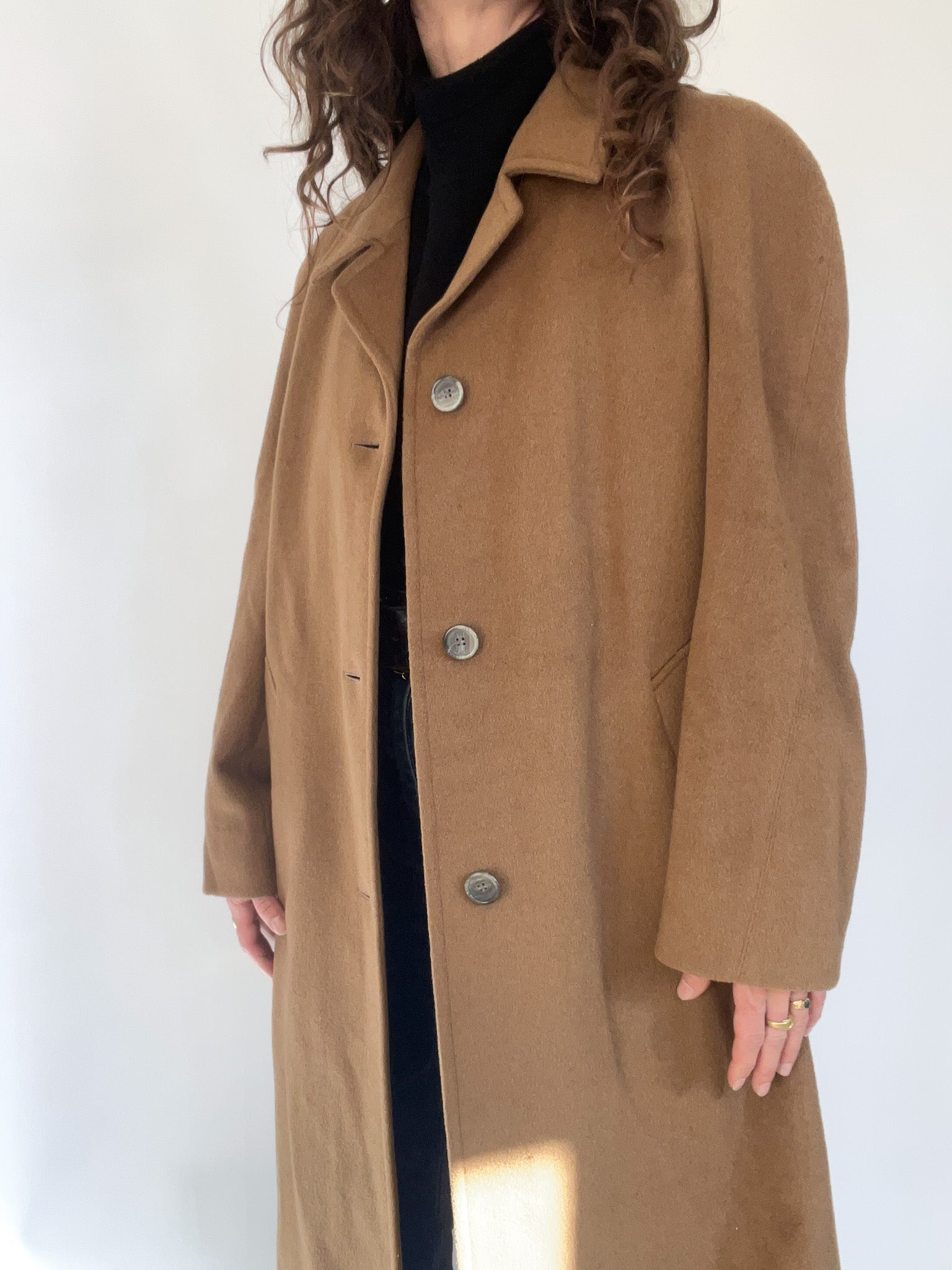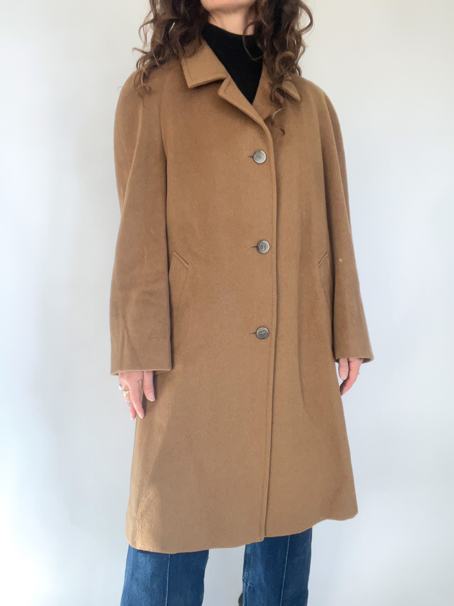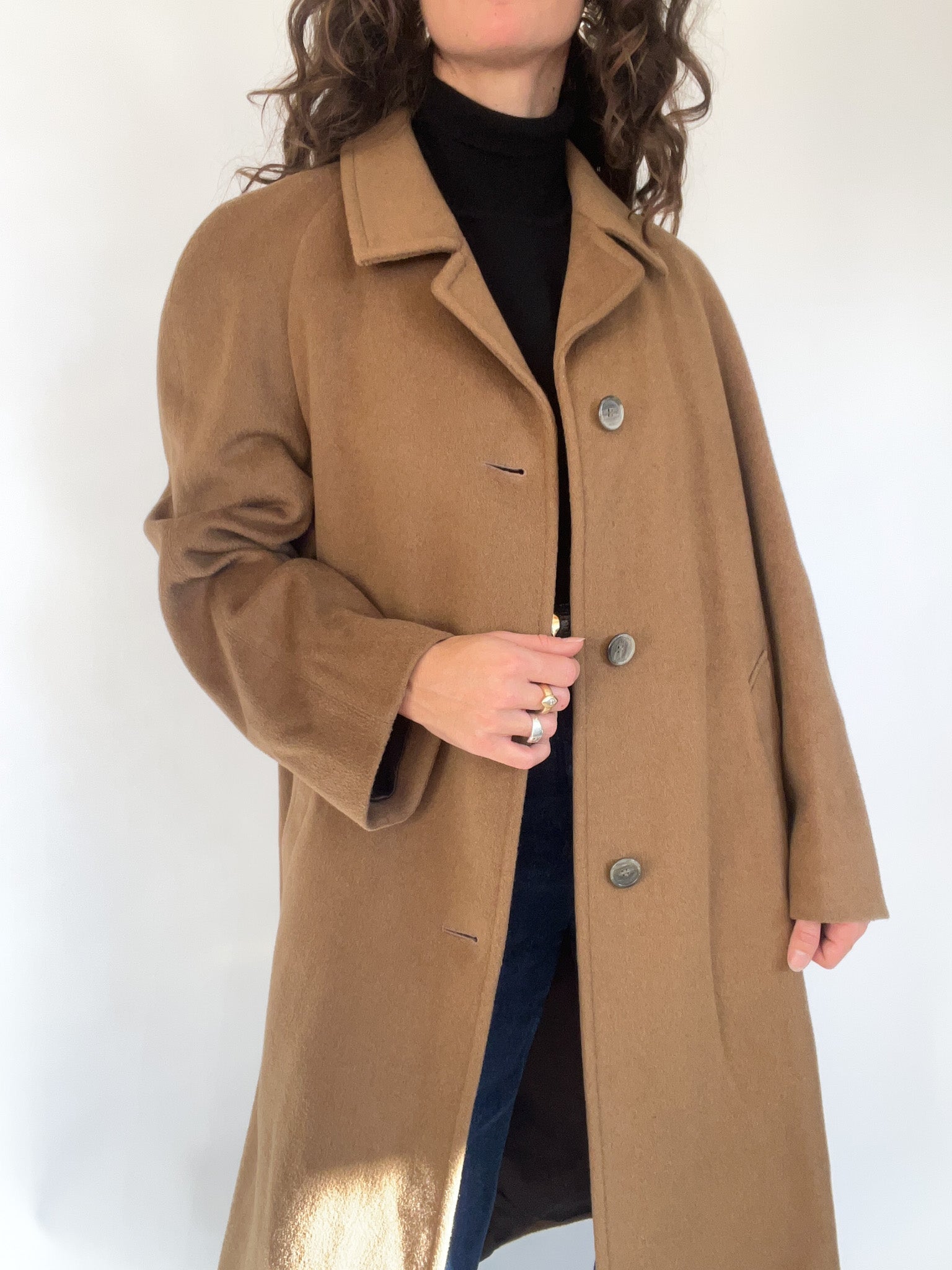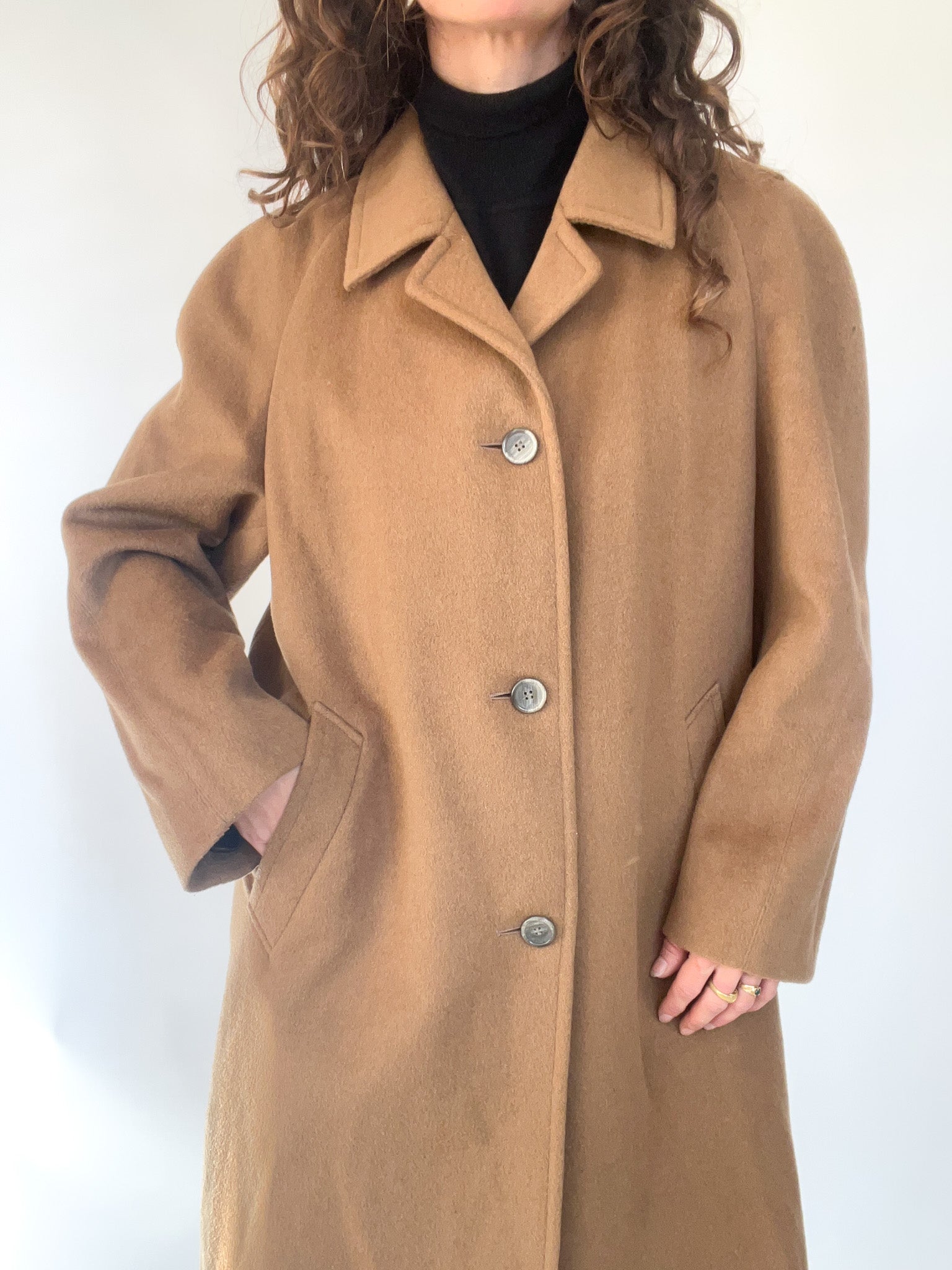 Vintage 70’s Camel Wool Coat with Detachable Faux Fur Collar