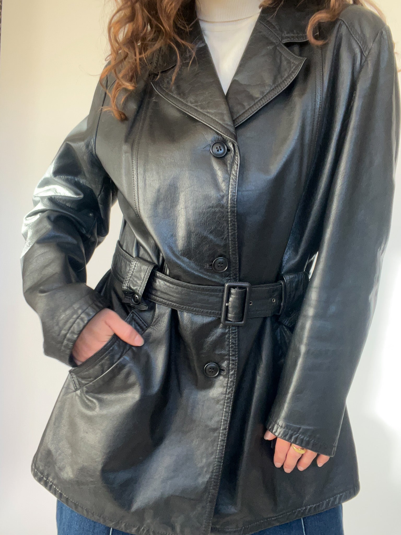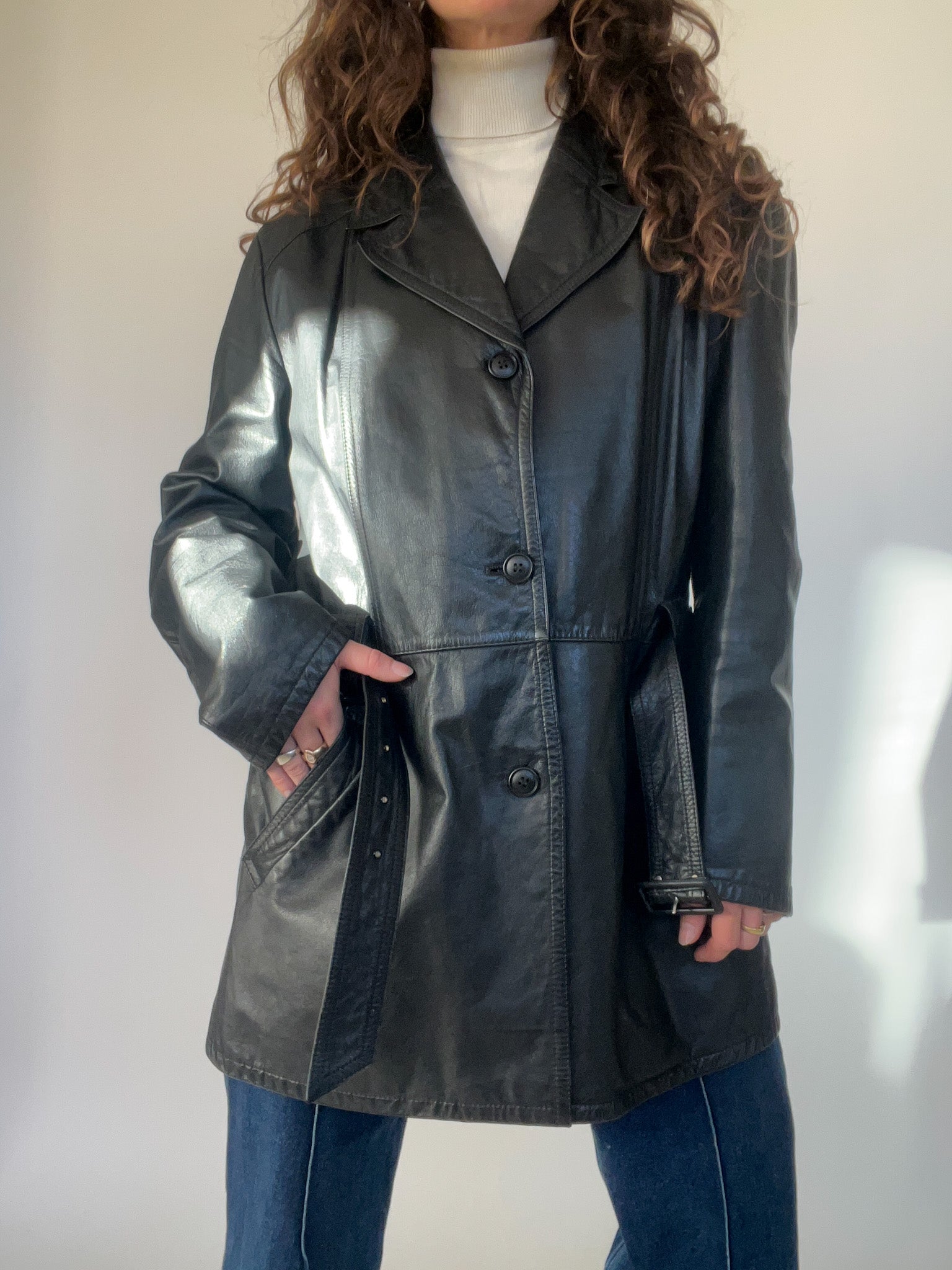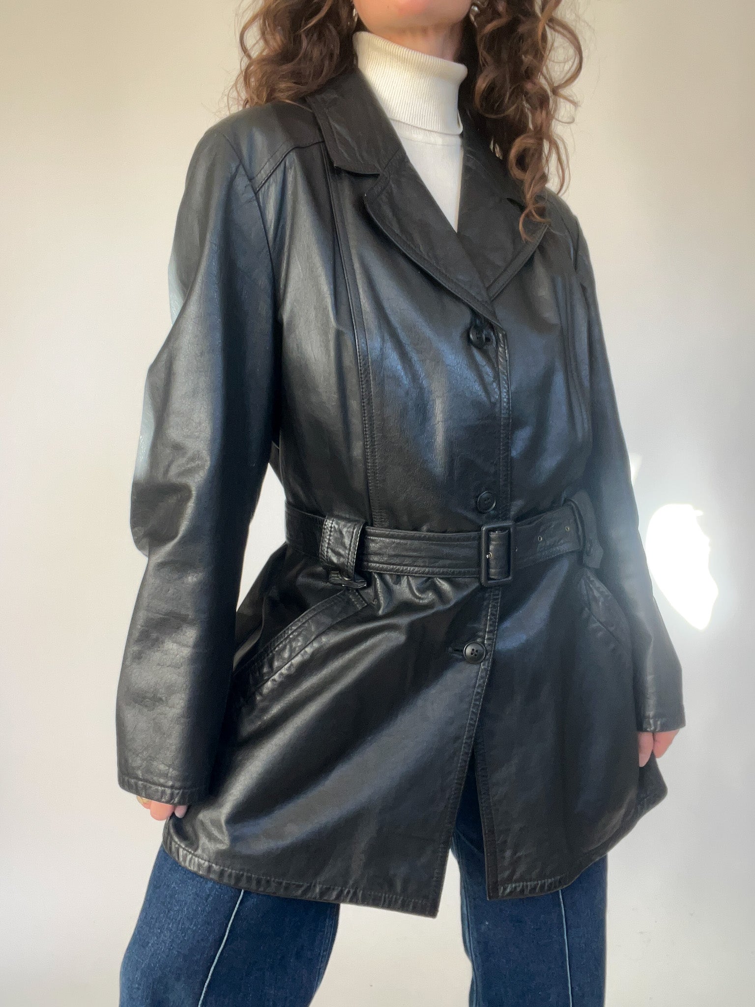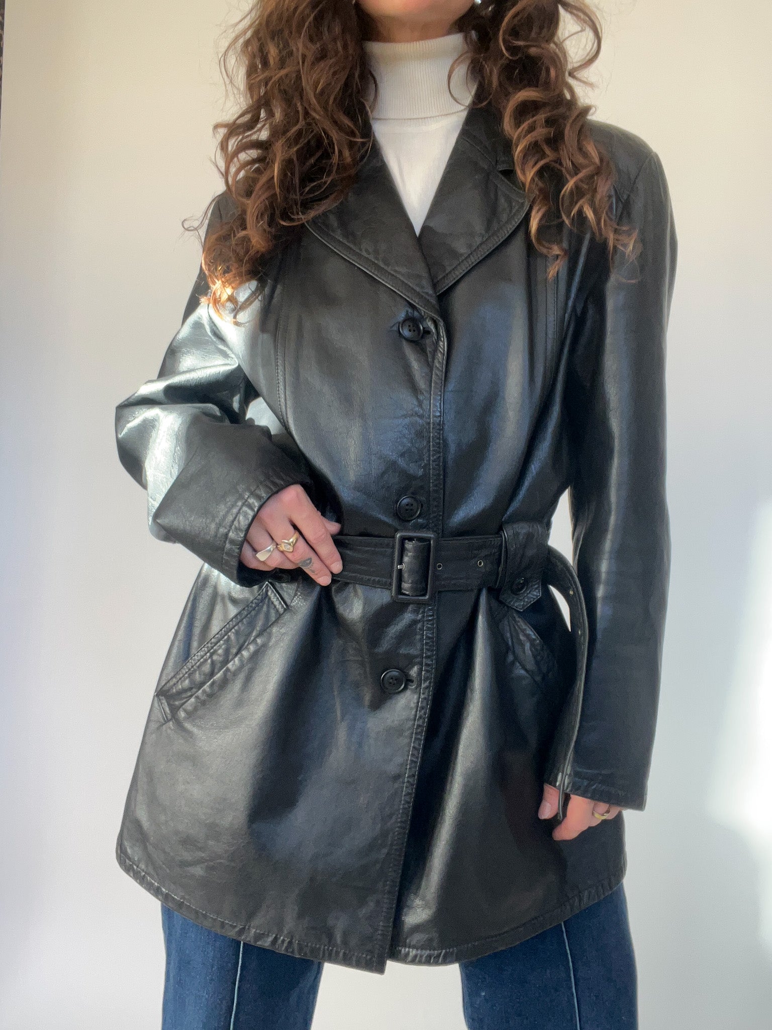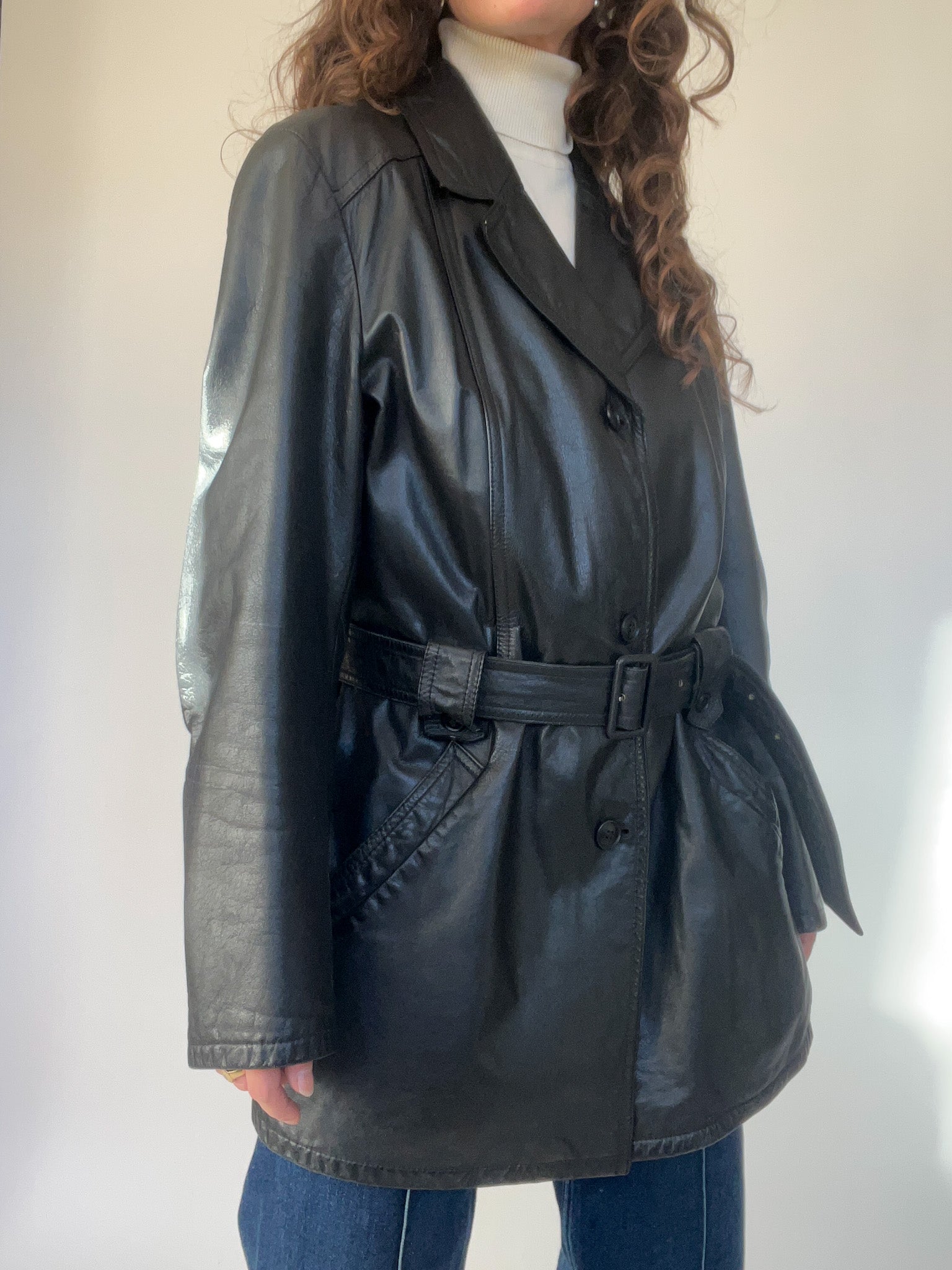 Vintage 80’s Italian Belted Leather Coat with Warm Interior Lining