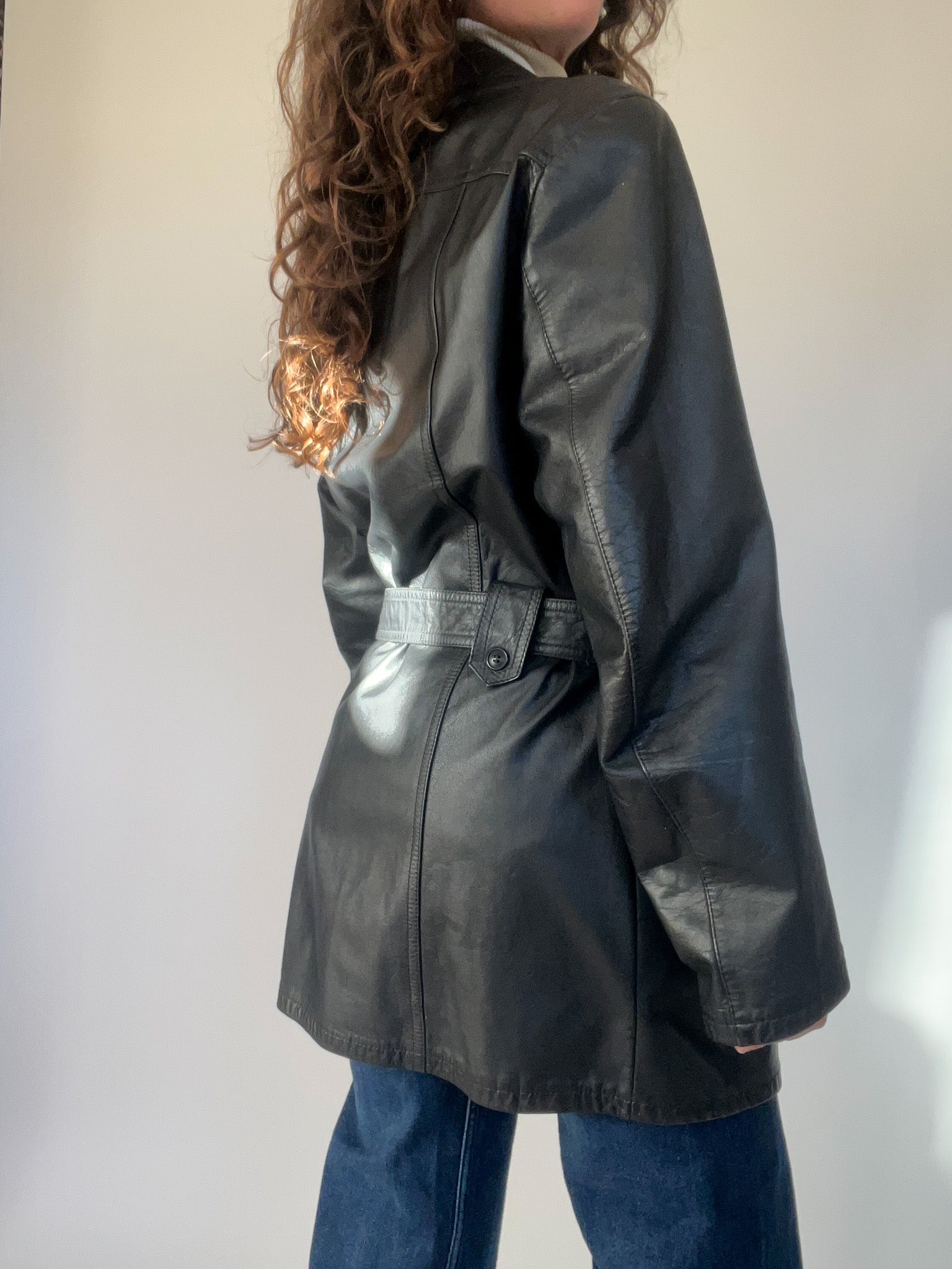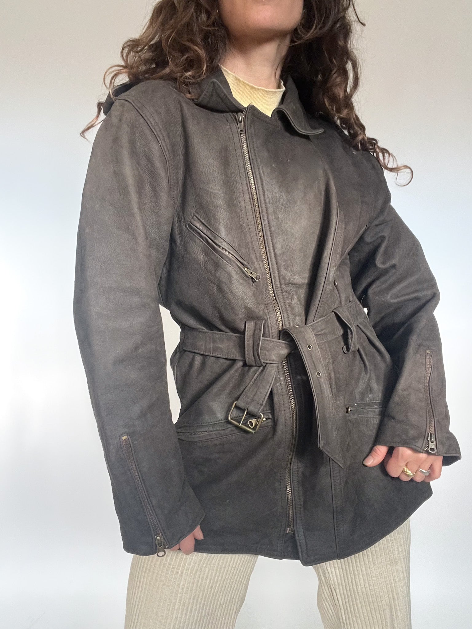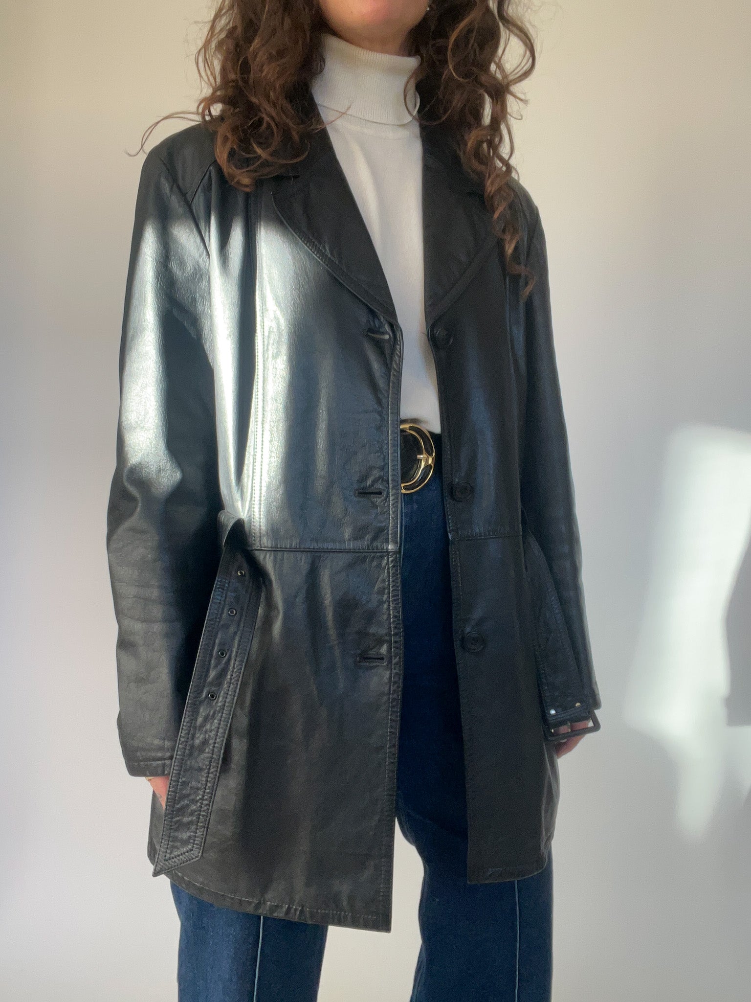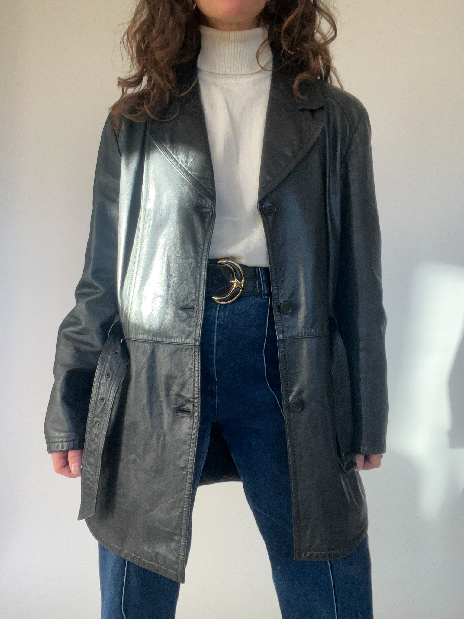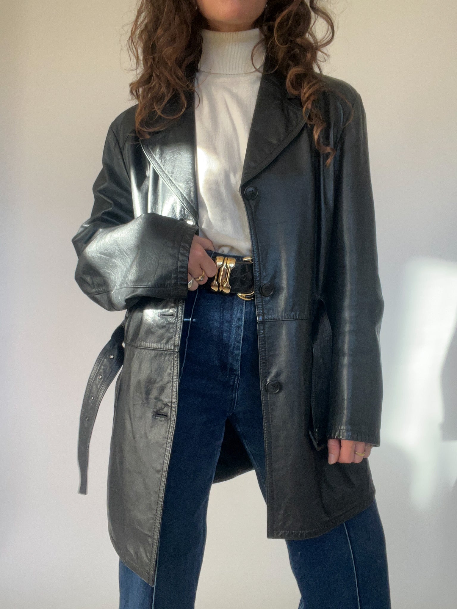 Vintage 80’s Italian Belted Leather Coat with Warm Interior Lining