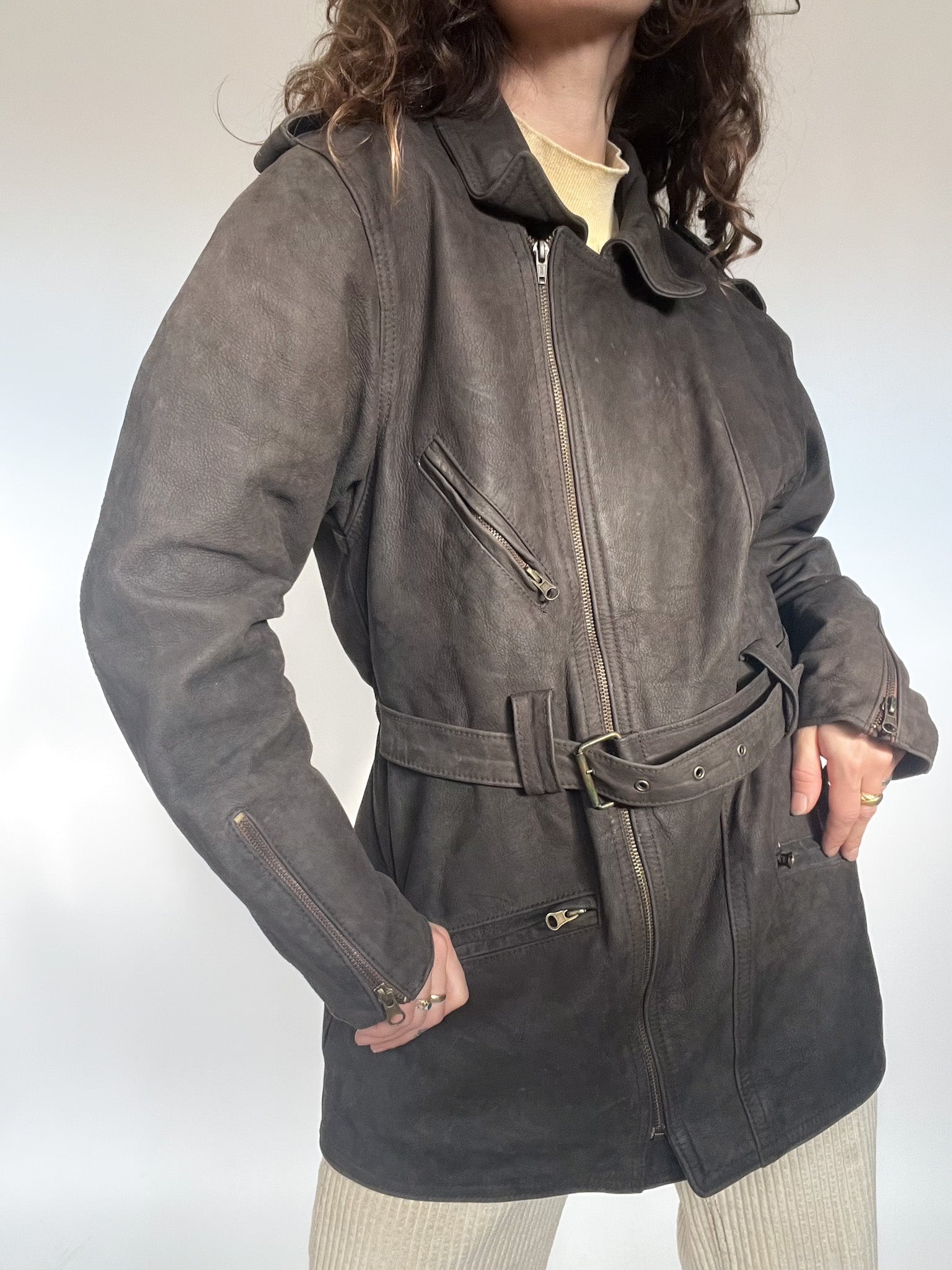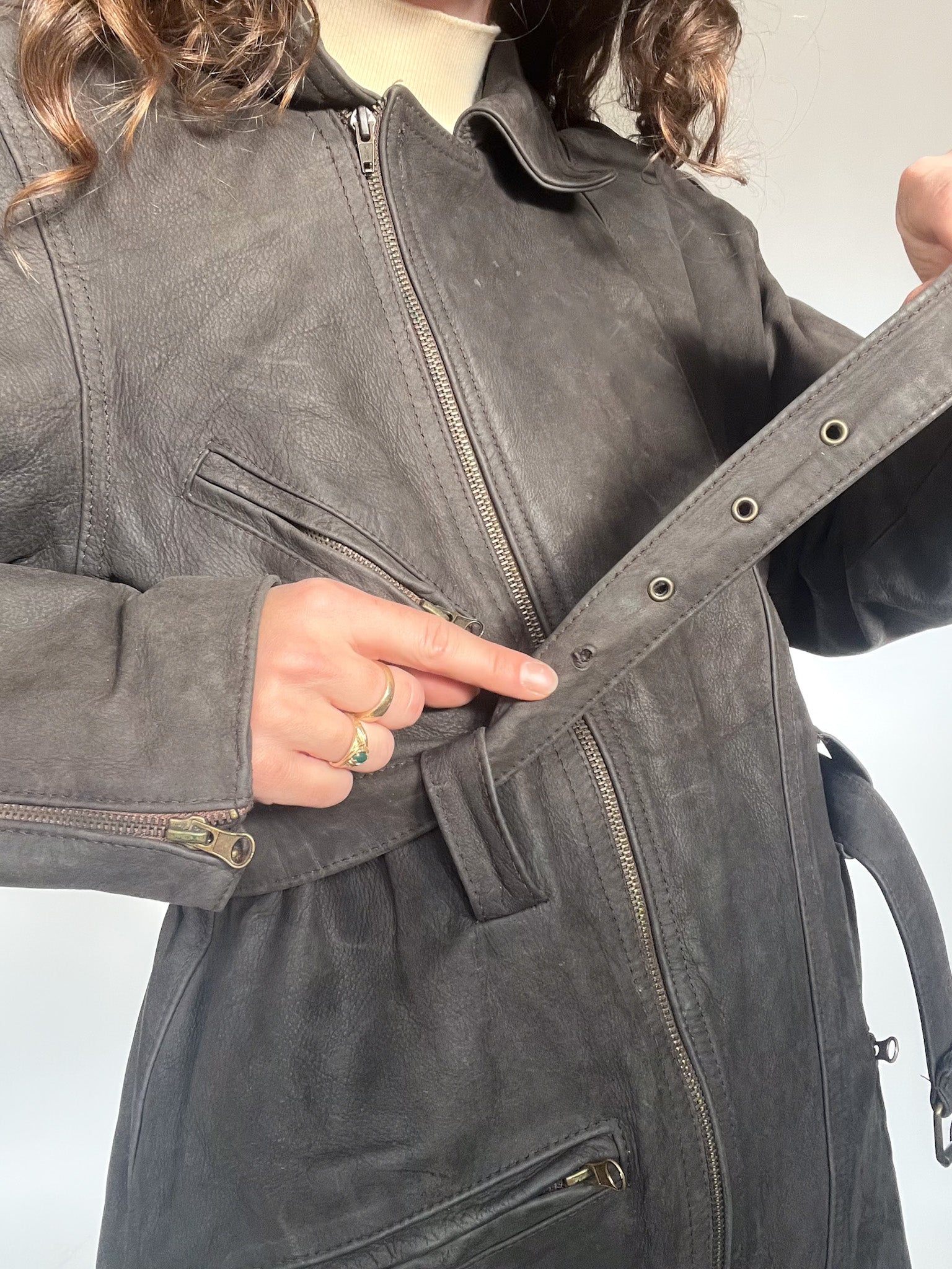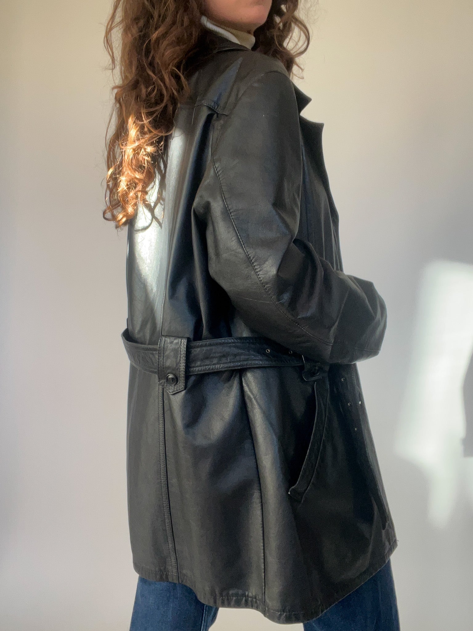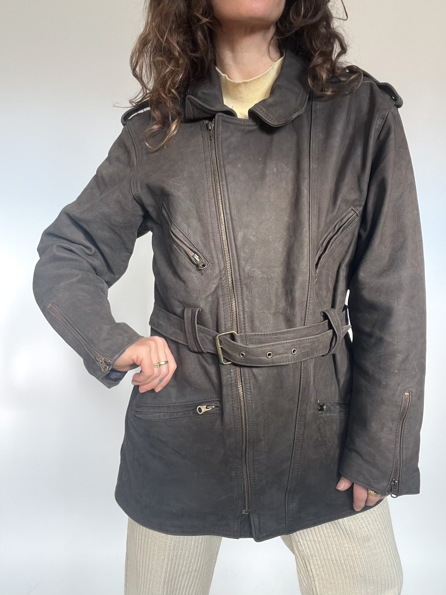 Vintage 80’s Italian Belted Leather Coat with Warm Interior Lining
