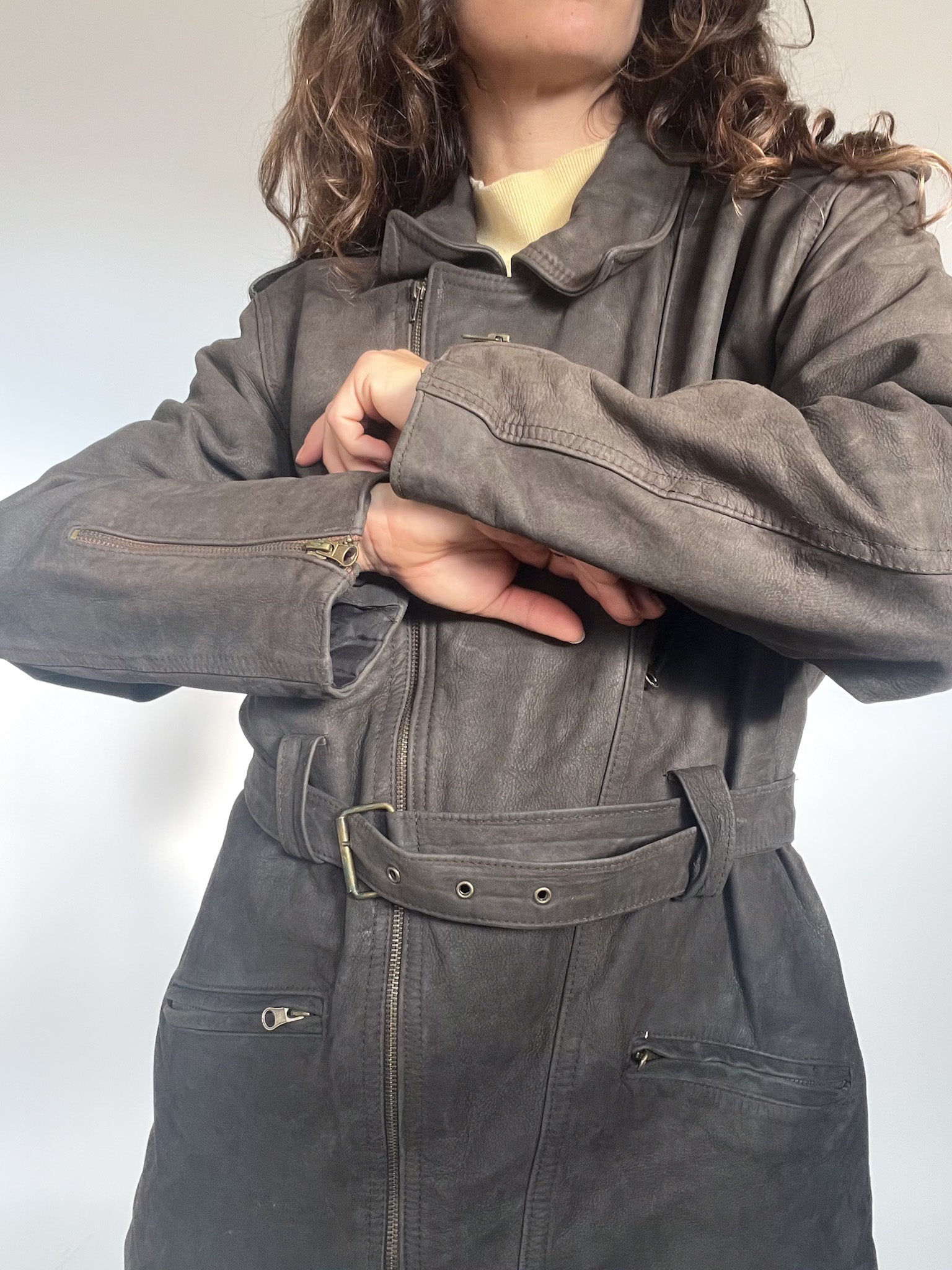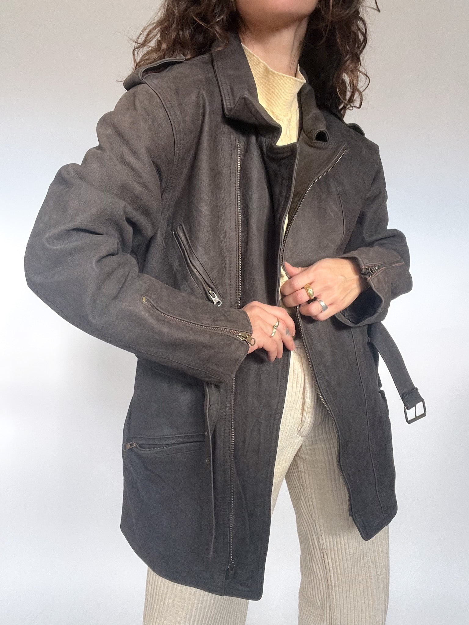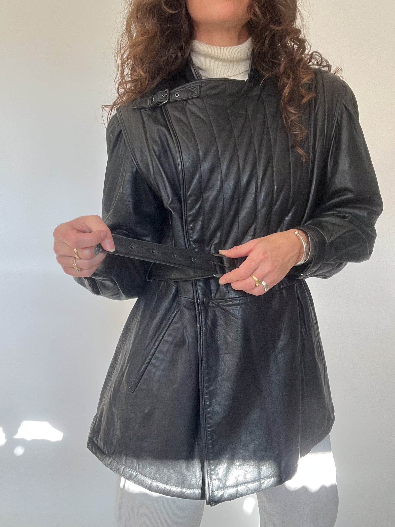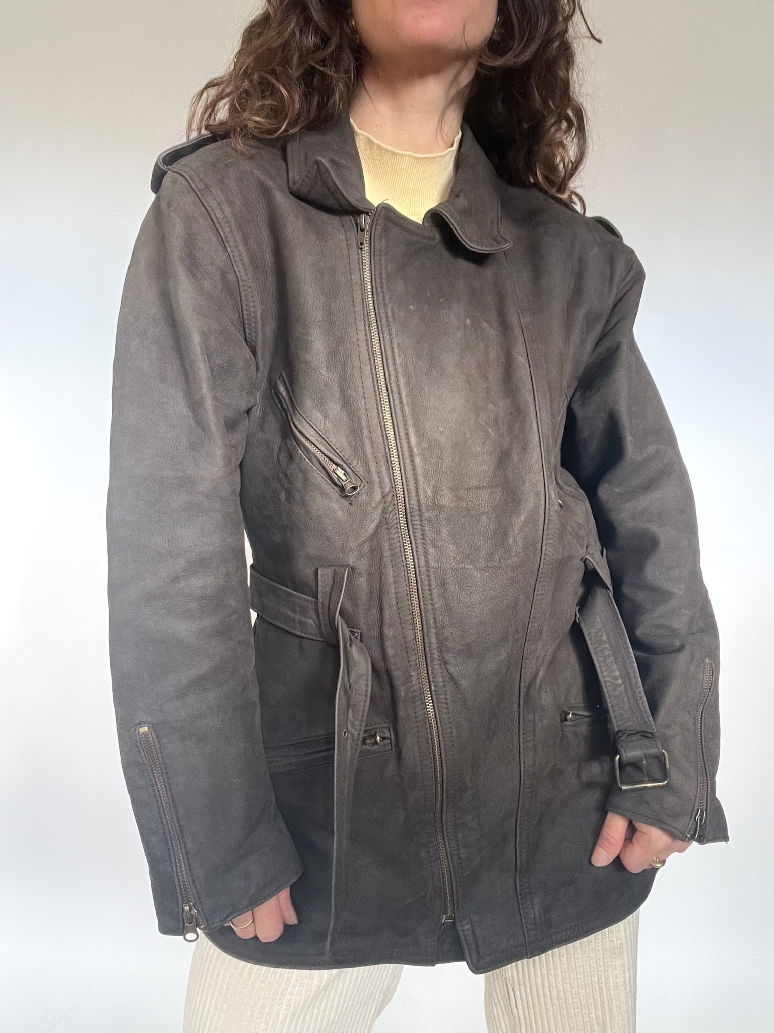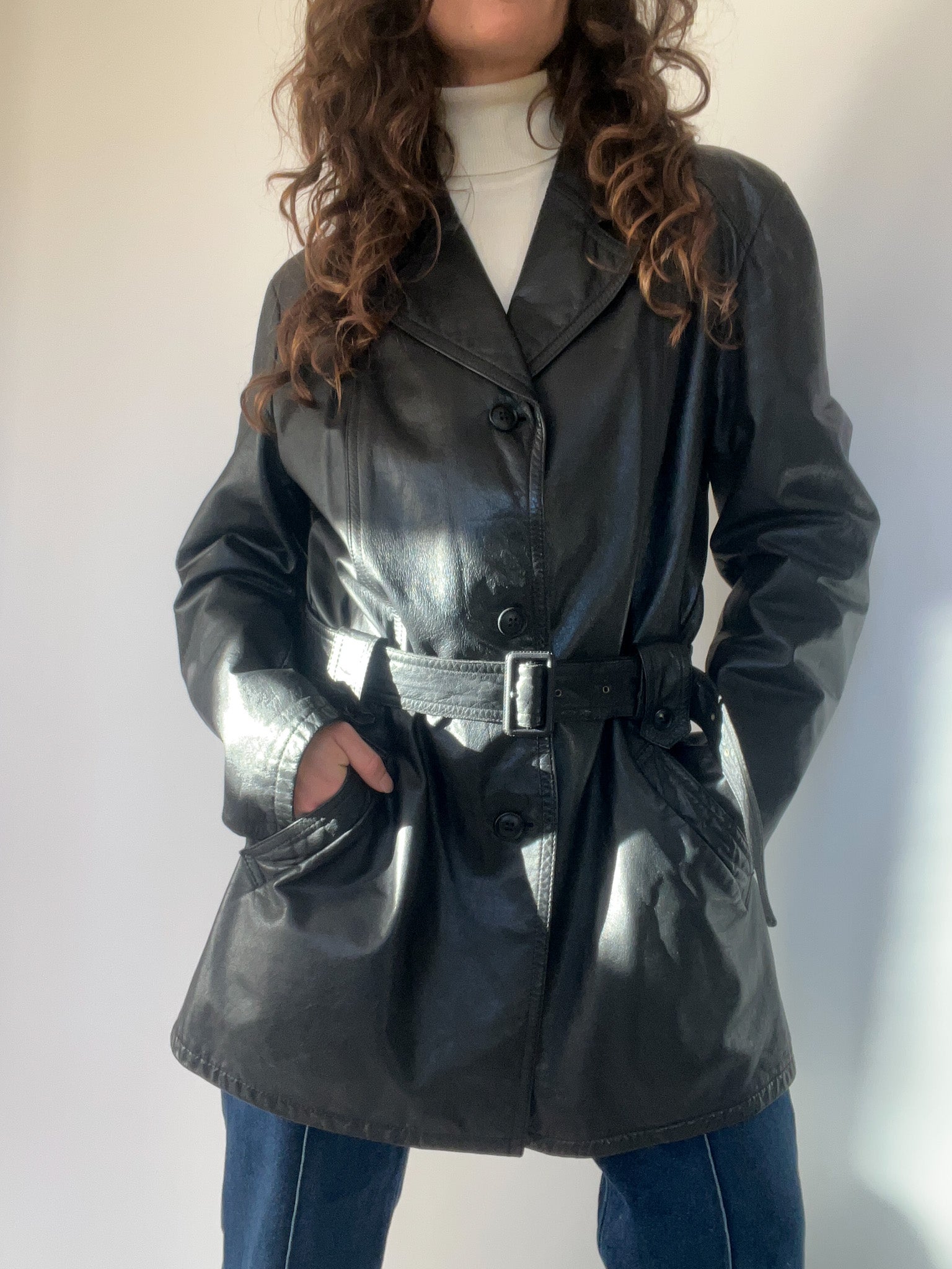 Vintage 80’s Italian Belted Leather Coat with Warm Interior Lining