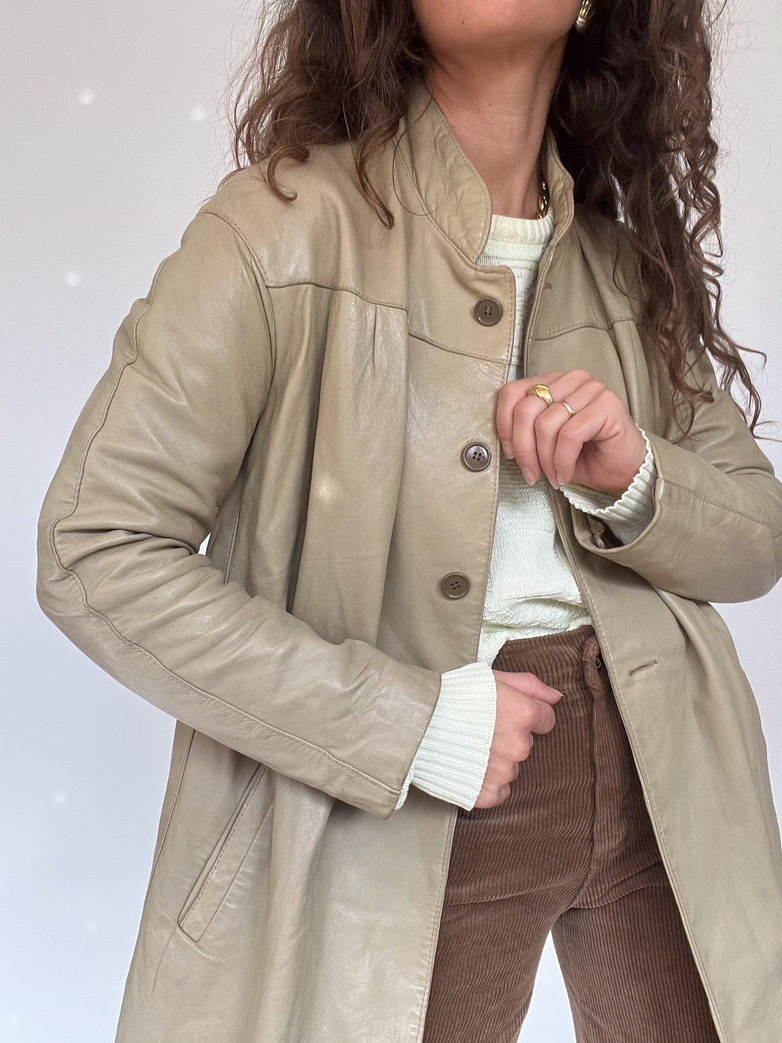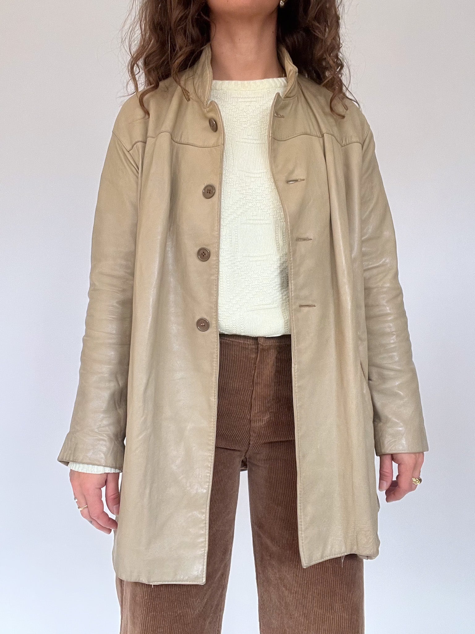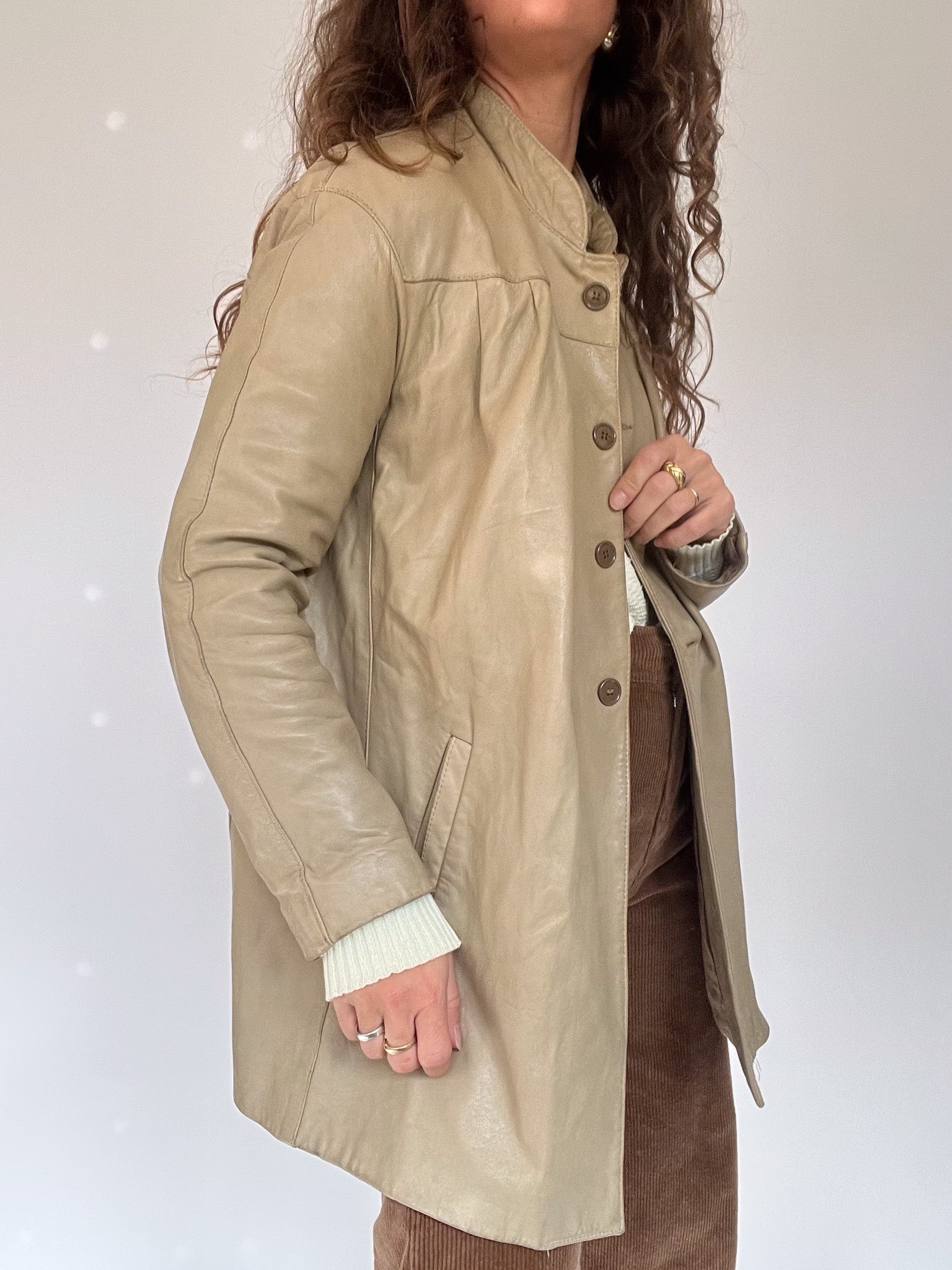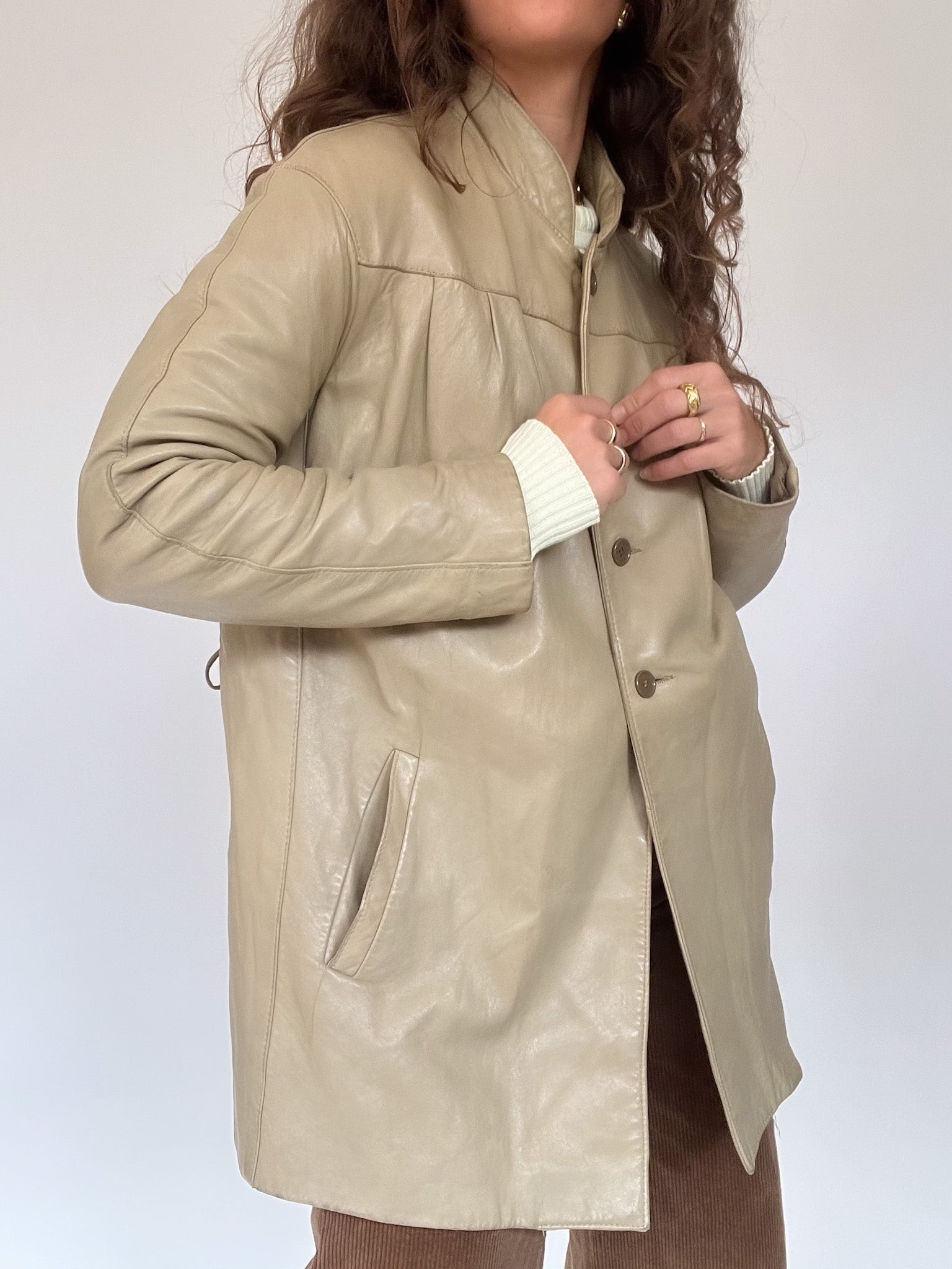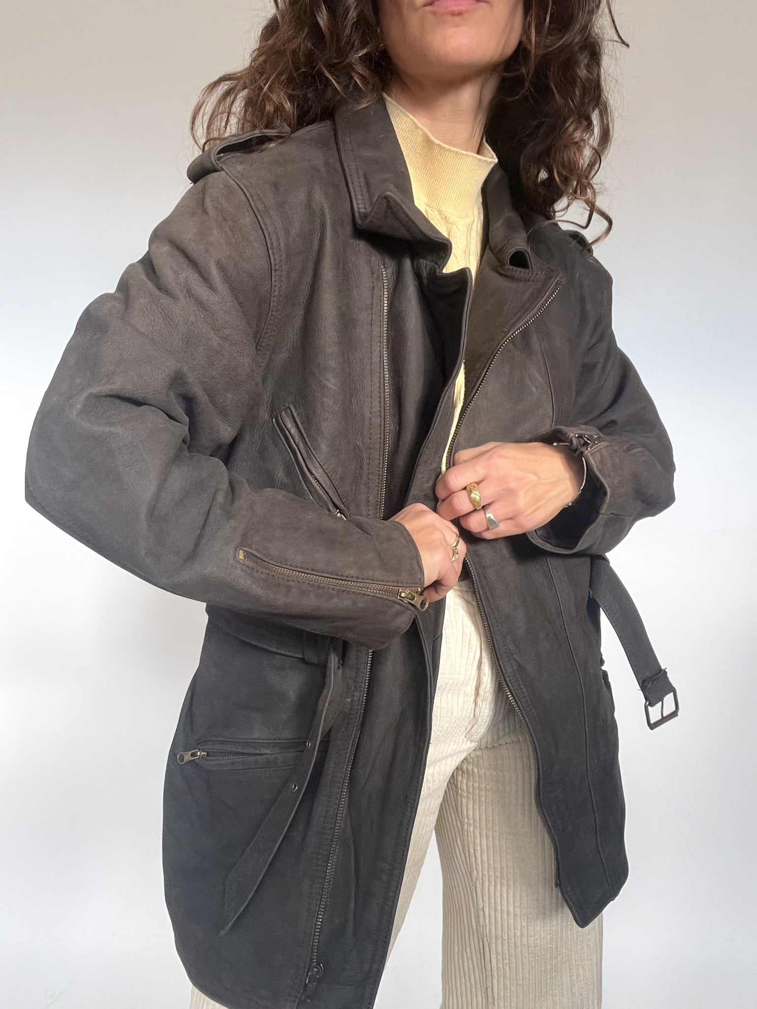 Vintage 80’s Italian Belted Leather Coat with Warm Interior Lining