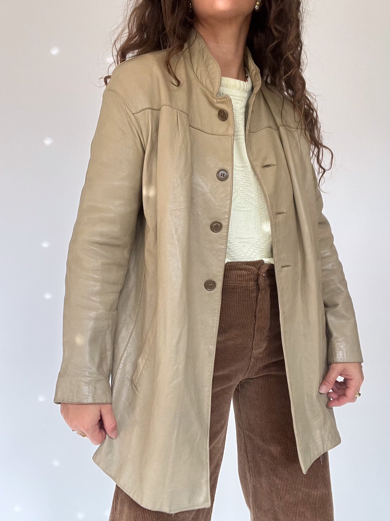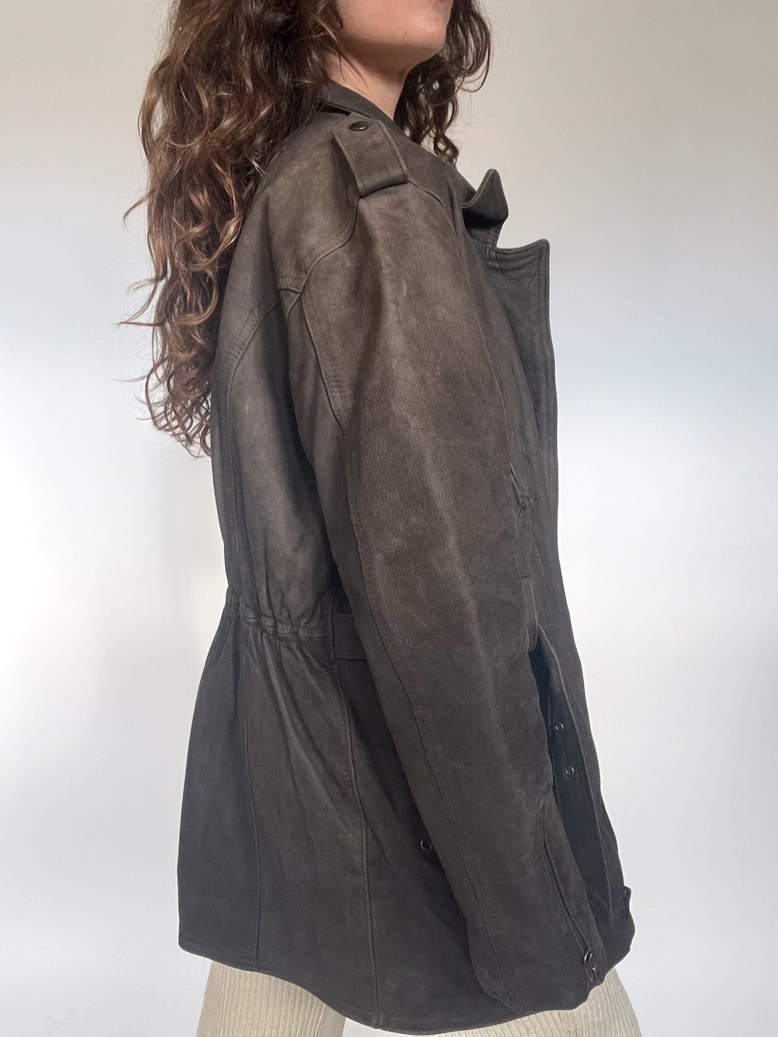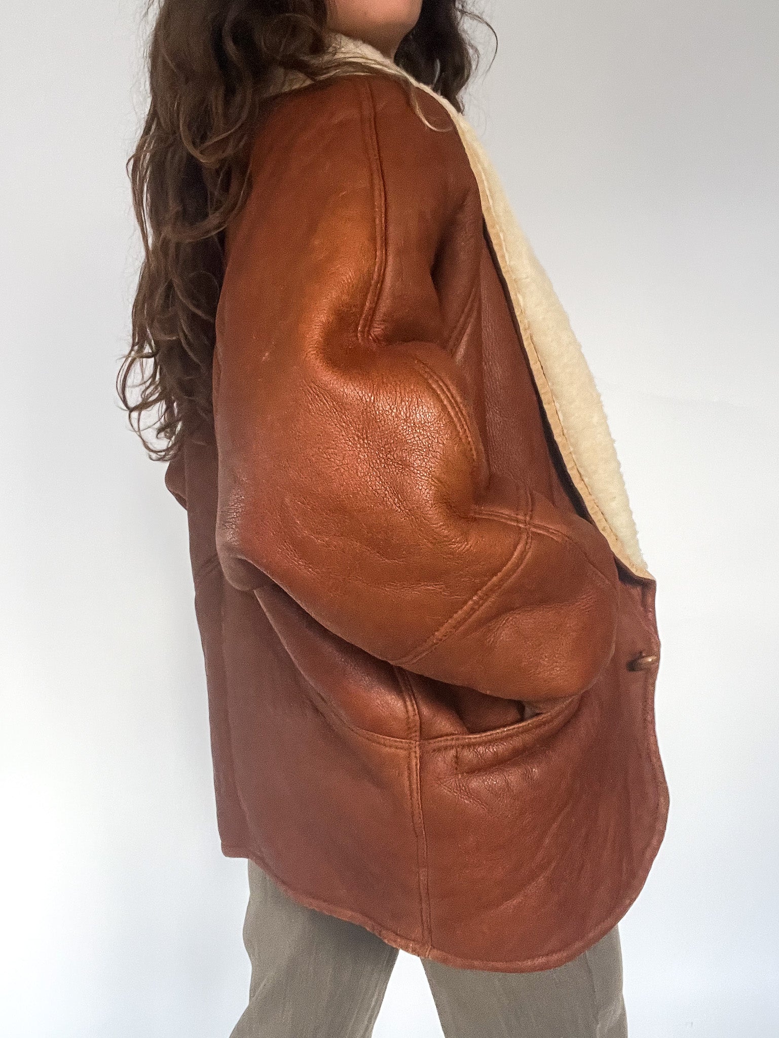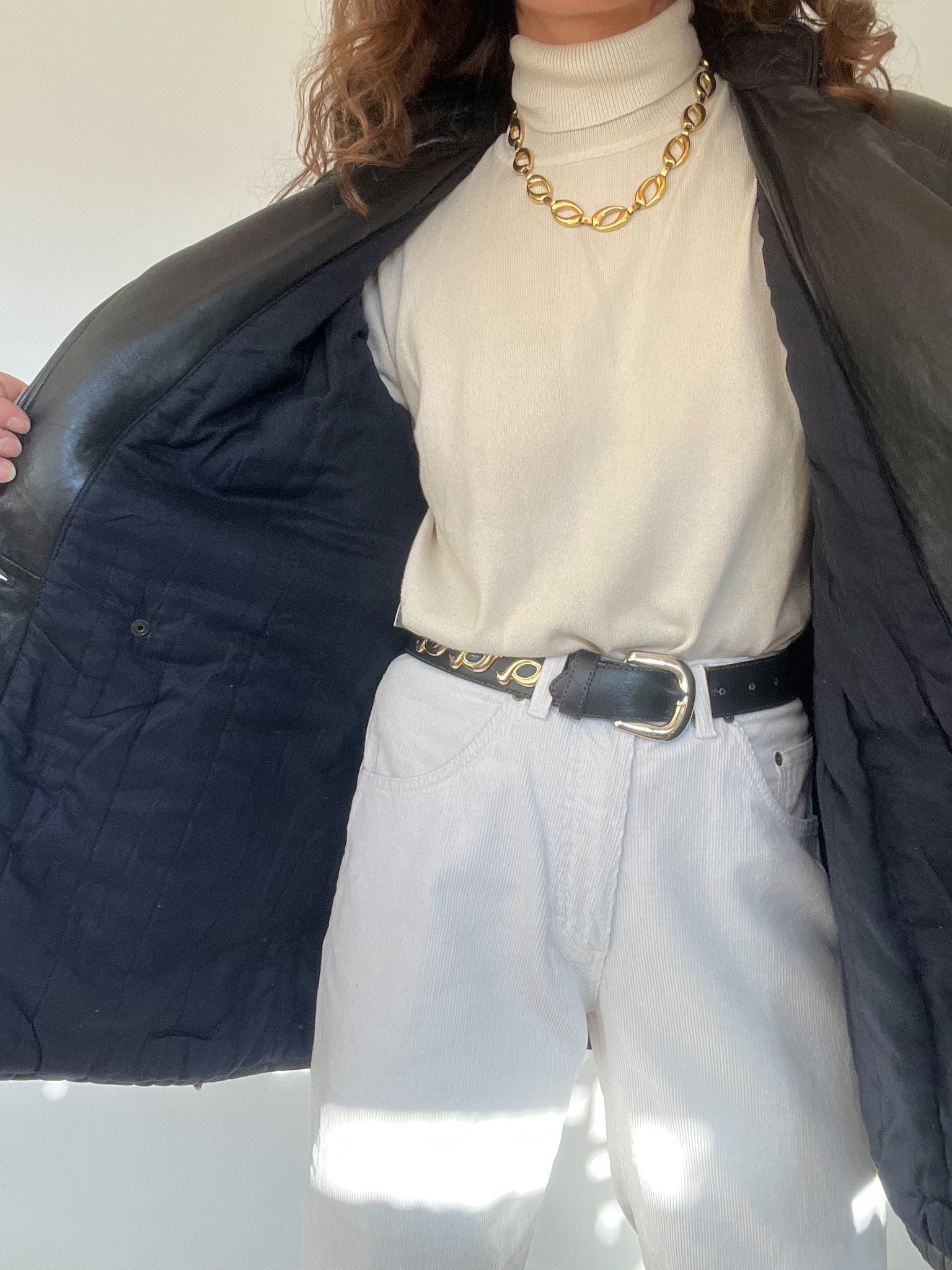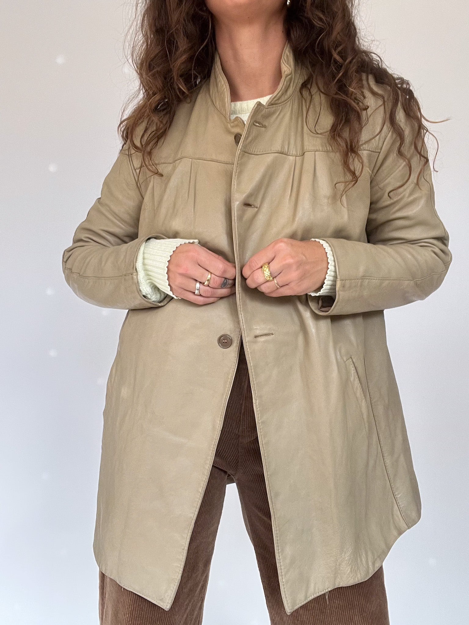 Vintage 80’s Italian Belted Leather Coat with Warm Interior Lining